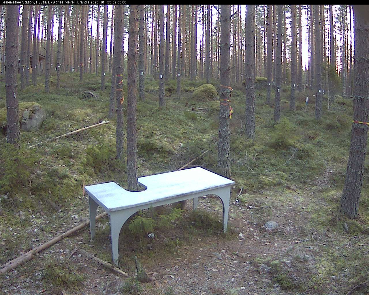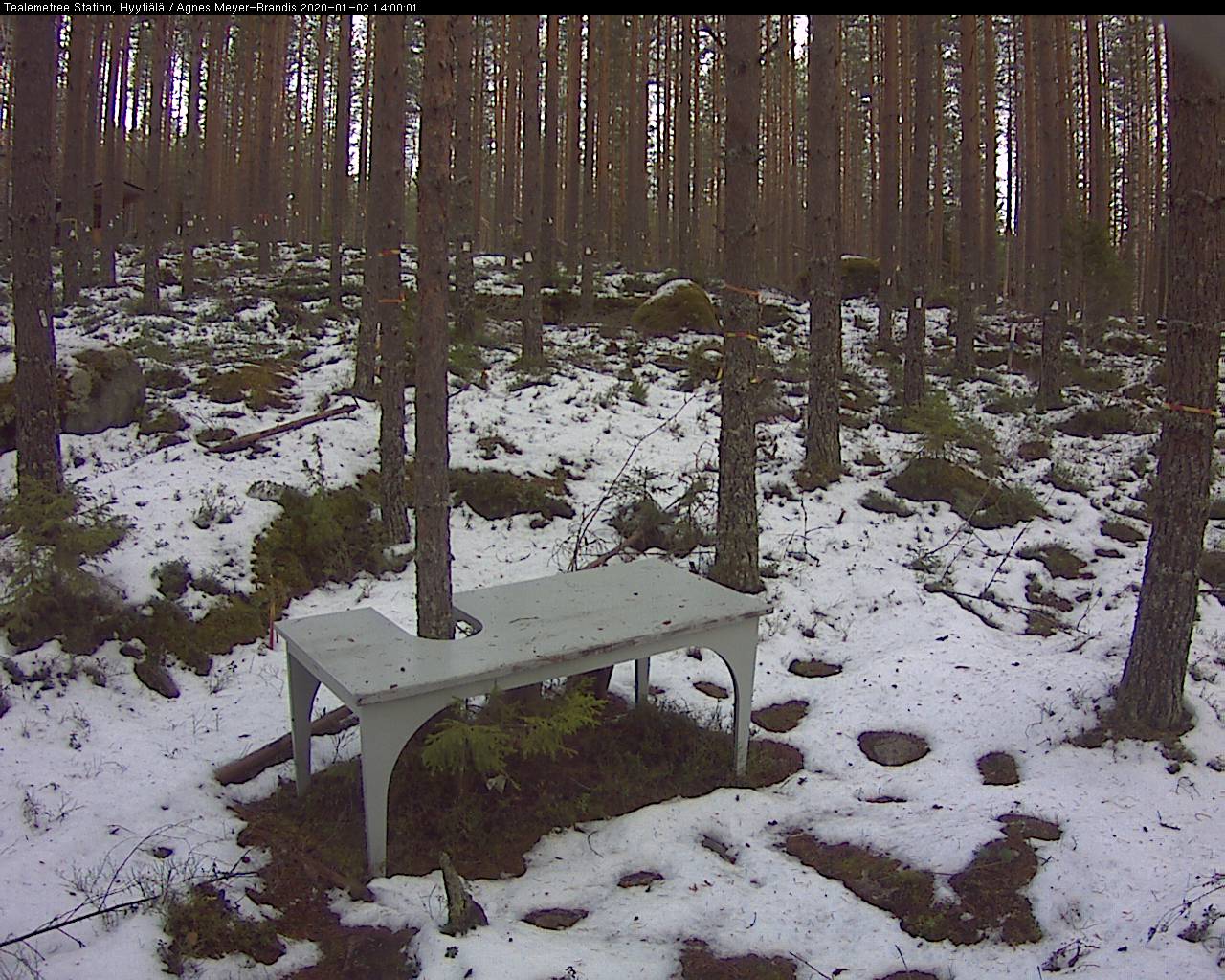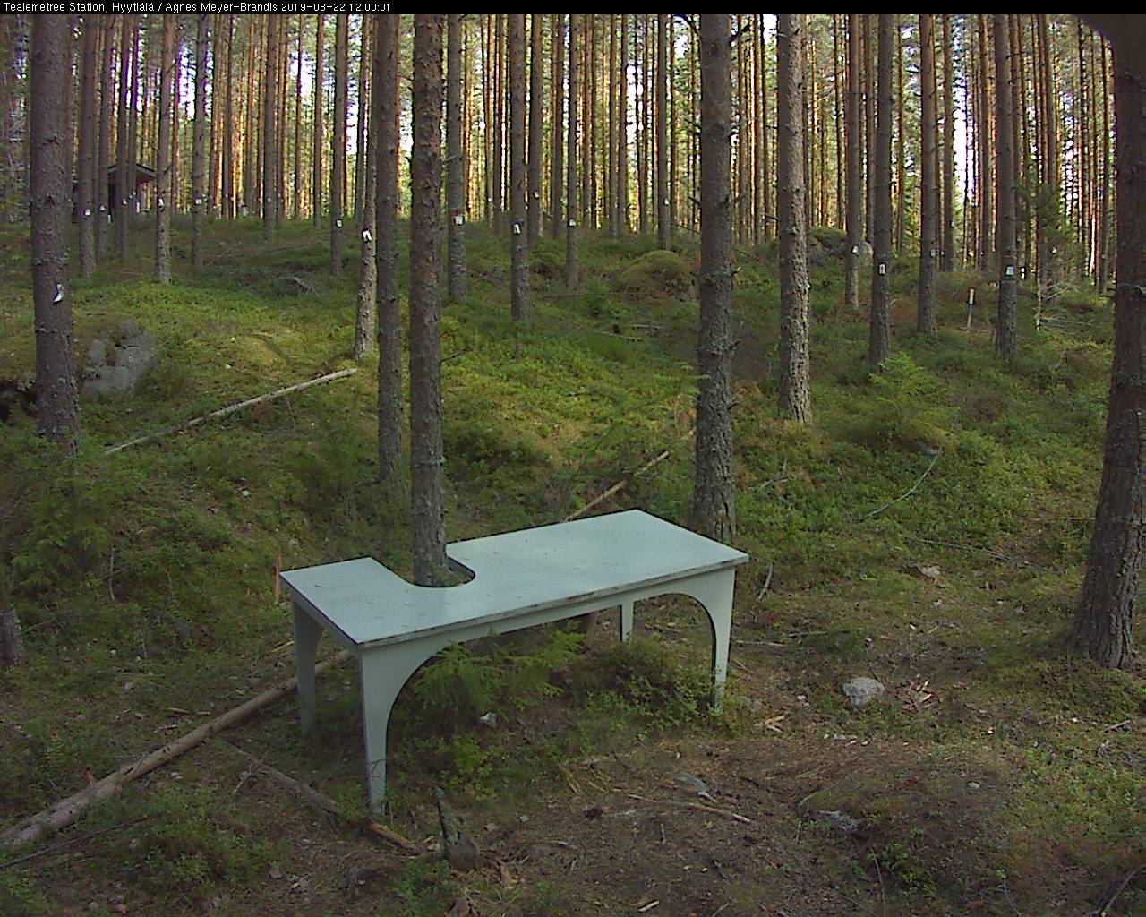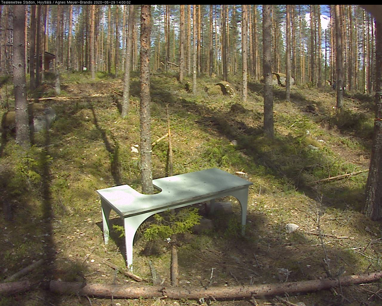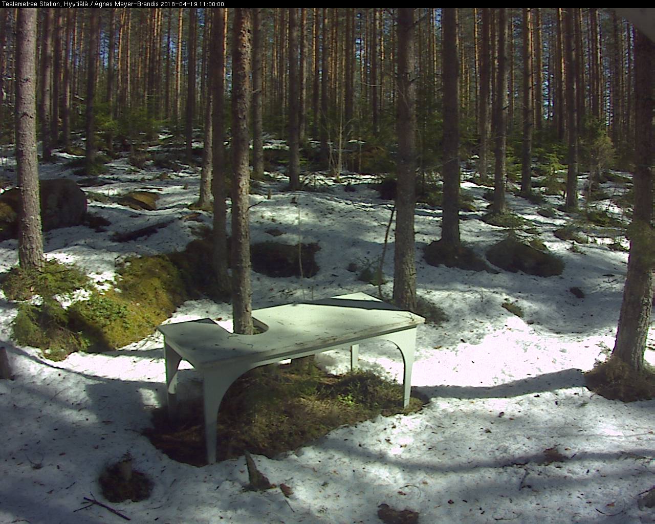 Agnes Meyer-Brandiksen työ Hyytiälässä alkoi tutustumalla aseman muihin tutkijoihin. Pystyäkseen tapaamaan ihmisiä metsässä, hän rakensi pöydän, josta muodostui kohtauspiste ja paikka teehetkille Agneksen ja puun kanssa.