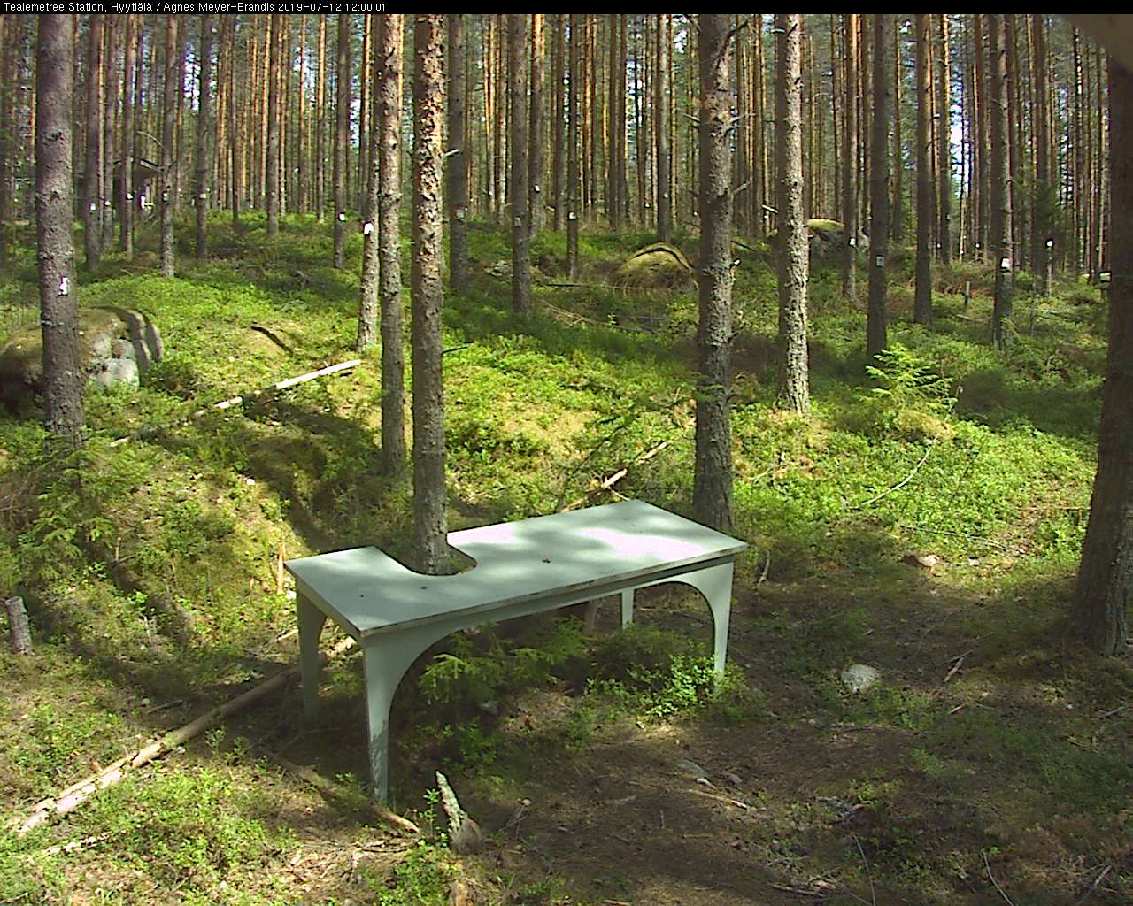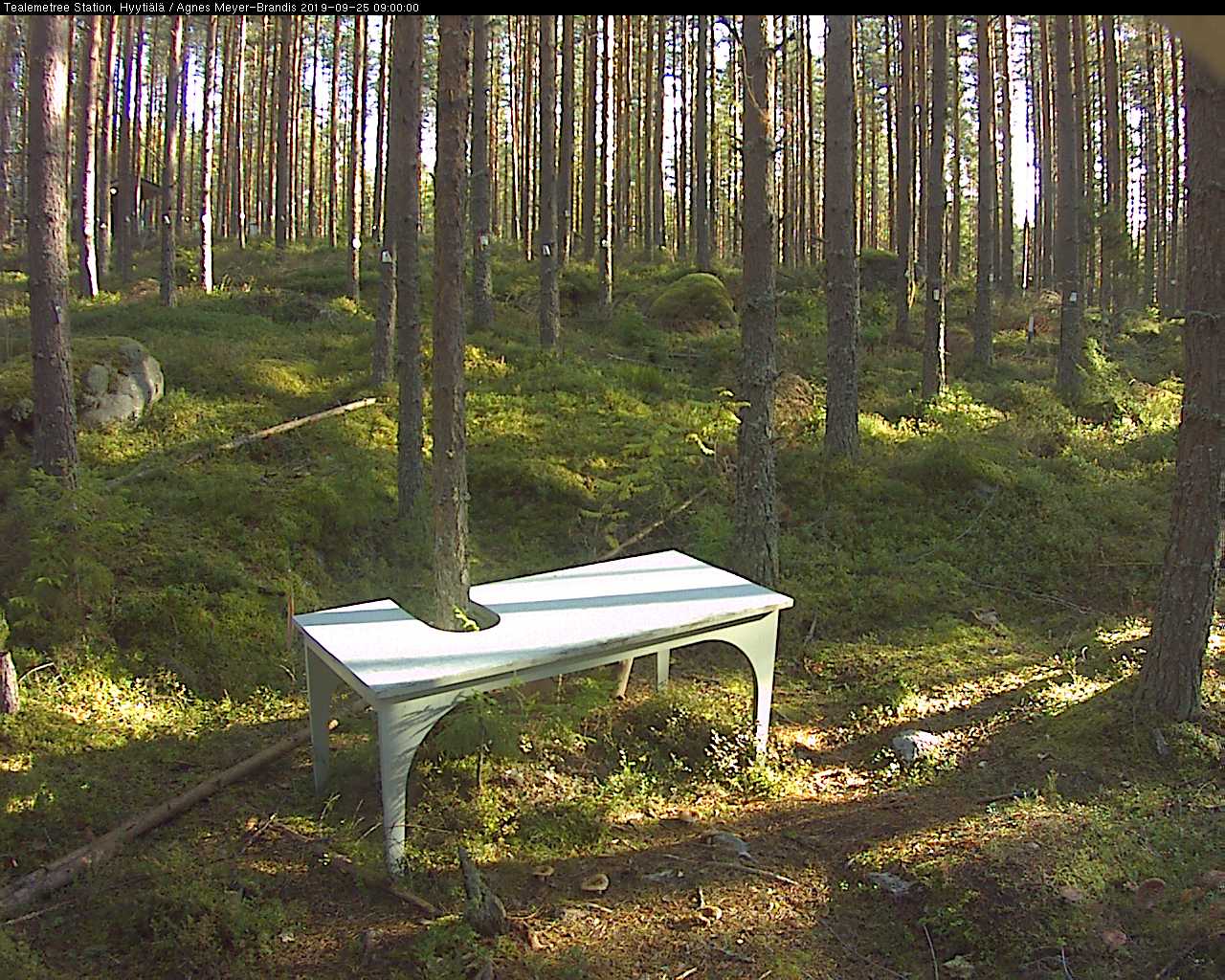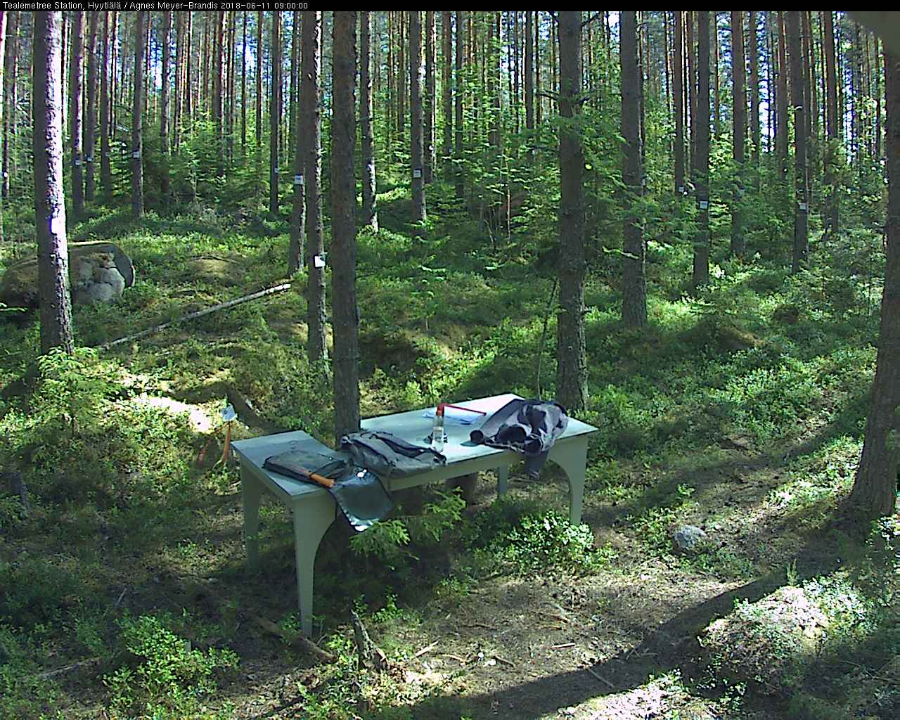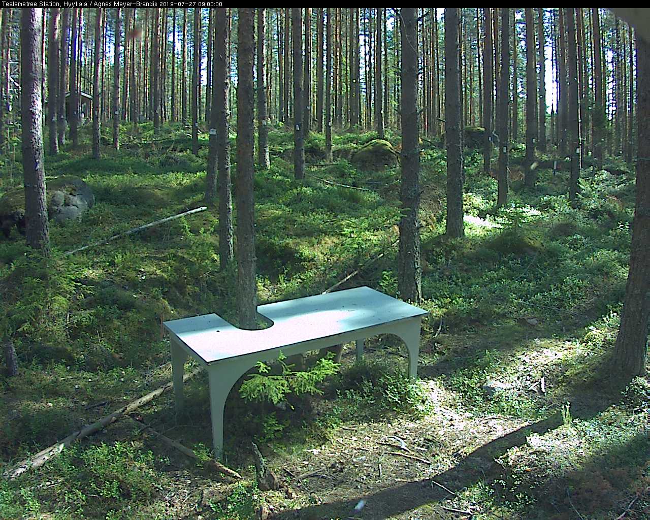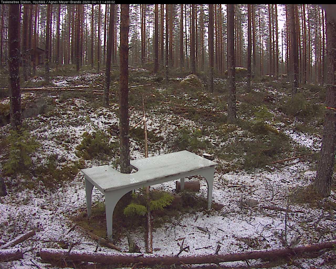 Agnes Meyer-Brandiksen työ Hyytiälässä alkoi tutustumalla aseman muihin tutkijoihin. Pystyäkseen tapaamaan ihmisiä metsässä, hän rakensi pöydän, josta muodostui kohtauspiste ja paikka teehetkille Agneksen ja puun kanssa.