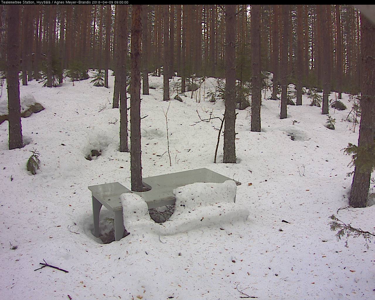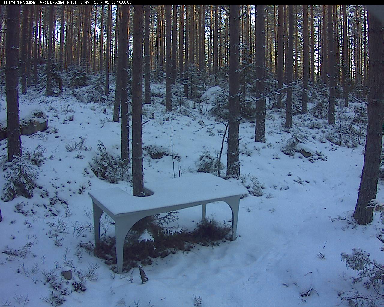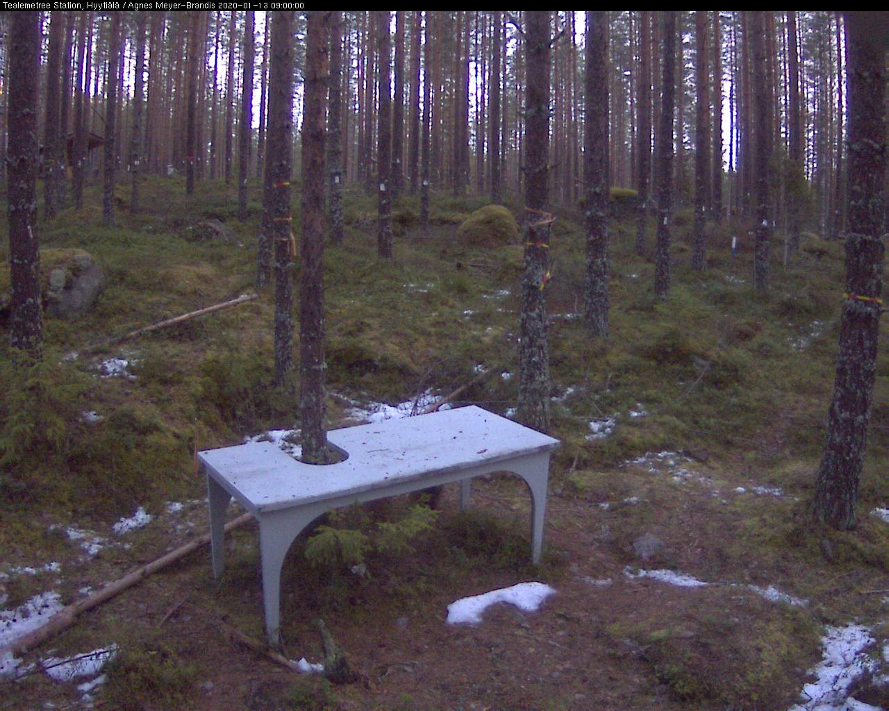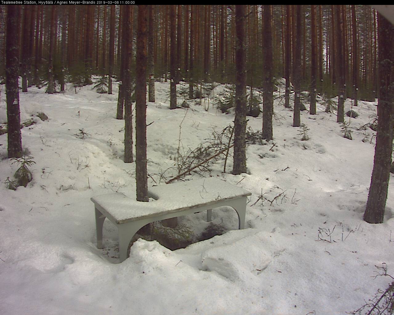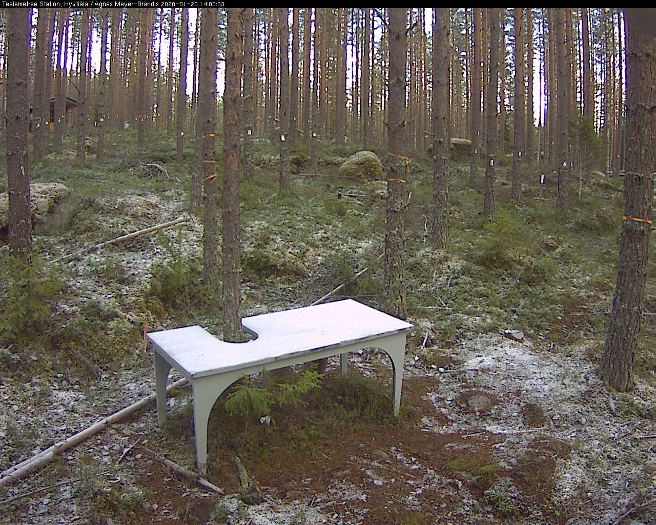 Agnes Meyer-Brandiksen työ Hyytiälässä alkoi tutustumalla aseman muihin tutkijoihin. Pystyäkseen tapaamaan ihmisiä metsässä, hän rakensi pöydän, josta muodostui kohtauspiste ja paikka teehetkille Agneksen ja puun kanssa.