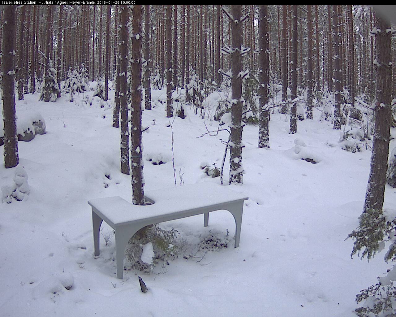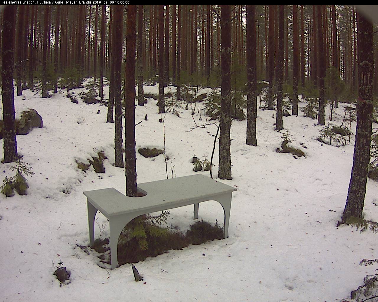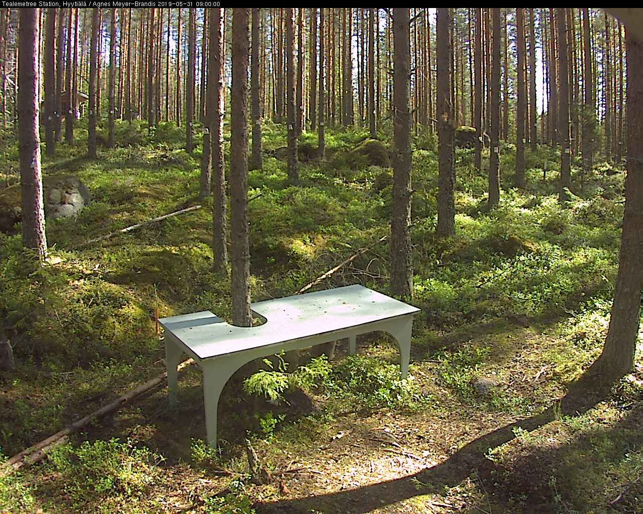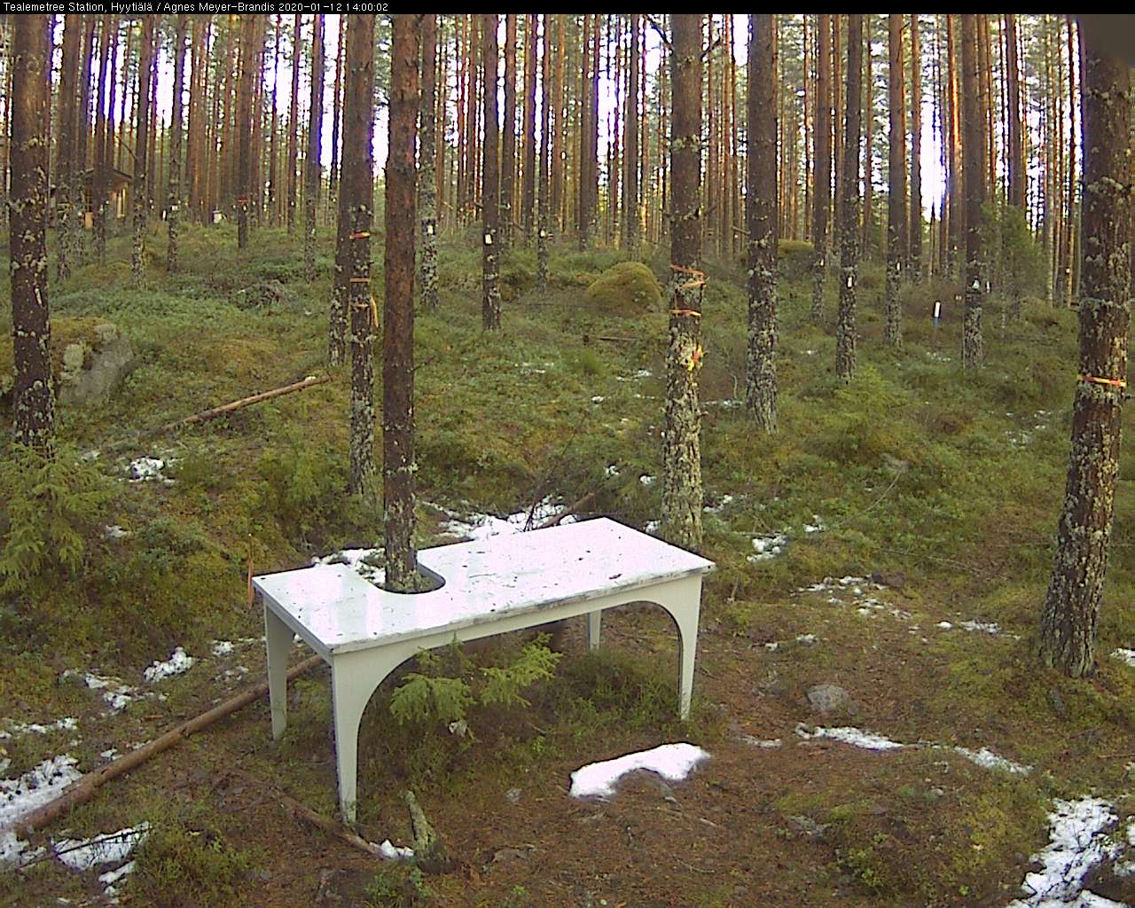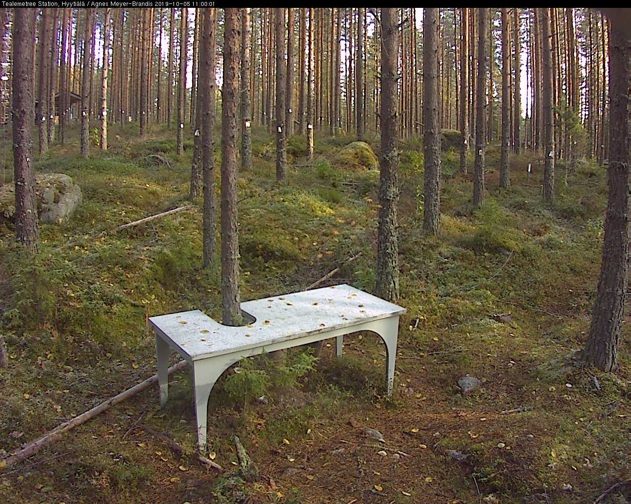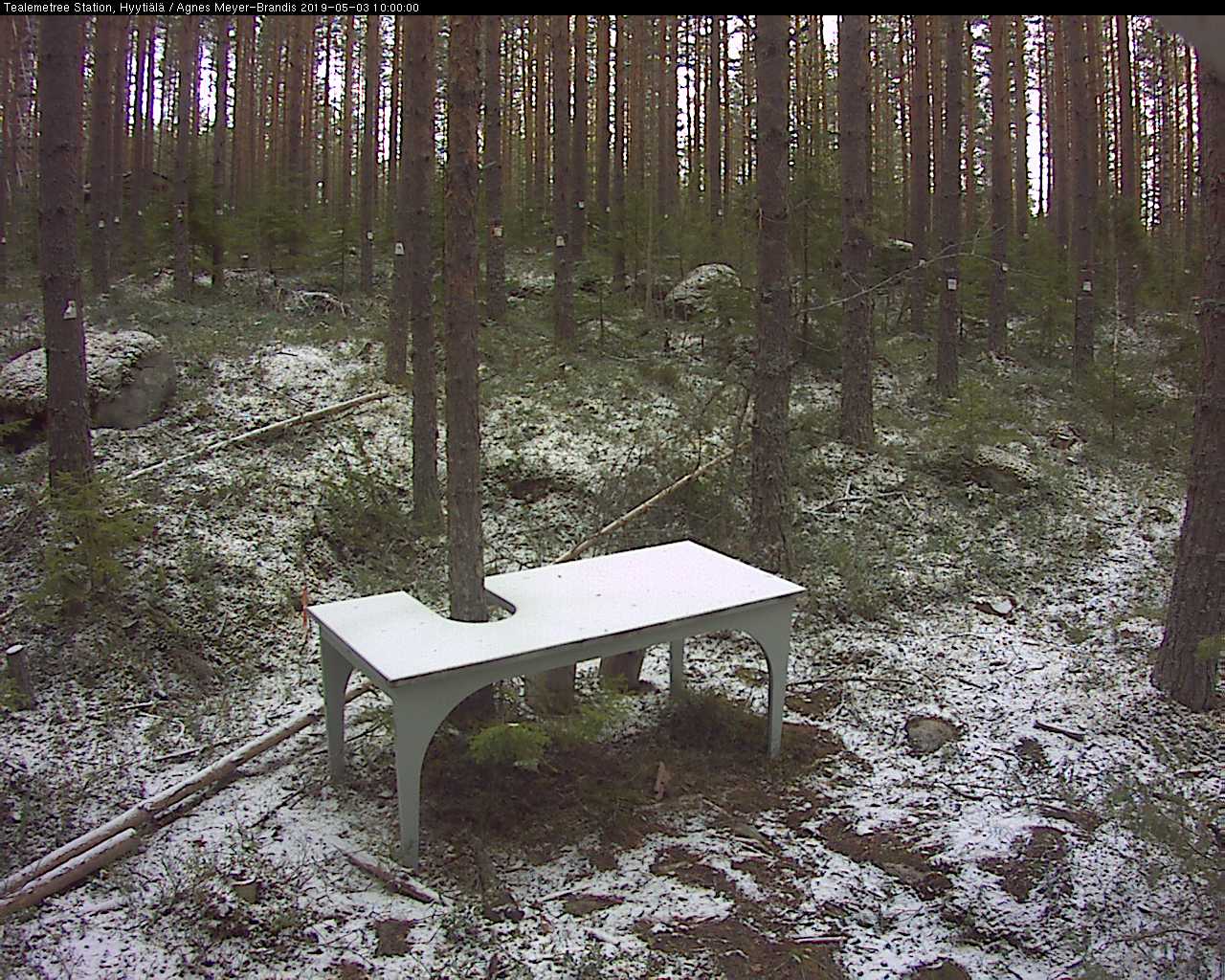 Agnes Meyer-Brandiksen työ Hyytiälässä alkoi tutustumalla aseman muihin tutkijoihin. Pystyäkseen tapaamaan ihmisiä metsässä, hän rakensi pöydän, josta muodostui kohtauspiste ja paikka teehetkille Agneksen ja puun kanssa.