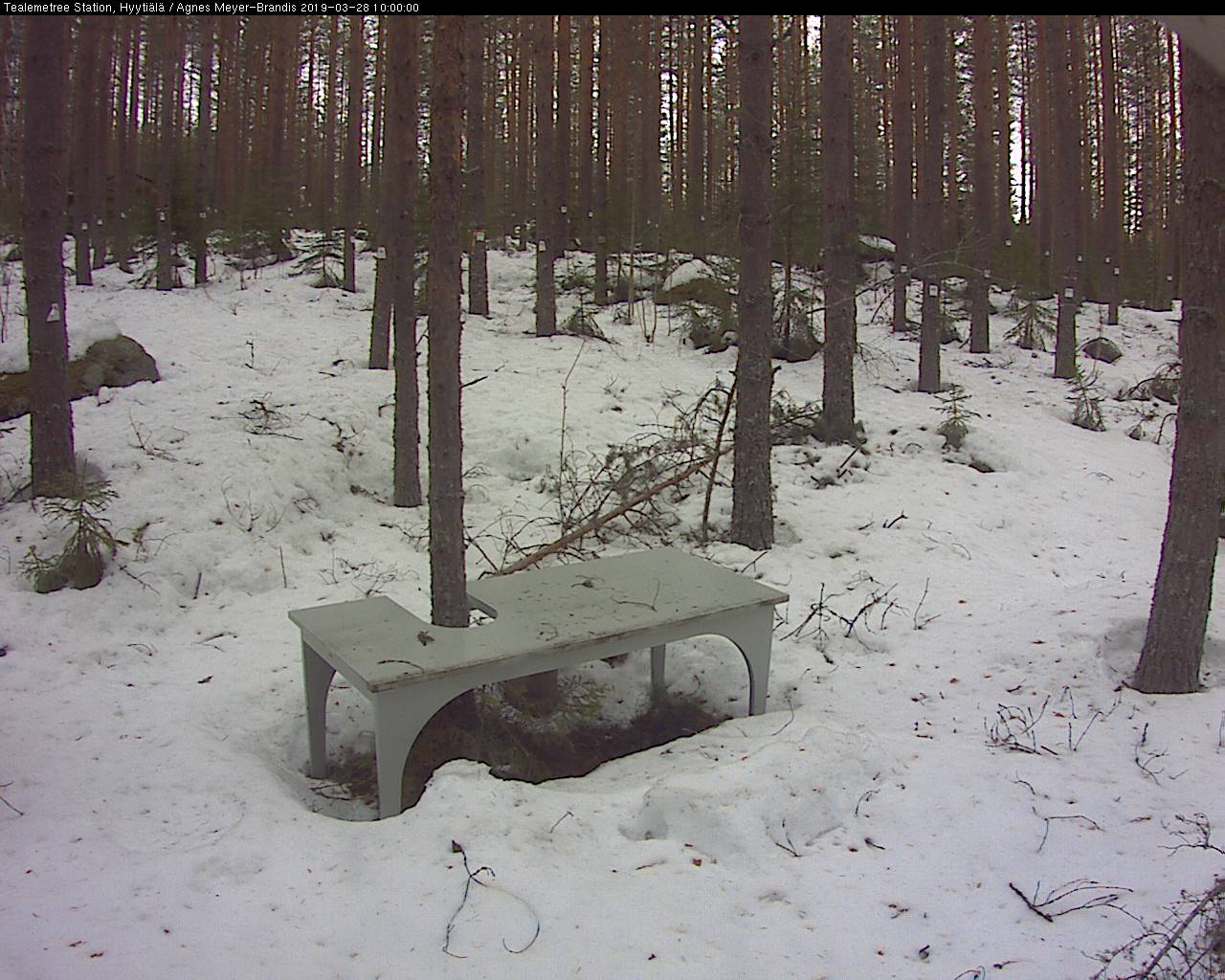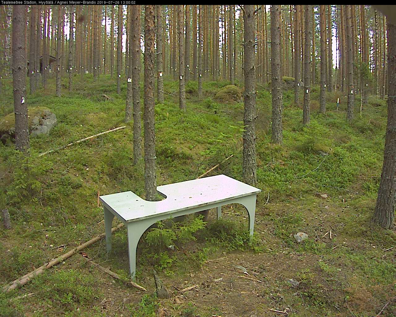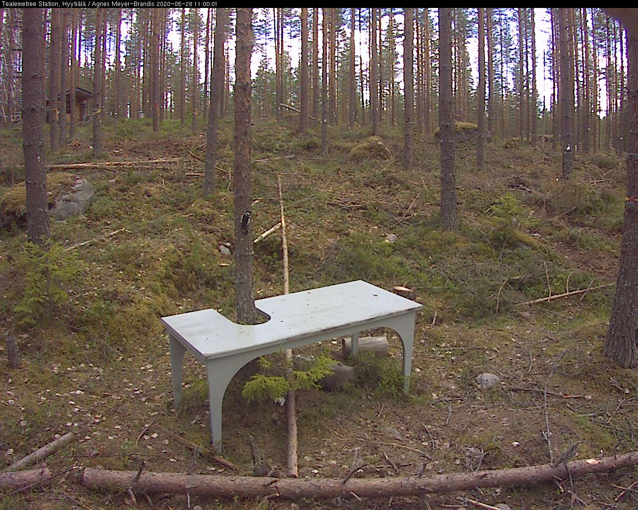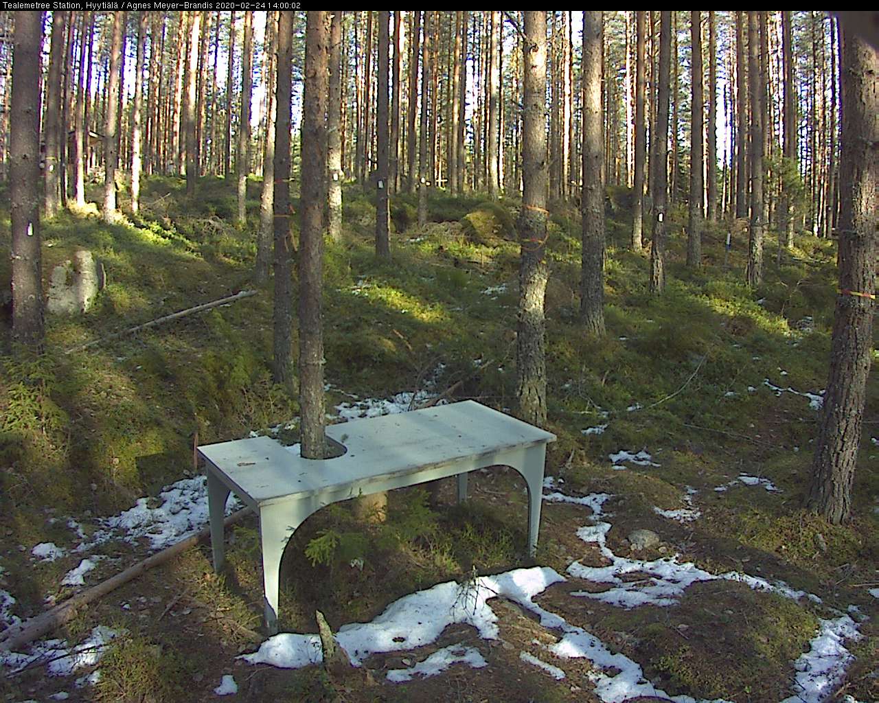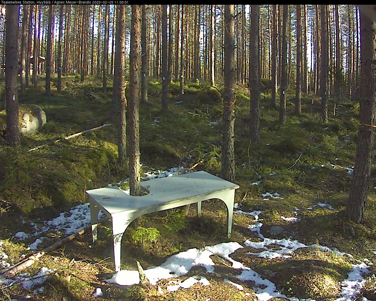Agnes Meyer-Brandiksen työ Hyytiälässä alkoi tutustumalla aseman muihin tutkijoihin. Pystyäkseen tapaamaan ihmisiä metsässä, hän rakensi pöydän, josta muodostui kohtauspiste ja paikka teehetkille Agneksen ja puun kanssa.