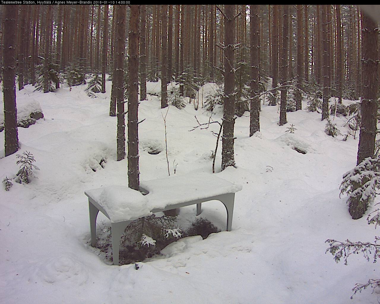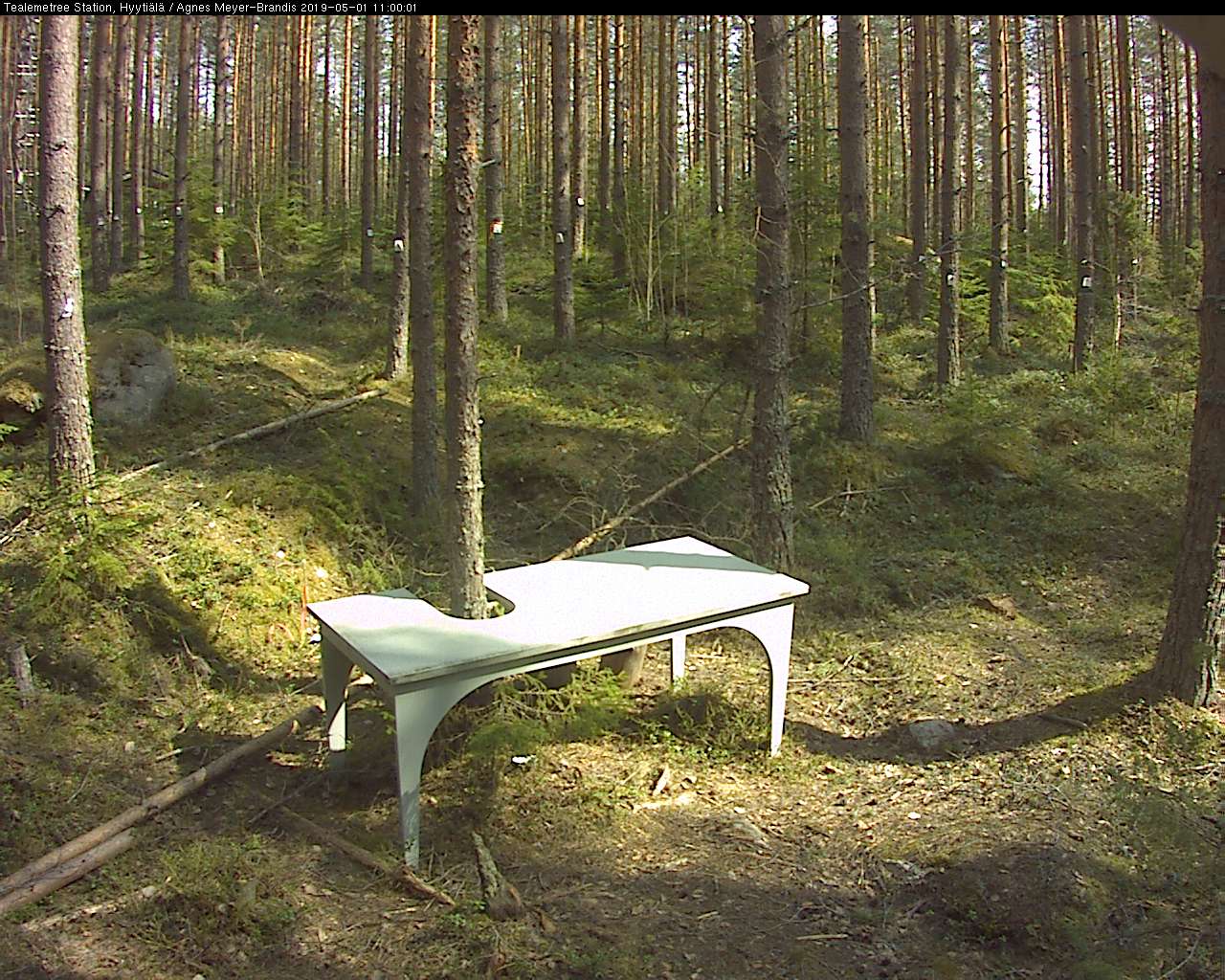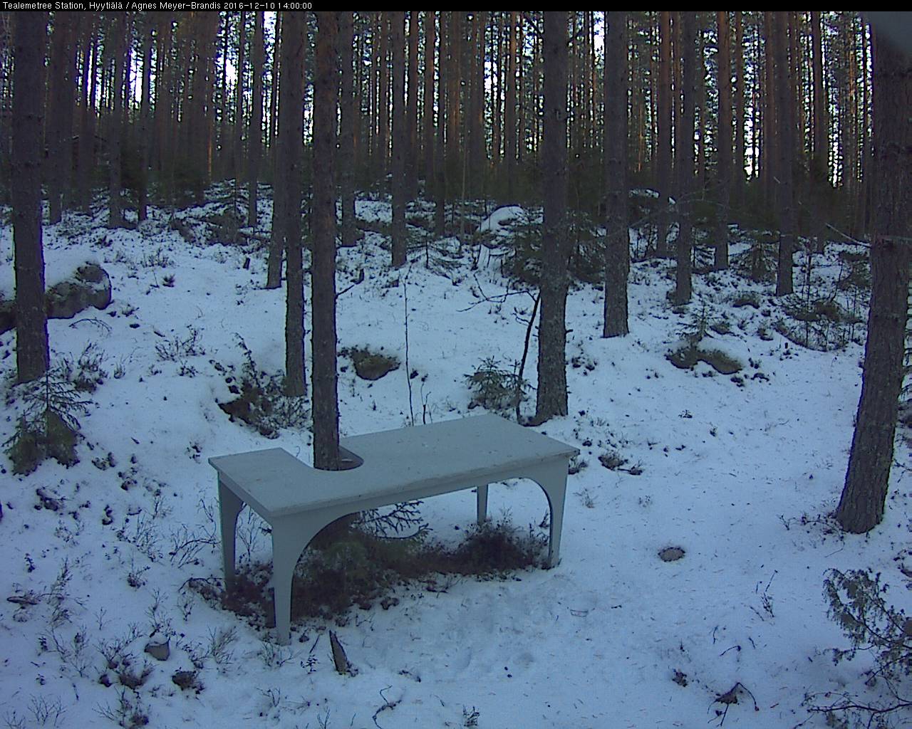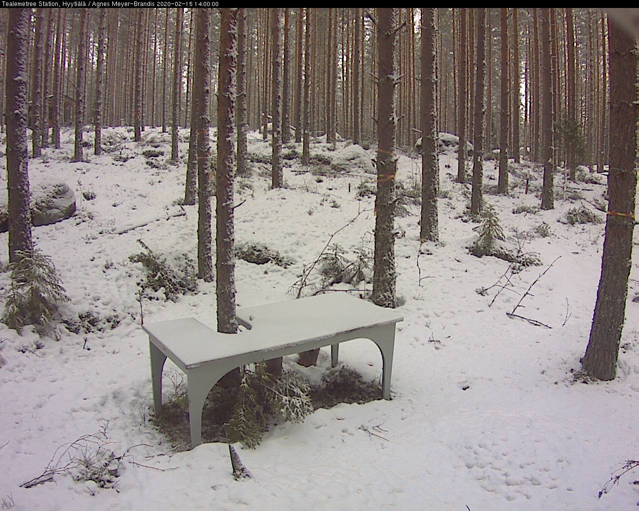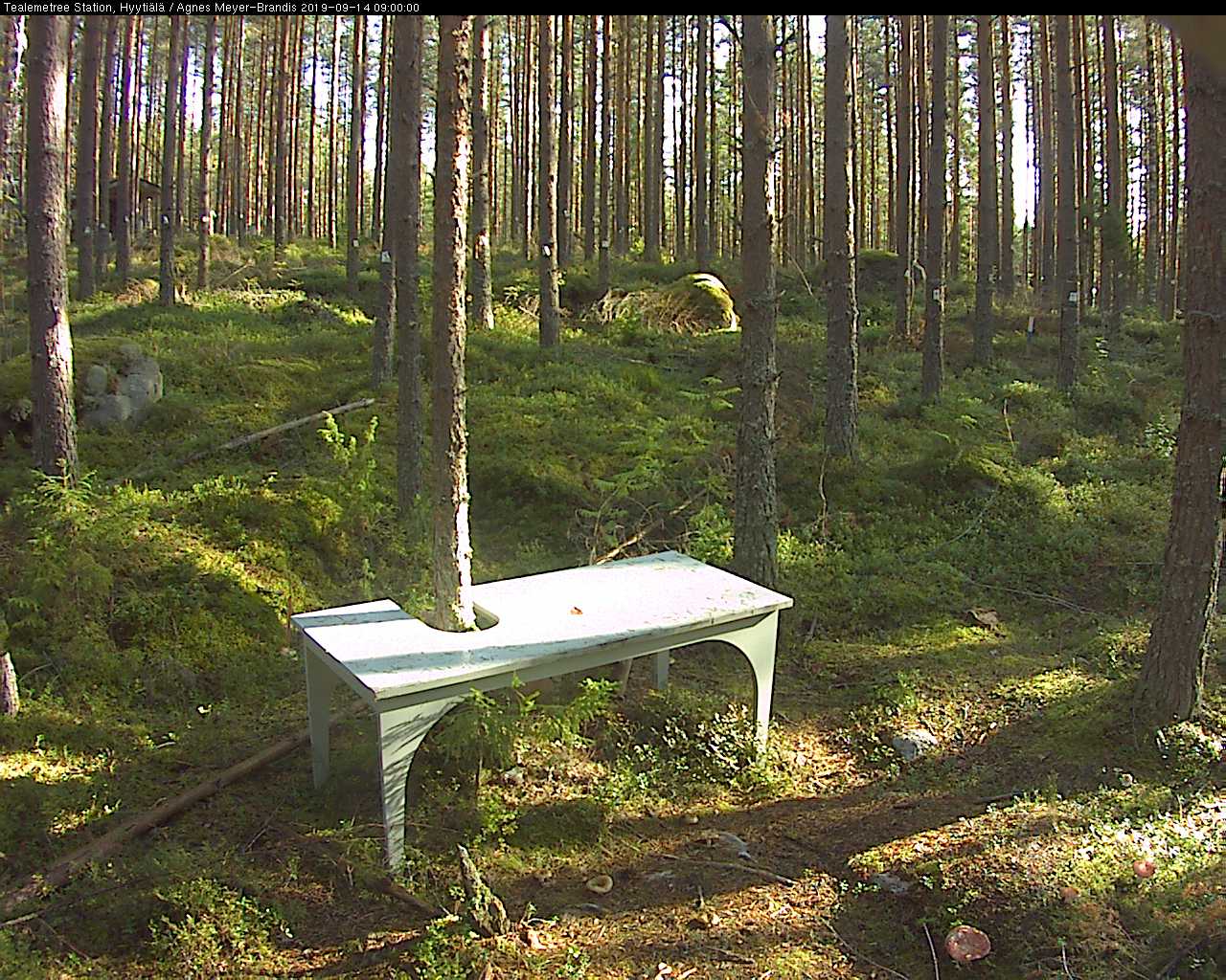 Agnes Meyer-Brandiksen työ Hyytiälässä alkoi tutustumalla aseman muihin tutkijoihin. Pystyäkseen tapaamaan ihmisiä metsässä, hän rakensi pöydän, josta muodostui kohtauspiste ja paikka teehetkille Agneksen ja puun kanssa.