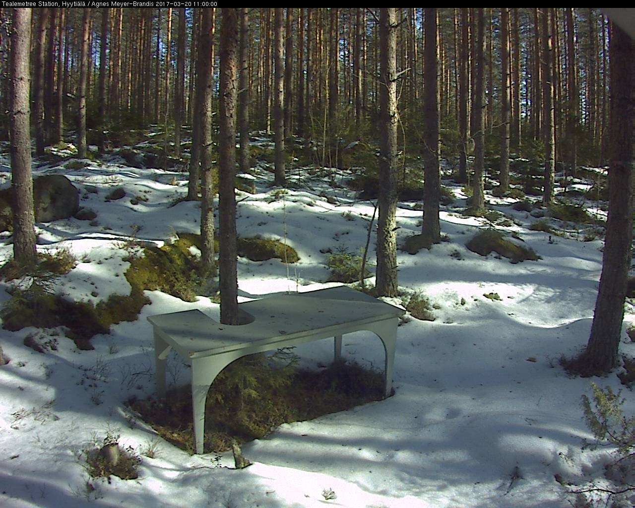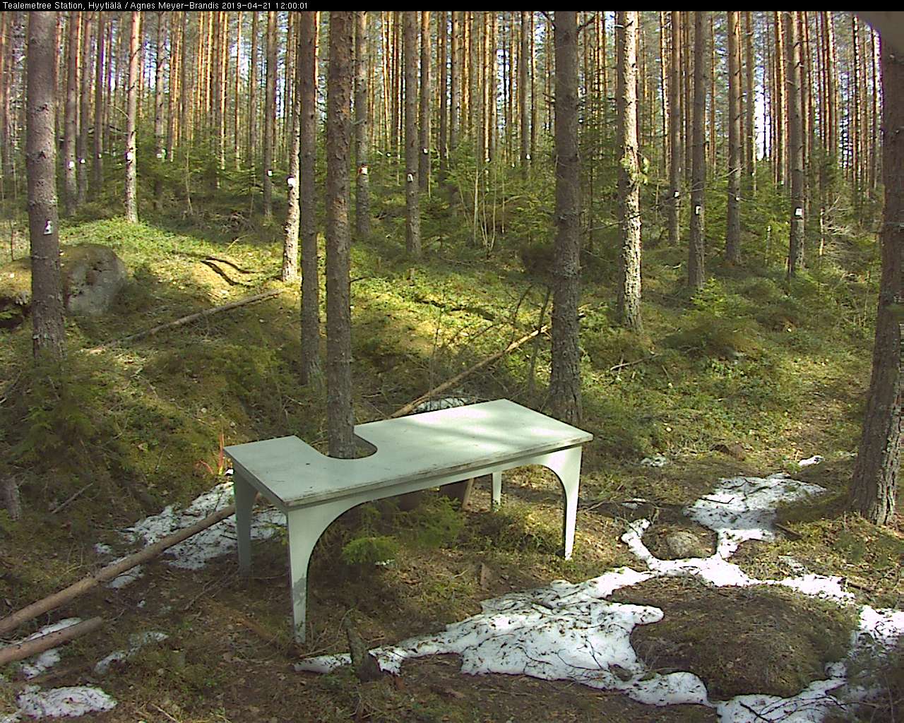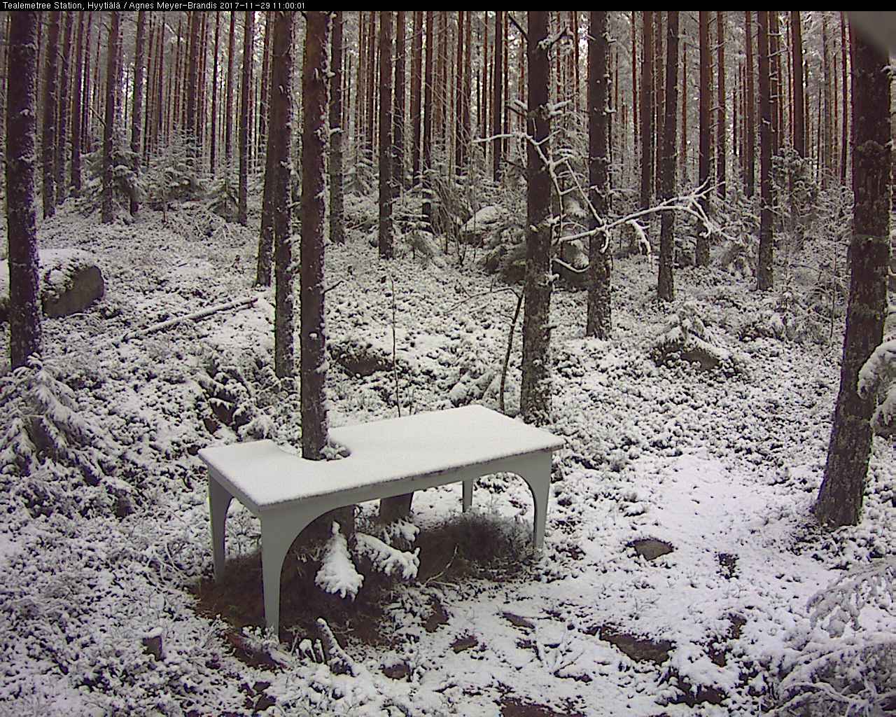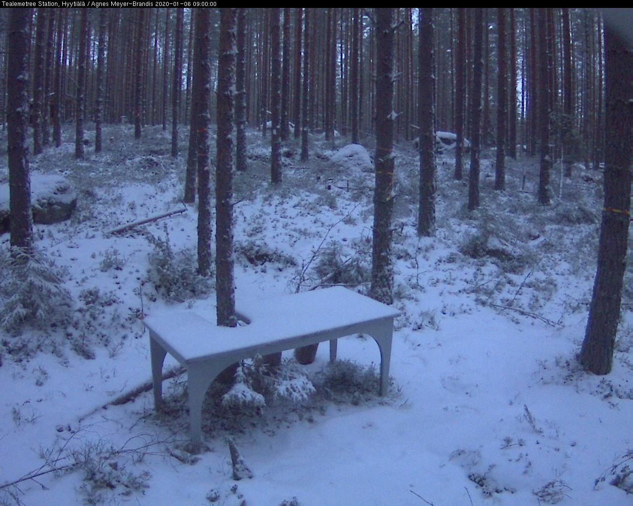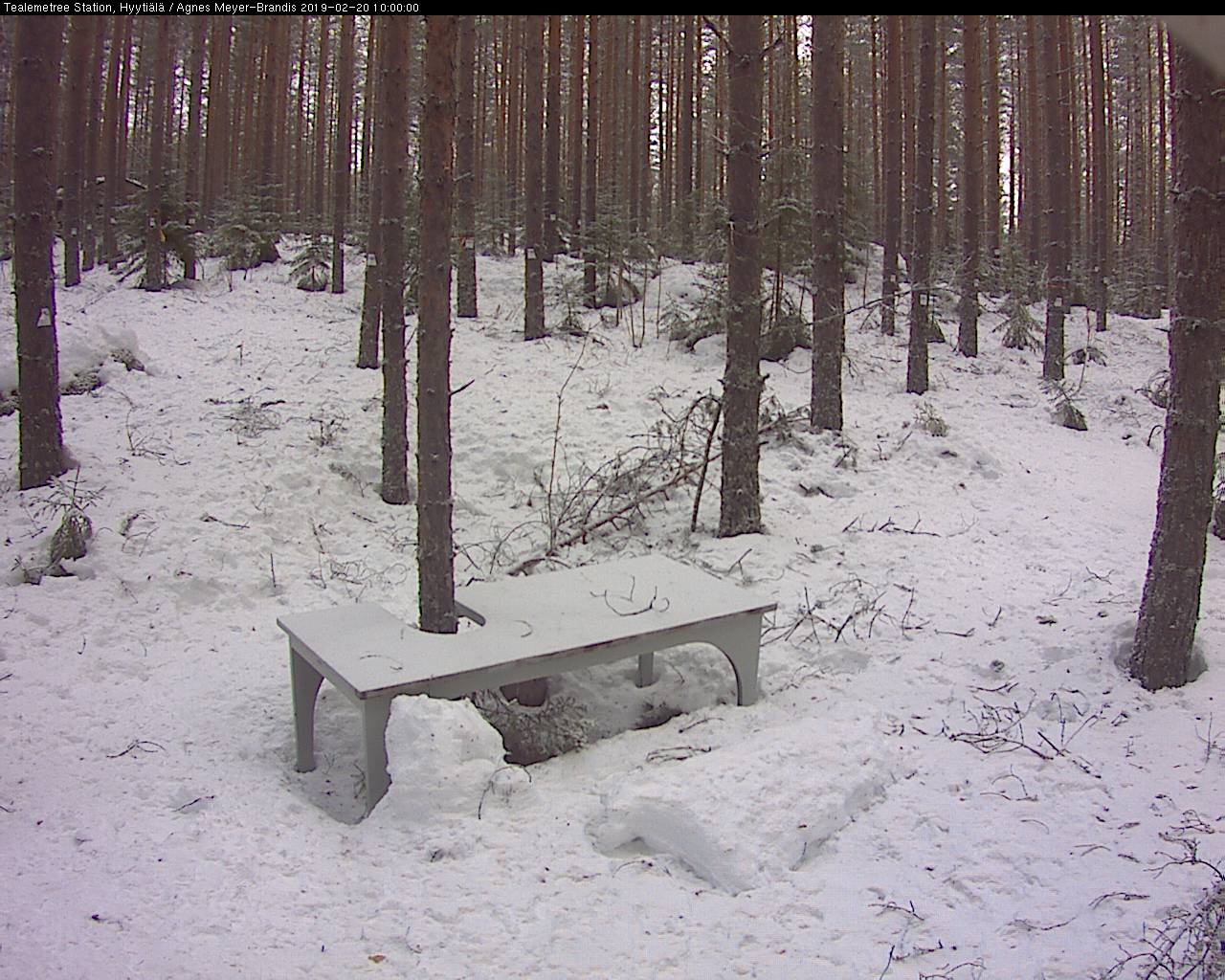 Agnes Meyer-Brandiksen työ Hyytiälässä alkoi tutustumalla aseman muihin tutkijoihin. Pystyäkseen tapaamaan ihmisiä metsässä, hän rakensi pöydän, josta muodostui kohtauspiste ja paikka teehetkille Agneksen ja puun kanssa.