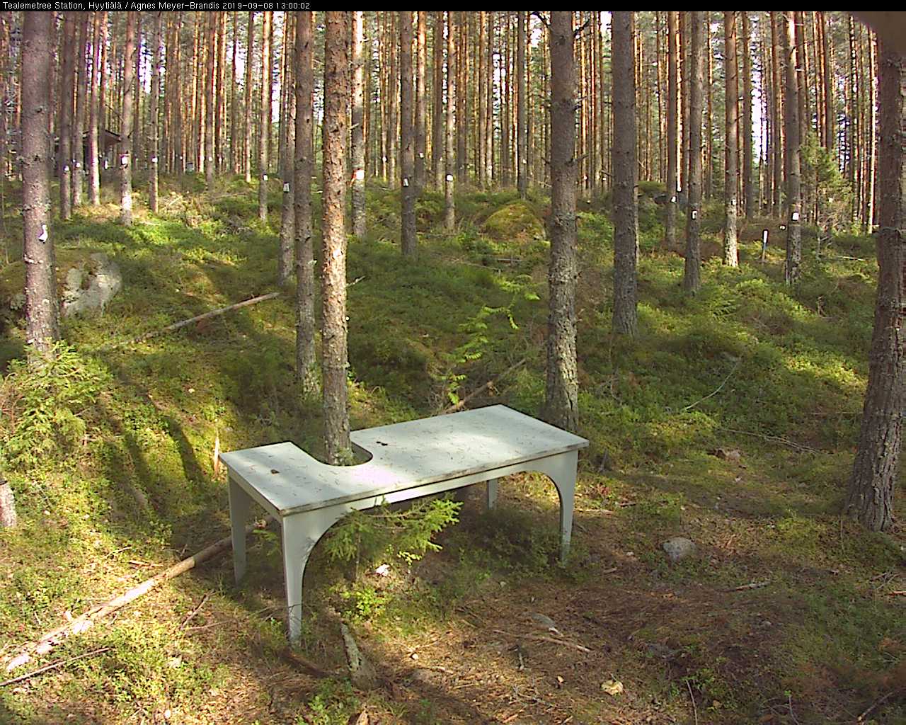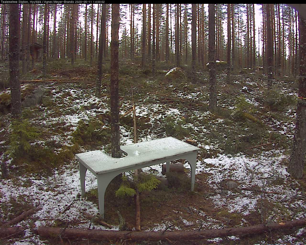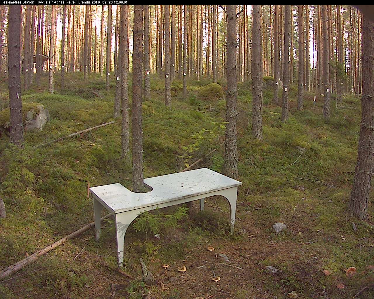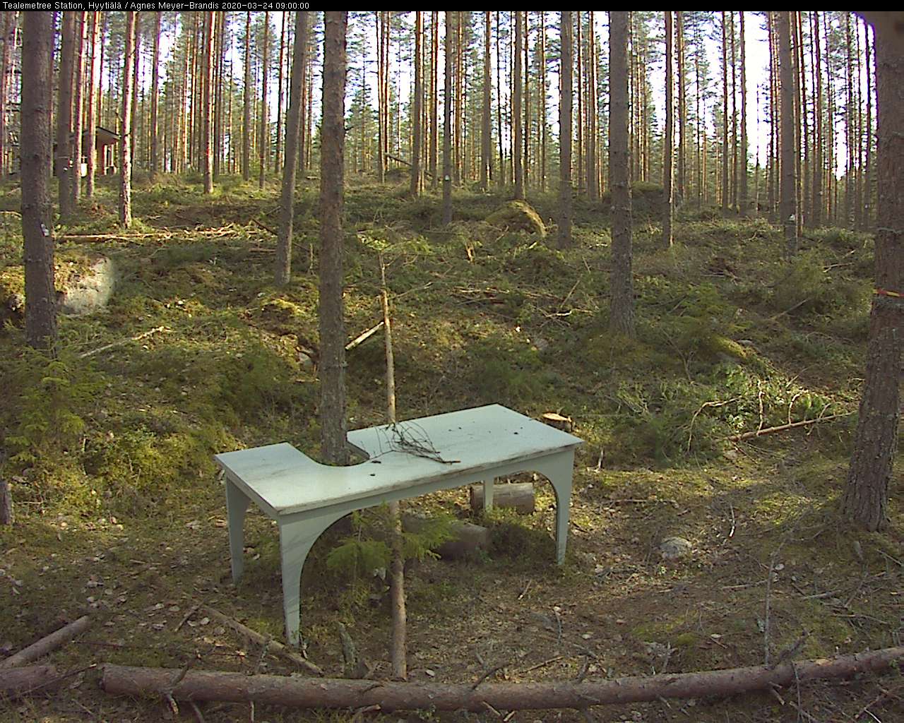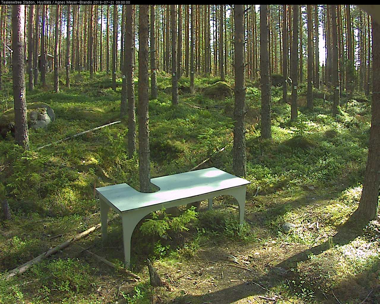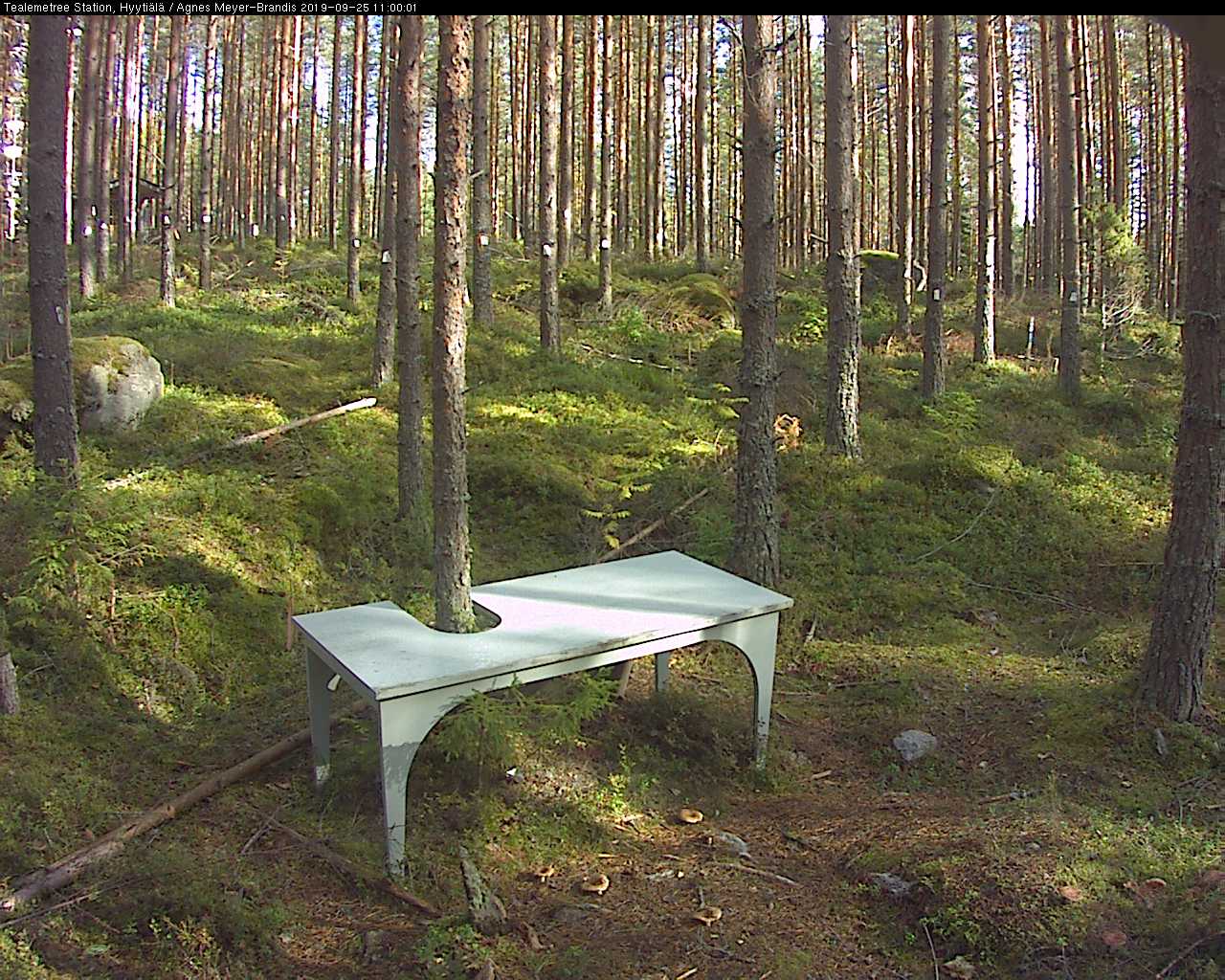 Agnes Meyer-Brandiksen työ Hyytiälässä alkoi tutustumalla aseman muihin tutkijoihin. Pystyäkseen tapaamaan ihmisiä metsässä, hän rakensi pöydän, josta muodostui kohtauspiste ja paikka teehetkille Agneksen ja puun kanssa.
