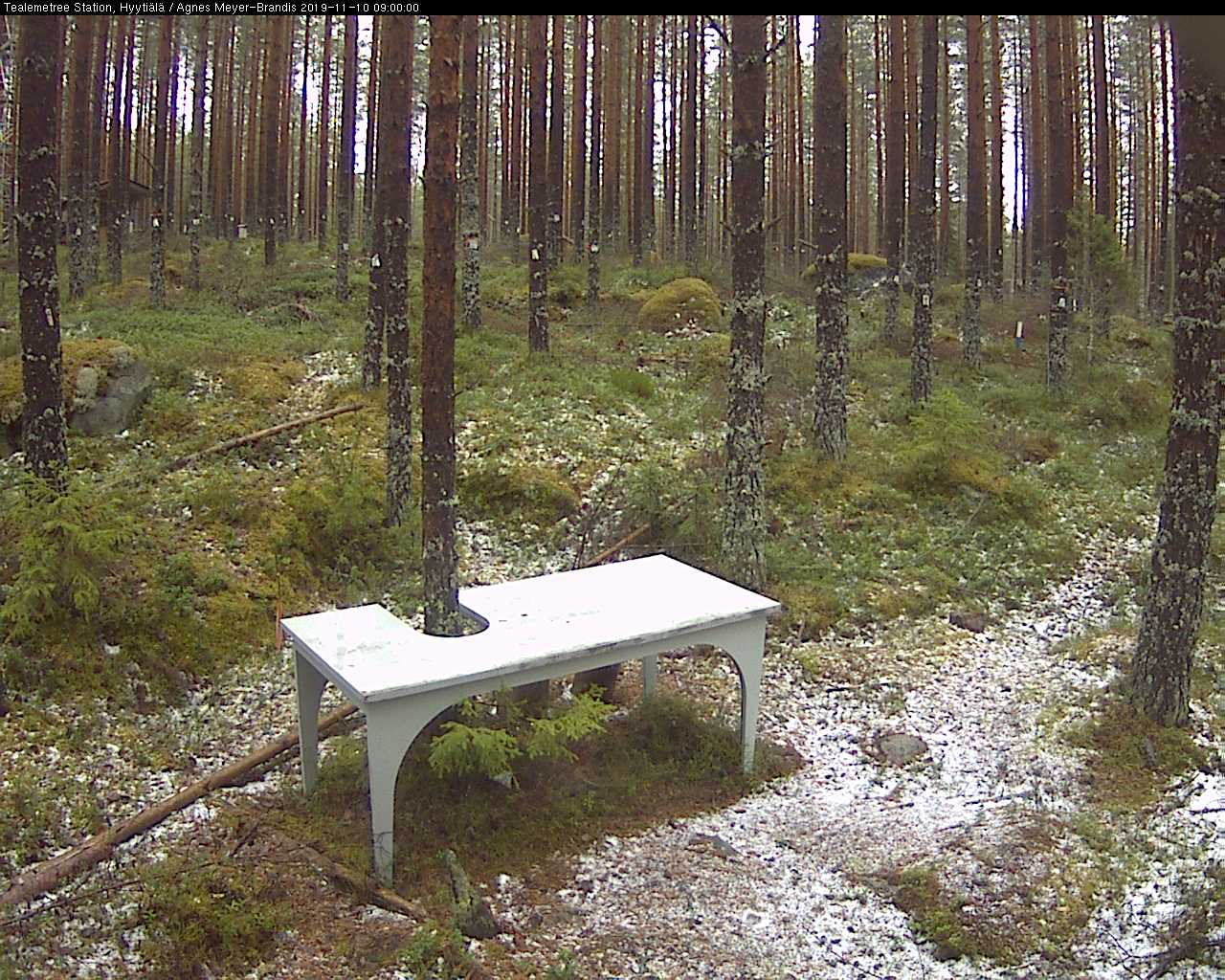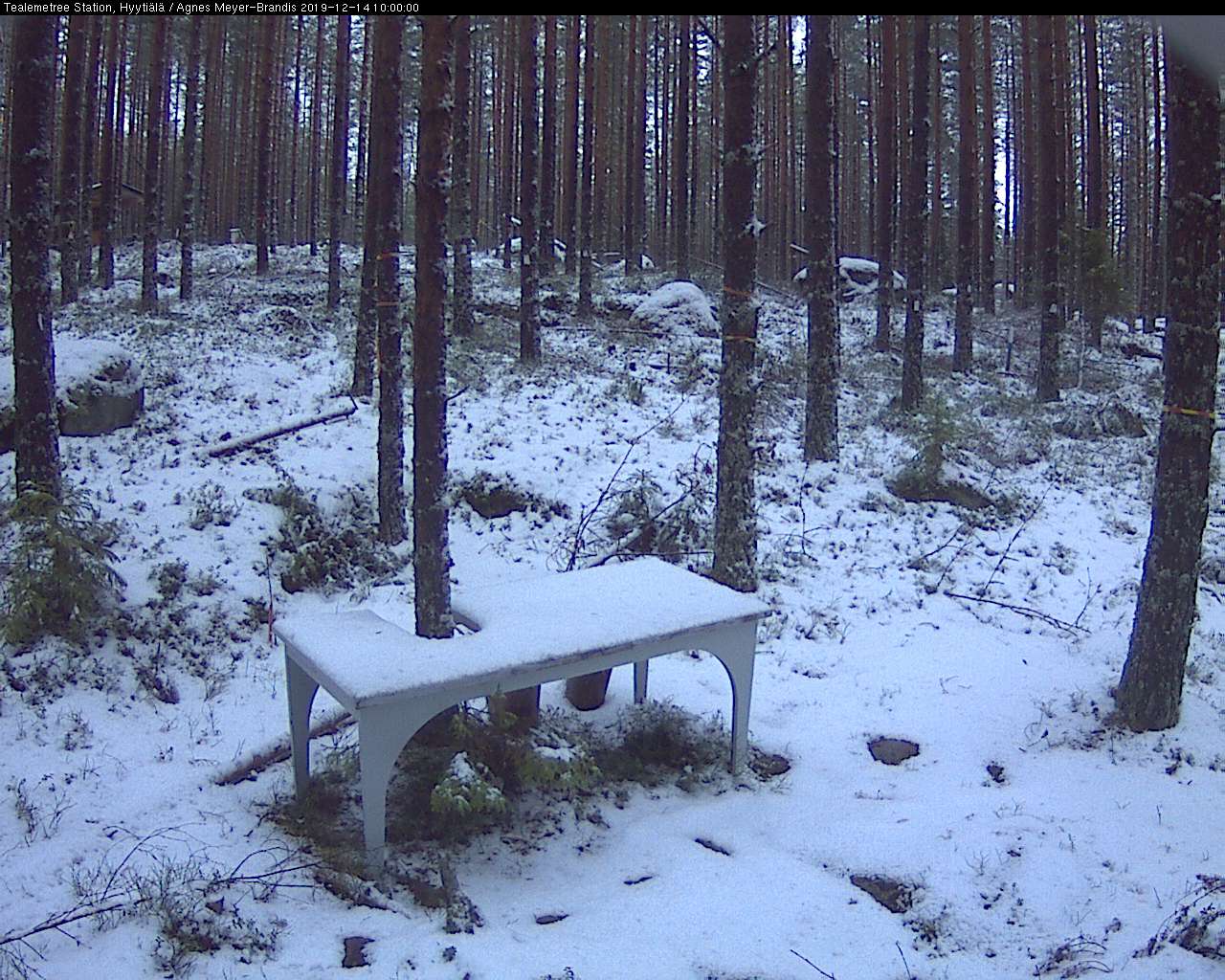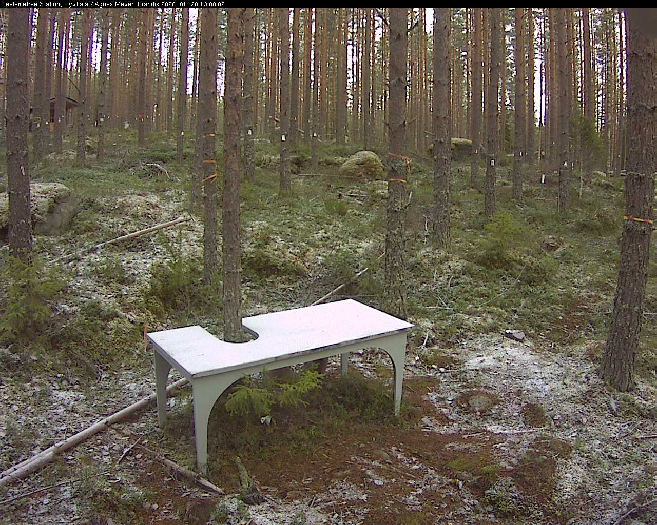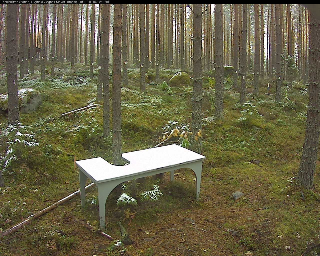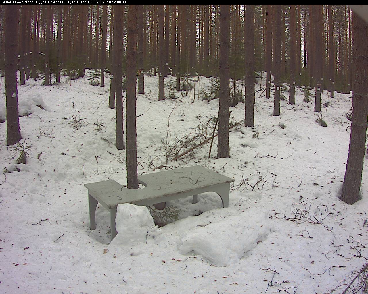 Agnes Meyer-Brandiksen työ Hyytiälässä alkoi tutustumalla aseman muihin tutkijoihin. Pystyäkseen tapaamaan ihmisiä metsässä, hän rakensi pöydän, josta muodostui kohtauspiste ja paikka teehetkille Agneksen ja puun kanssa.