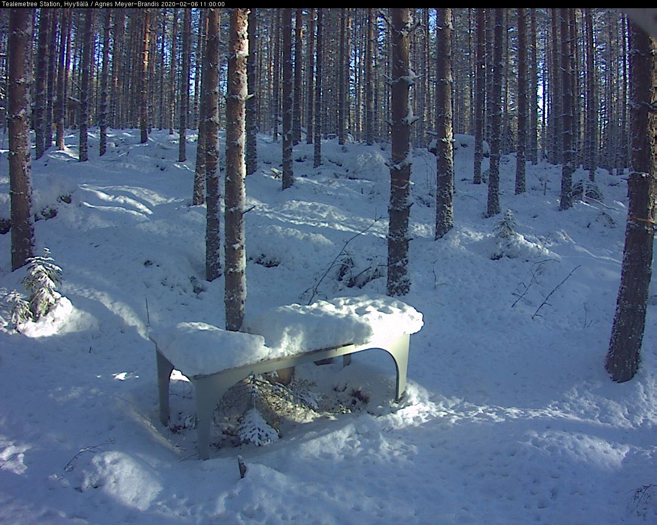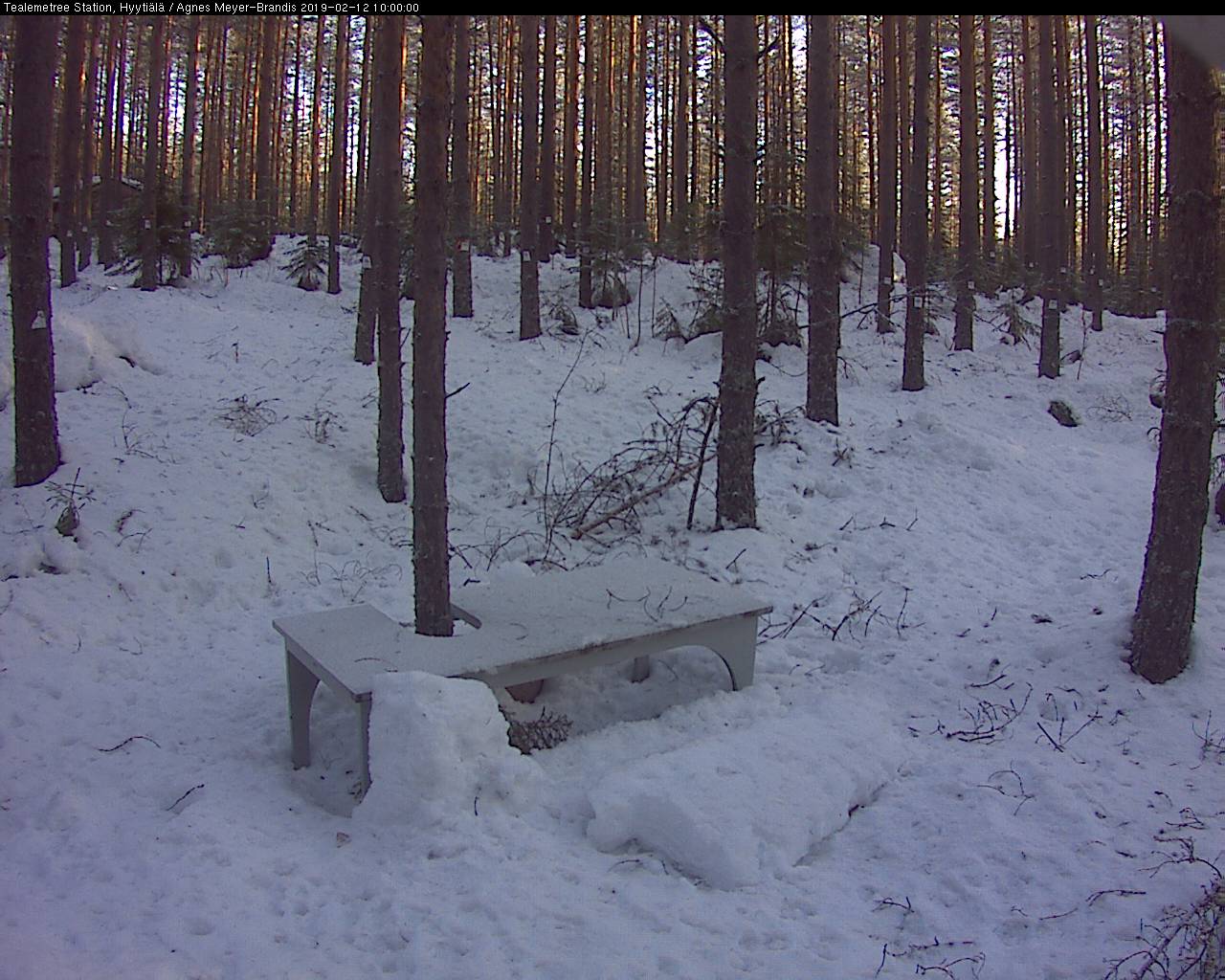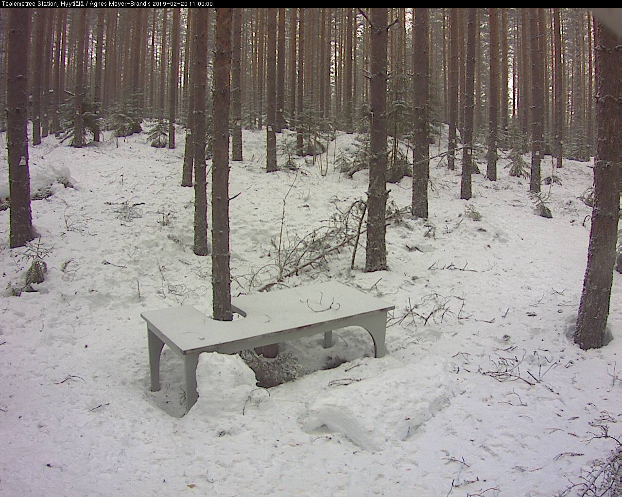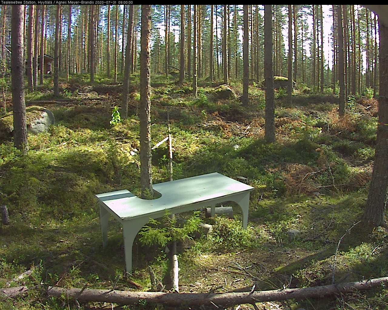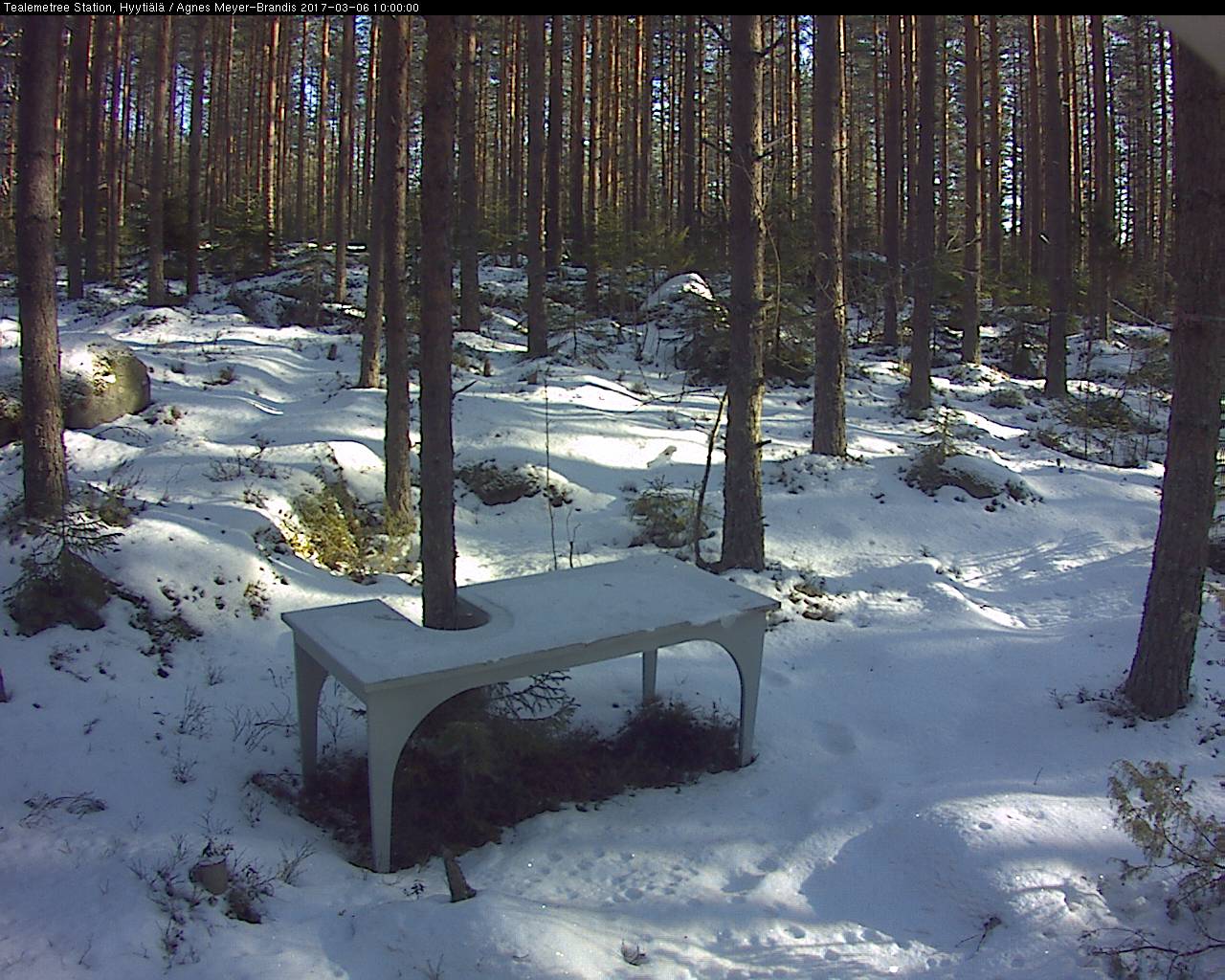 Agnes Meyer-Brandiksen työ Hyytiälässä alkoi tutustumalla aseman muihin tutkijoihin. Pystyäkseen tapaamaan ihmisiä metsässä, hän rakensi pöydän, josta muodostui kohtauspiste ja paikka teehetkille Agneksen ja puun kanssa.