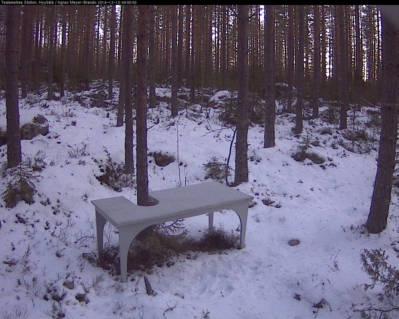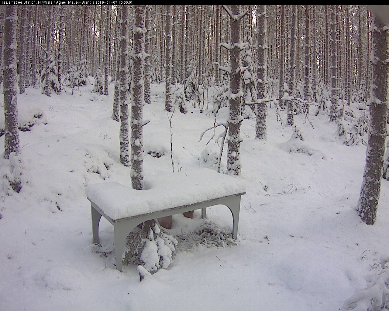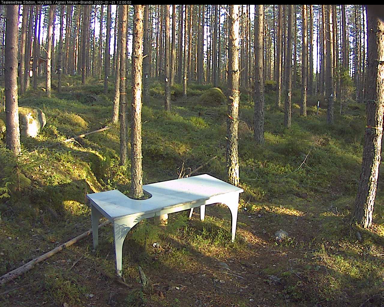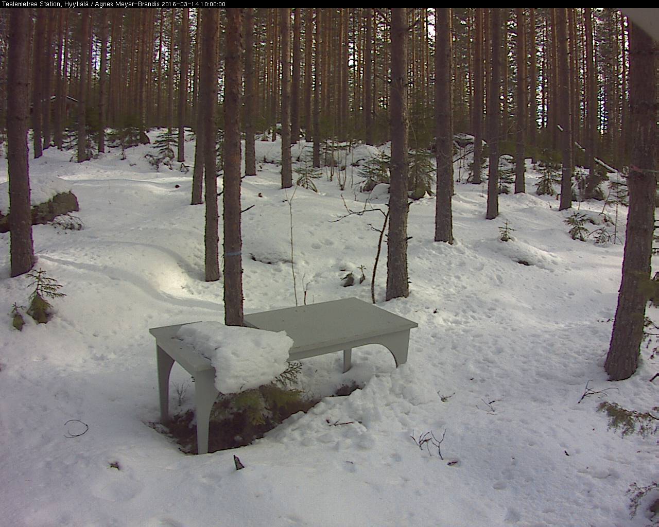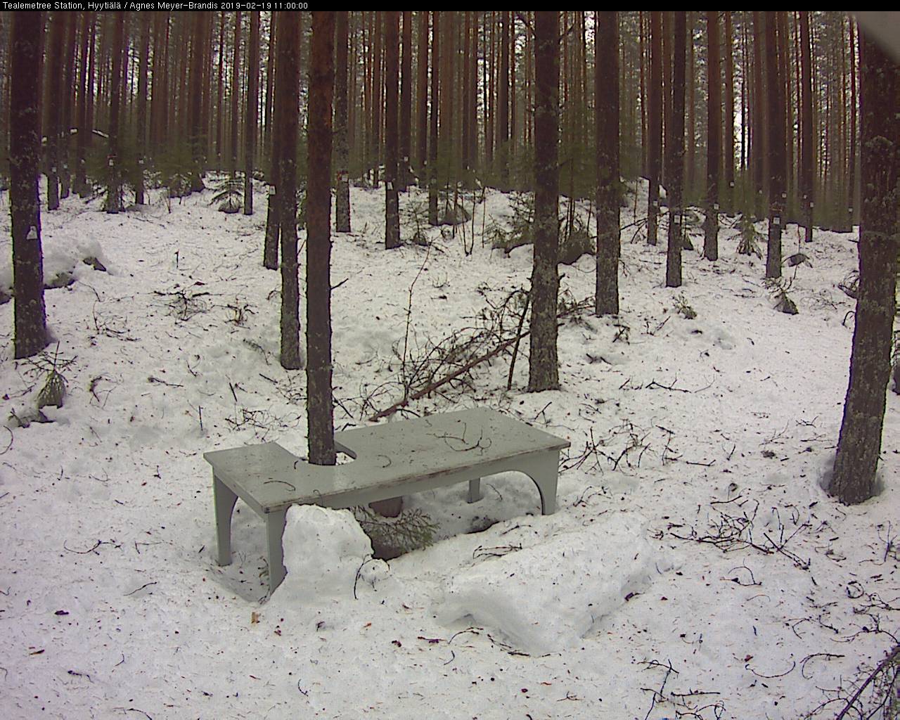 Agnes Meyer-Brandiksen työ Hyytiälässä alkoi tutustumalla aseman muihin tutkijoihin. Pystyäkseen tapaamaan ihmisiä metsässä, hän rakensi pöydän, josta muodostui kohtauspiste ja paikka teehetkille Agneksen ja puun kanssa.