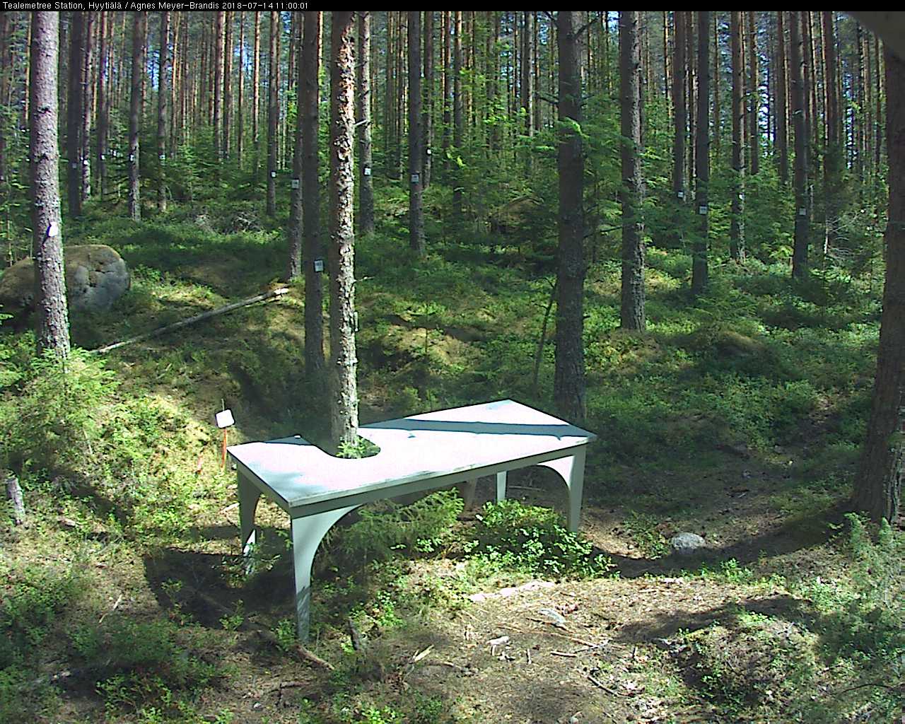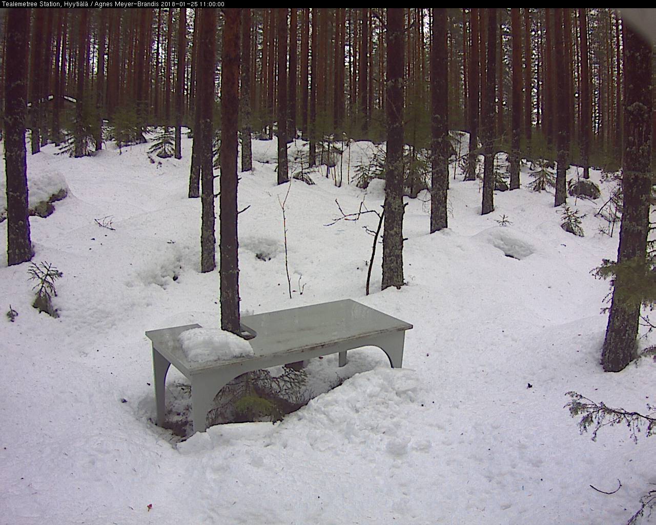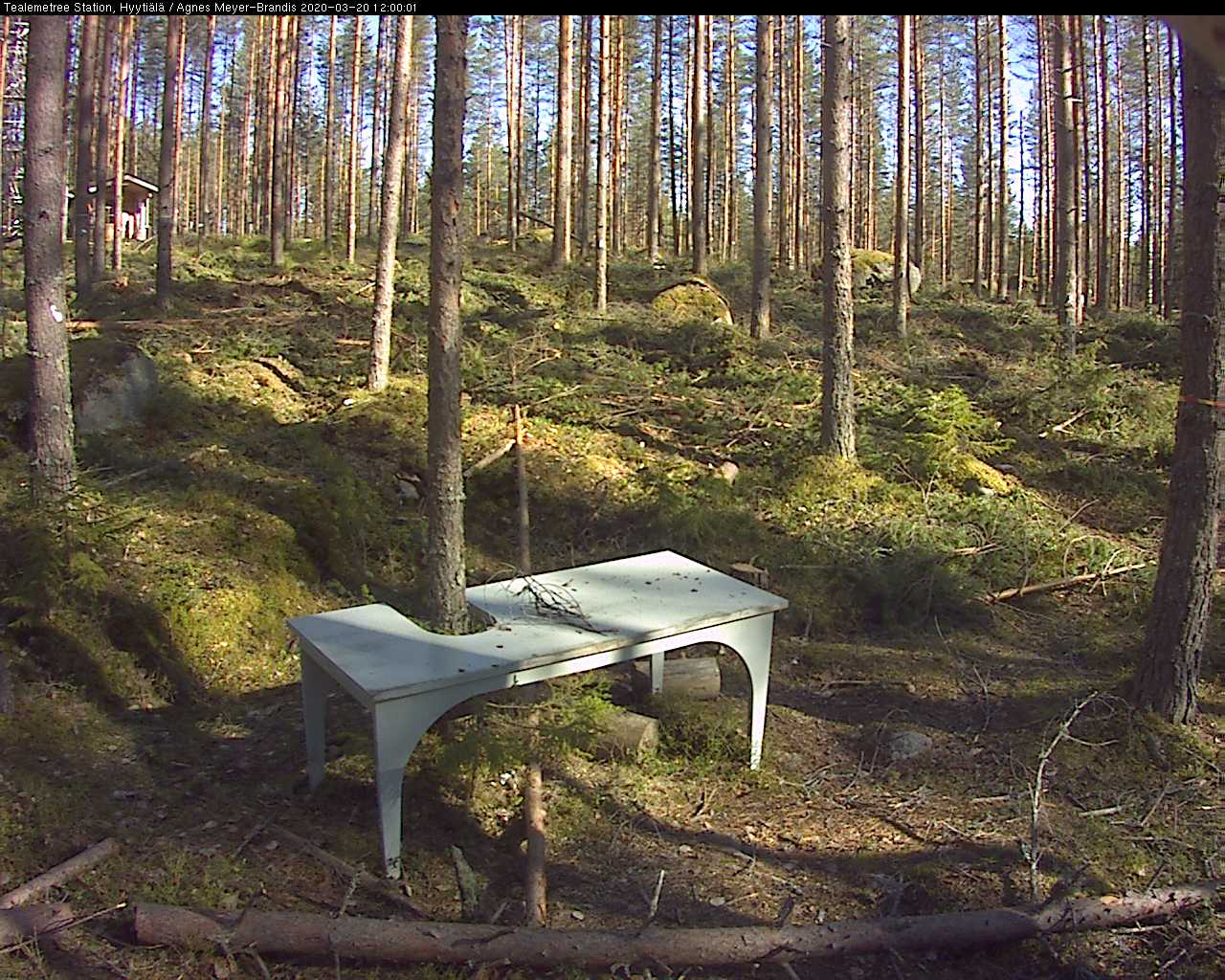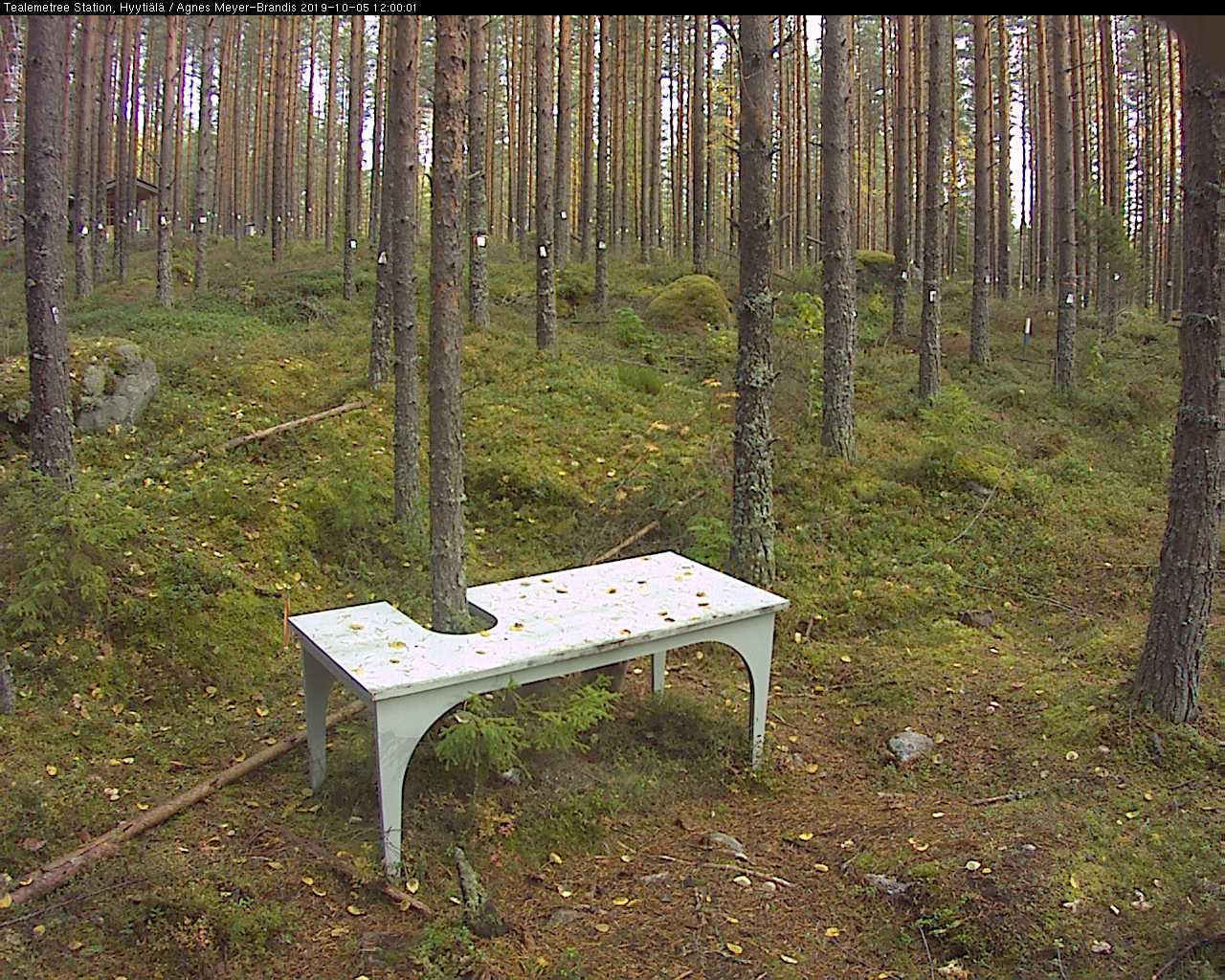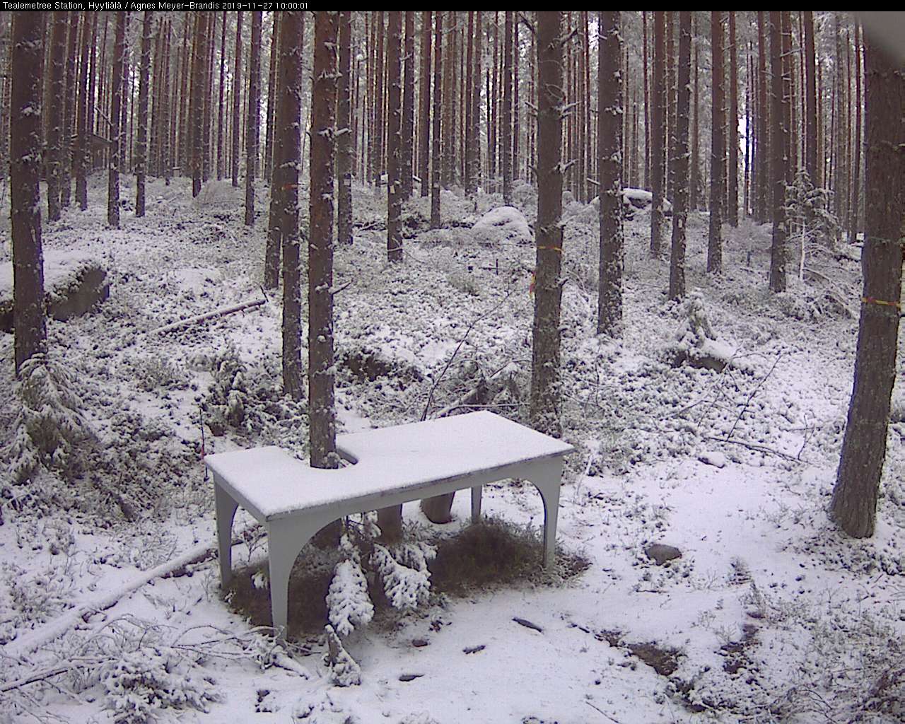 Agnes Meyer-Brandiksen työ Hyytiälässä alkoi tutustumalla aseman muihin tutkijoihin. Pystyäkseen tapaamaan ihmisiä metsässä, hän rakensi pöydän, josta muodostui kohtauspiste ja paikka teehetkille Agneksen ja puun kanssa.