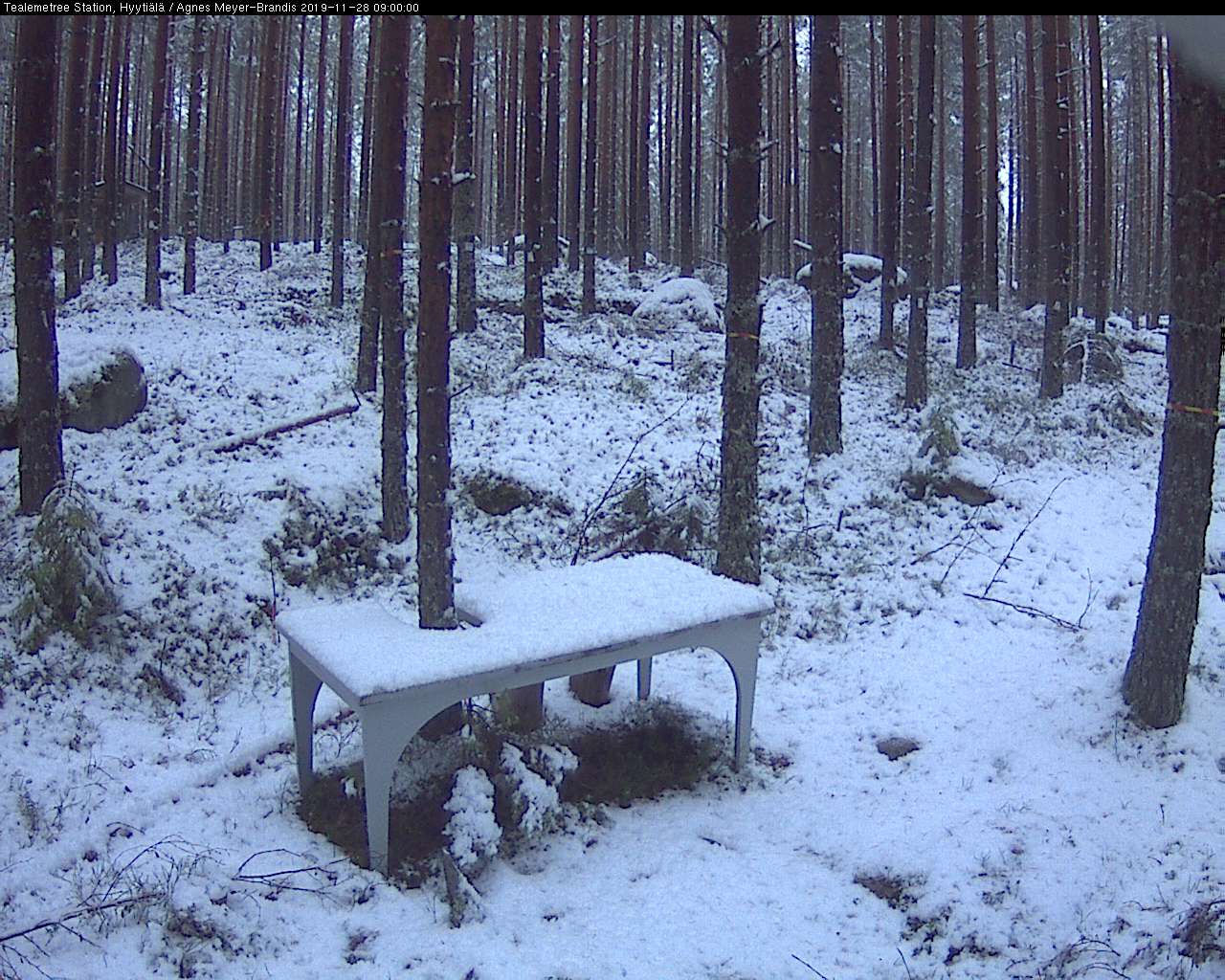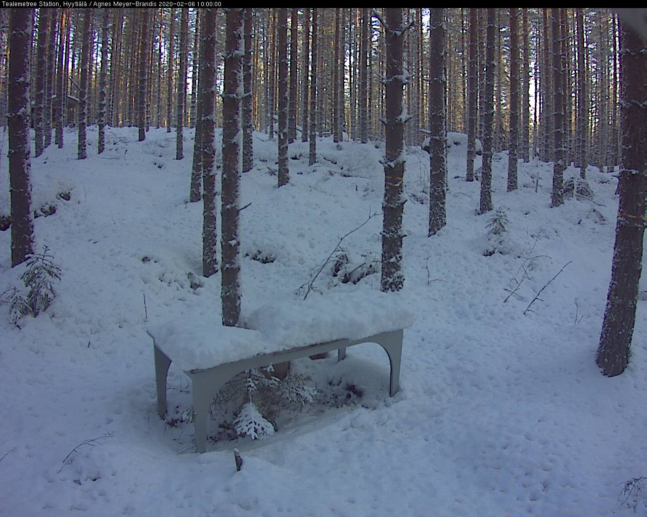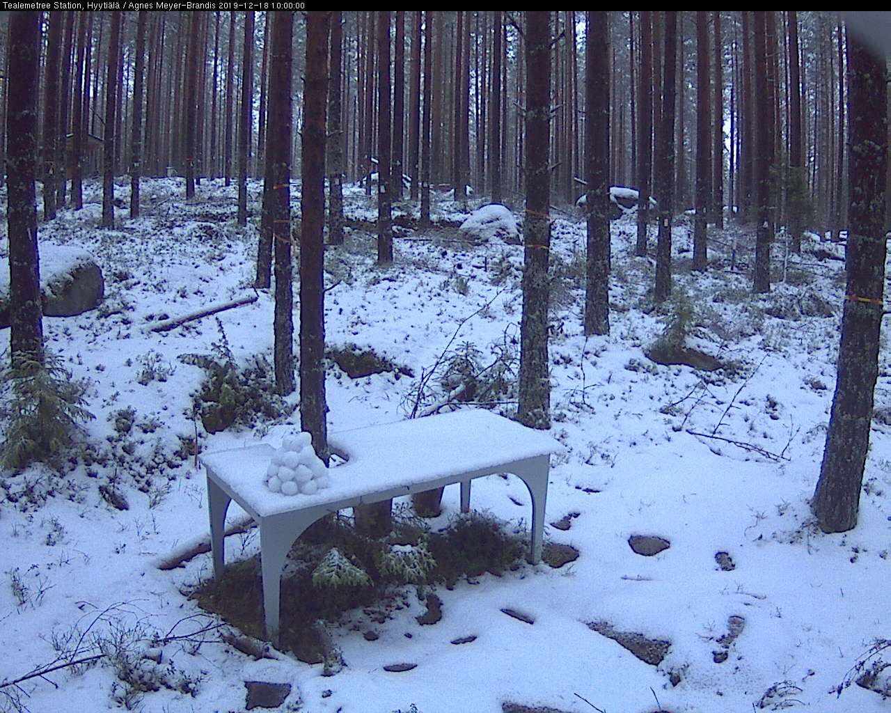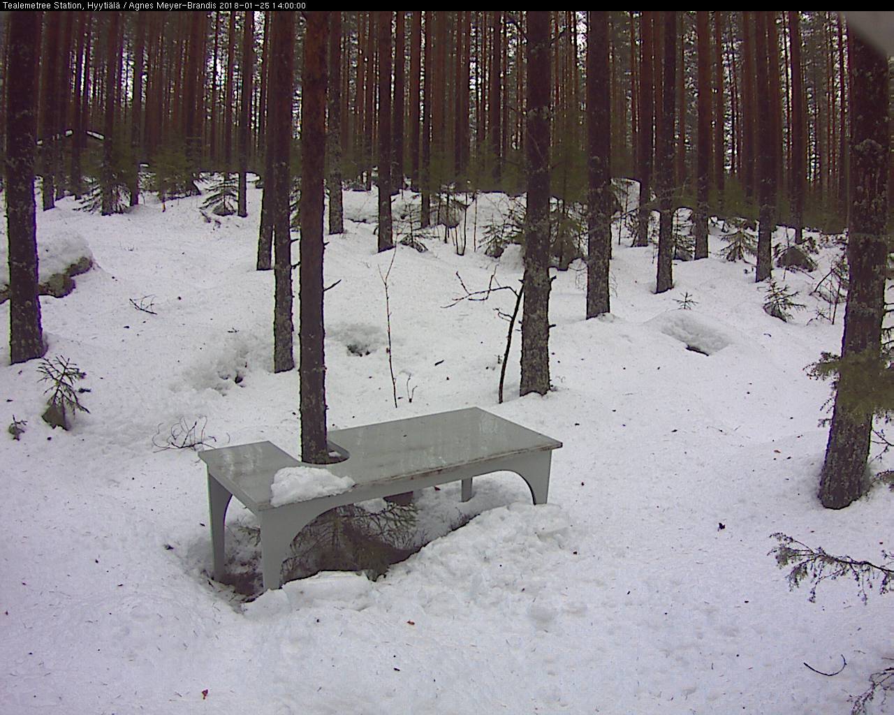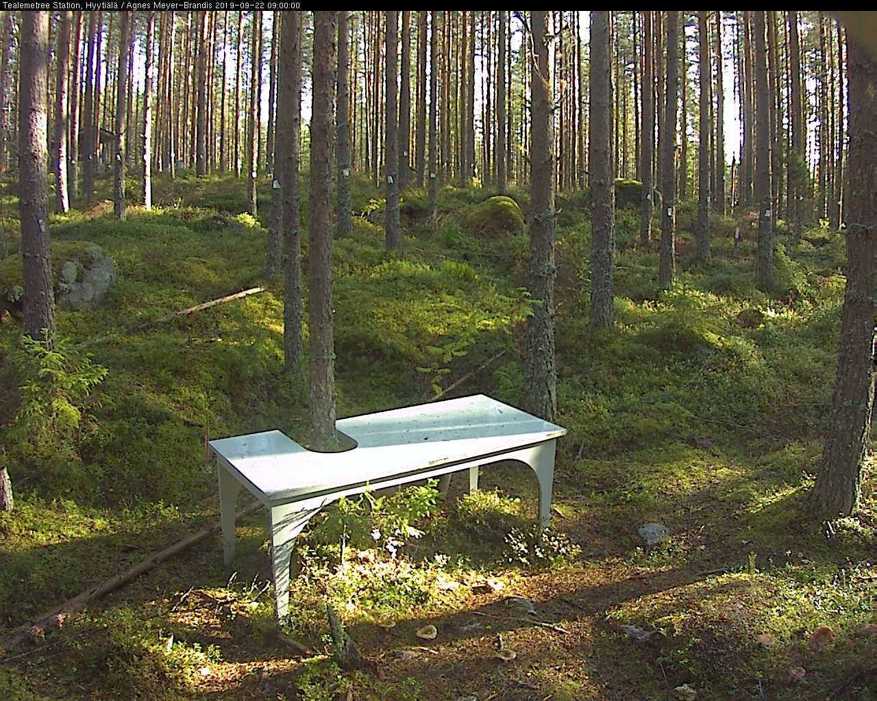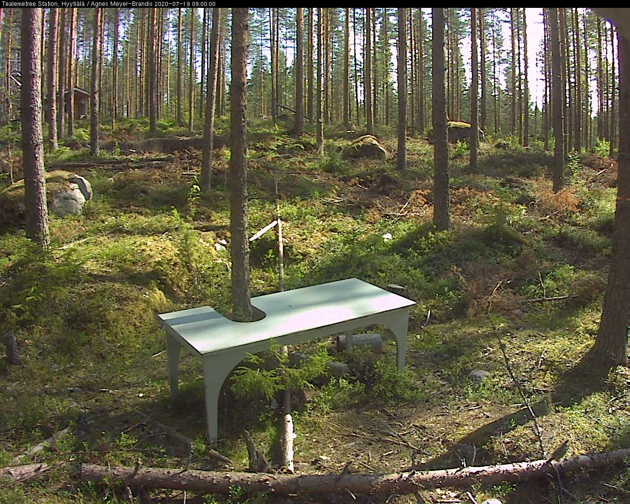 Agnes Meyer-Brandiksen työ Hyytiälässä alkoi tutustumalla aseman muihin tutkijoihin. Pystyäkseen tapaamaan ihmisiä metsässä, hän rakensi pöydän, josta muodostui kohtauspiste ja paikka teehetkille Agneksen ja puun kanssa.