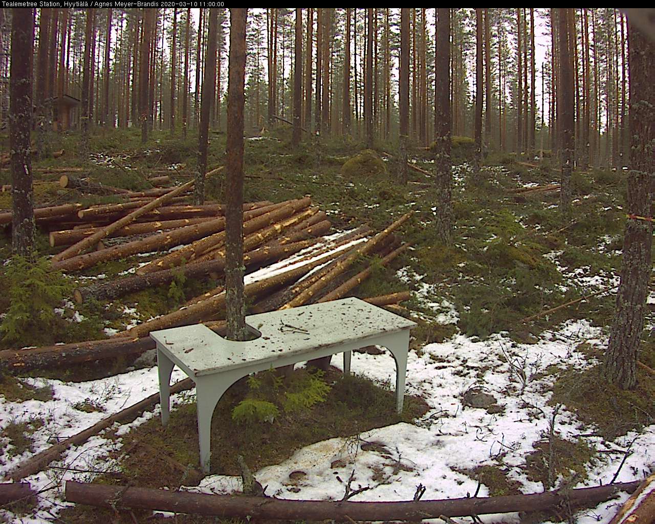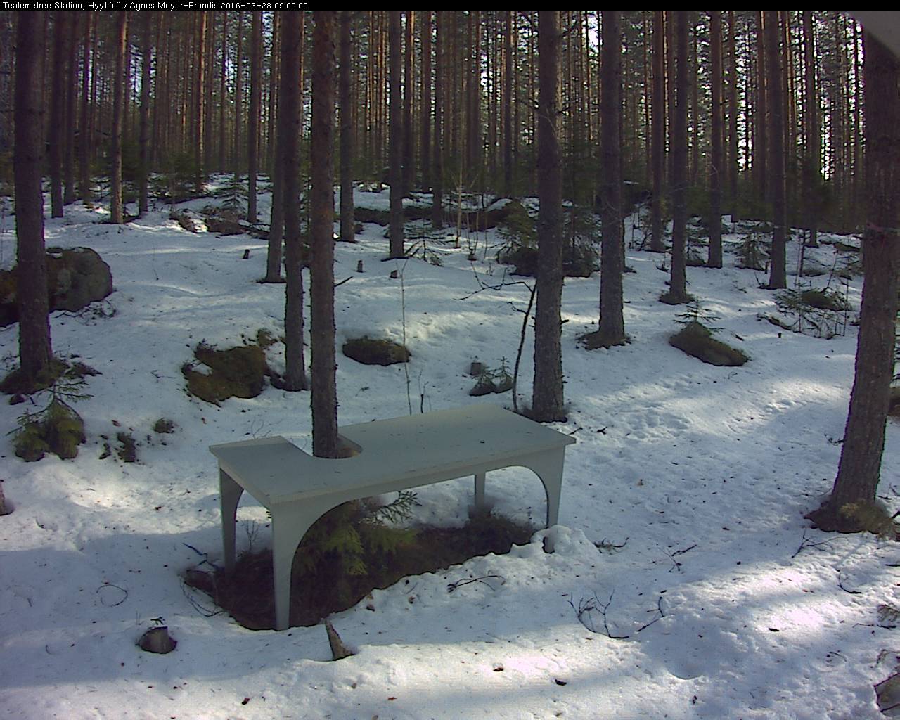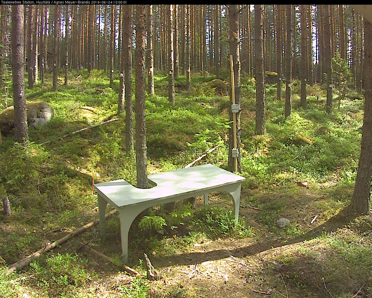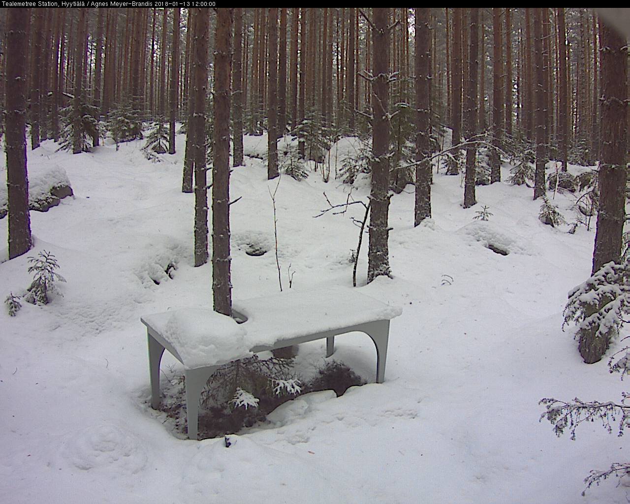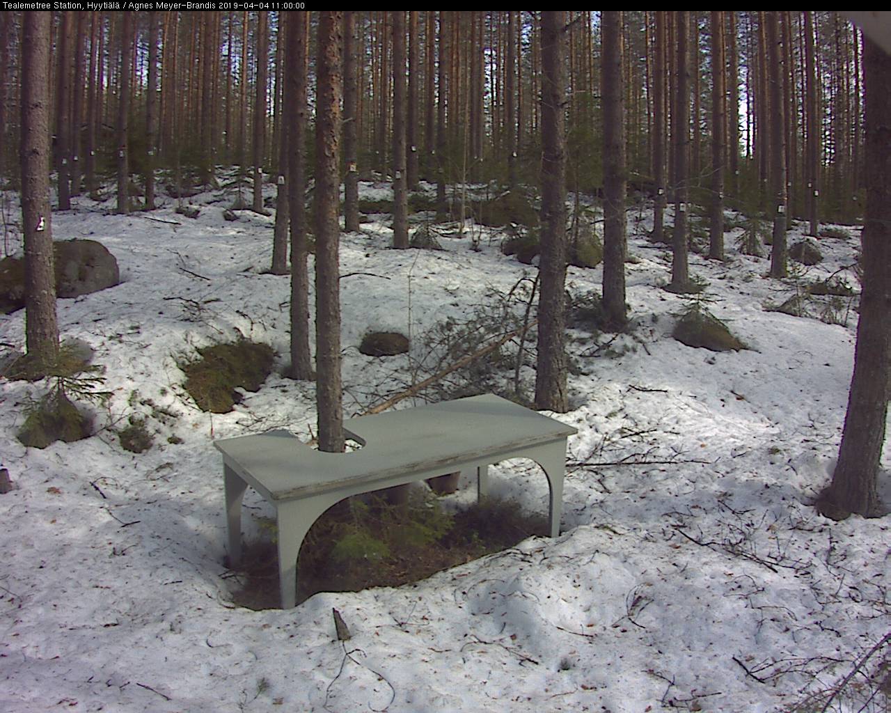 Agnes Meyer-Brandiksen työ Hyytiälässä alkoi tutustumalla aseman muihin tutkijoihin. Pystyäkseen tapaamaan ihmisiä metsässä, hän rakensi pöydän, josta muodostui kohtauspiste ja paikka teehetkille Agneksen ja puun kanssa.