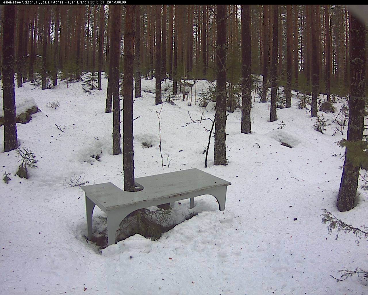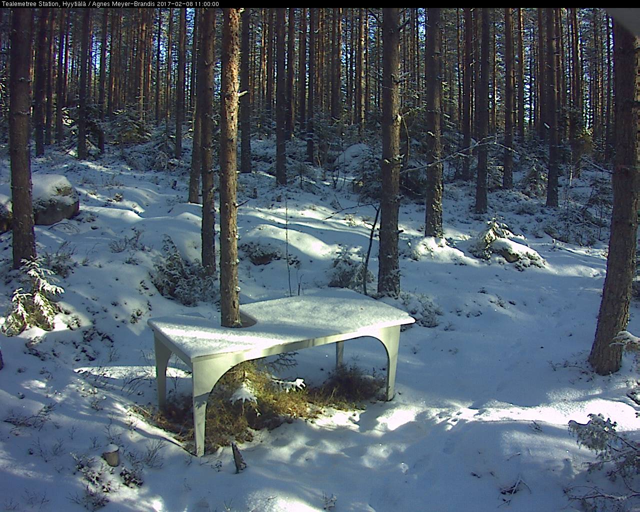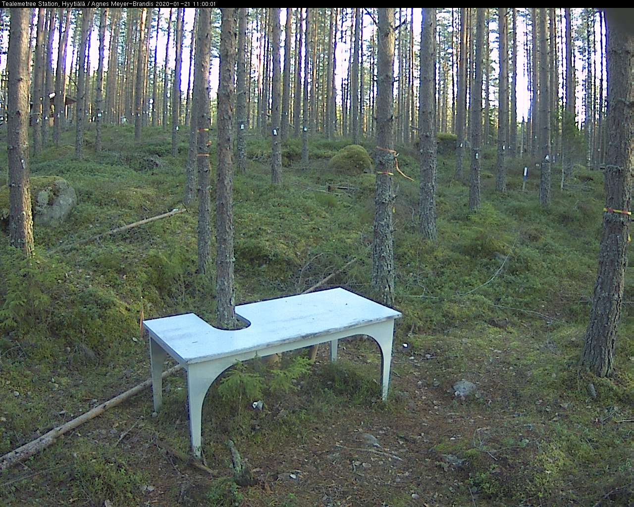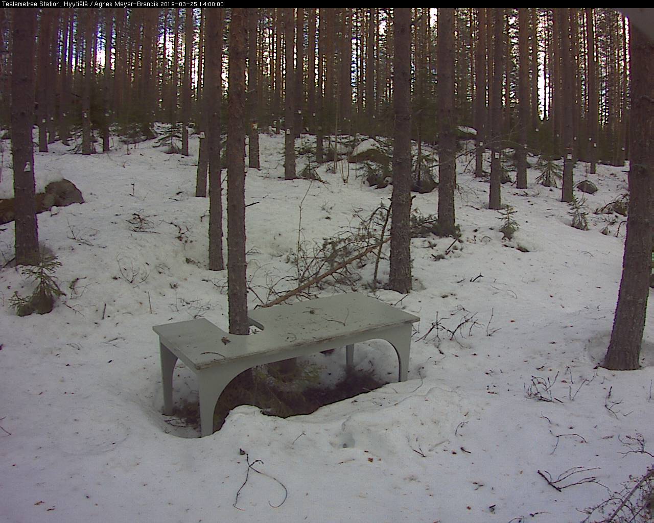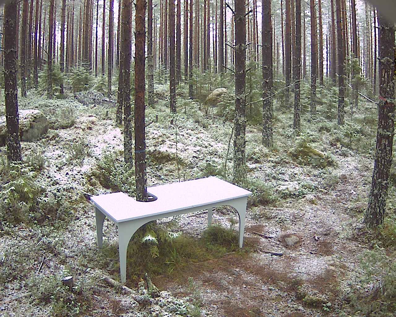 Agnes Meyer-Brandiksen työ Hyytiälässä alkoi tutustumalla aseman muihin tutkijoihin. Pystyäkseen tapaamaan ihmisiä metsässä, hän rakensi pöydän, josta muodostui kohtauspiste ja paikka teehetkille Agneksen ja puun kanssa.