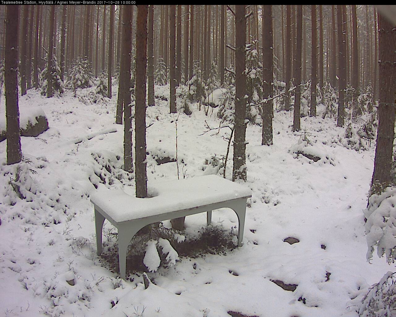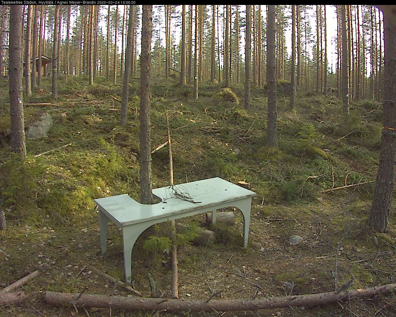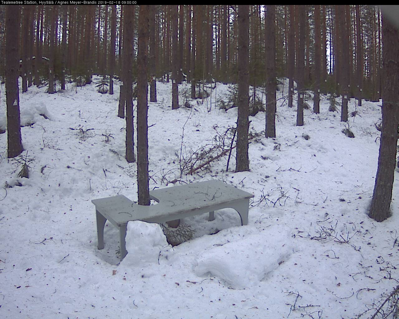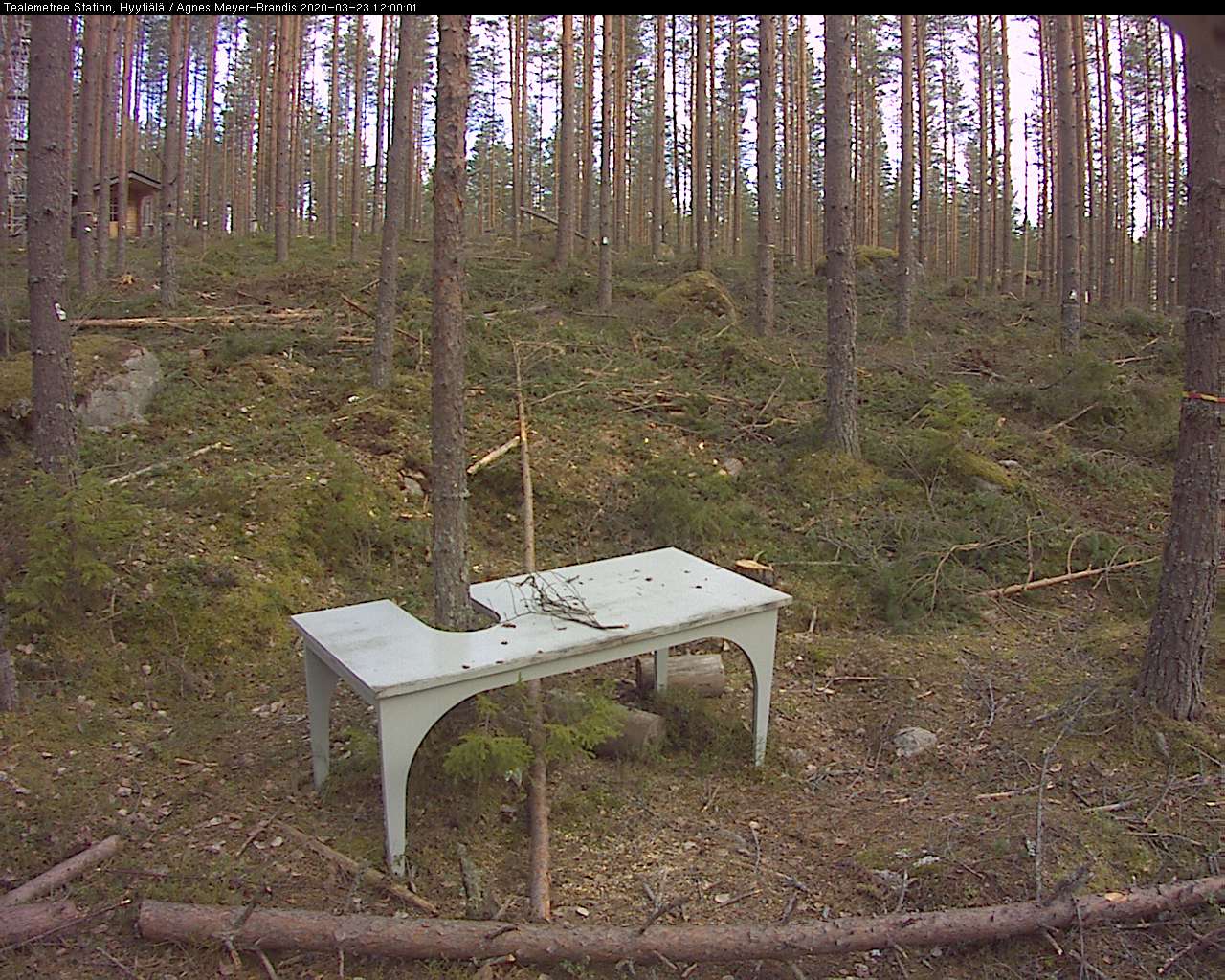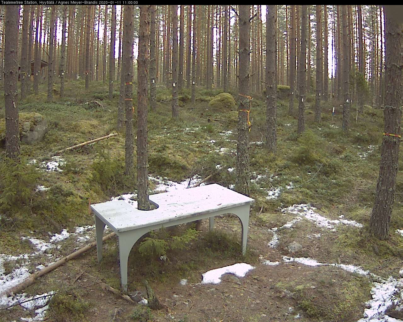 Agnes Meyer-Brandiksen työ Hyytiälässä alkoi tutustumalla aseman muihin tutkijoihin. Pystyäkseen tapaamaan ihmisiä metsässä, hän rakensi pöydän, josta muodostui kohtauspiste ja paikka teehetkille Agneksen ja puun kanssa.