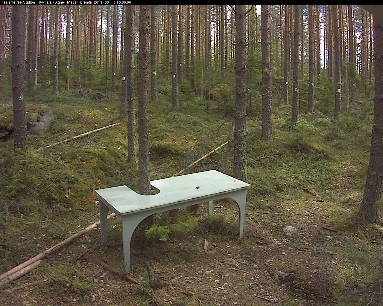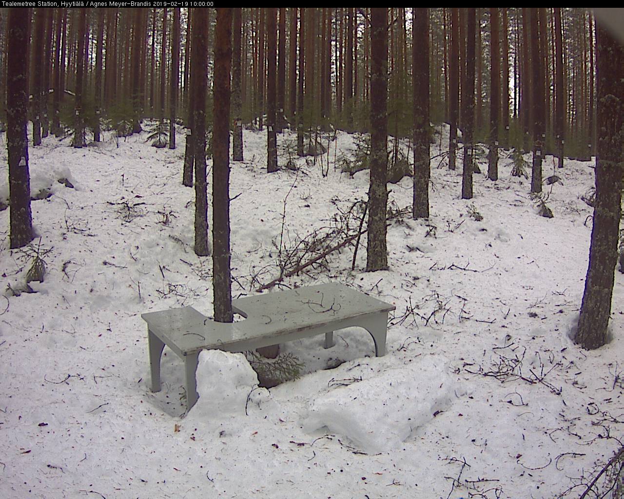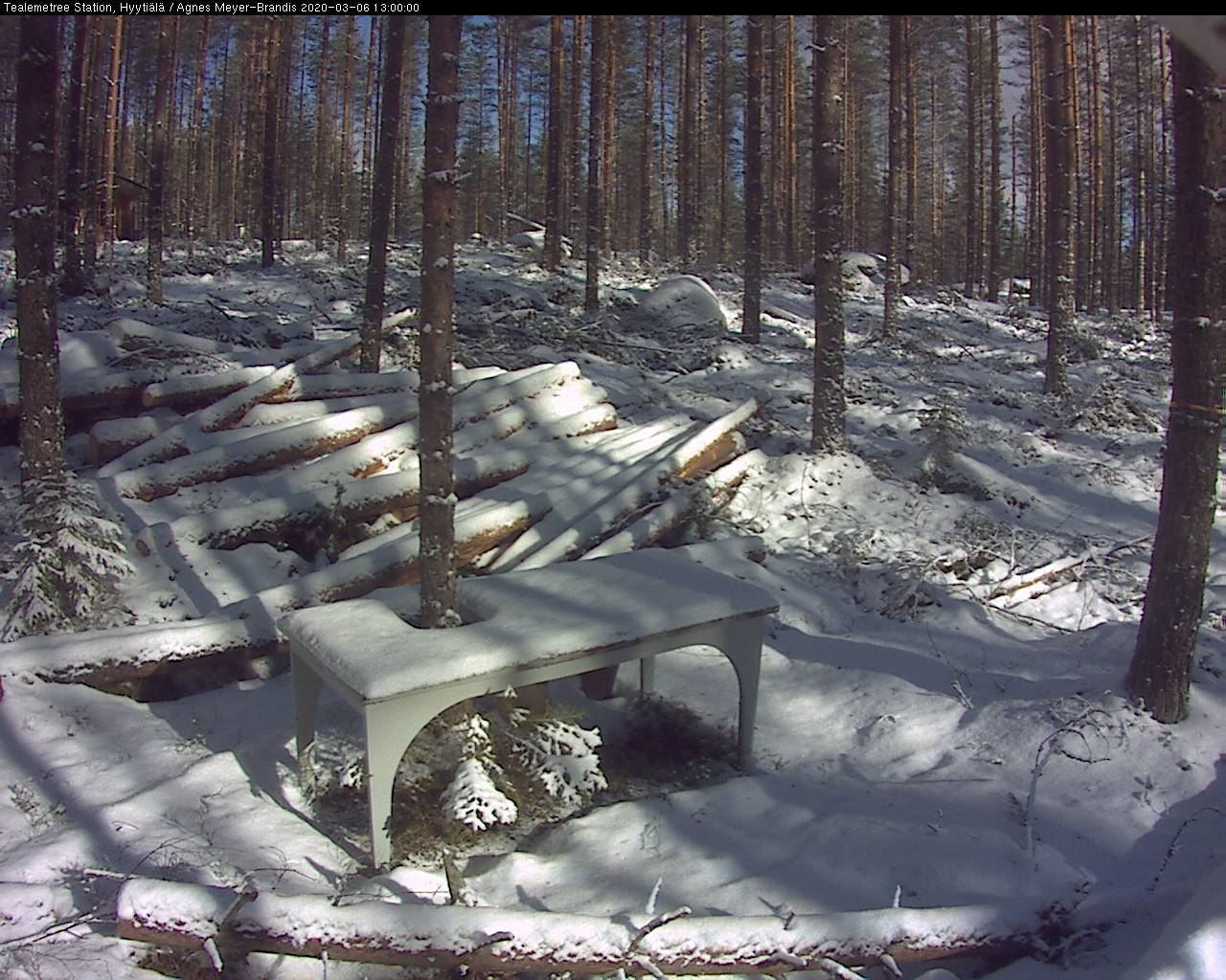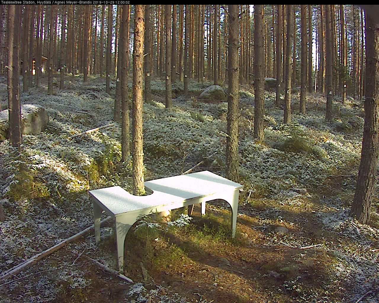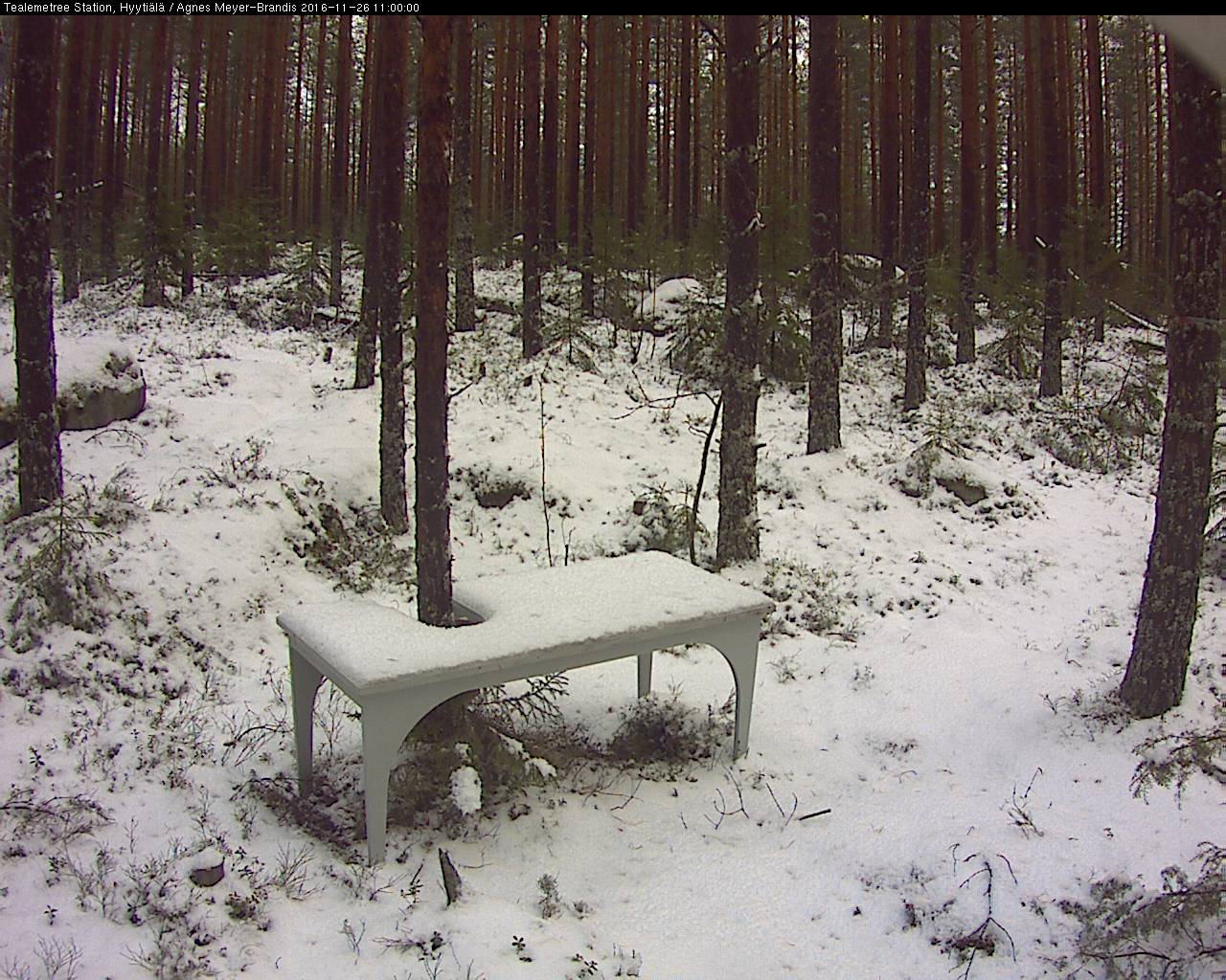 Agnes Meyer-Brandiksen työ Hyytiälässä alkoi tutustumalla aseman muihin tutkijoihin. Pystyäkseen tapaamaan ihmisiä metsässä, hän rakensi pöydän, josta muodostui kohtauspiste ja paikka teehetkille Agneksen ja puun kanssa.
