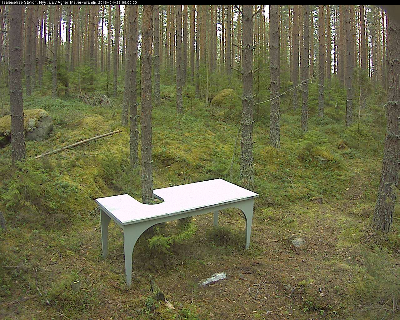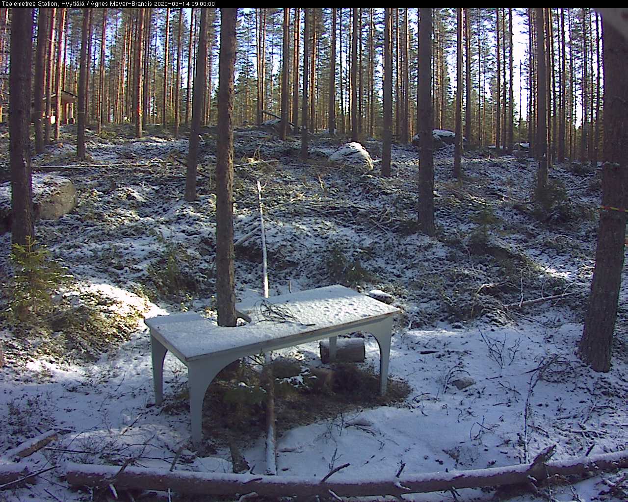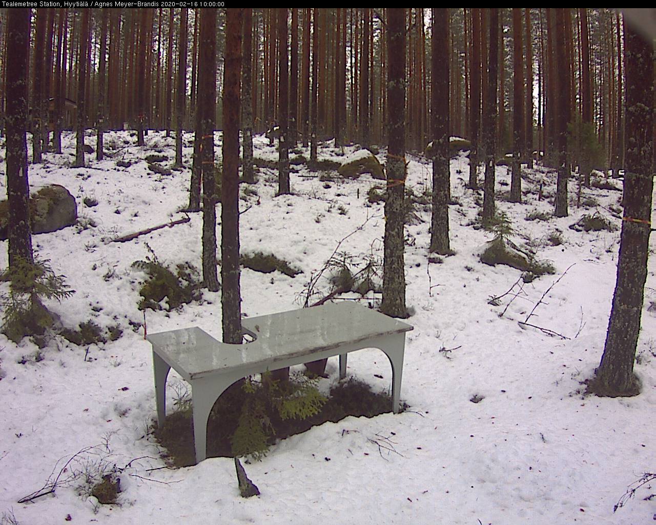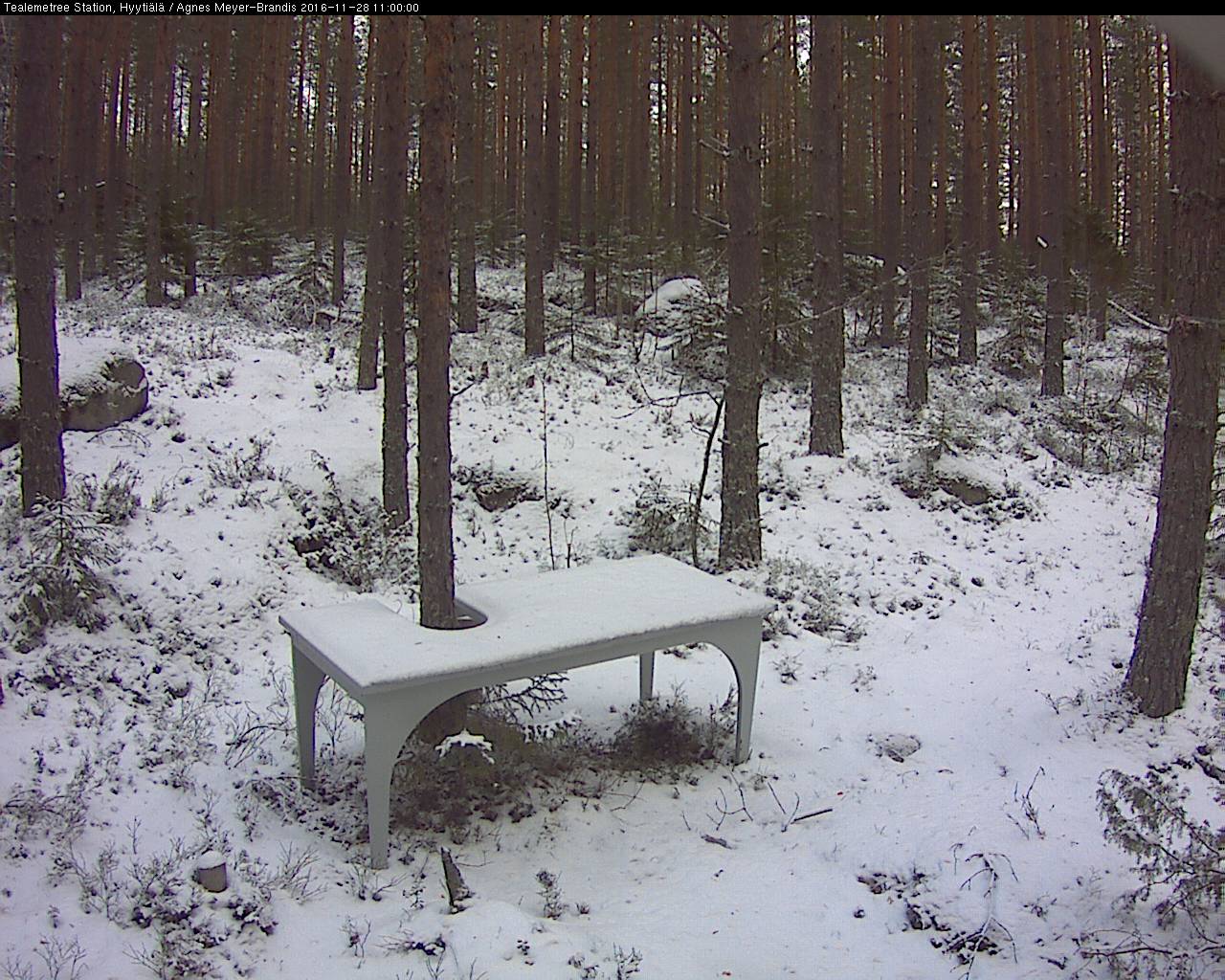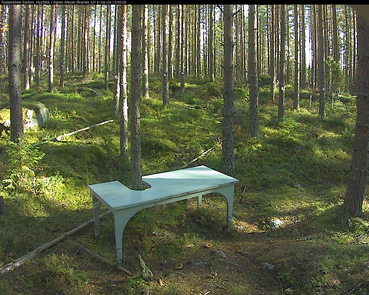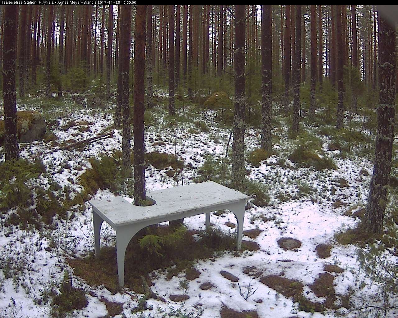 Agnes Meyer-Brandiksen työ Hyytiälässä alkoi tutustumalla aseman muihin tutkijoihin. Pystyäkseen tapaamaan ihmisiä metsässä, hän rakensi pöydän, josta muodostui kohtauspiste ja paikka teehetkille Agneksen ja puun kanssa.