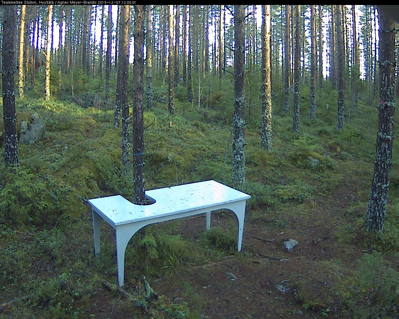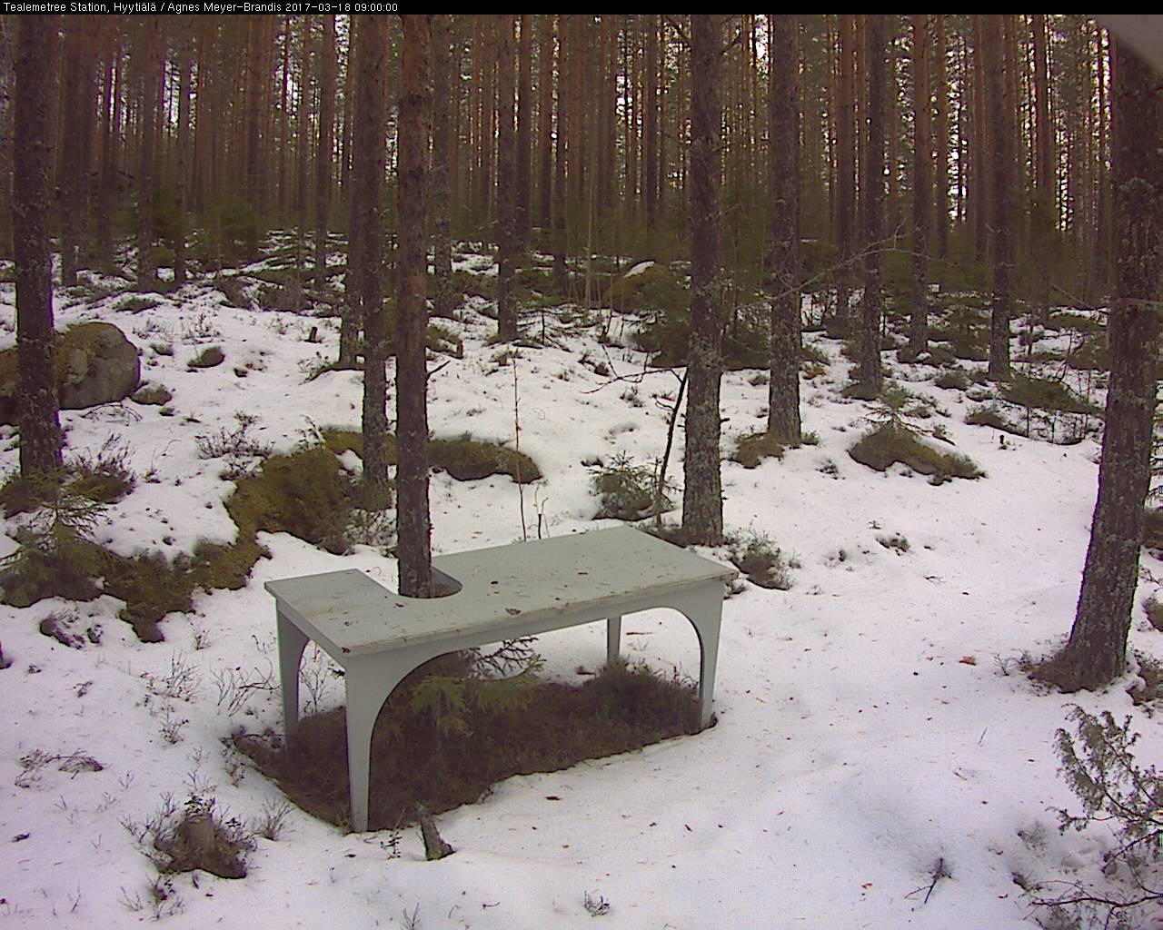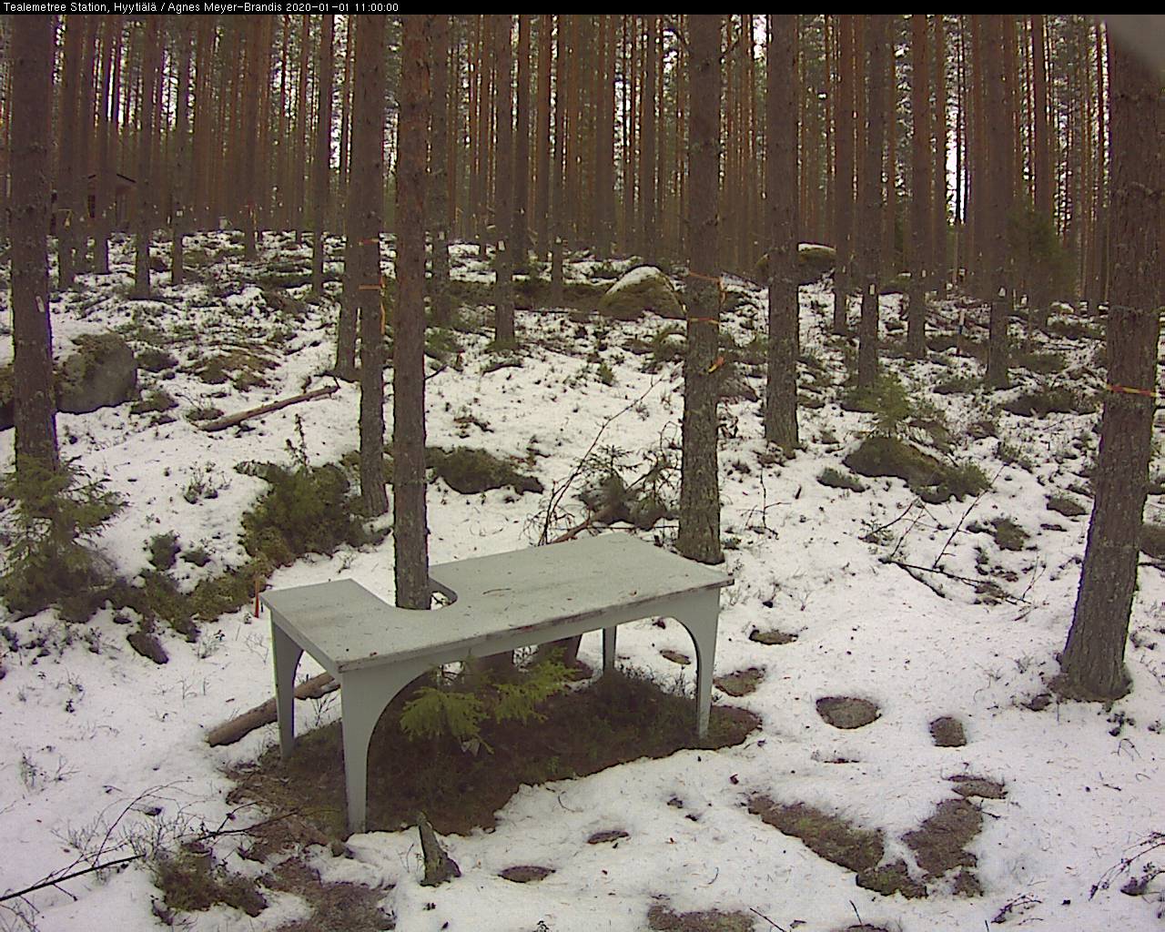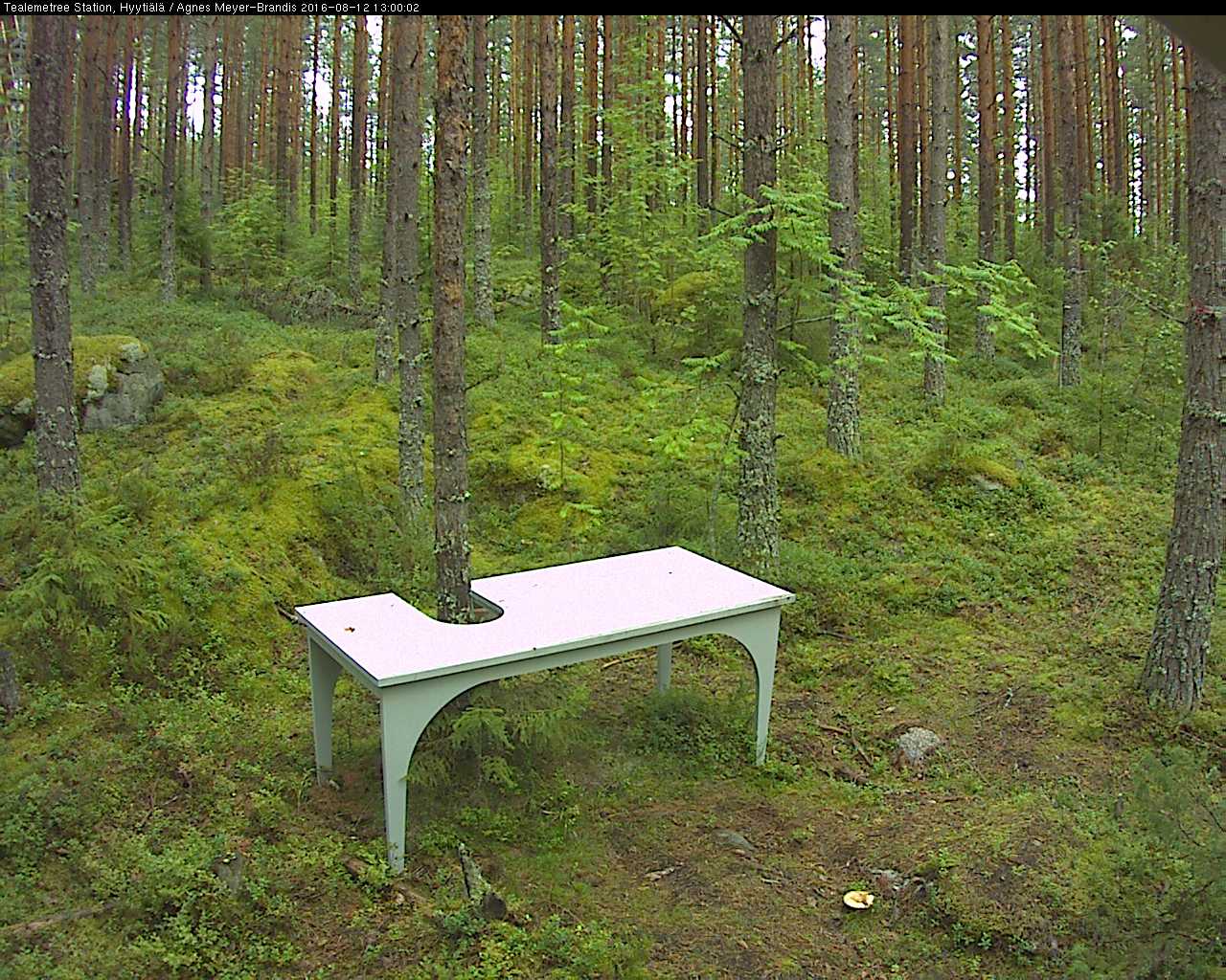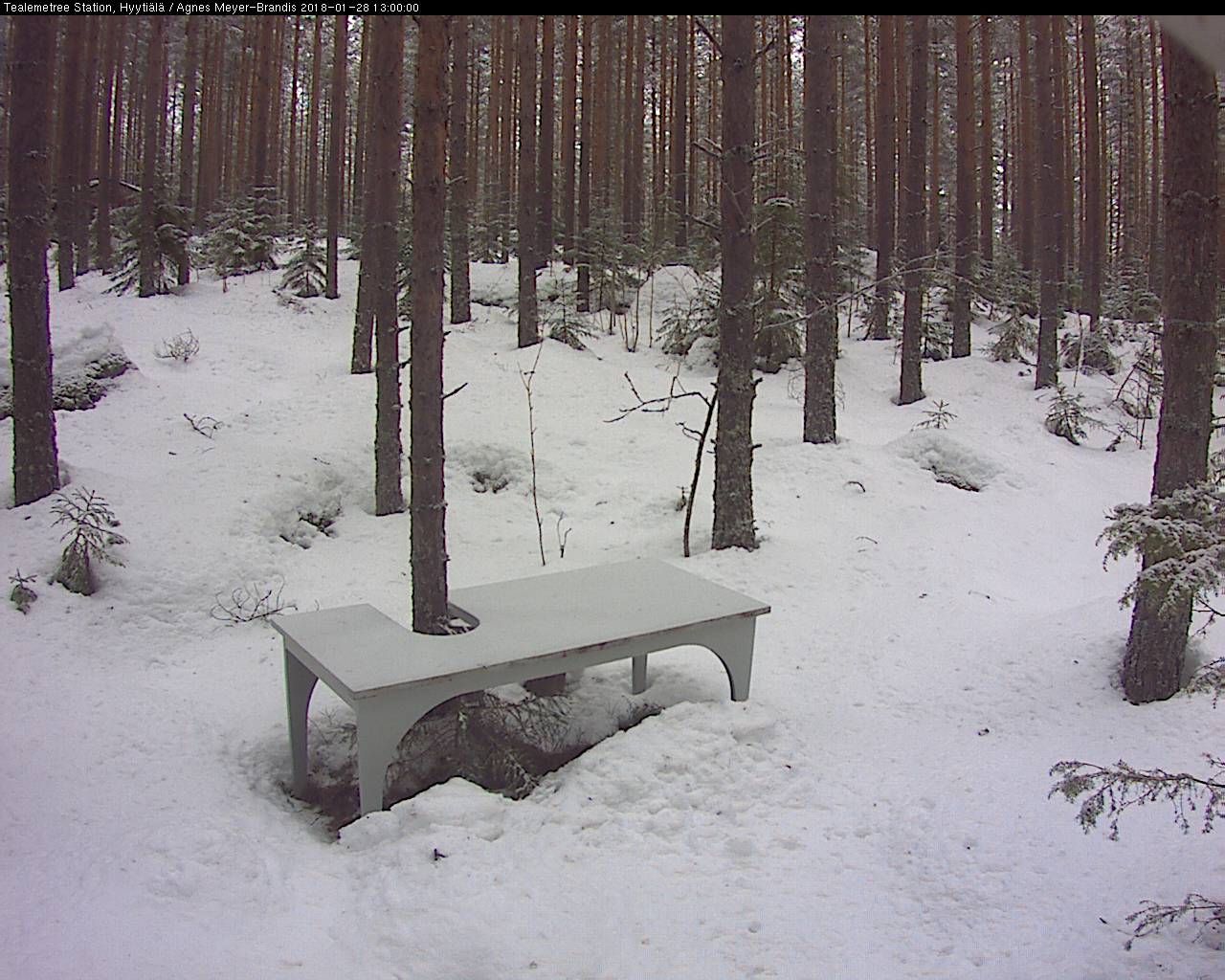Agnes Meyer-Brandiksen työ Hyytiälässä alkoi tutustumalla aseman muihin tutkijoihin. Pystyäkseen tapaamaan ihmisiä metsässä, hän rakensi pöydän, josta muodostui kohtauspiste ja paikka teehetkille Agneksen ja puun kanssa.