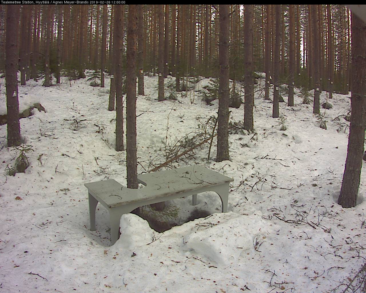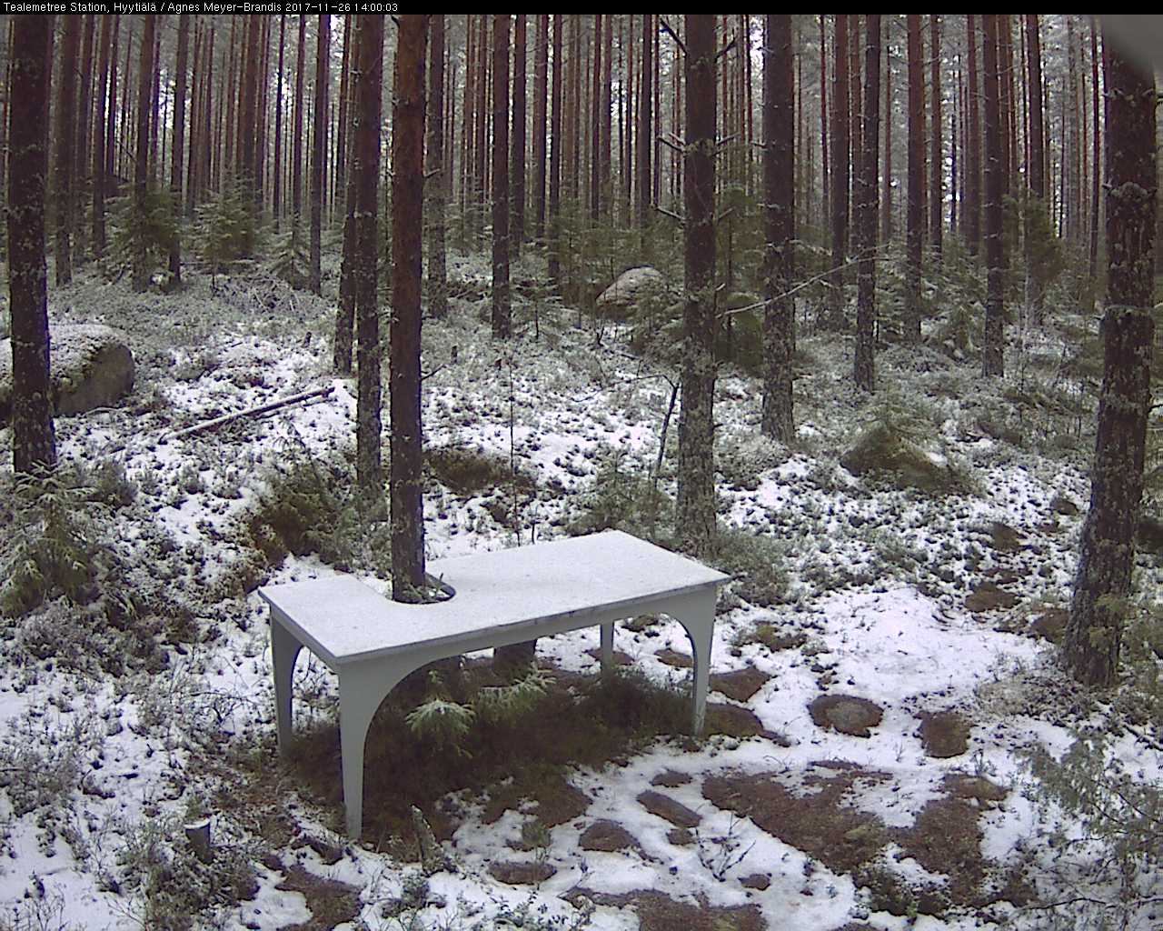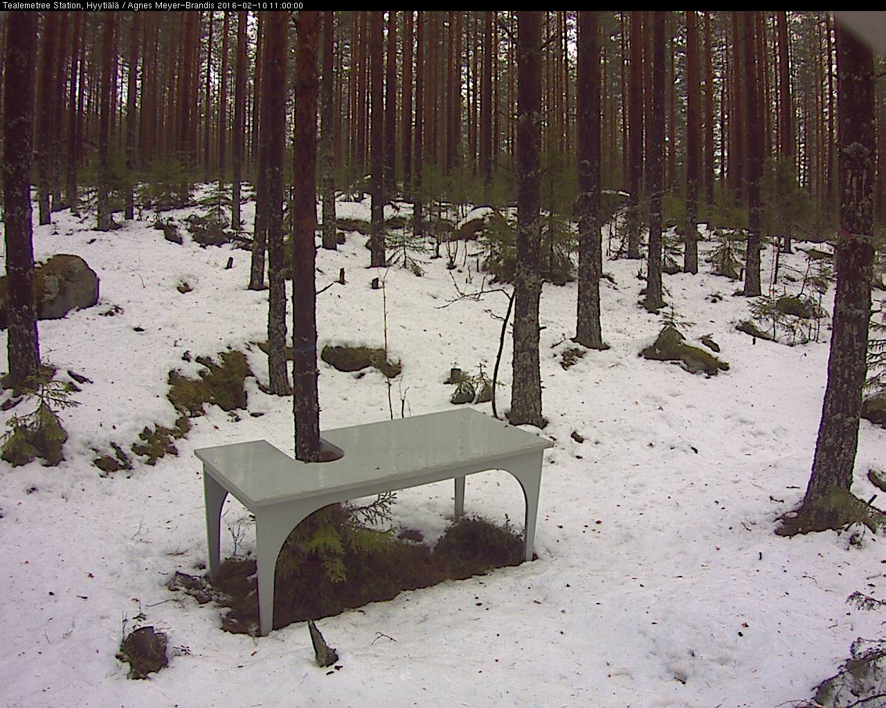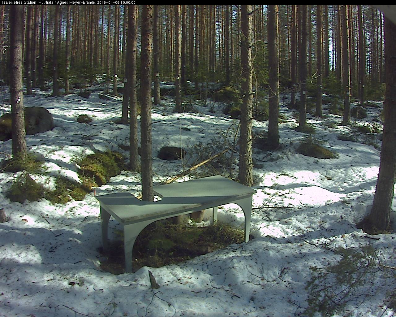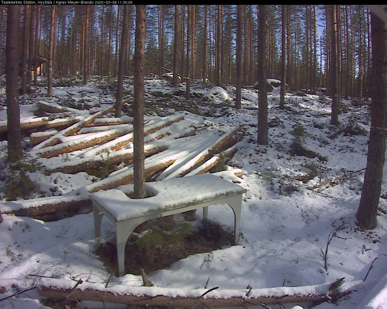Agnes Meyer-Brandiksen työ Hyytiälässä alkoi tutustumalla aseman muihin tutkijoihin. Pystyäkseen tapaamaan ihmisiä metsässä, hän rakensi pöydän, josta muodostui kohtauspiste ja paikka teehetkille Agneksen ja puun kanssa.