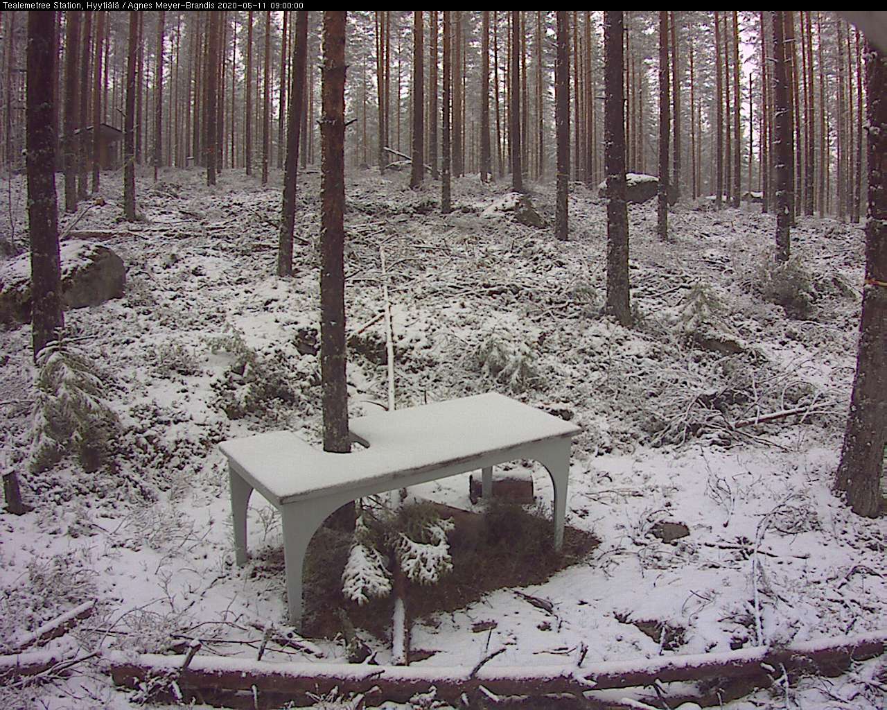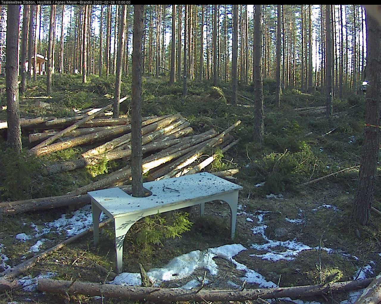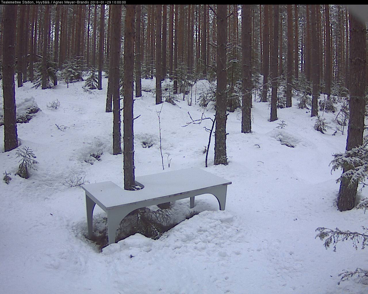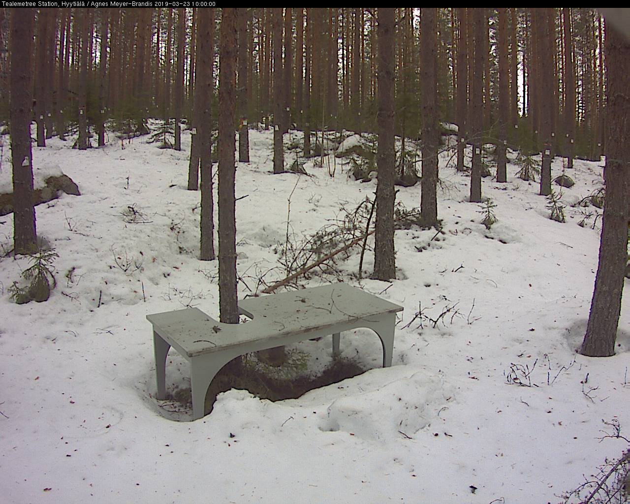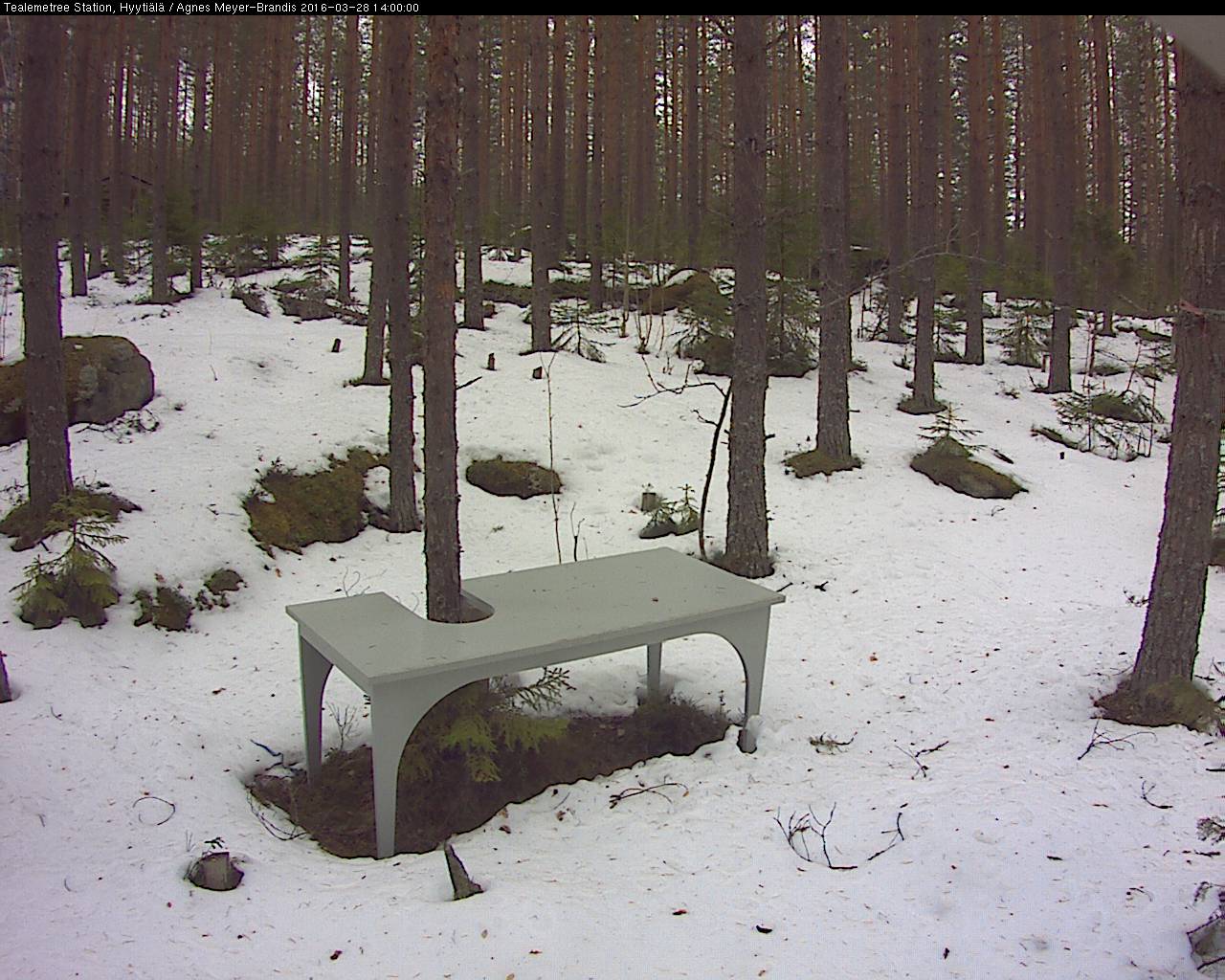 Agnes Meyer-Brandiksen työ Hyytiälässä alkoi tutustumalla aseman muihin tutkijoihin. Pystyäkseen tapaamaan ihmisiä metsässä, hän rakensi pöydän, josta muodostui kohtauspiste ja paikka teehetkille Agneksen ja puun kanssa.