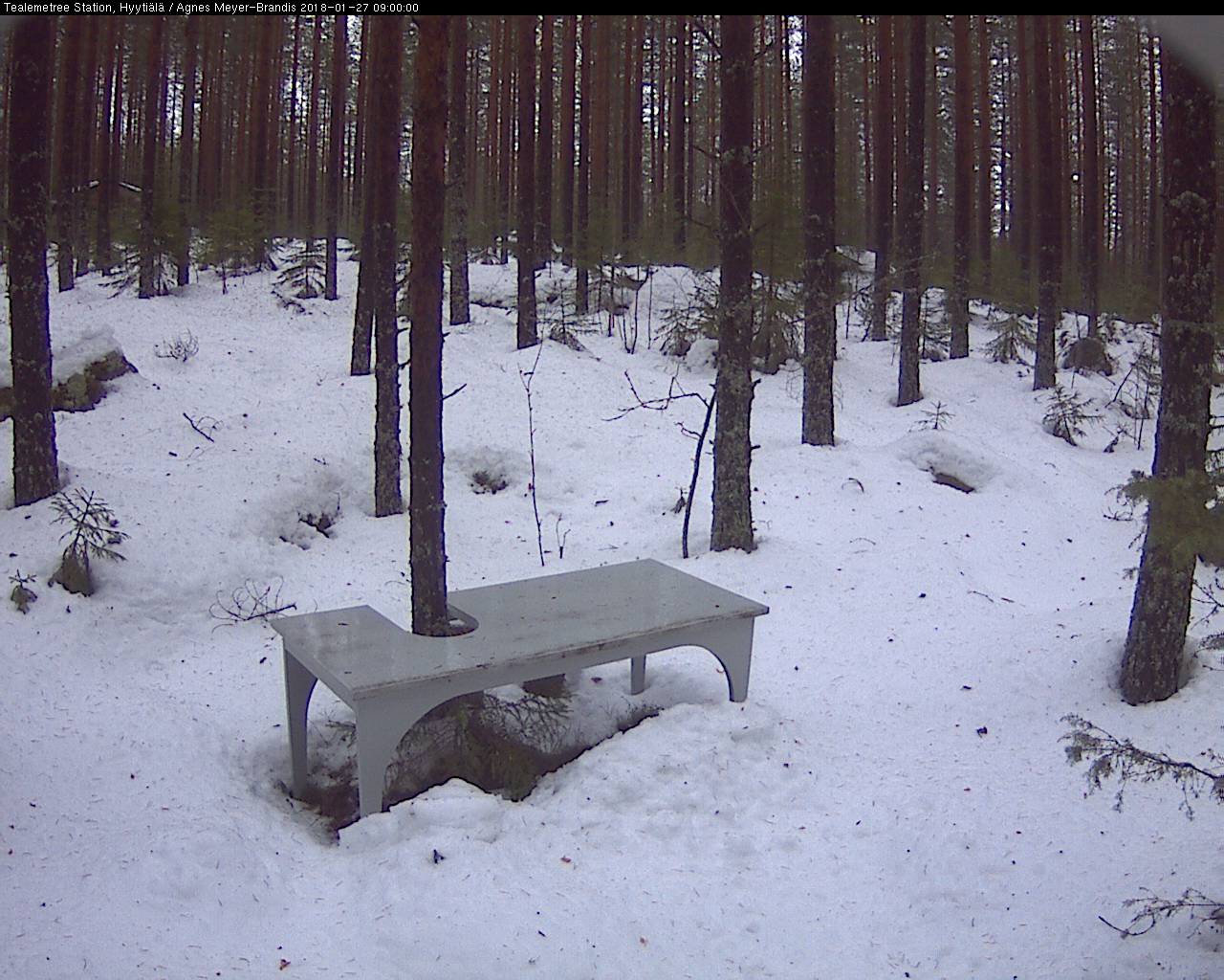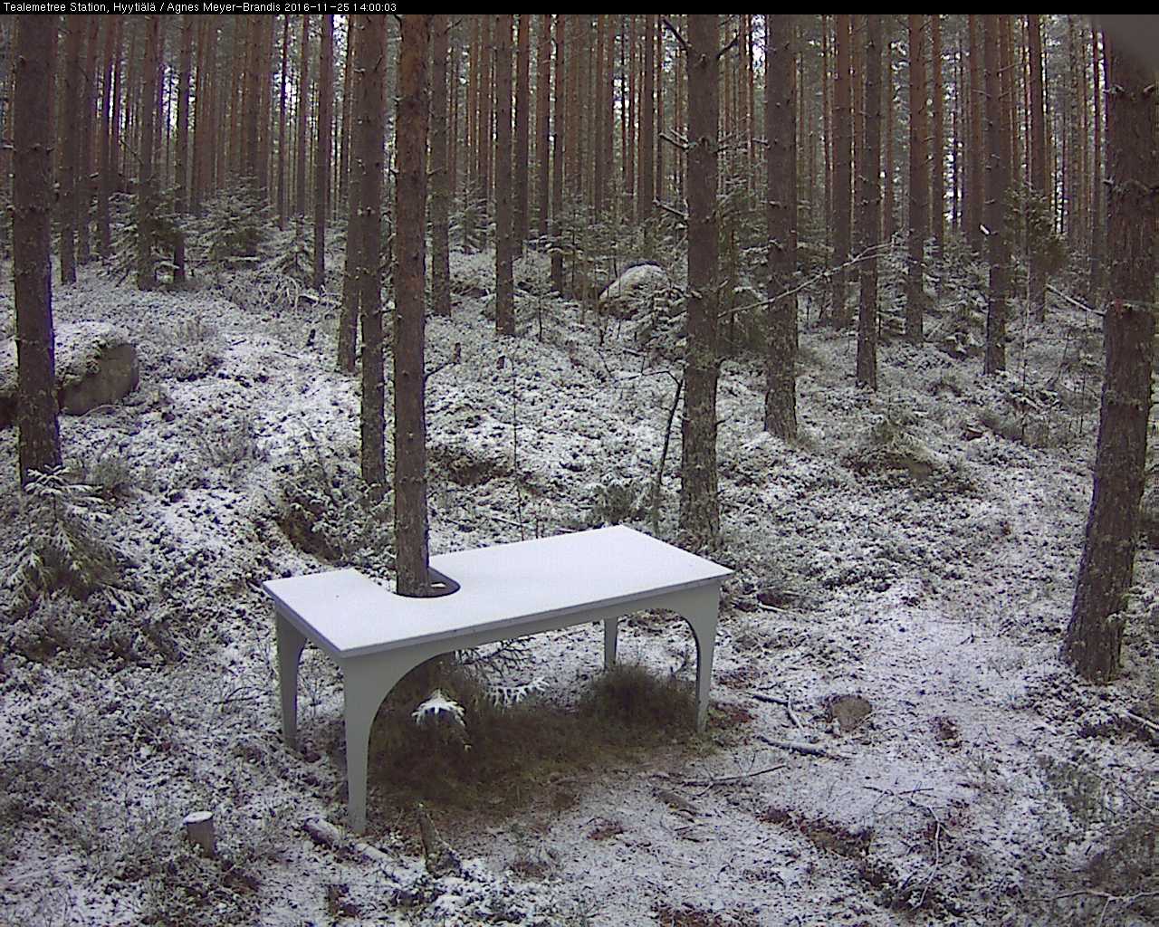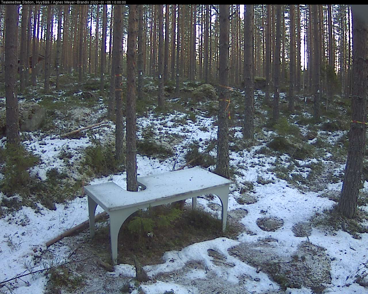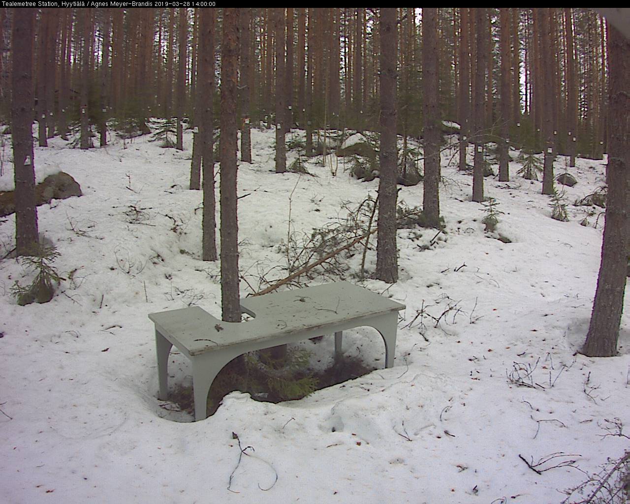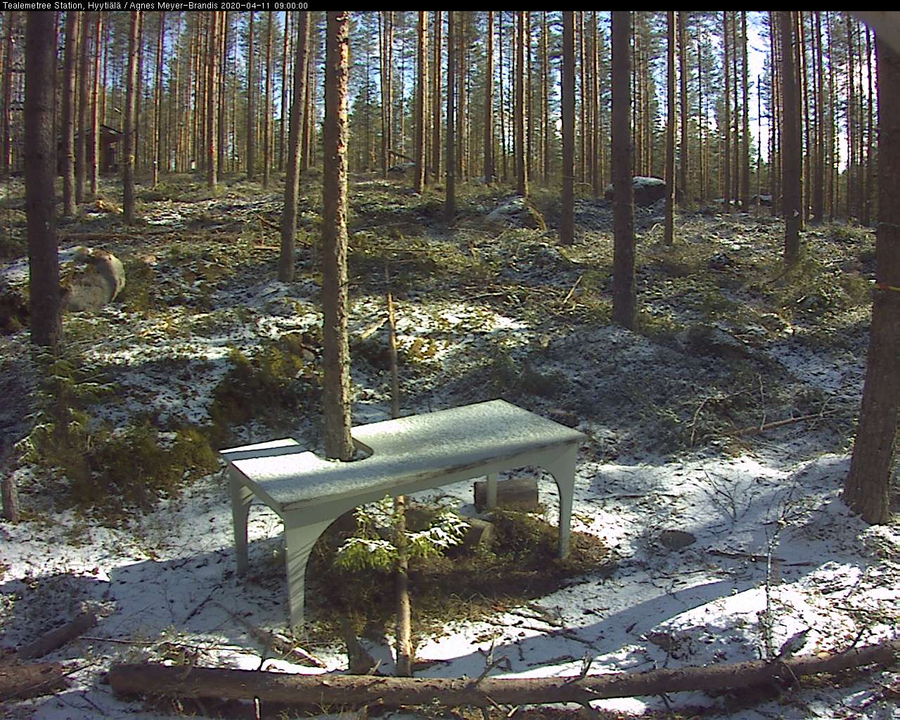Agnes Meyer-Brandiksen työ Hyytiälässä alkoi tutustumalla aseman muihin tutkijoihin. Pystyäkseen tapaamaan ihmisiä metsässä, hän rakensi pöydän, josta muodostui kohtauspiste ja paikka teehetkille Agneksen ja puun kanssa.