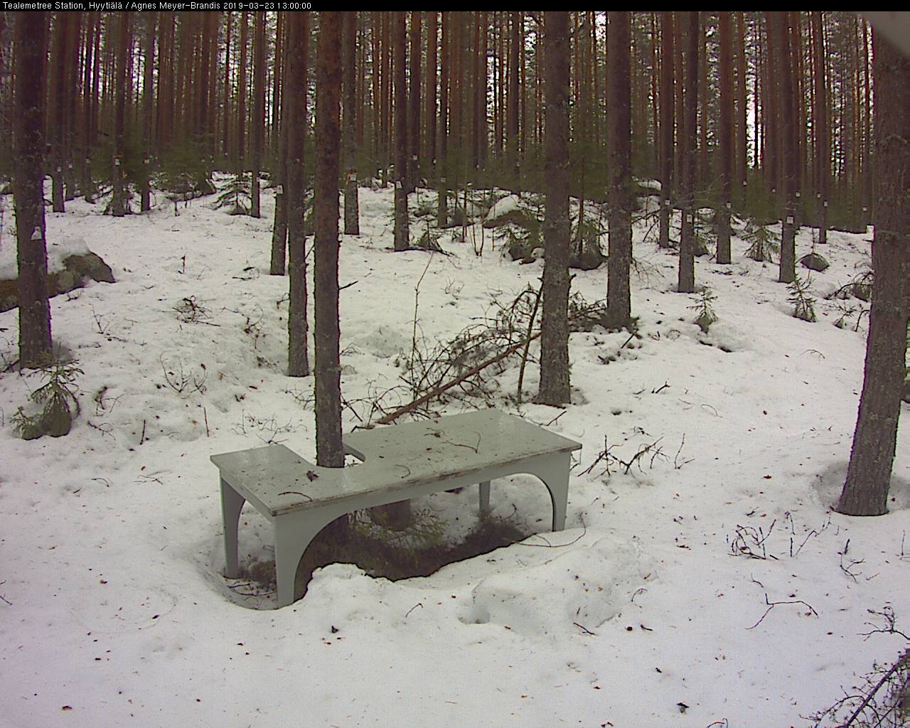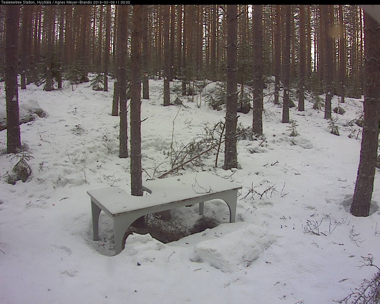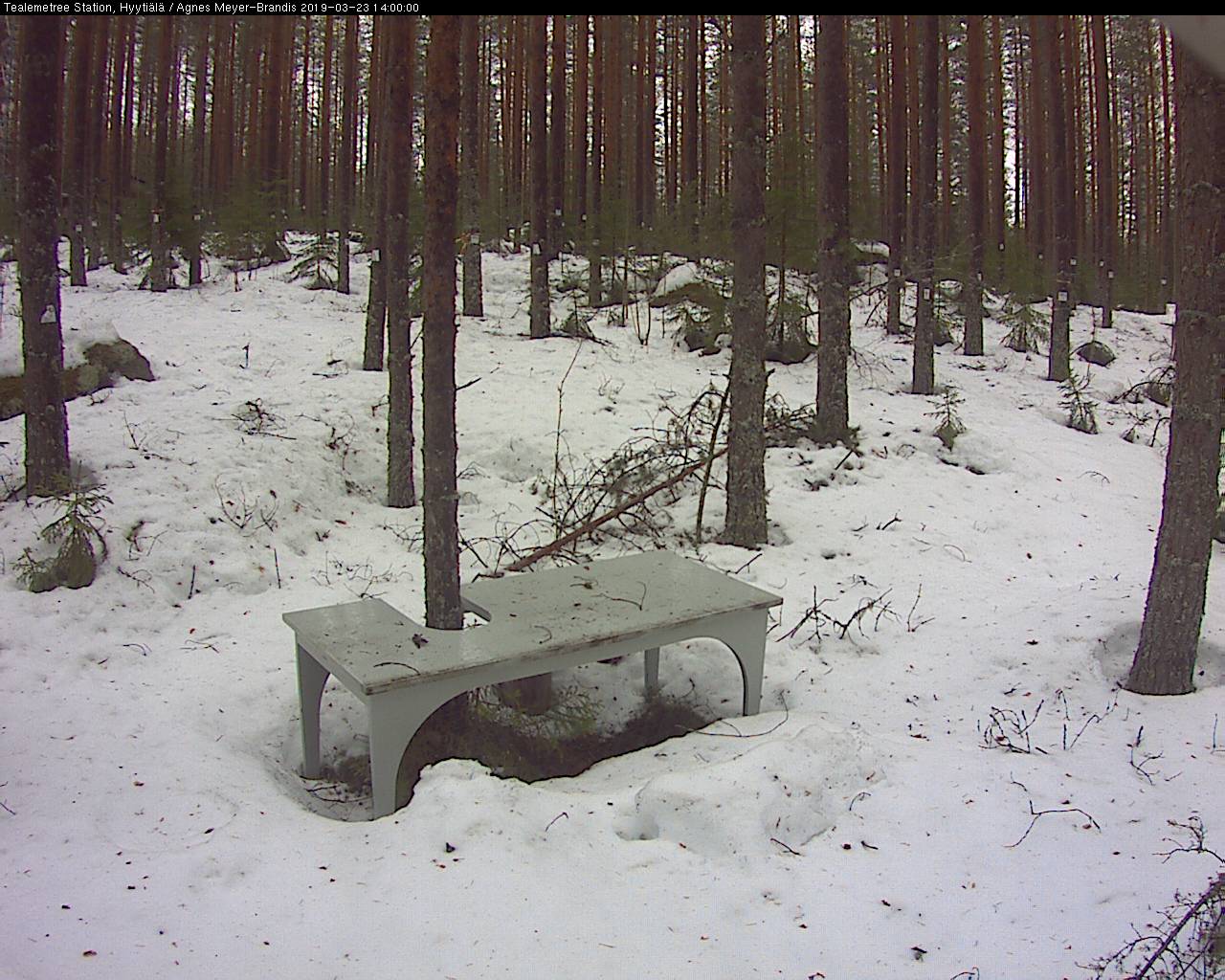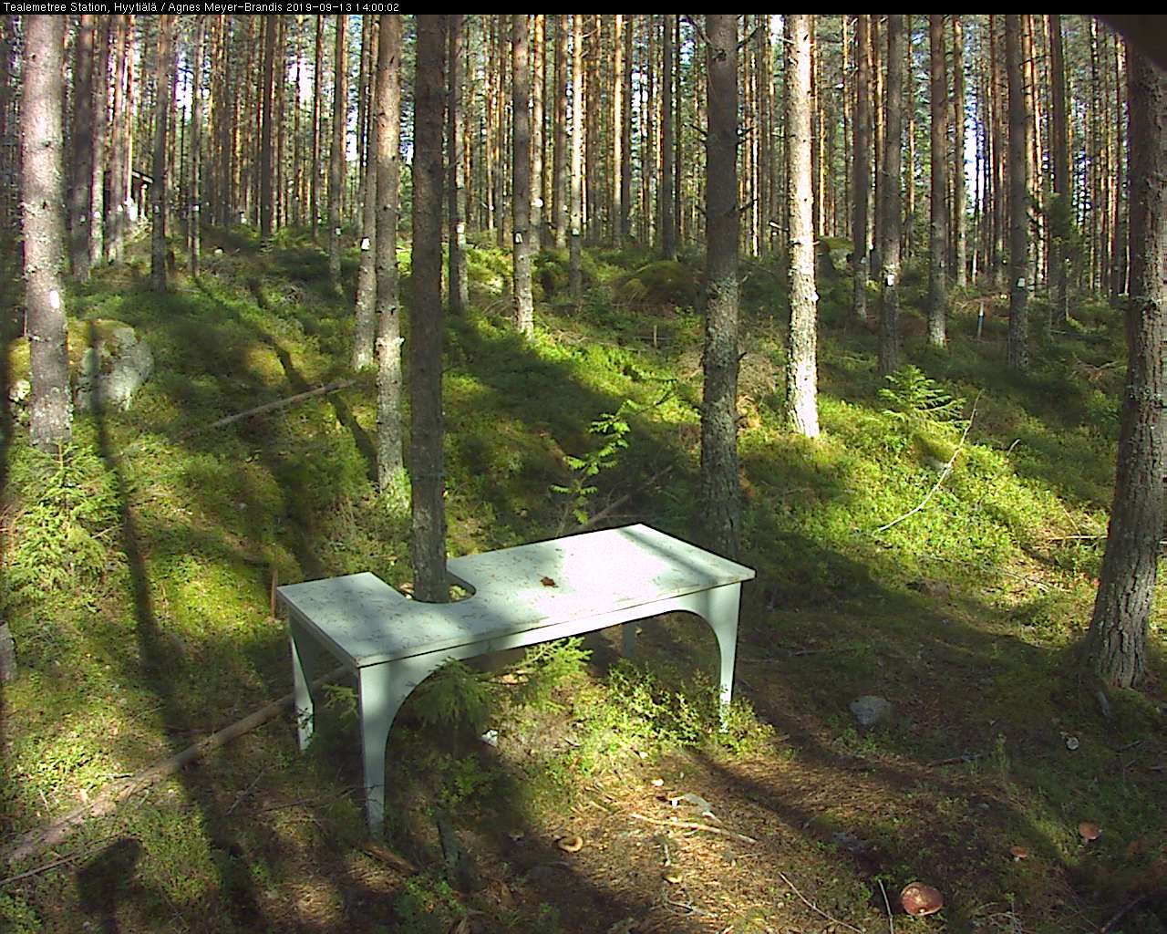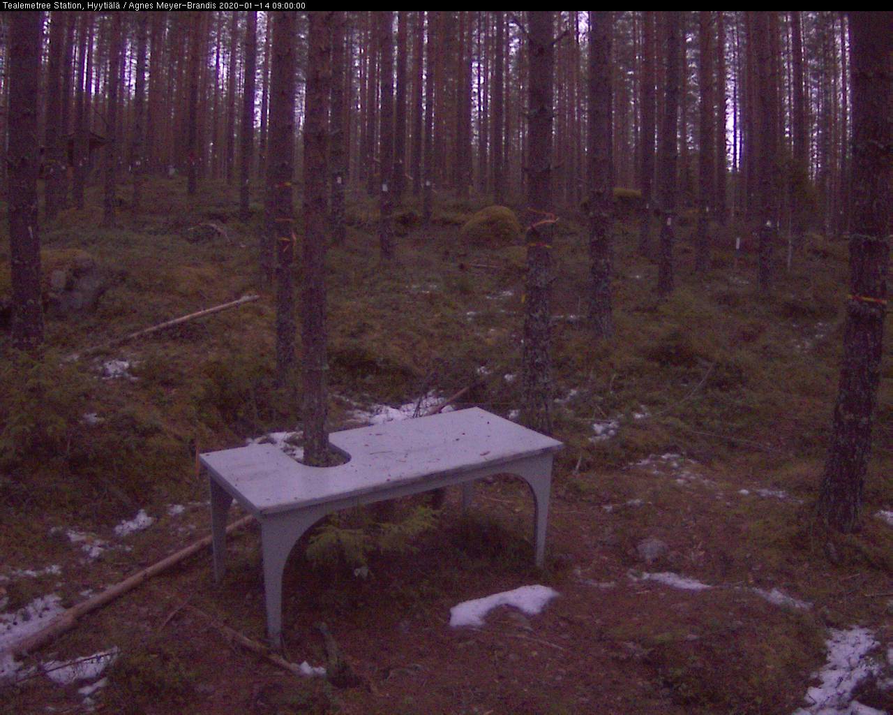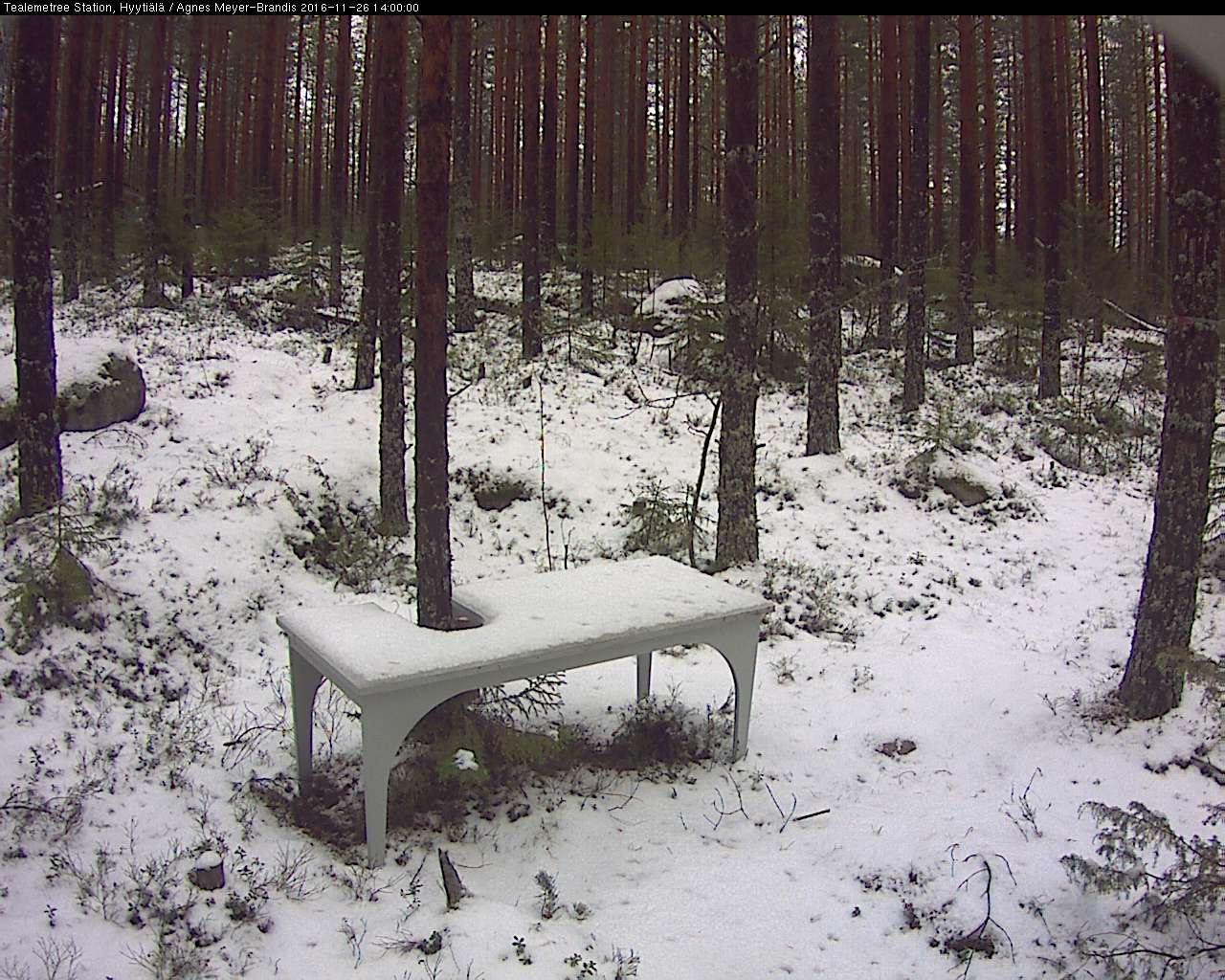 Agnes Meyer-Brandiksen työ Hyytiälässä alkoi tutustumalla aseman muihin tutkijoihin. Pystyäkseen tapaamaan ihmisiä metsässä, hän rakensi pöydän, josta muodostui kohtauspiste ja paikka teehetkille Agneksen ja puun kanssa.
