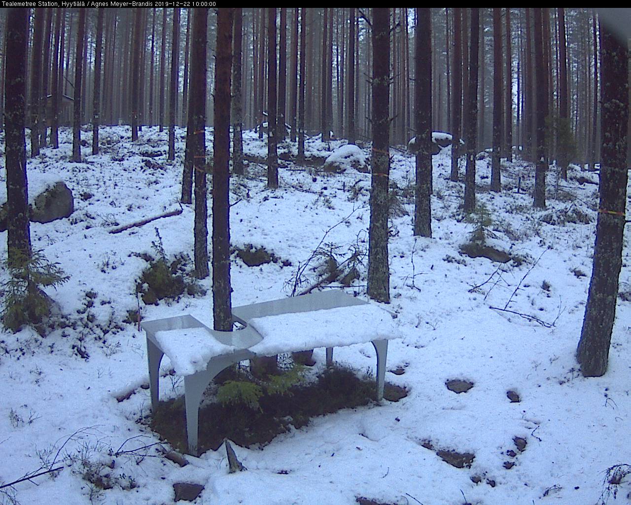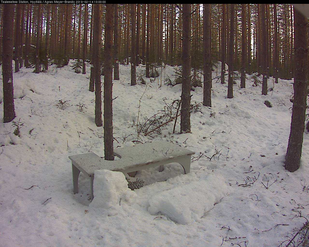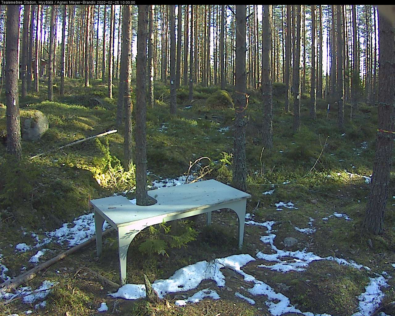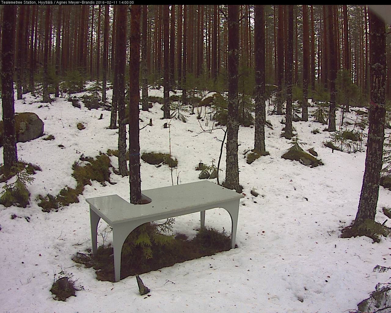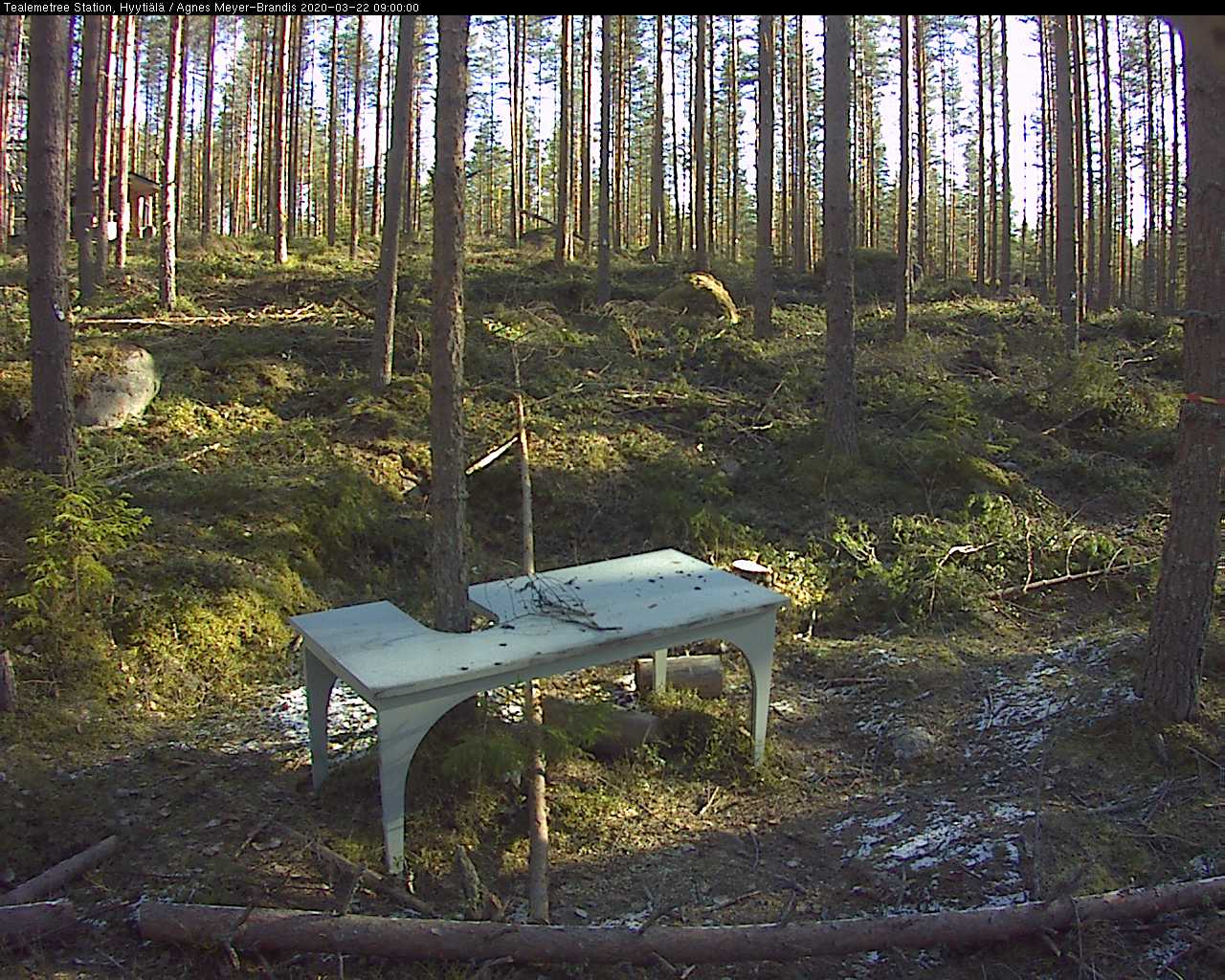 Agnes Meyer-Brandiksen työ Hyytiälässä alkoi tutustumalla aseman muihin tutkijoihin. Pystyäkseen tapaamaan ihmisiä metsässä, hän rakensi pöydän, josta muodostui kohtauspiste ja paikka teehetkille Agneksen ja puun kanssa.
