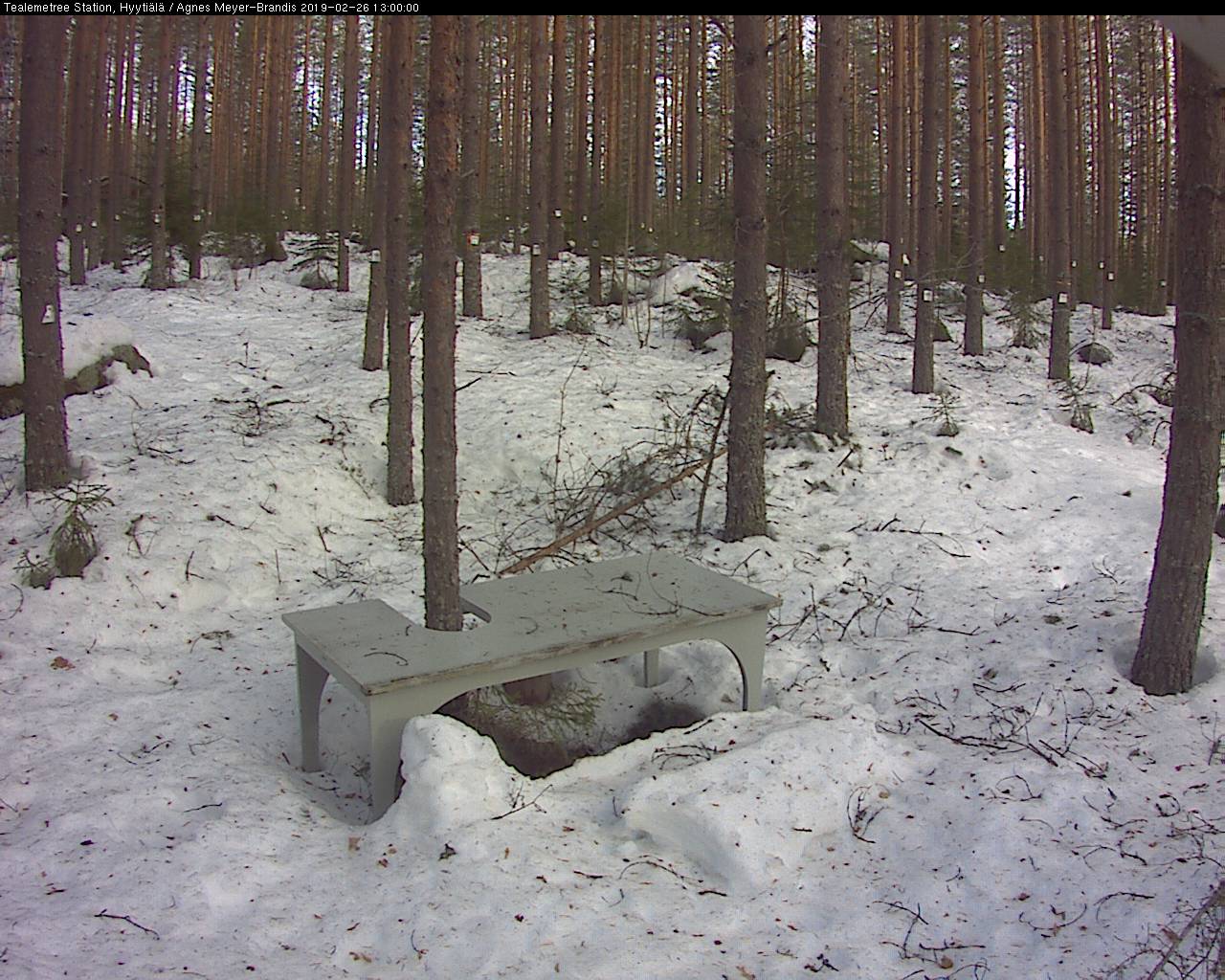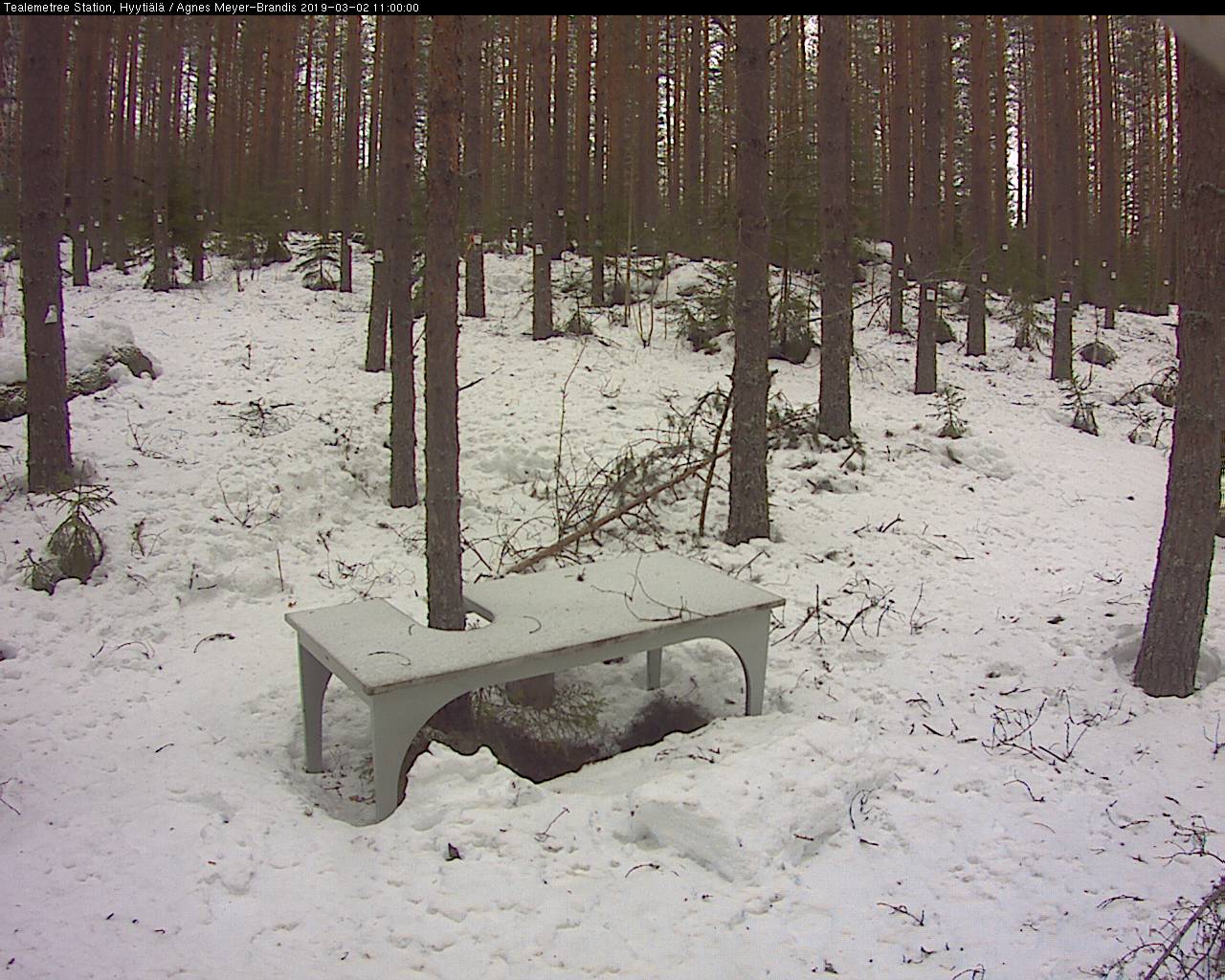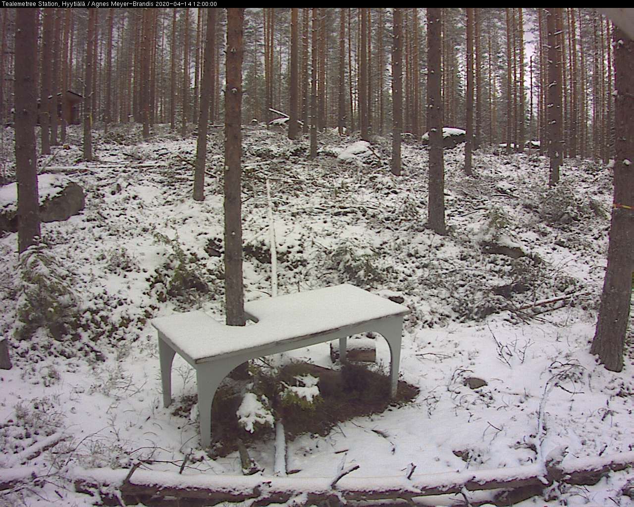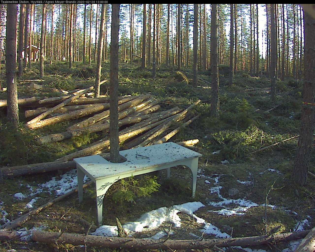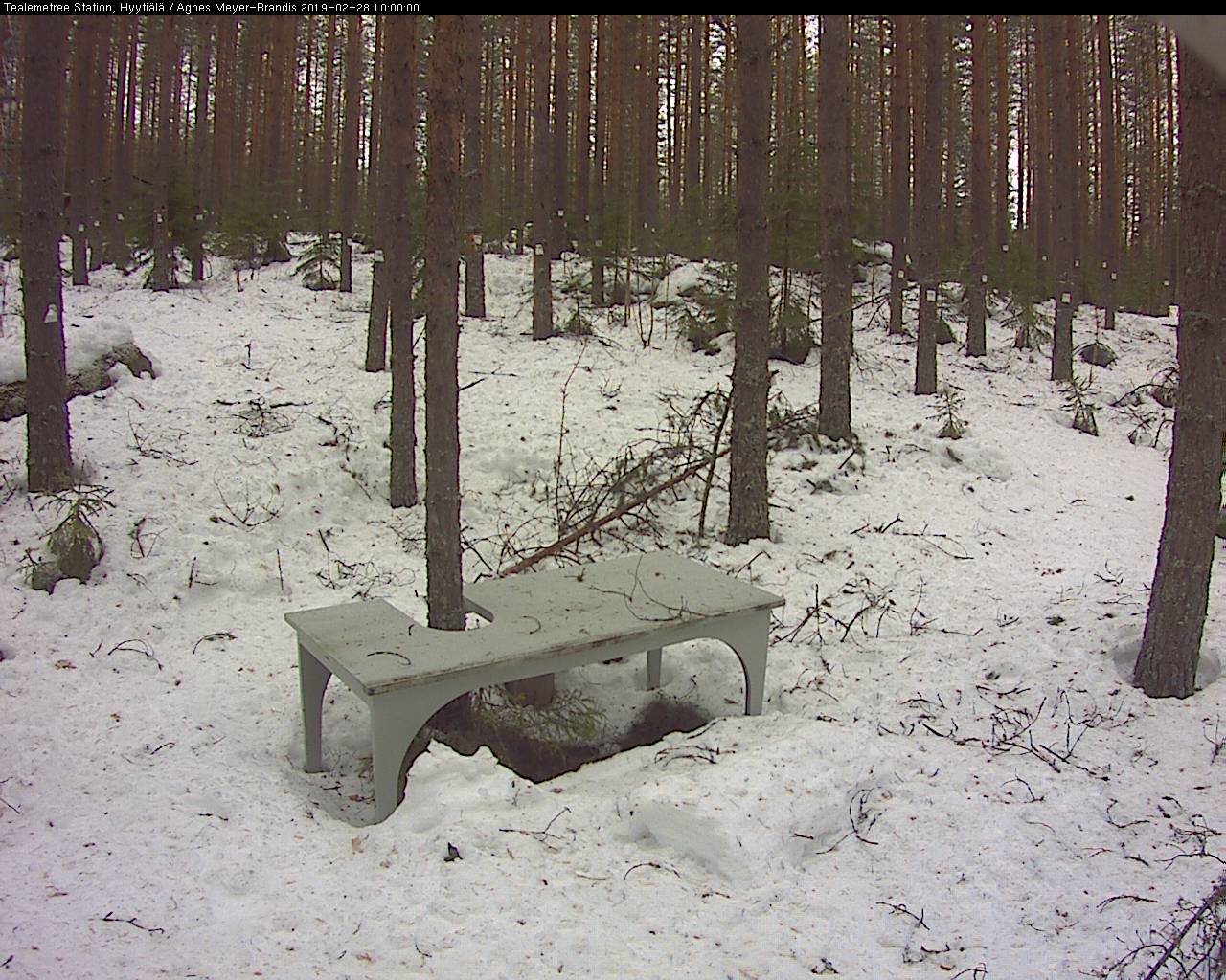 Agnes Meyer-Brandiksen työ Hyytiälässä alkoi tutustumalla aseman muihin tutkijoihin. Pystyäkseen tapaamaan ihmisiä metsässä, hän rakensi pöydän, josta muodostui kohtauspiste ja paikka teehetkille Agneksen ja puun kanssa.