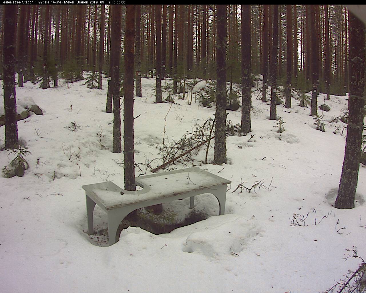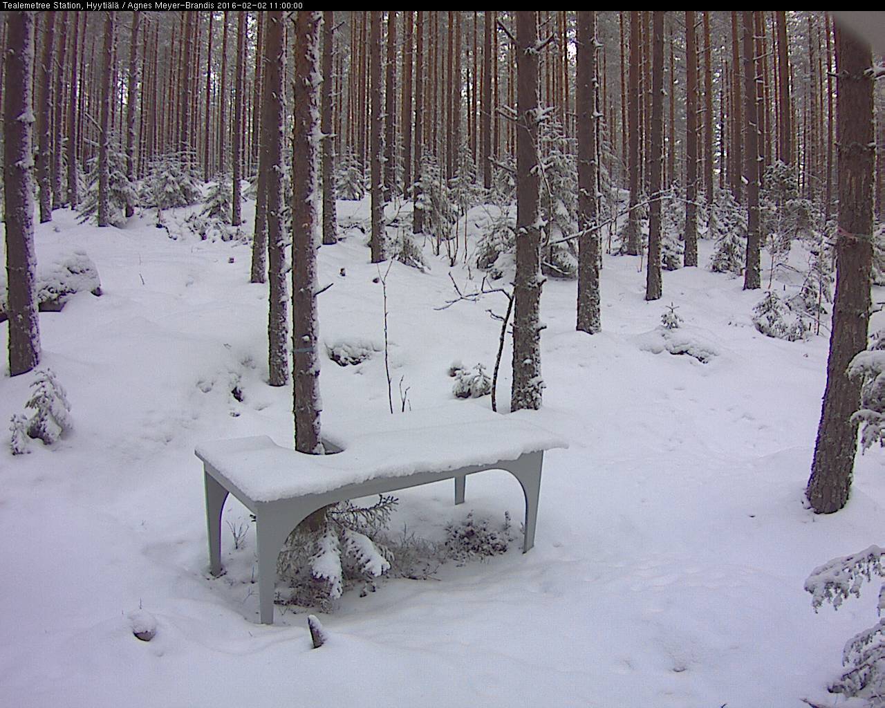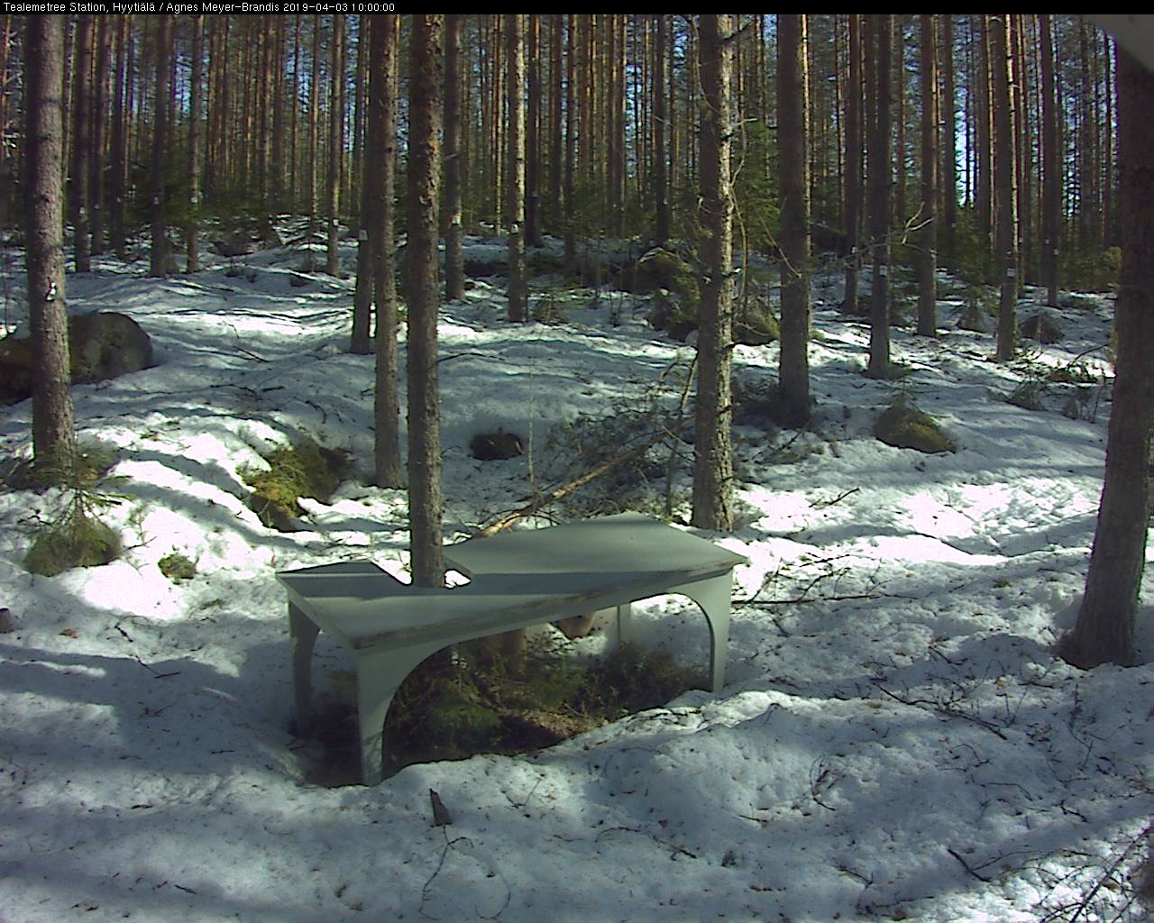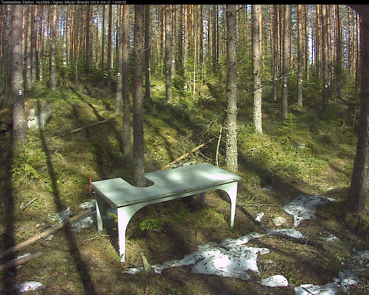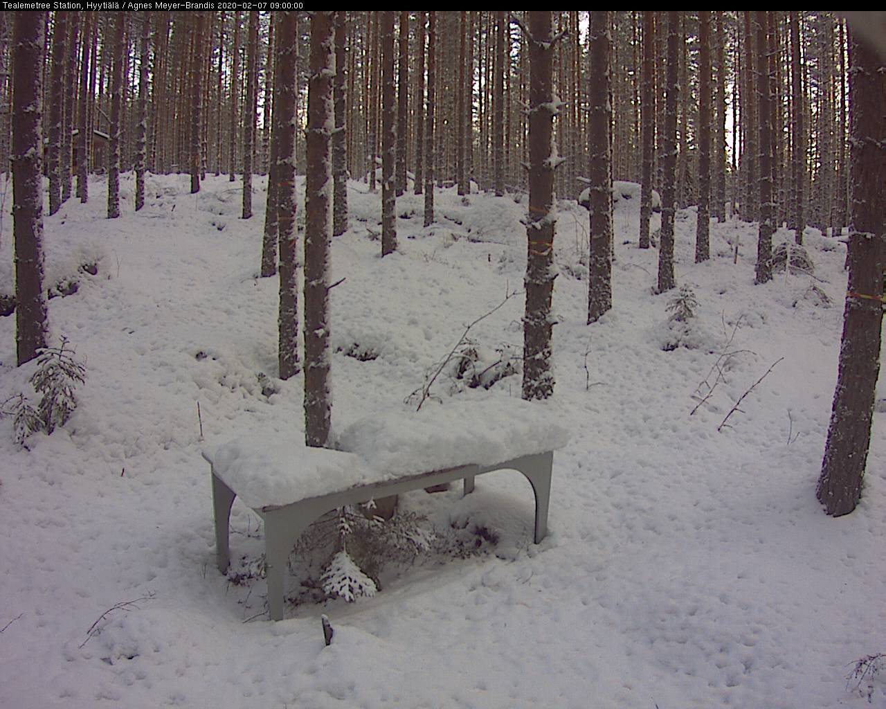 Agnes Meyer-Brandiksen työ Hyytiälässä alkoi tutustumalla aseman muihin tutkijoihin. Pystyäkseen tapaamaan ihmisiä metsässä, hän rakensi pöydän, josta muodostui kohtauspiste ja paikka teehetkille Agneksen ja puun kanssa.