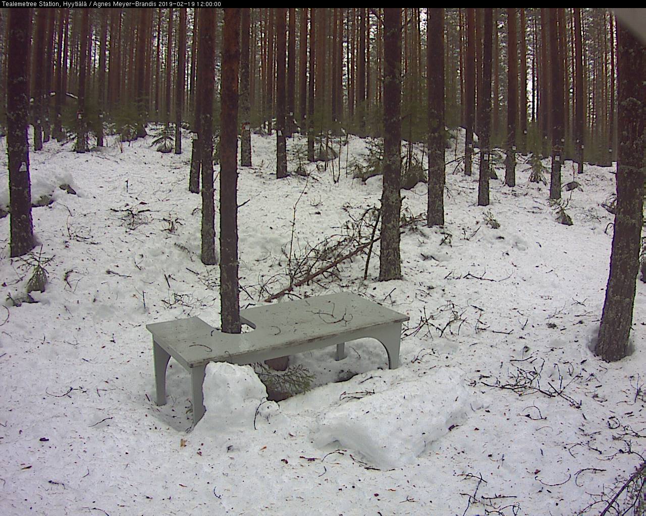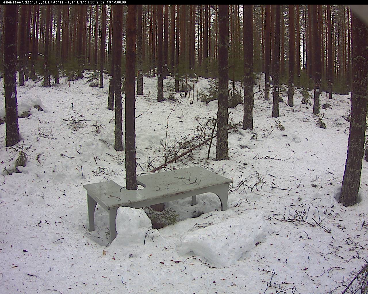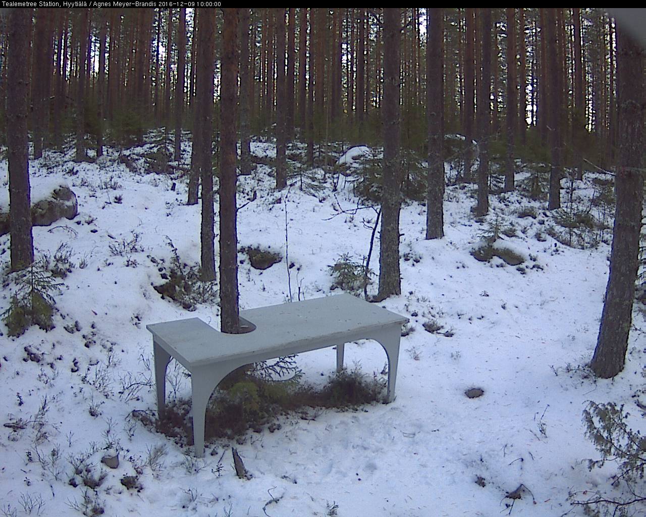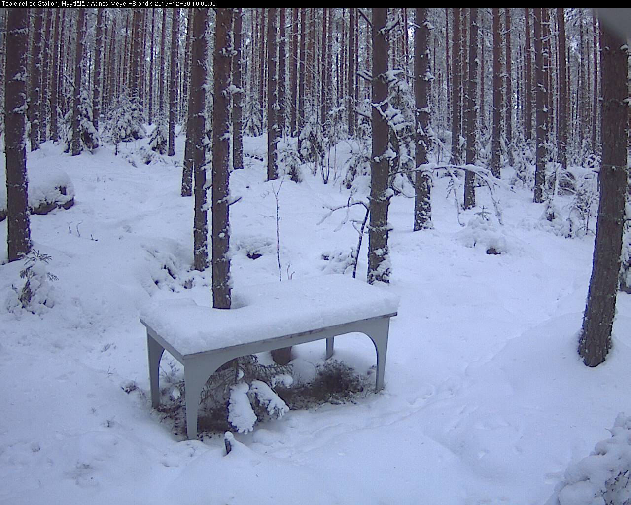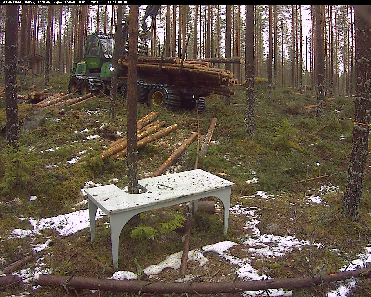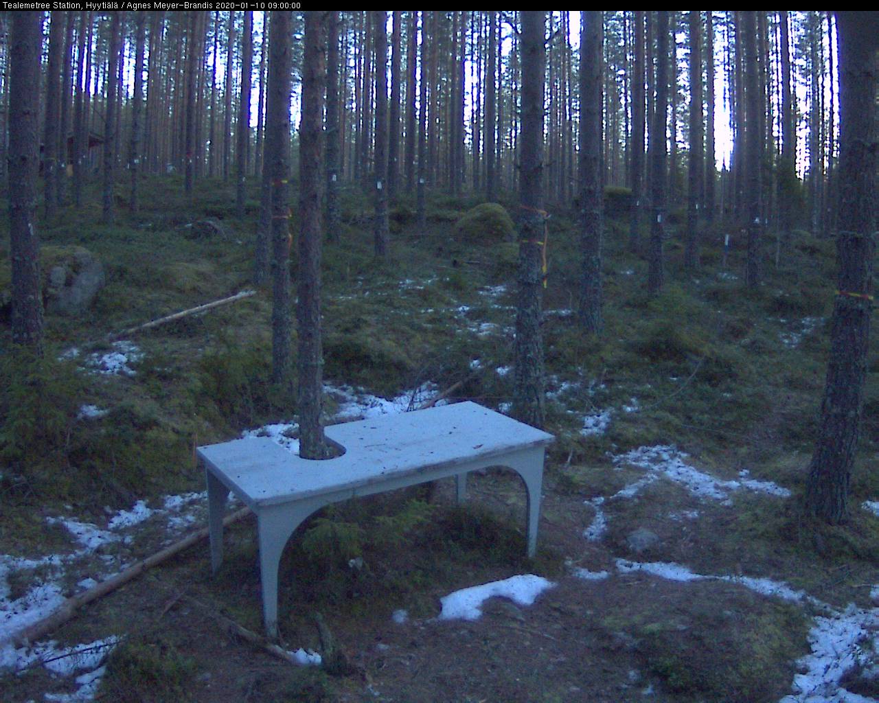 Agnes Meyer-Brandiksen työ Hyytiälässä alkoi tutustumalla aseman muihin tutkijoihin. Pystyäkseen tapaamaan ihmisiä metsässä, hän rakensi pöydän, josta muodostui kohtauspiste ja paikka teehetkille Agneksen ja puun kanssa.