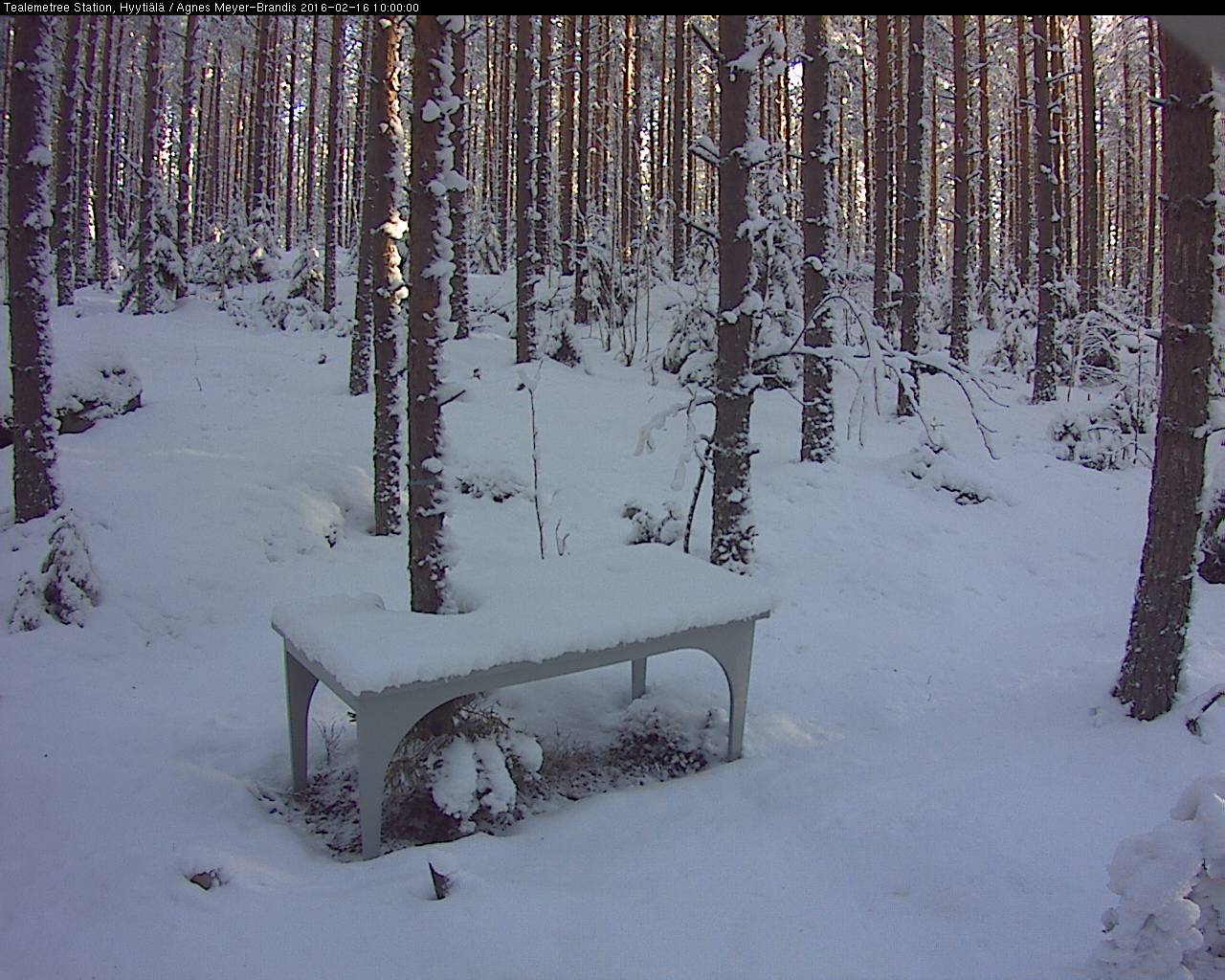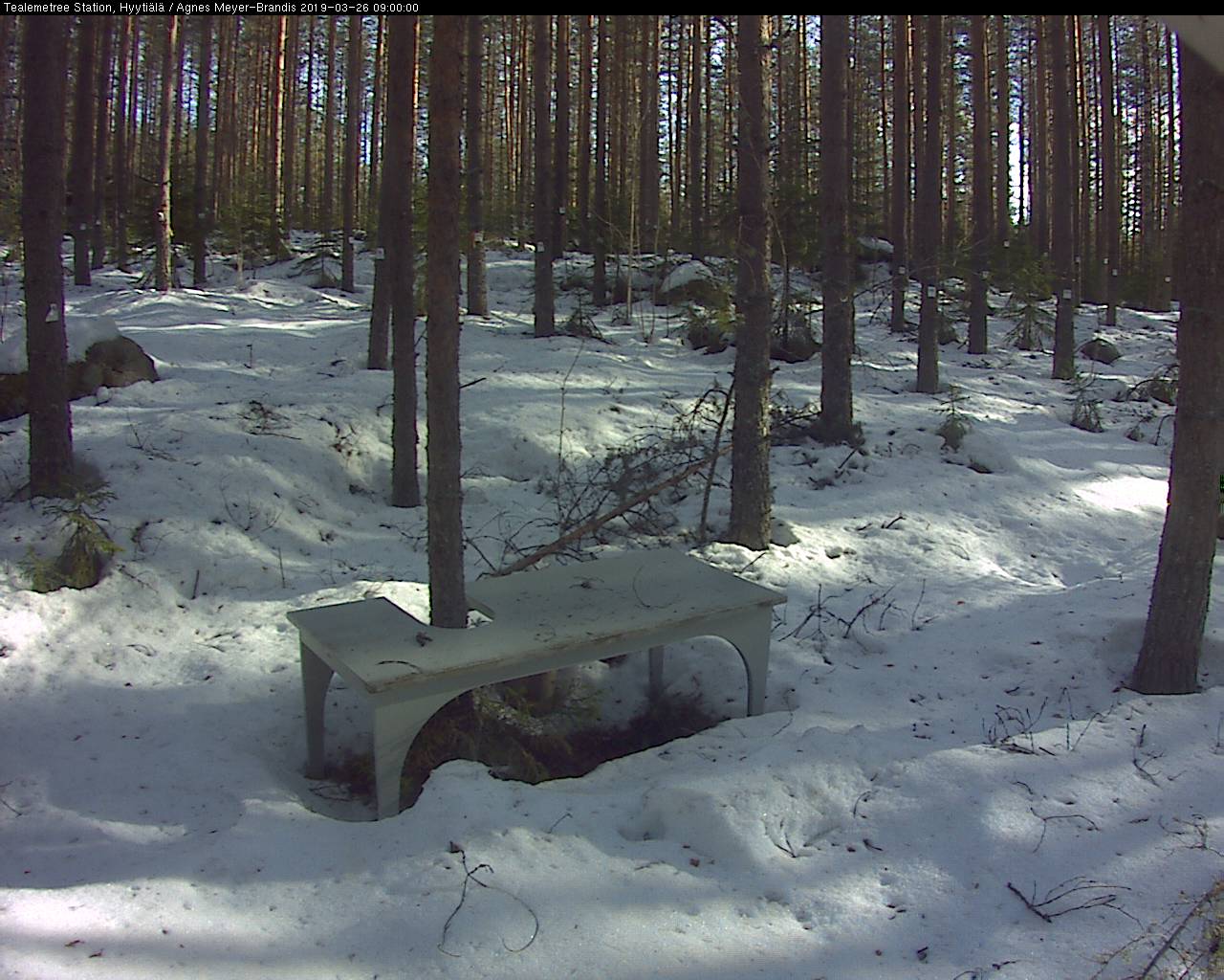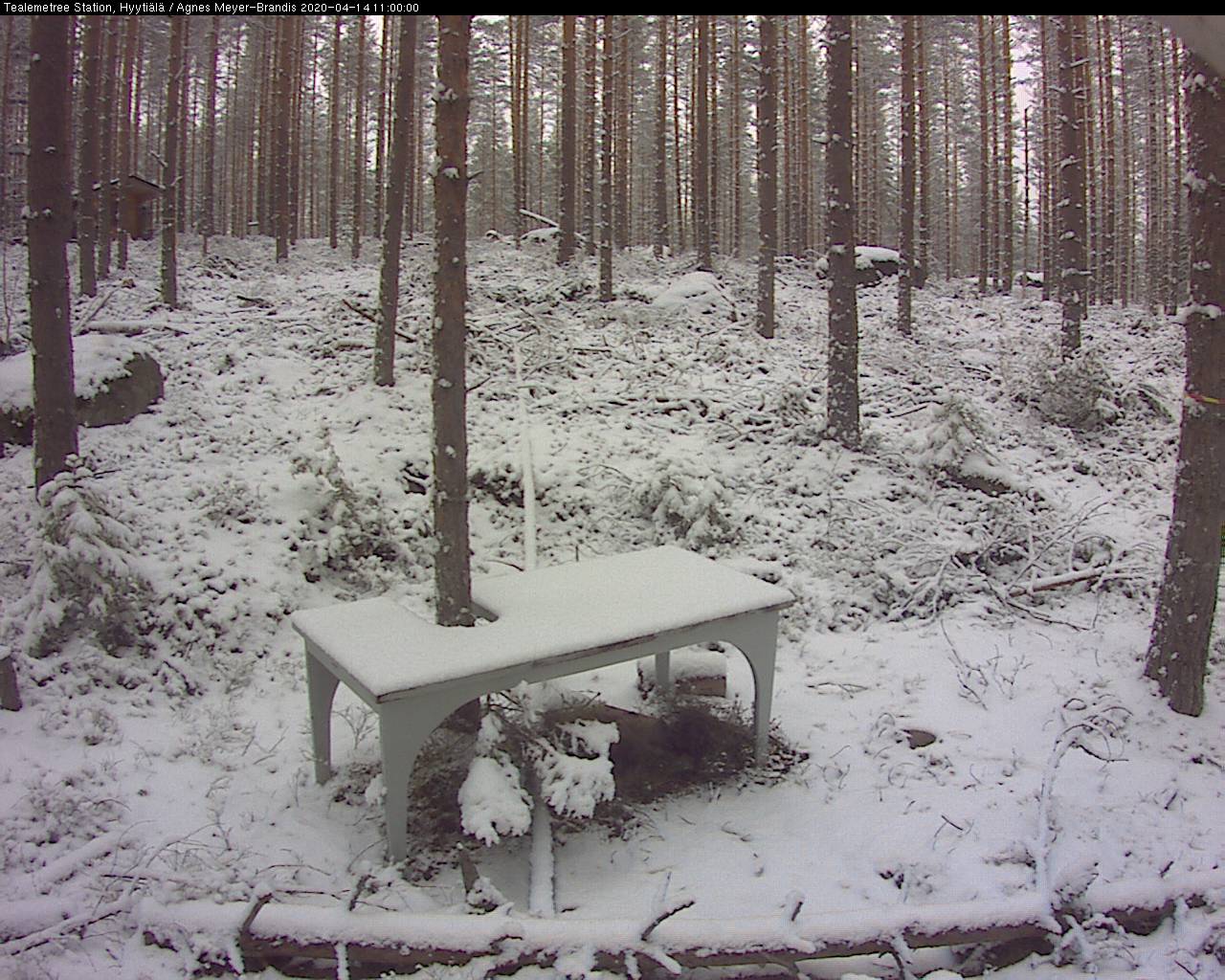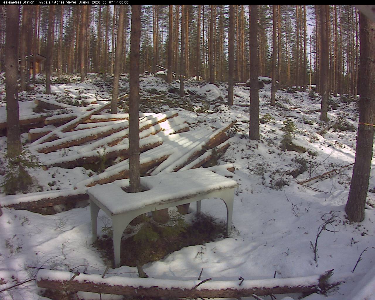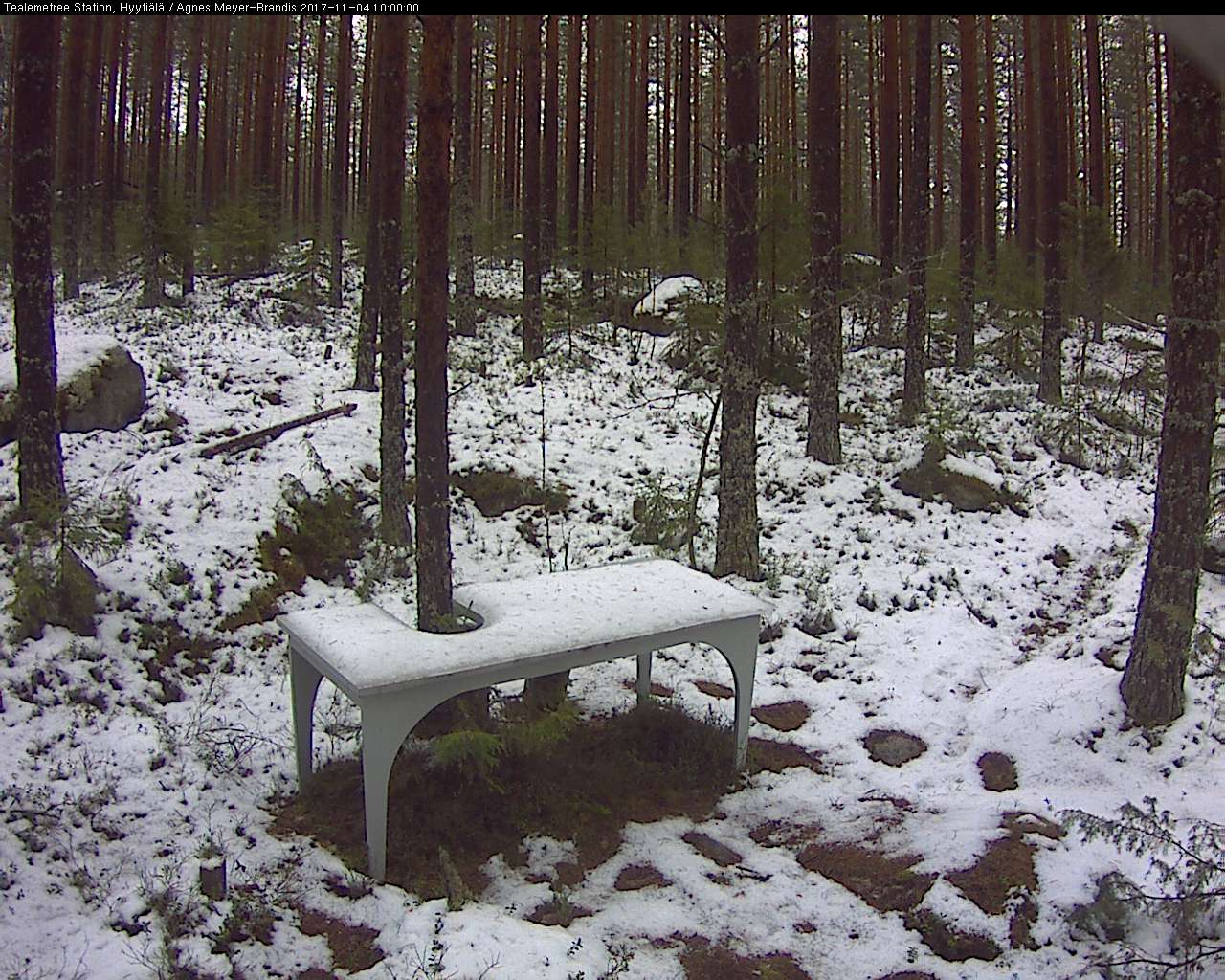 Agnes Meyer-Brandiksen työ Hyytiälässä alkoi tutustumalla aseman muihin tutkijoihin. Pystyäkseen tapaamaan ihmisiä metsässä, hän rakensi pöydän, josta muodostui kohtauspiste ja paikka teehetkille Agneksen ja puun kanssa.