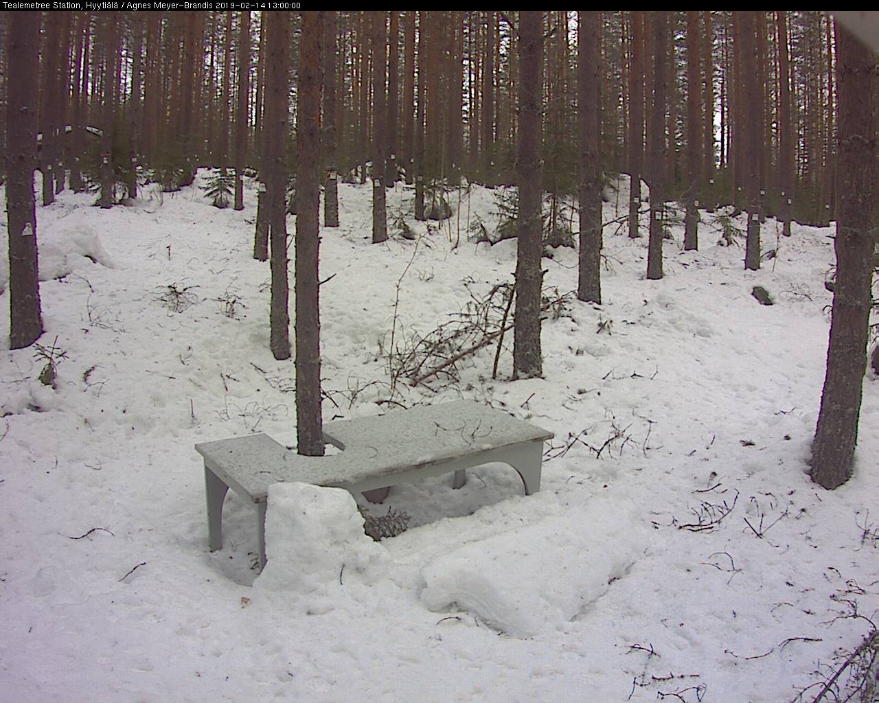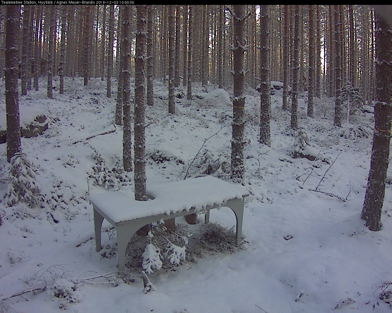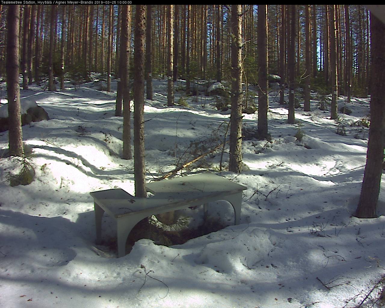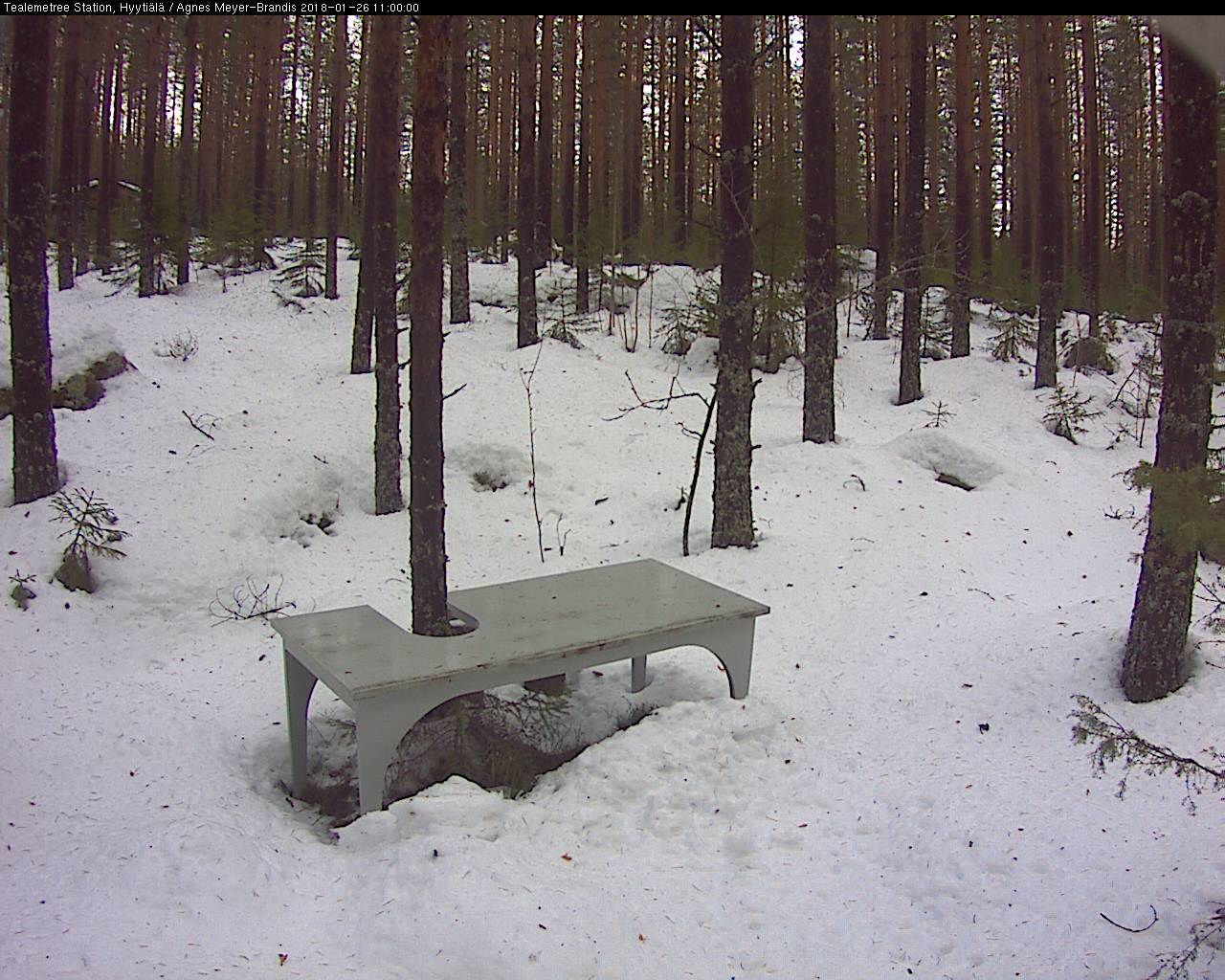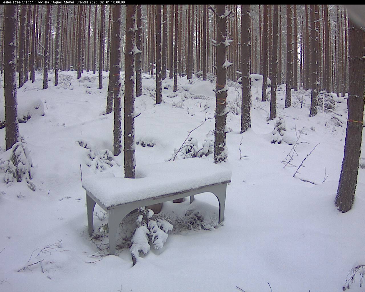 Agnes Meyer-Brandiksen työ Hyytiälässä alkoi tutustumalla aseman muihin tutkijoihin. Pystyäkseen tapaamaan ihmisiä metsässä, hän rakensi pöydän, josta muodostui kohtauspiste ja paikka teehetkille Agneksen ja puun kanssa.