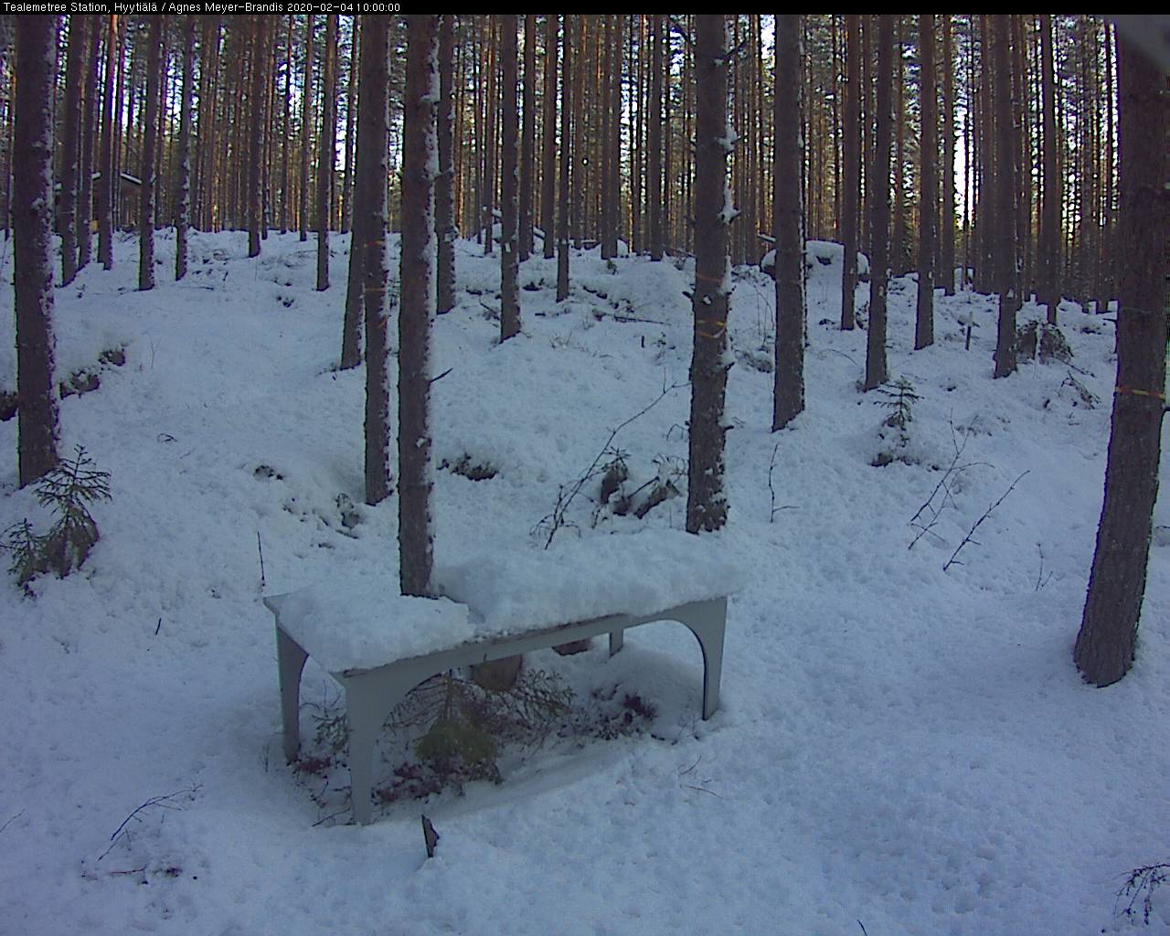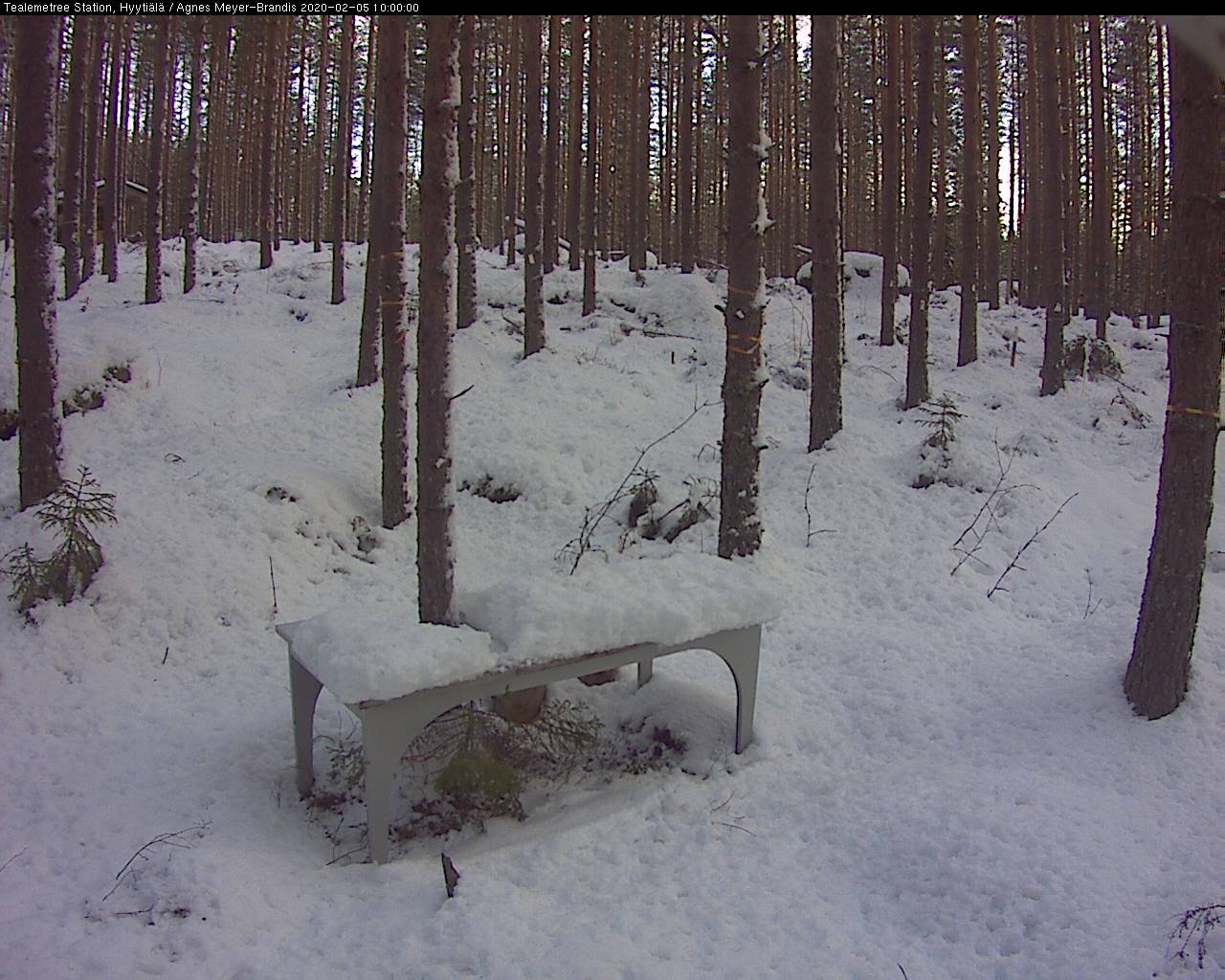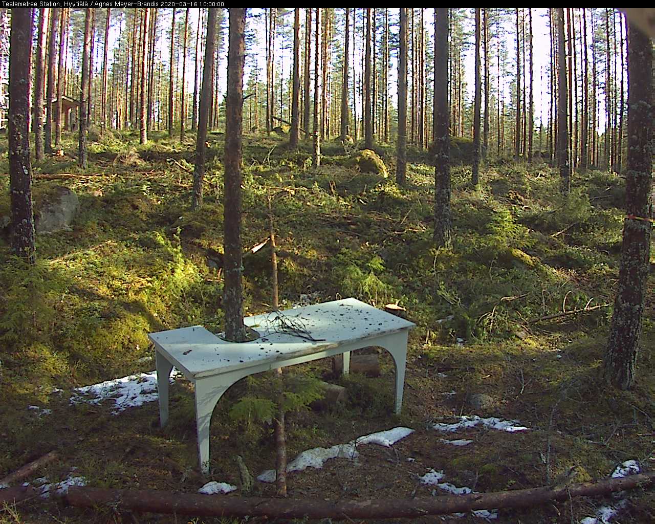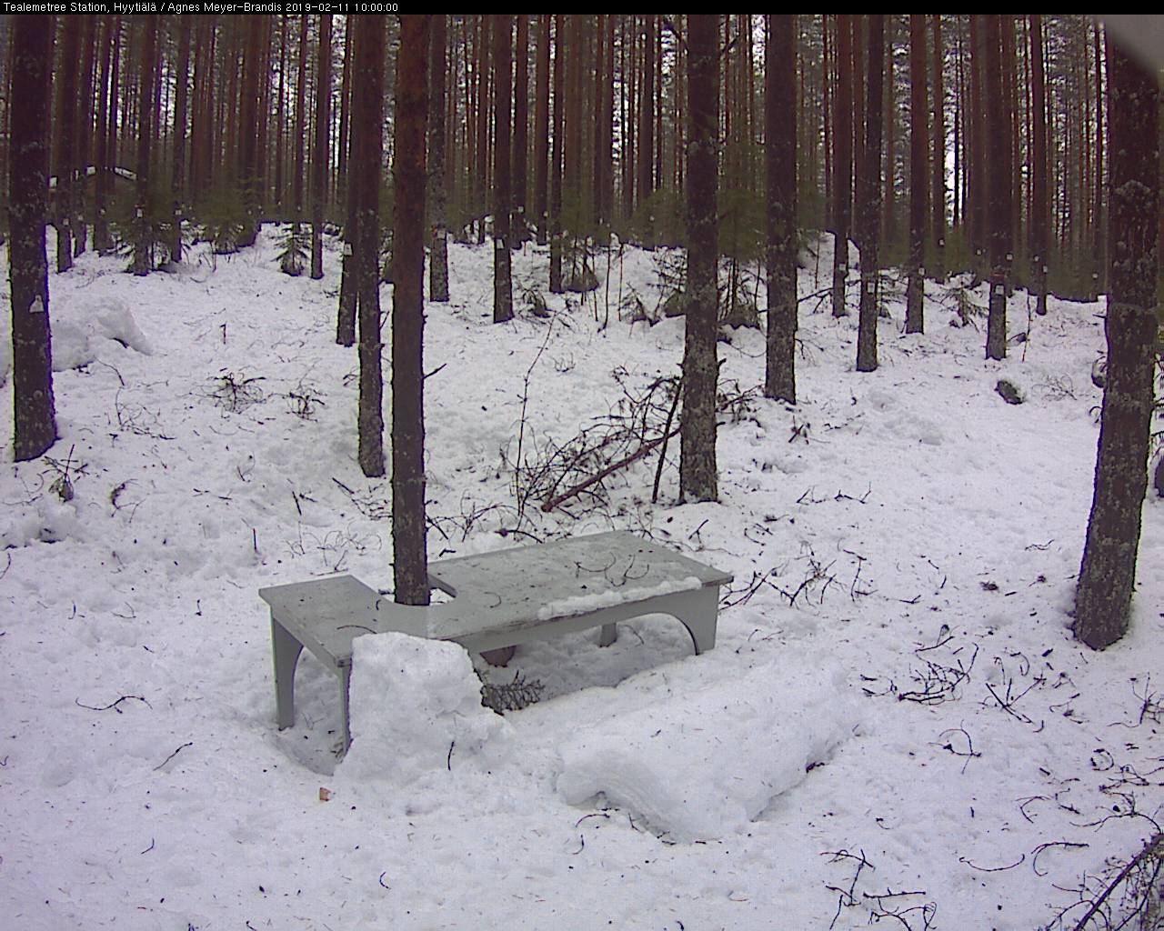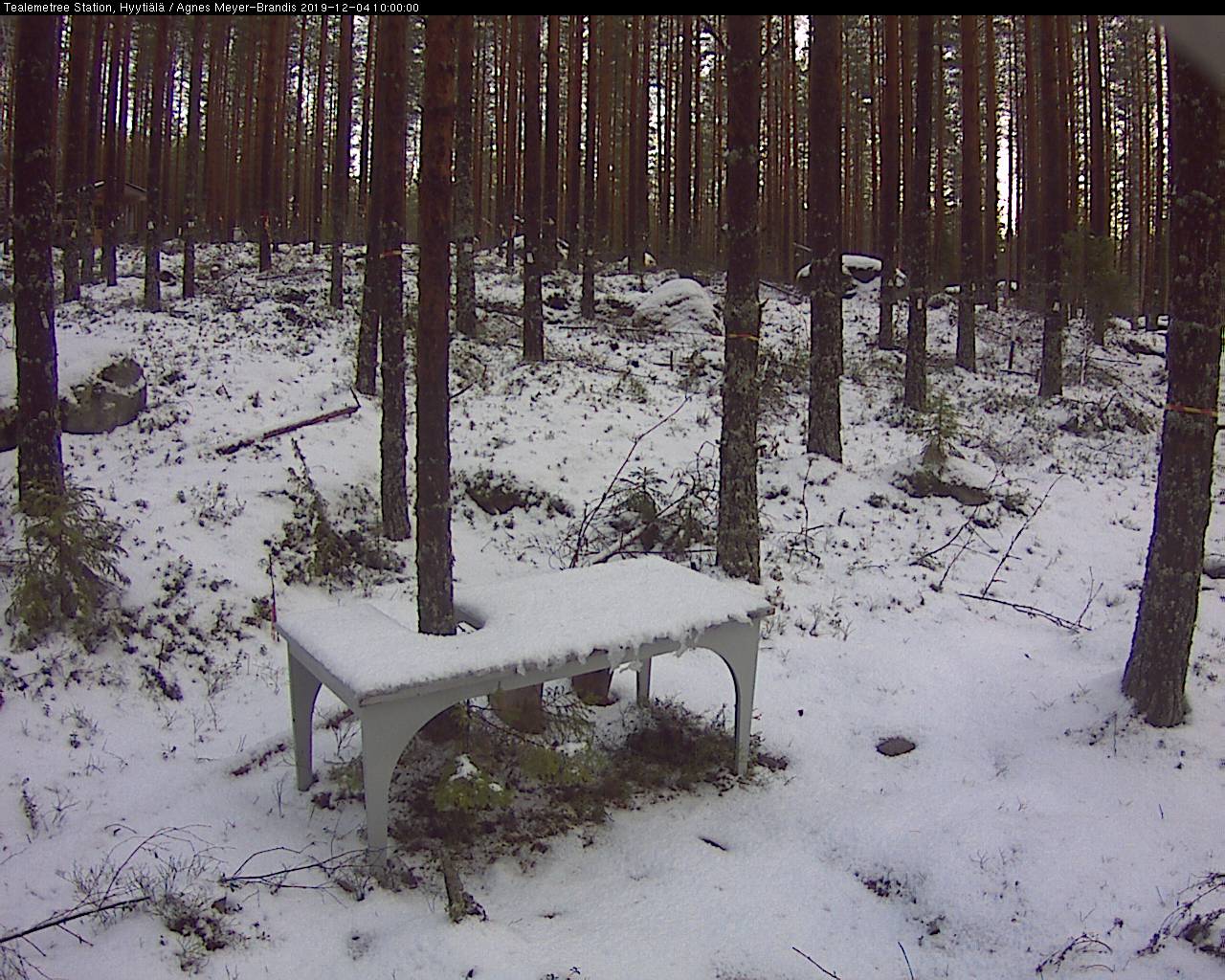 Agnes Meyer-Brandiksen työ Hyytiälässä alkoi tutustumalla aseman muihin tutkijoihin. Pystyäkseen tapaamaan ihmisiä metsässä, hän rakensi pöydän, josta muodostui kohtauspiste ja paikka teehetkille Agneksen ja puun kanssa.