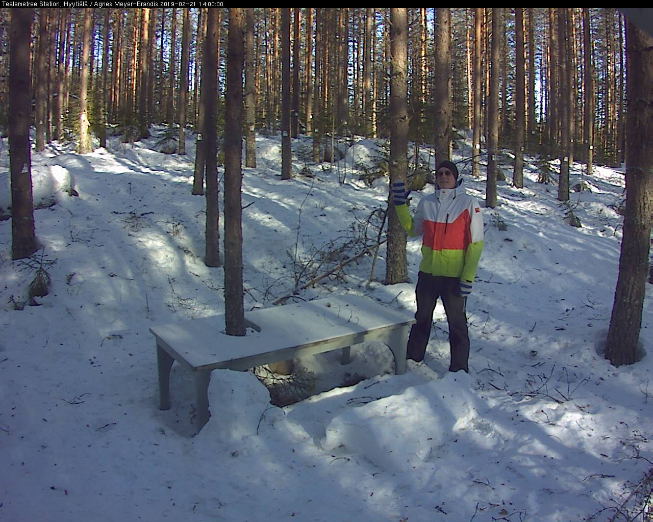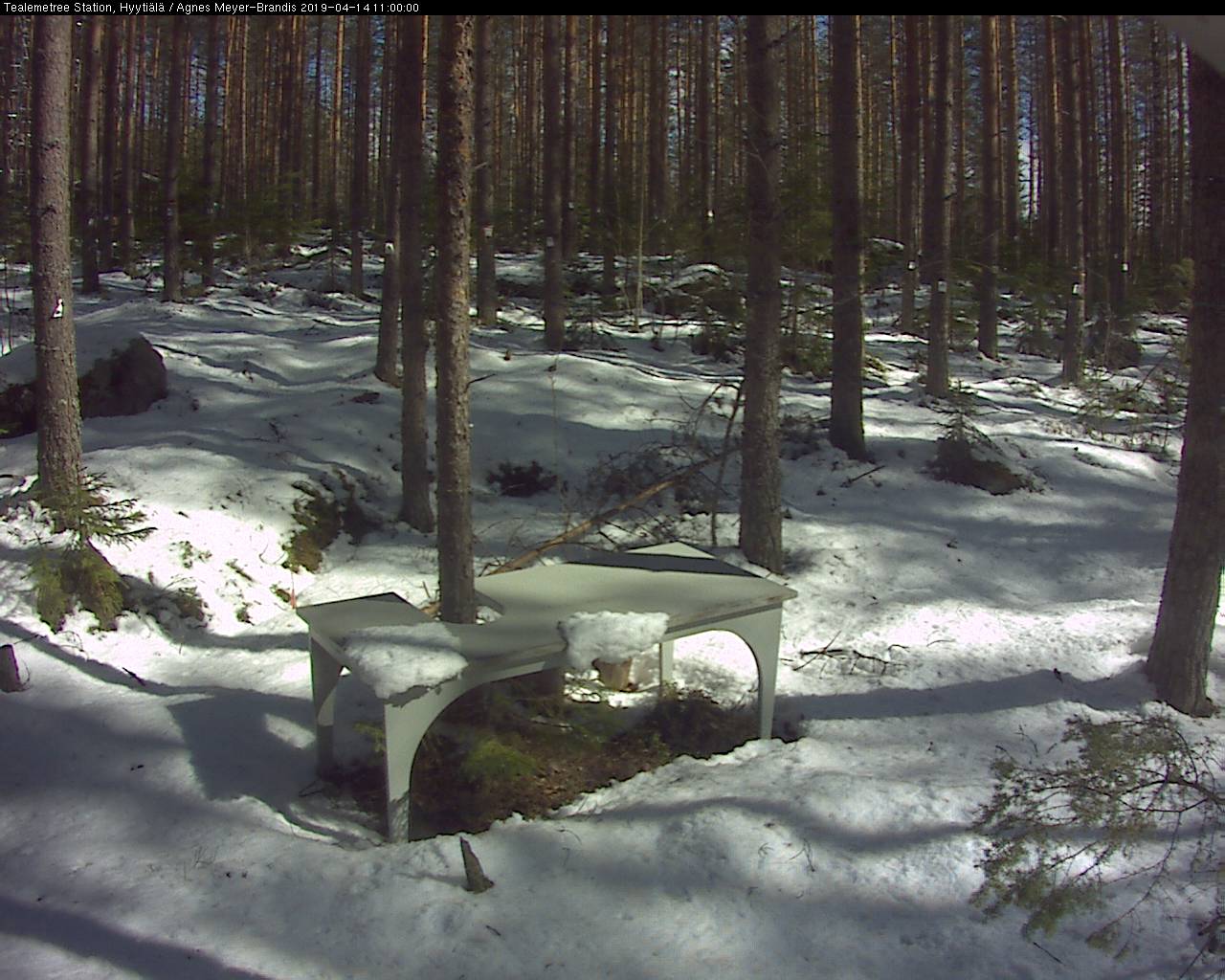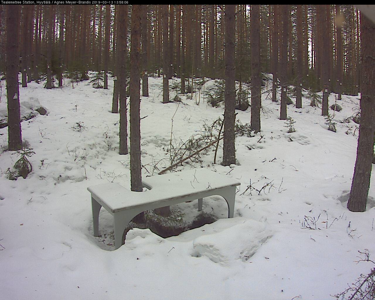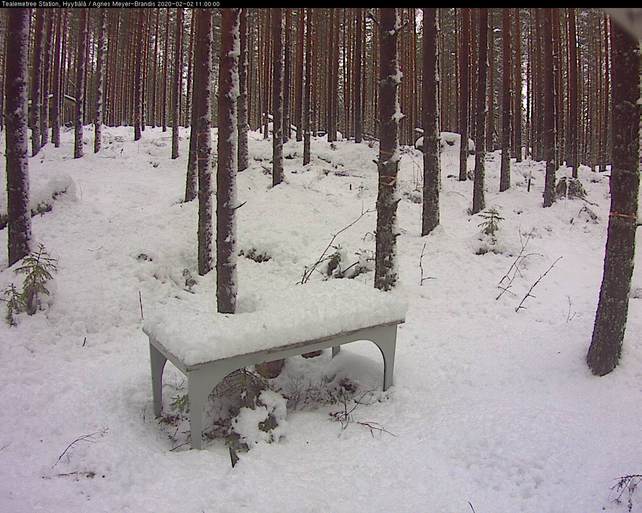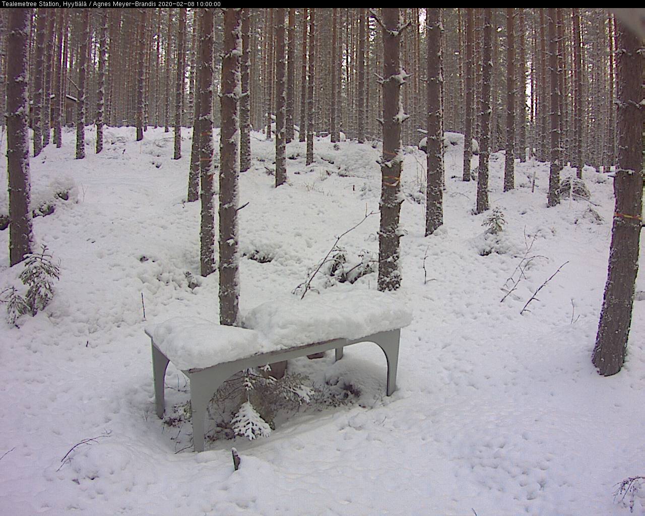 Agnes Meyer-Brandiksen työ Hyytiälässä alkoi tutustumalla aseman muihin tutkijoihin. Pystyäkseen tapaamaan ihmisiä metsässä, hän rakensi pöydän, josta muodostui kohtauspiste ja paikka teehetkille Agneksen ja puun kanssa.