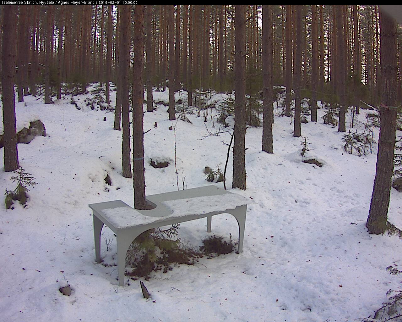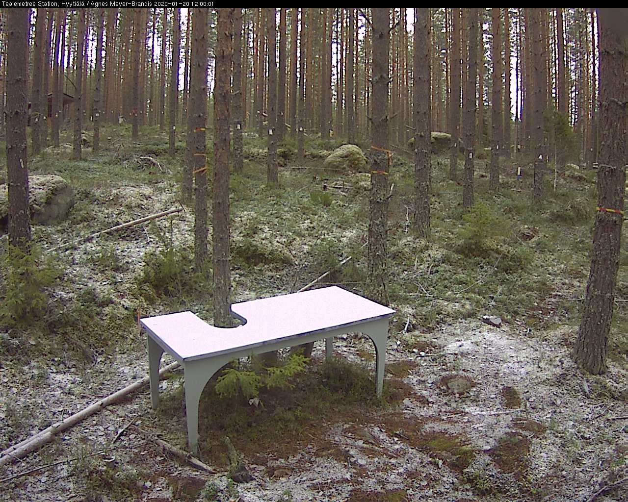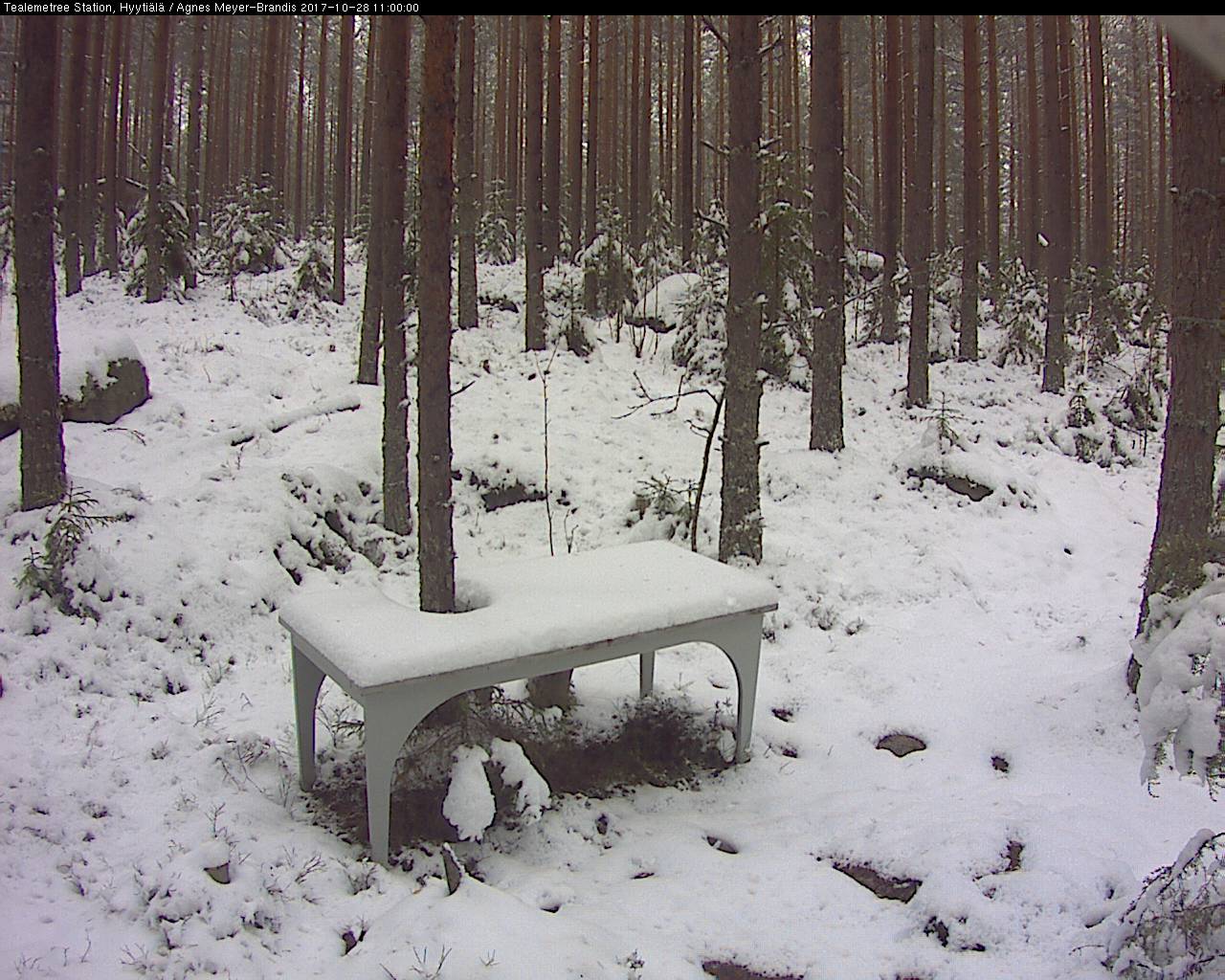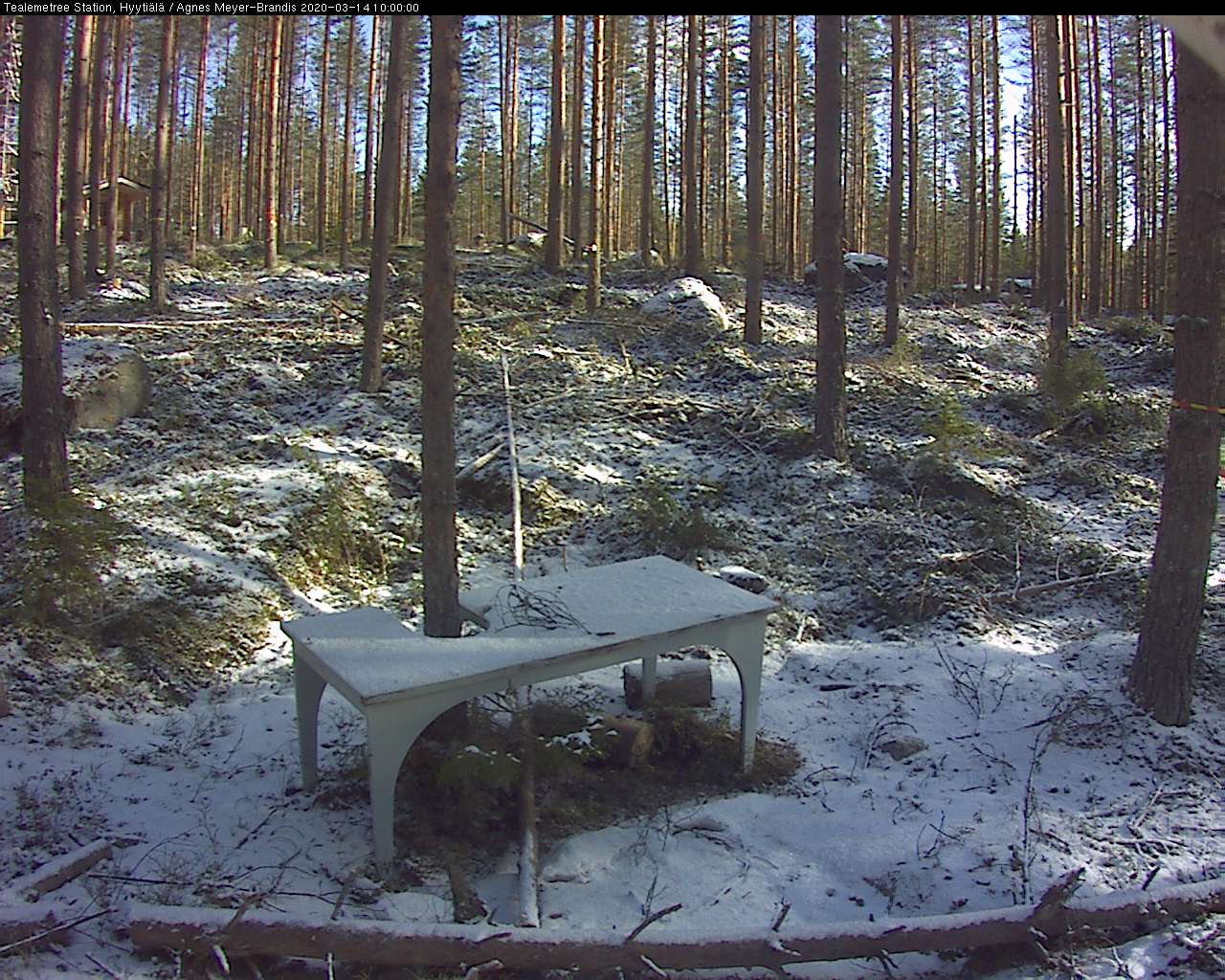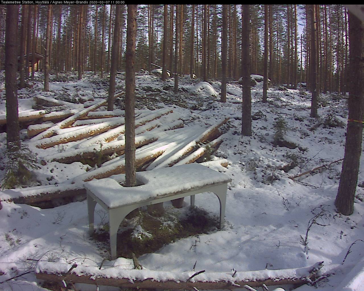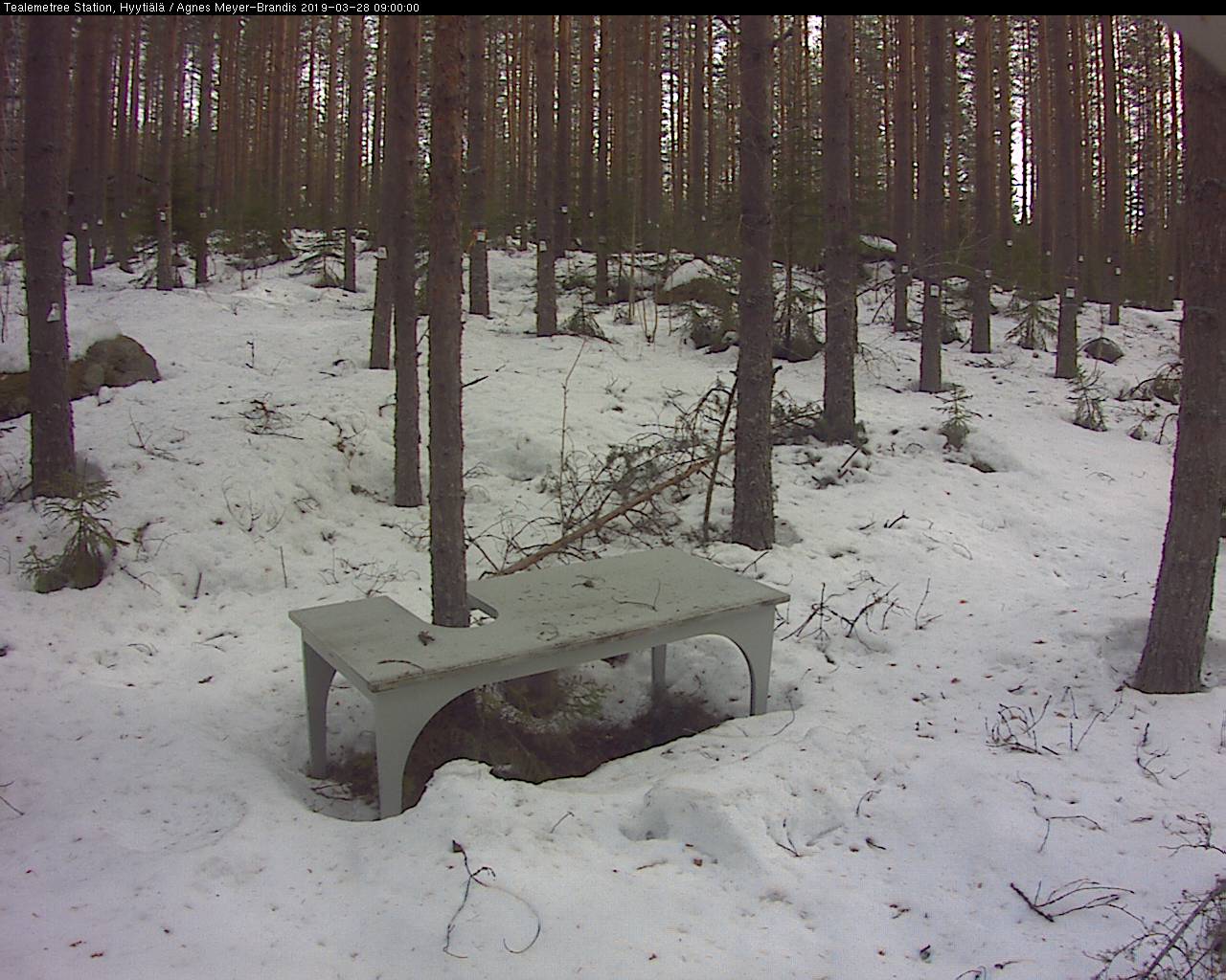 Agnes Meyer-Brandiksen työ Hyytiälässä alkoi tutustumalla aseman muihin tutkijoihin. Pystyäkseen tapaamaan ihmisiä metsässä, hän rakensi pöydän, josta muodostui kohtauspiste ja paikka teehetkille Agneksen ja puun kanssa.