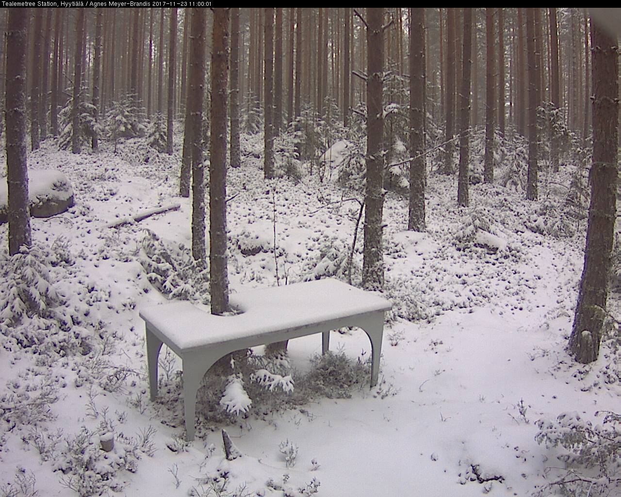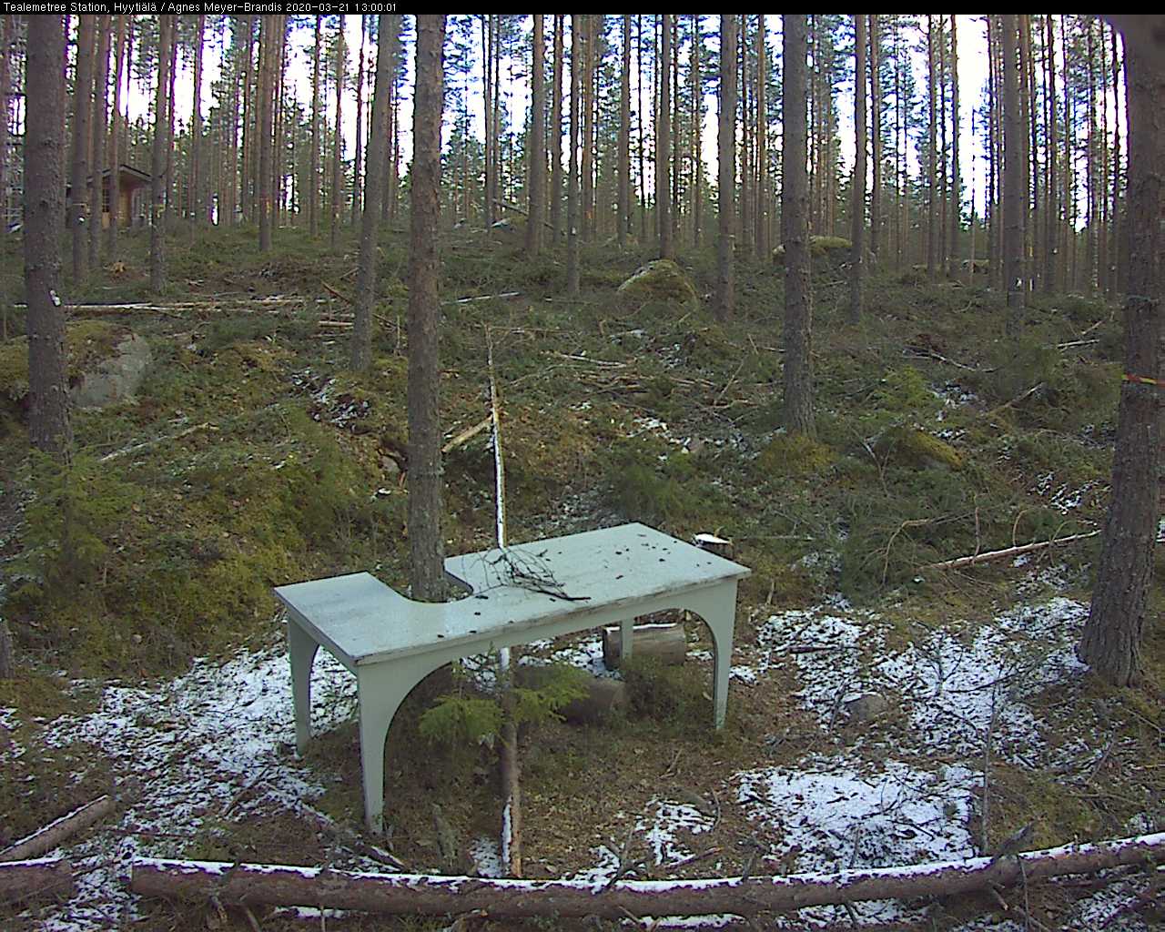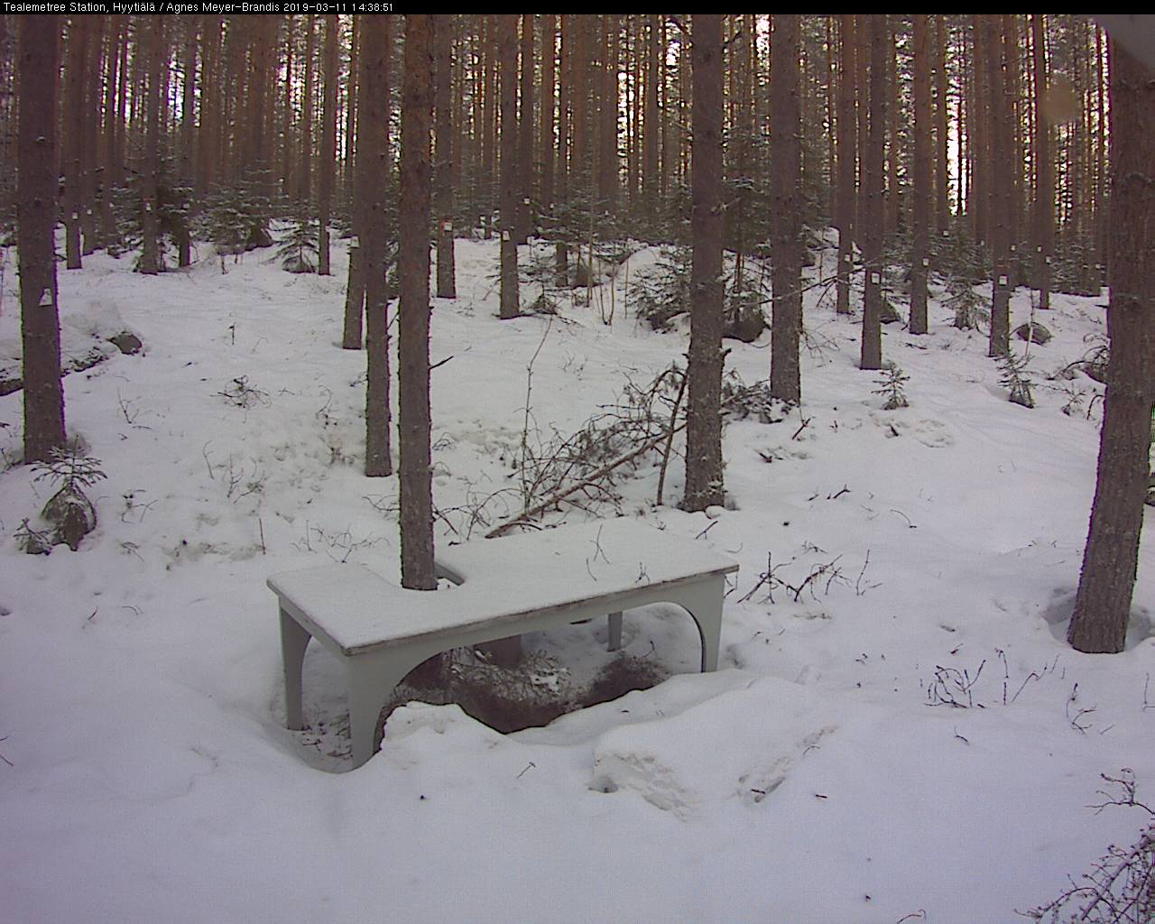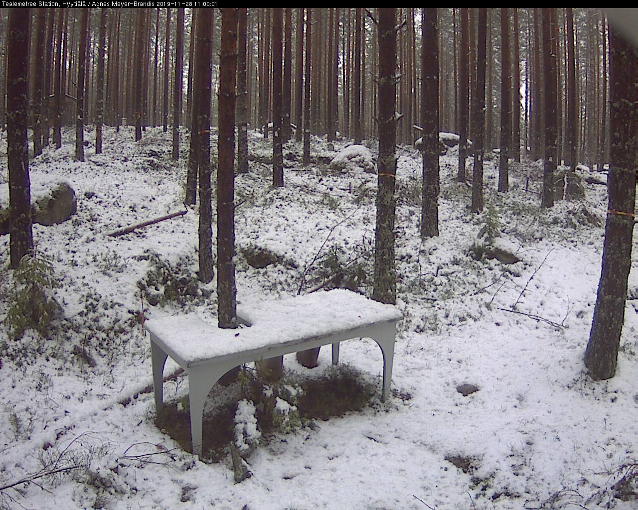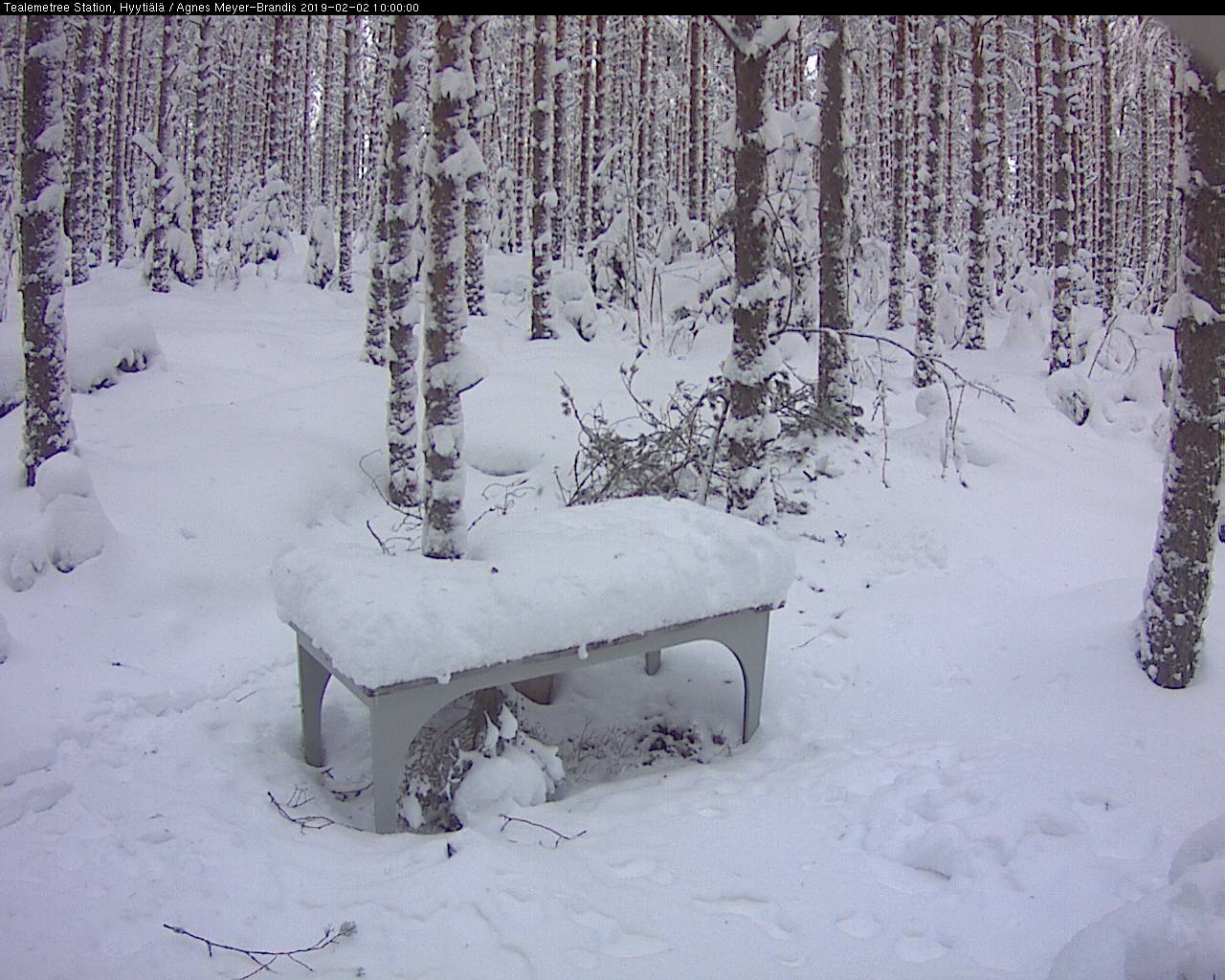 Agnes Meyer-Brandiksen työ Hyytiälässä alkoi tutustumalla aseman muihin tutkijoihin. Pystyäkseen tapaamaan ihmisiä metsässä, hän rakensi pöydän, josta muodostui kohtauspiste ja paikka teehetkille Agneksen ja puun kanssa.