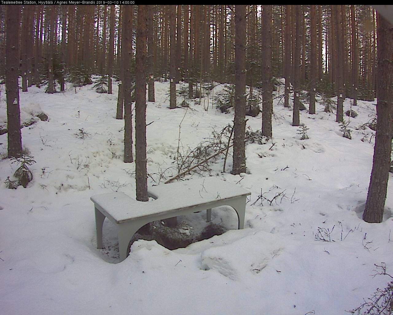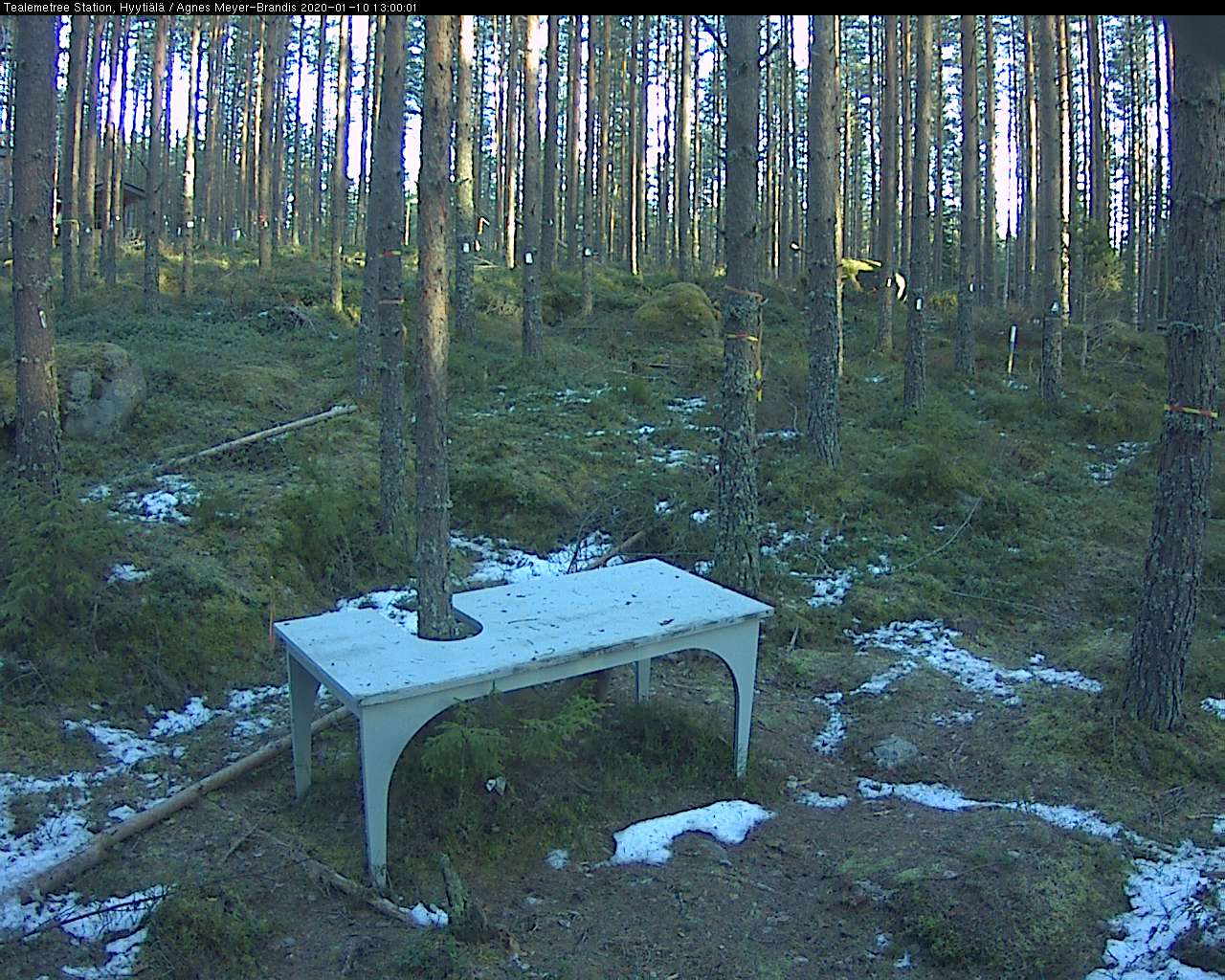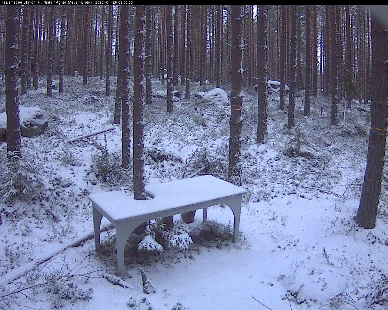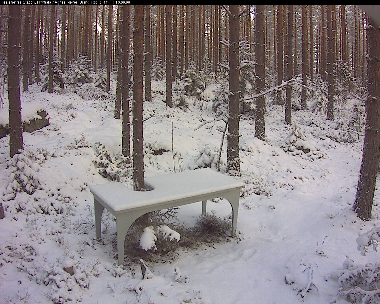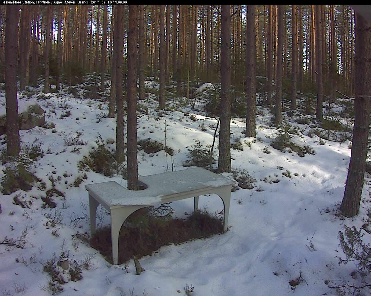 Agnes Meyer-Brandiksen työ Hyytiälässä alkoi tutustumalla aseman muihin tutkijoihin. Pystyäkseen tapaamaan ihmisiä metsässä, hän rakensi pöydän, josta muodostui kohtauspiste ja paikka teehetkille Agneksen ja puun kanssa.