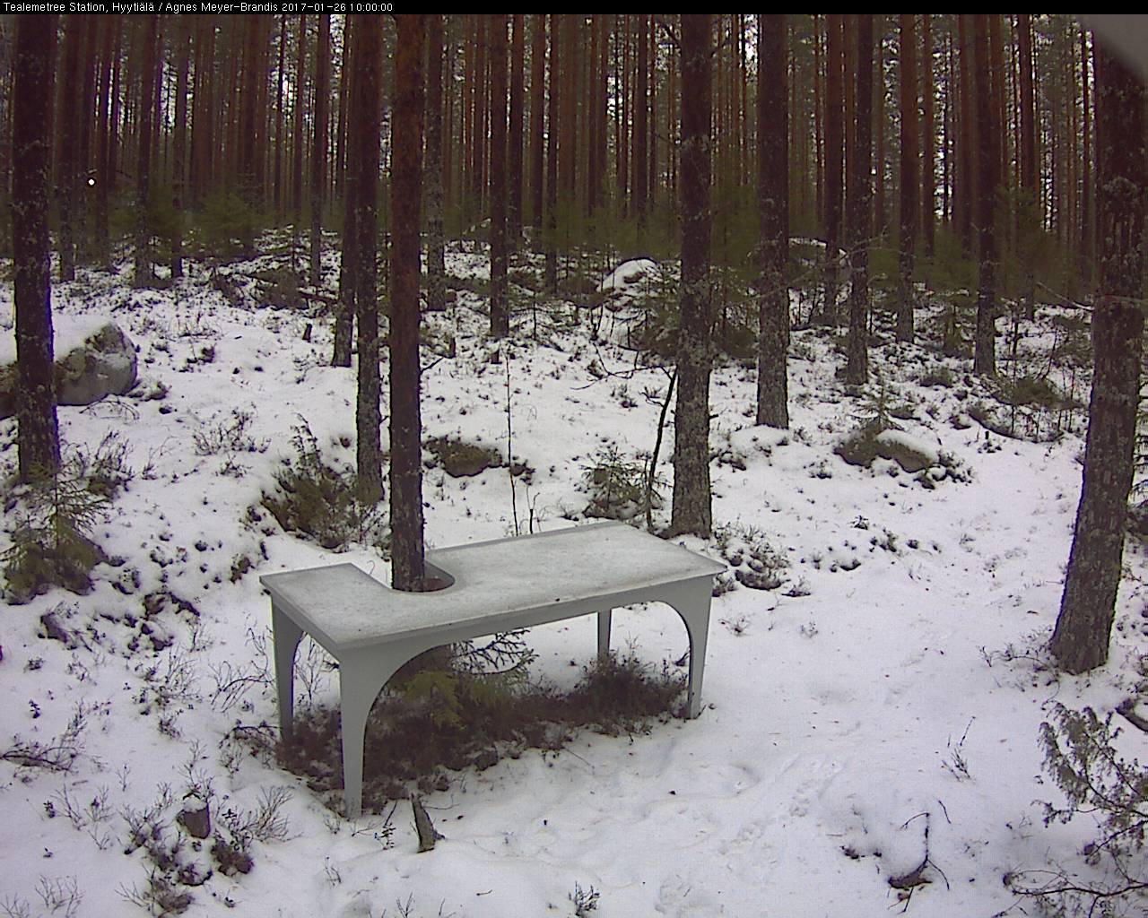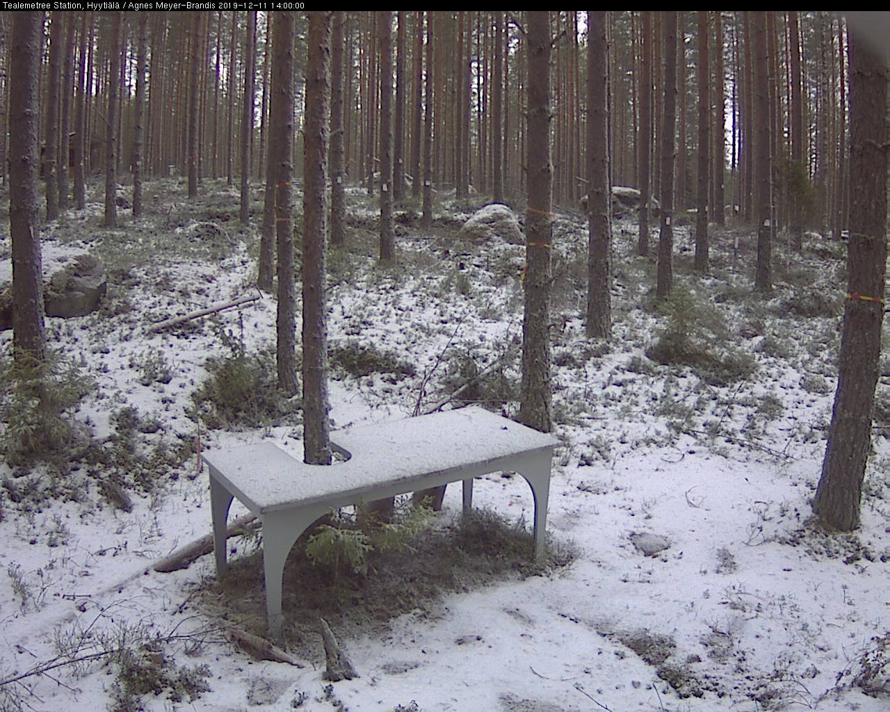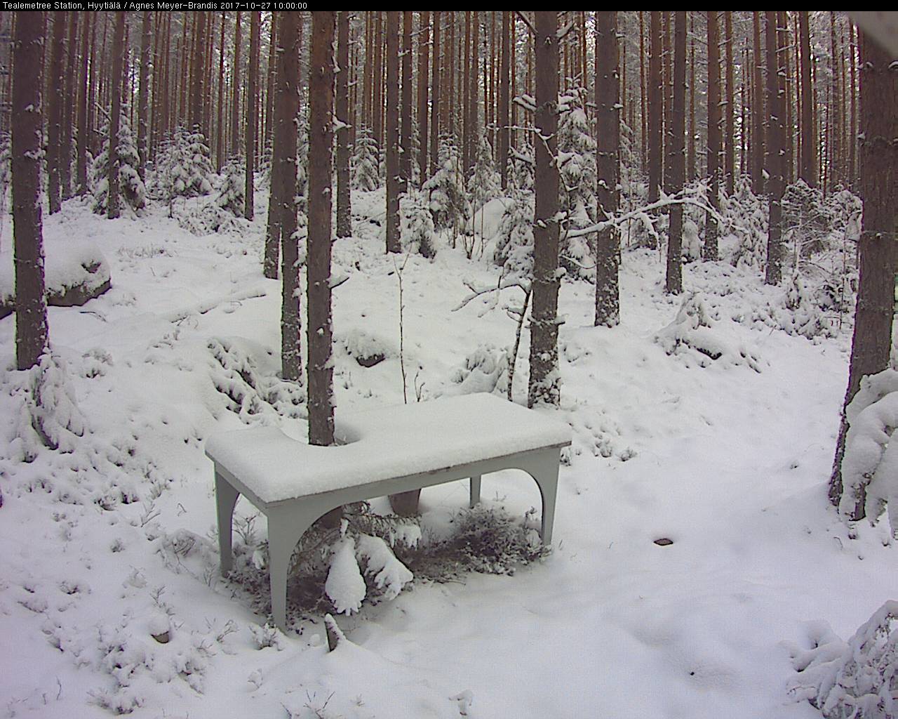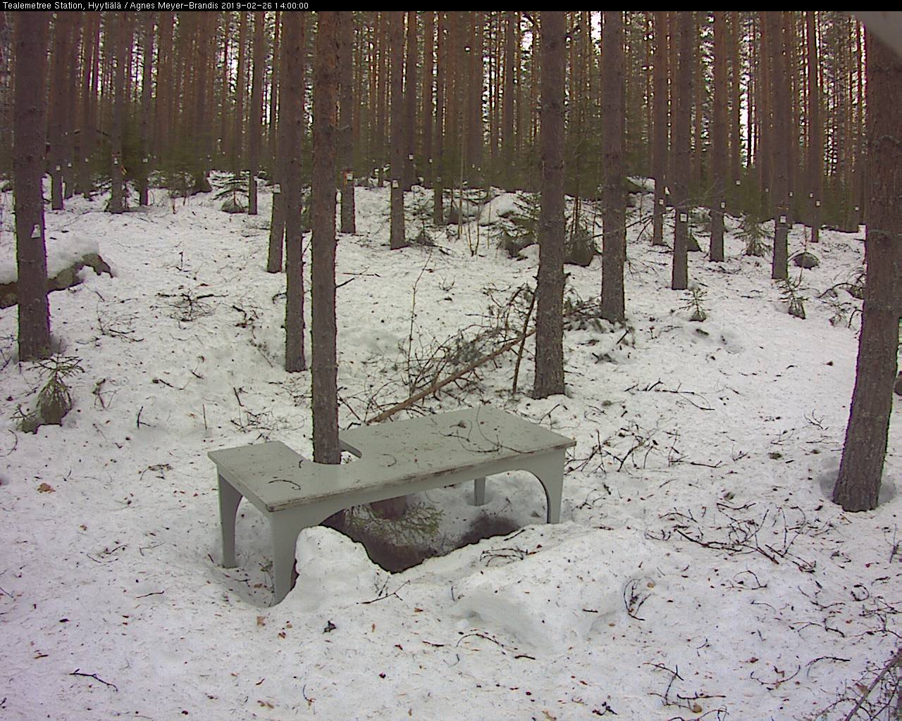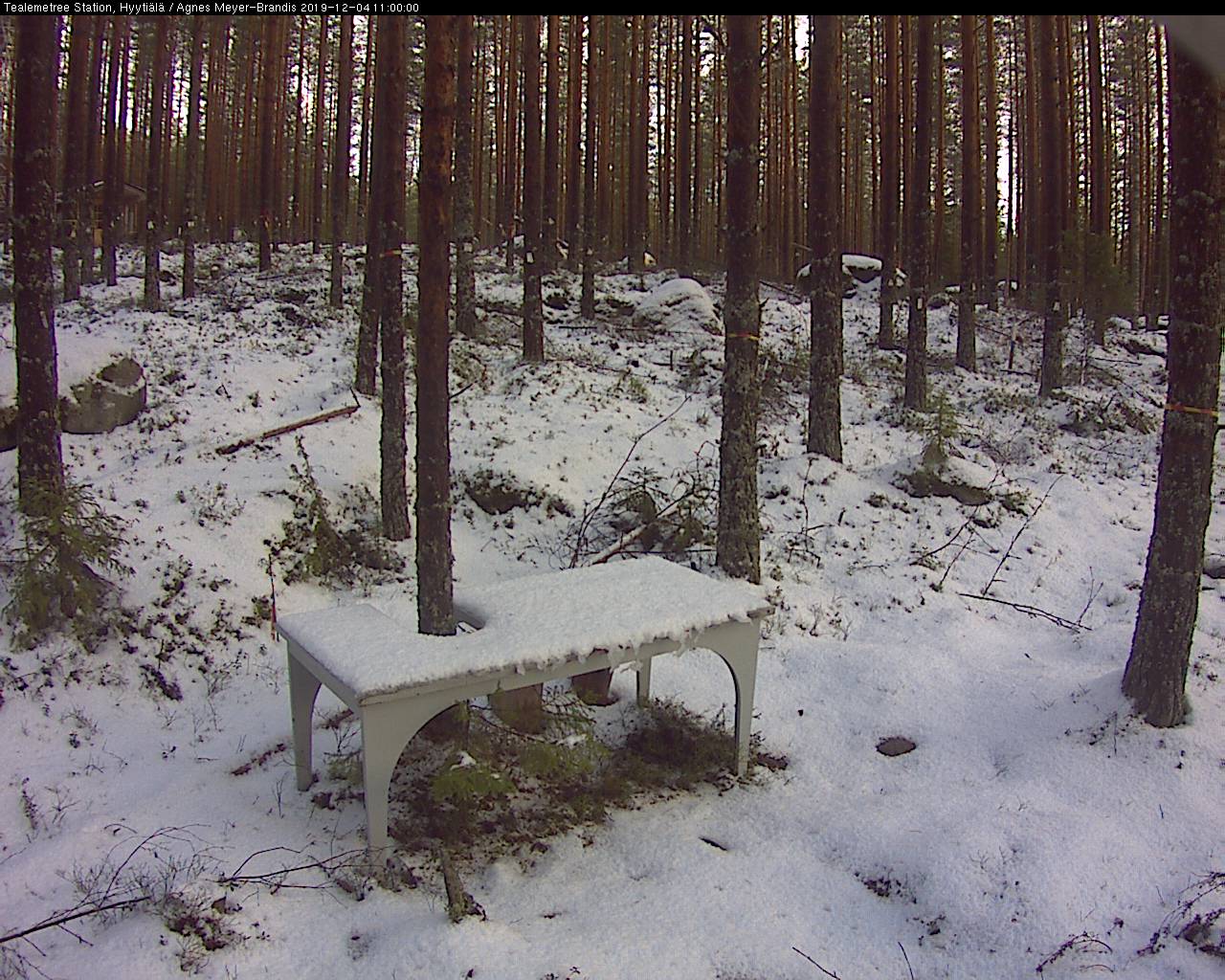 Agnes Meyer-Brandiksen työ Hyytiälässä alkoi tutustumalla aseman muihin tutkijoihin. Pystyäkseen tapaamaan ihmisiä metsässä, hän rakensi pöydän, josta muodostui kohtauspiste ja paikka teehetkille Agneksen ja puun kanssa.