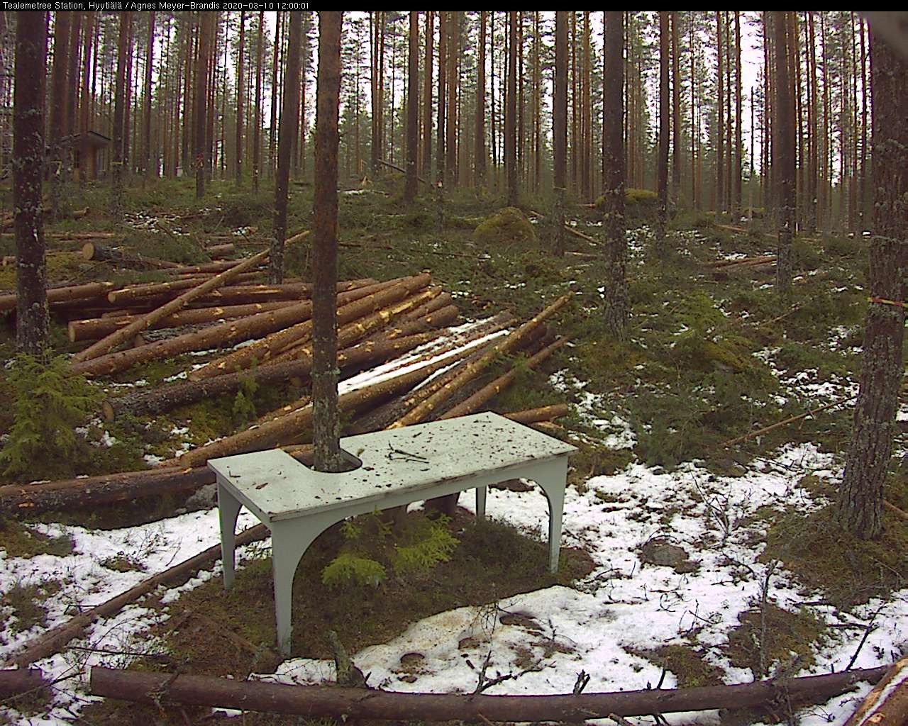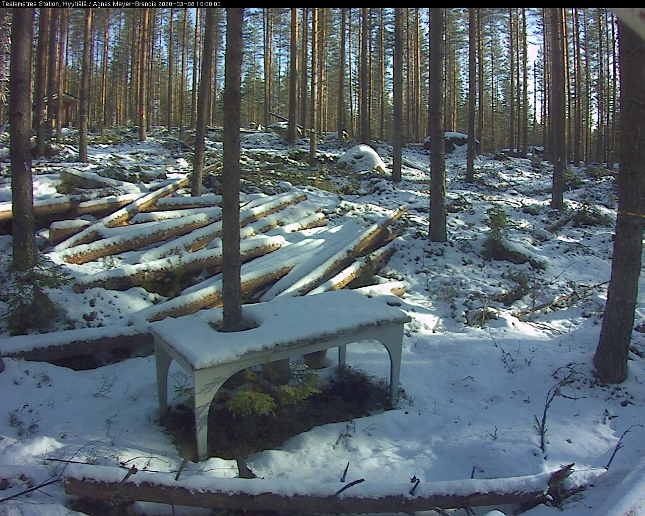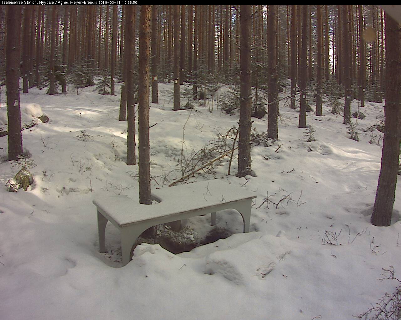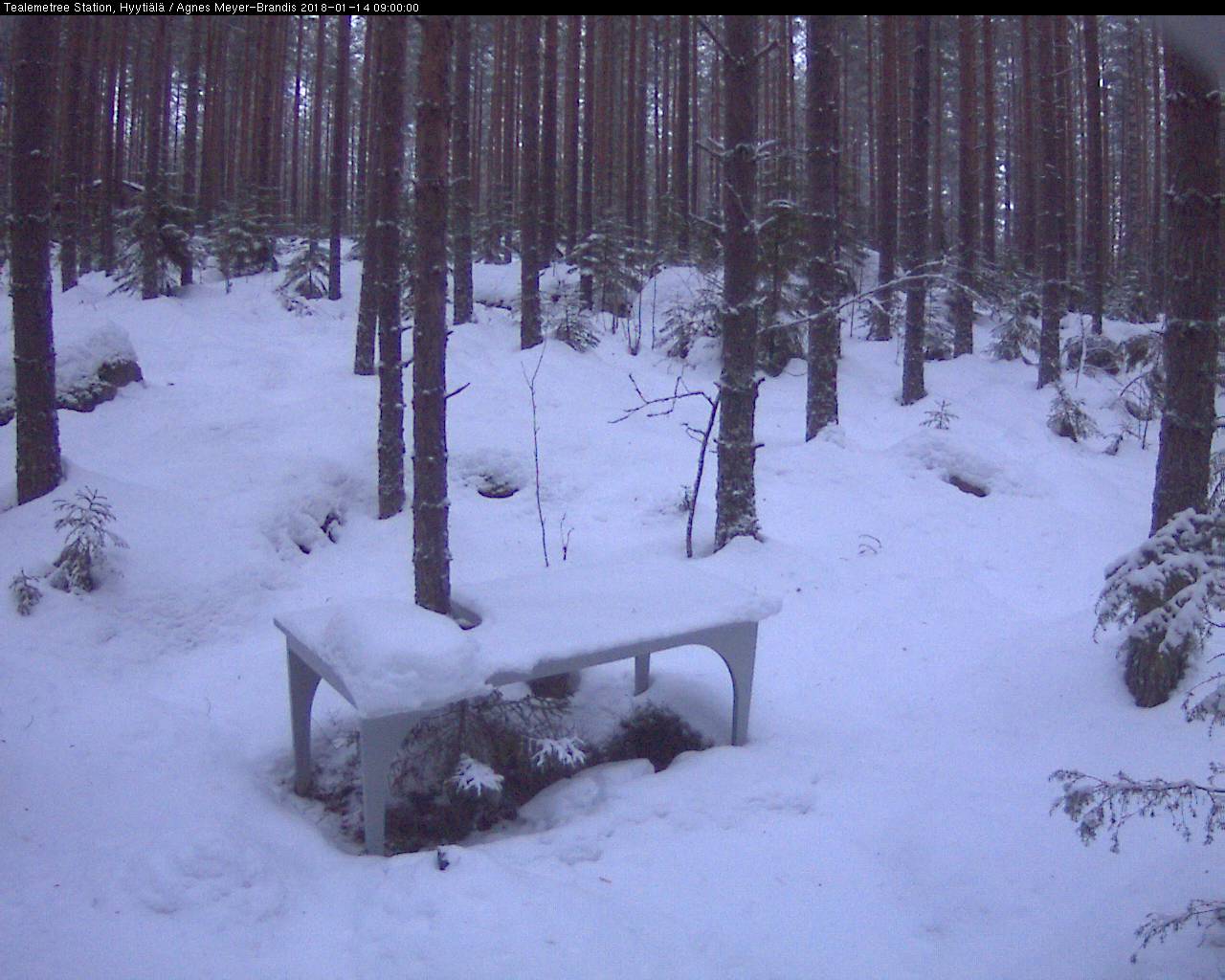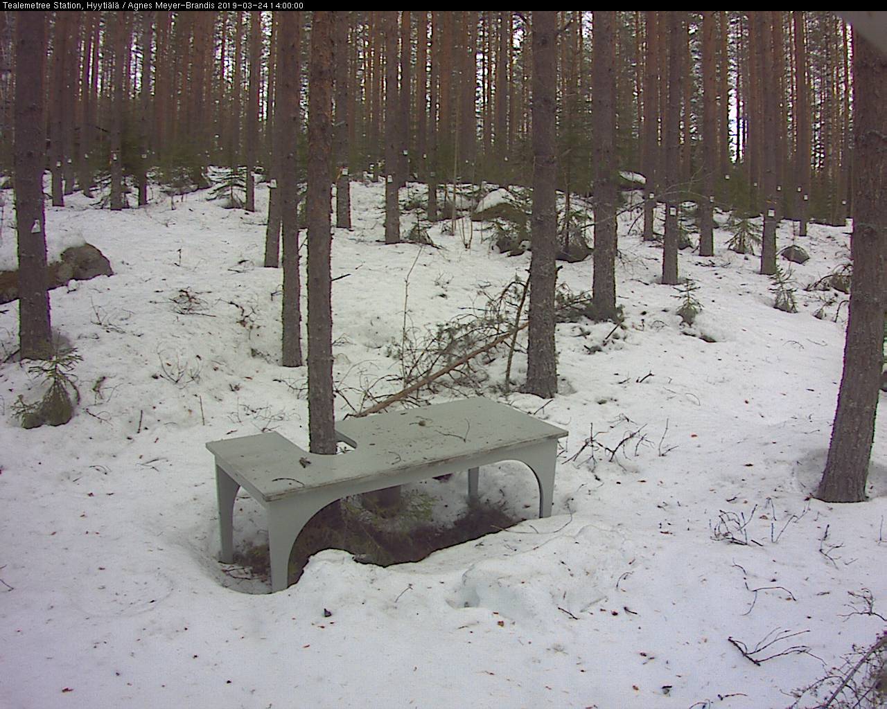 Agnes Meyer-Brandiksen työ Hyytiälässä alkoi tutustumalla aseman muihin tutkijoihin. Pystyäkseen tapaamaan ihmisiä metsässä, hän rakensi pöydän, josta muodostui kohtauspiste ja paikka teehetkille Agneksen ja puun kanssa.
