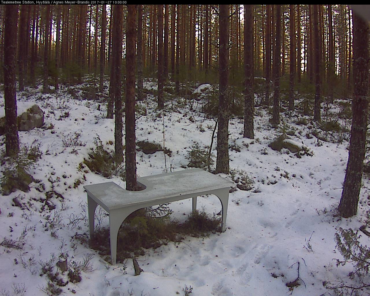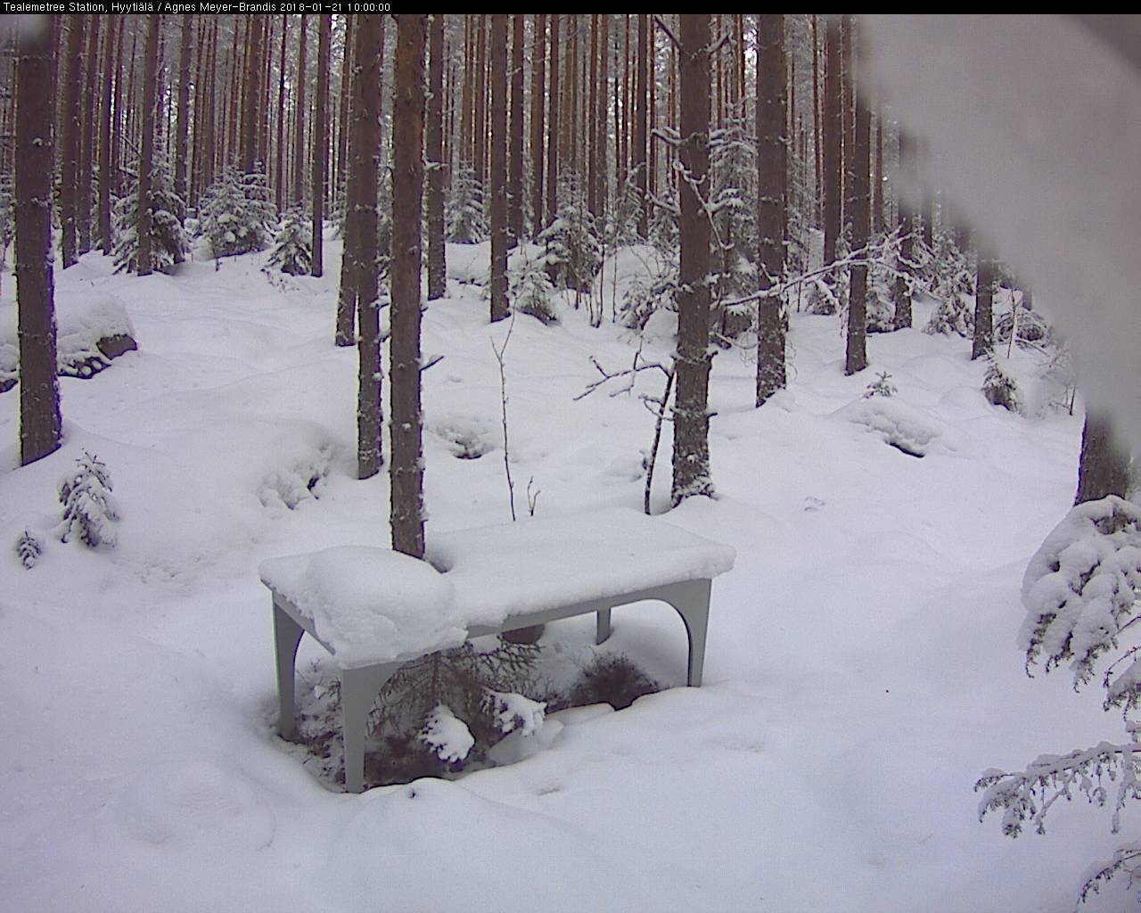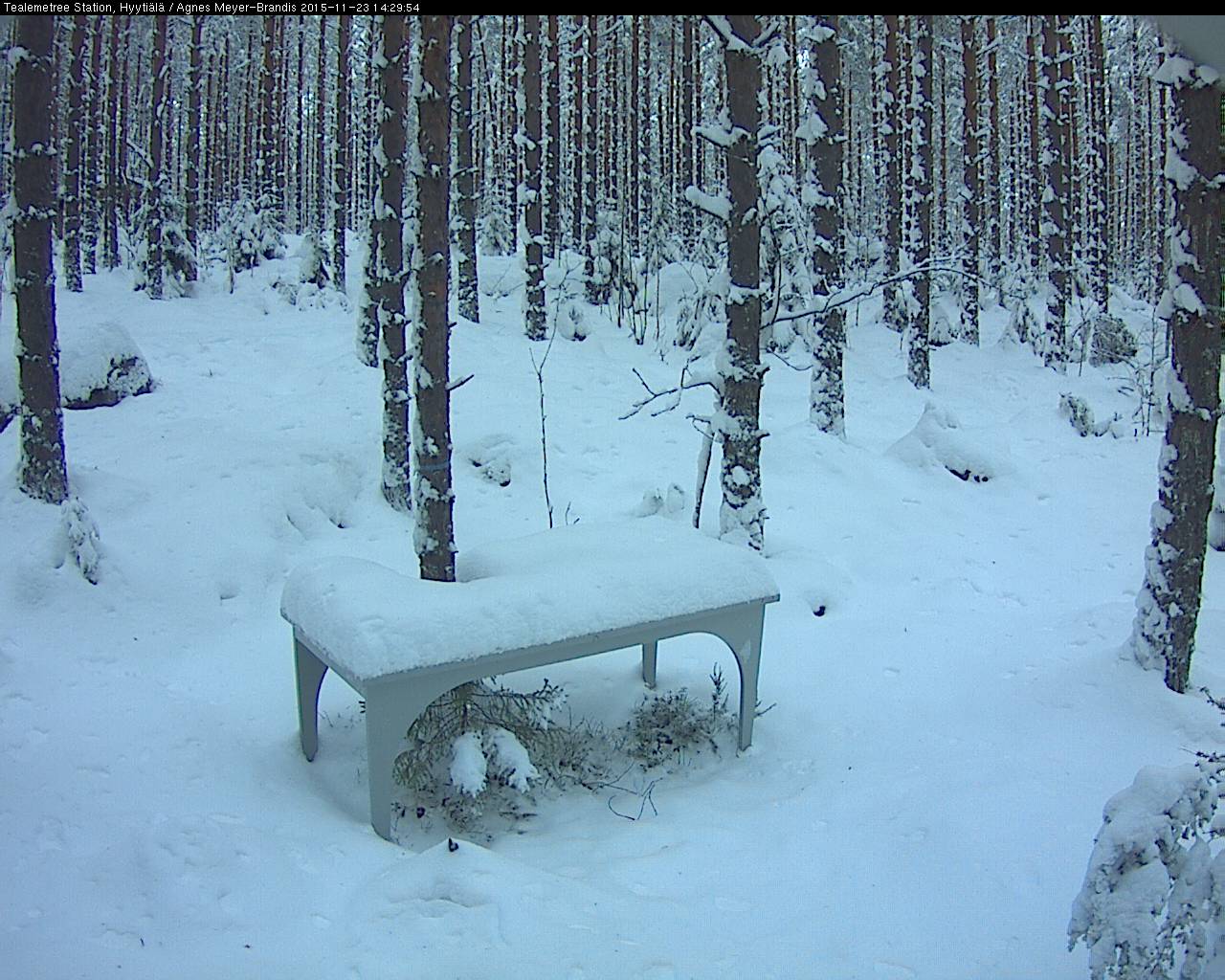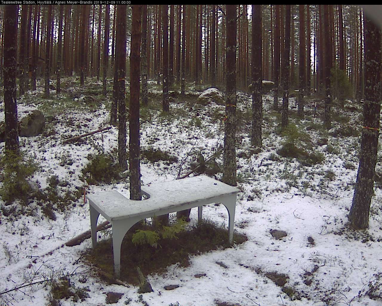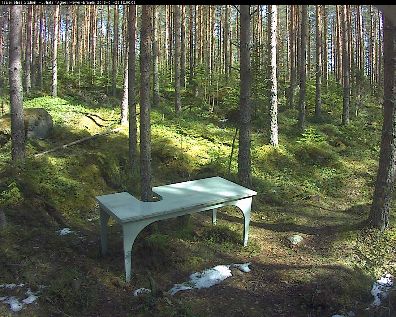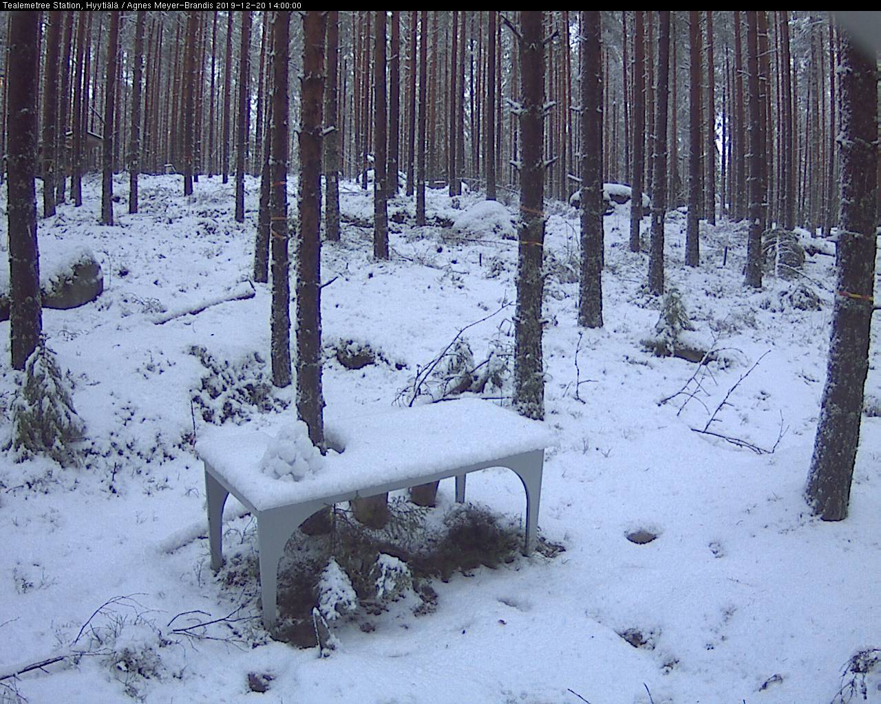 Agnes Meyer-Brandiksen työ Hyytiälässä alkoi tutustumalla aseman muihin tutkijoihin. Pystyäkseen tapaamaan ihmisiä metsässä, hän rakensi pöydän, josta muodostui kohtauspiste ja paikka teehetkille Agneksen ja puun kanssa.