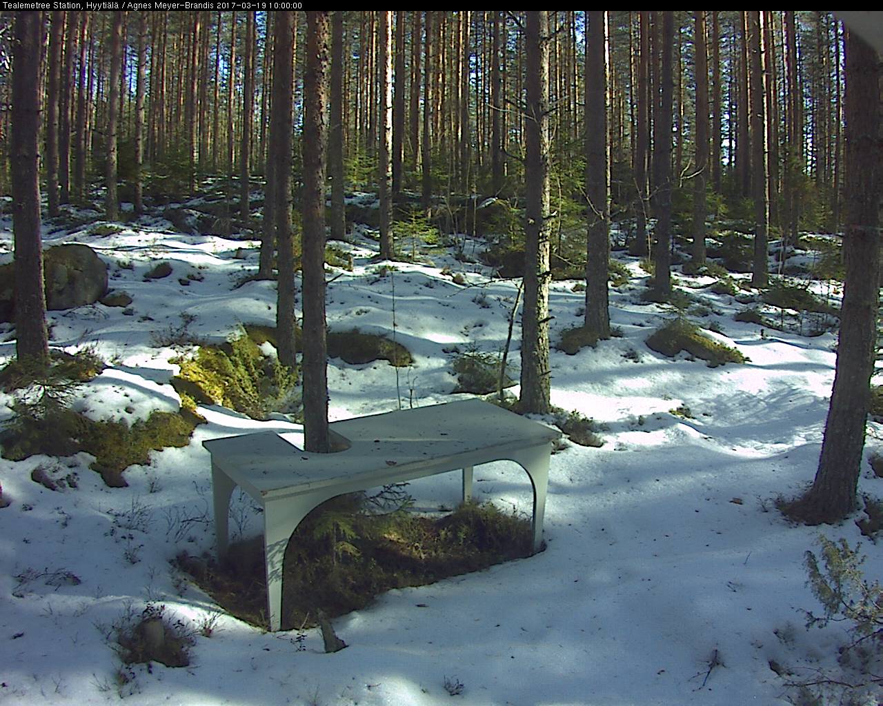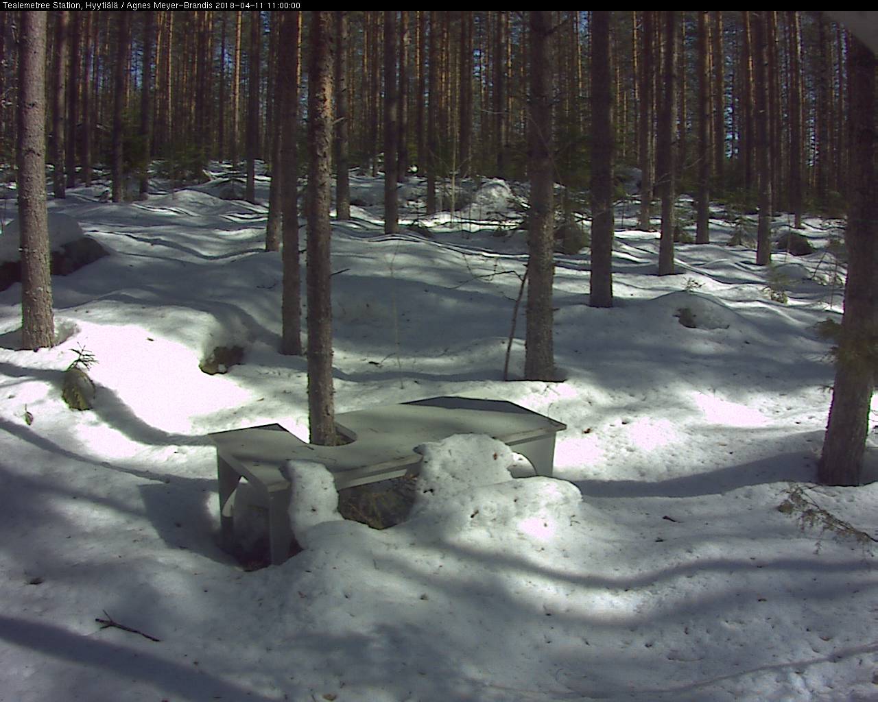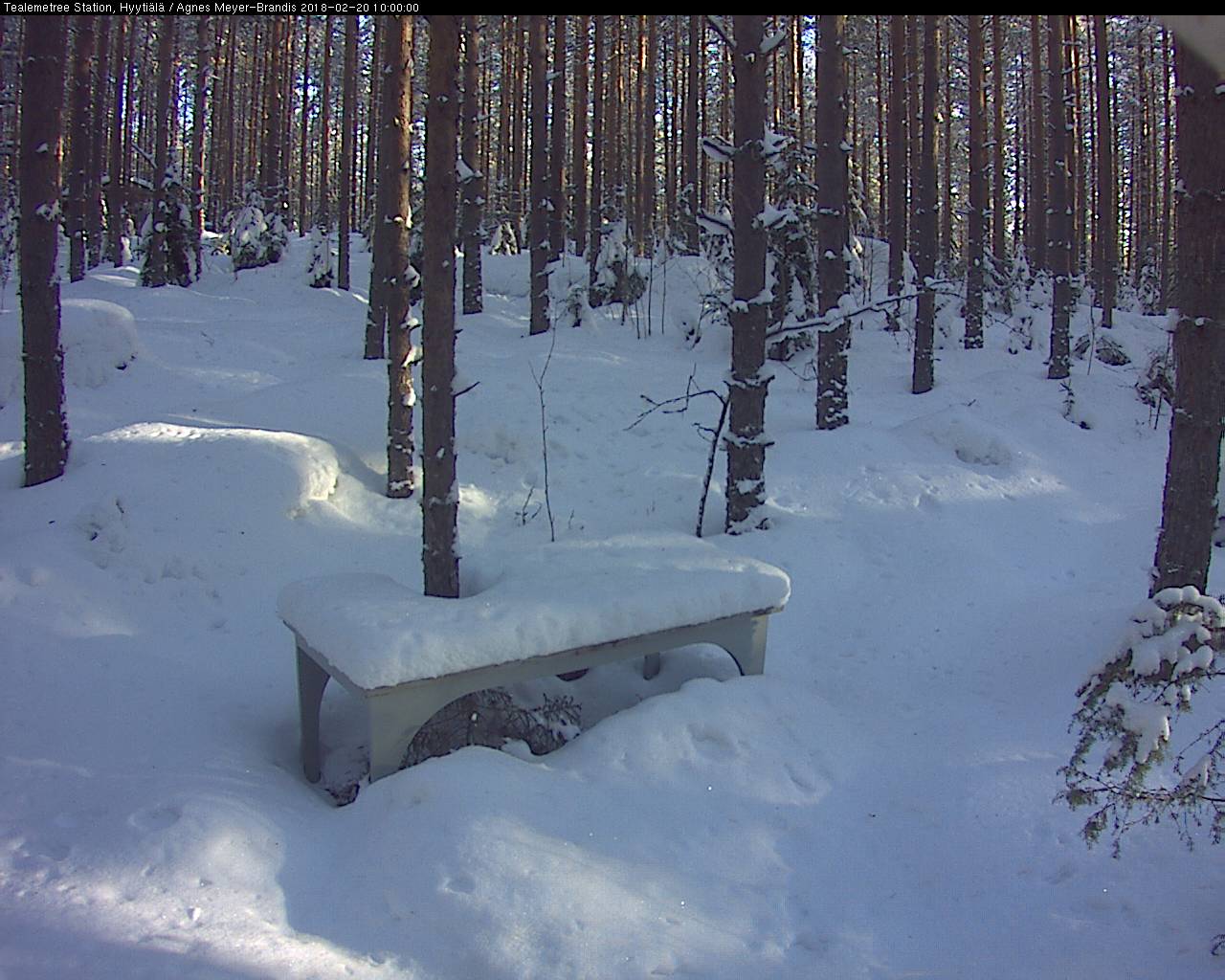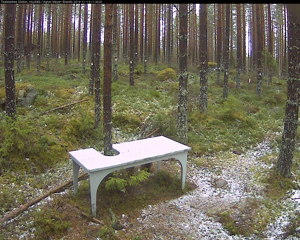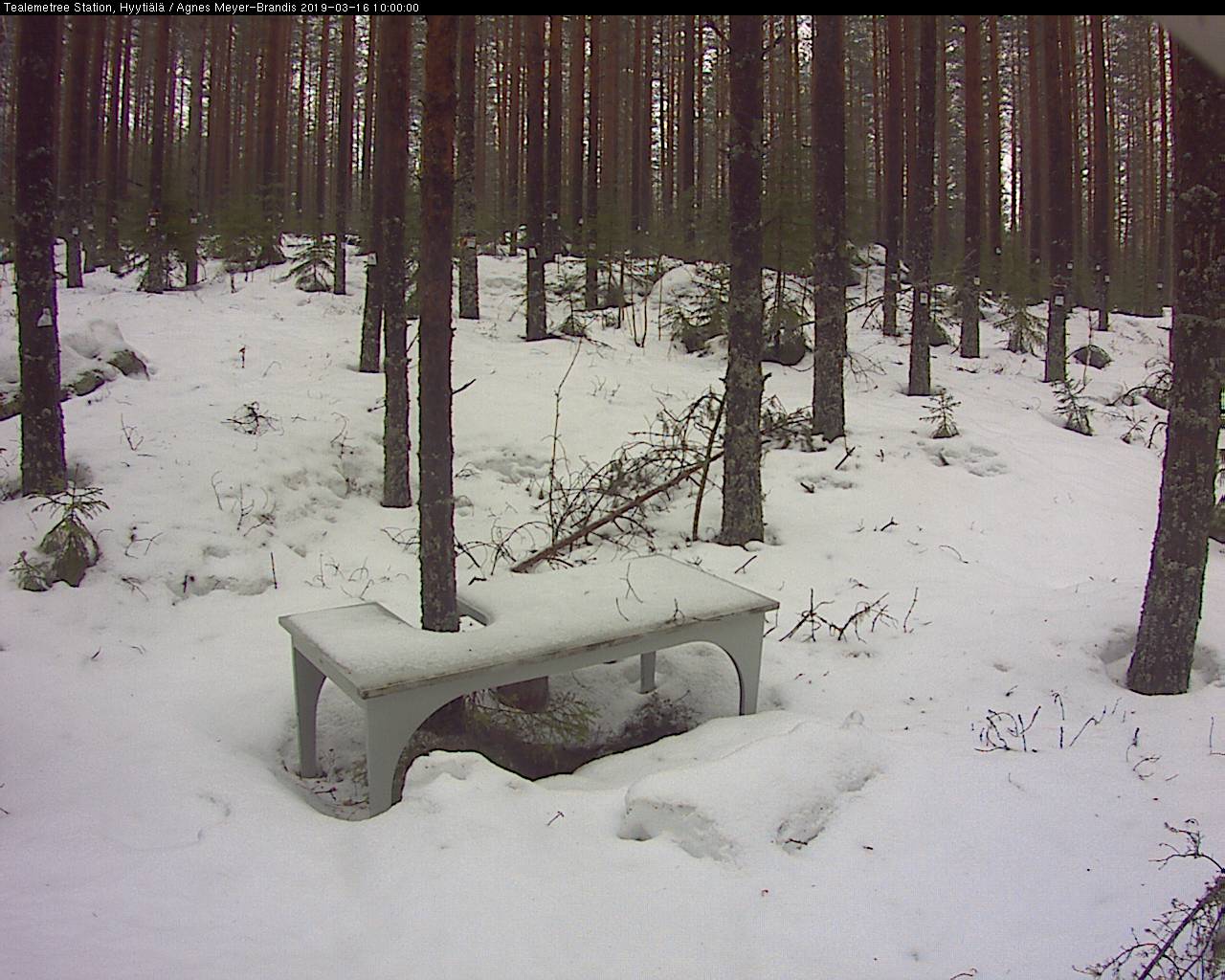 Agnes Meyer-Brandiksen työ Hyytiälässä alkoi tutustumalla aseman muihin tutkijoihin. Pystyäkseen tapaamaan ihmisiä metsässä, hän rakensi pöydän, josta muodostui kohtauspiste ja paikka teehetkille Agneksen ja puun kanssa.