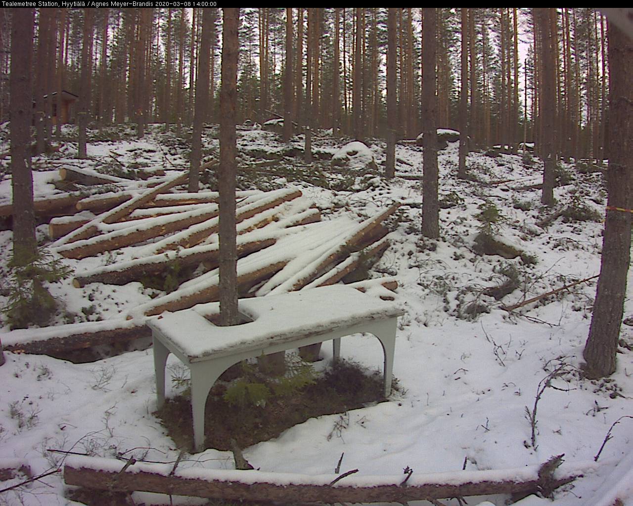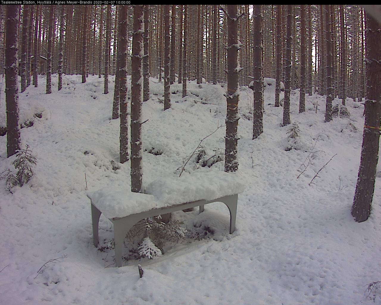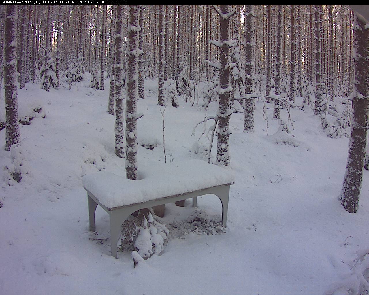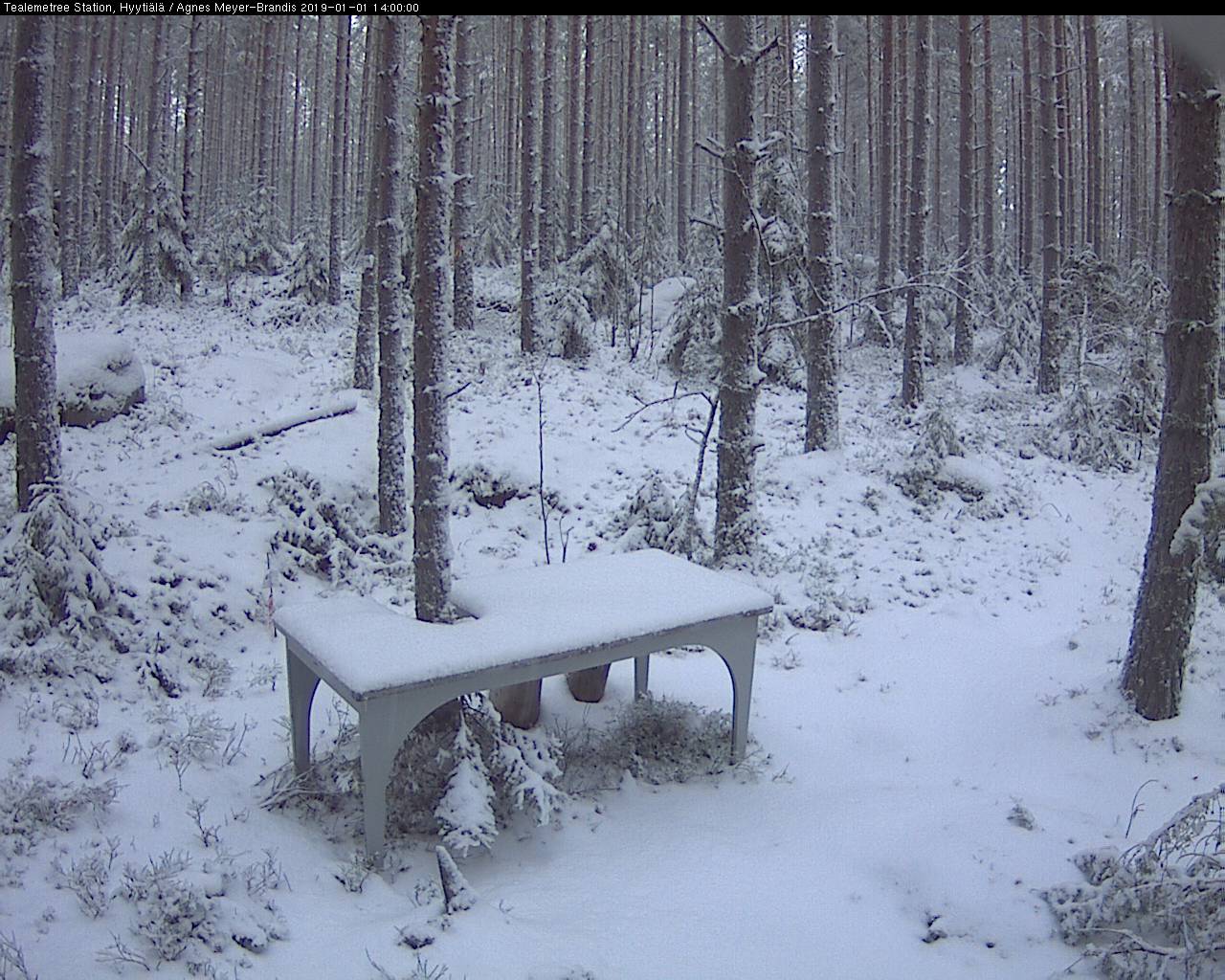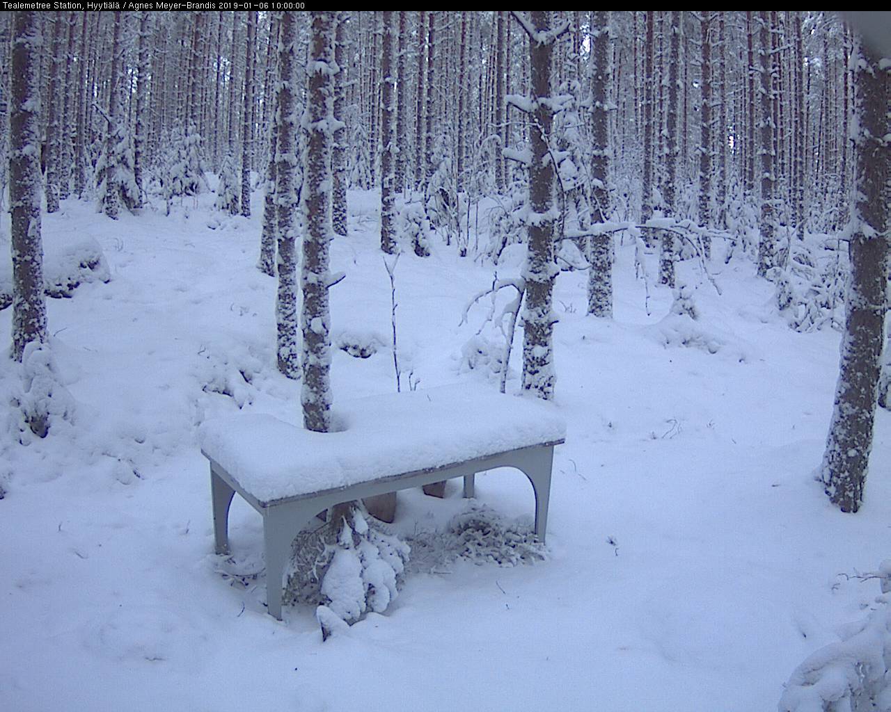 Agnes Meyer-Brandiksen työ Hyytiälässä alkoi tutustumalla aseman muihin tutkijoihin. Pystyäkseen tapaamaan ihmisiä metsässä, hän rakensi pöydän, josta muodostui kohtauspiste ja paikka teehetkille Agneksen ja puun kanssa.