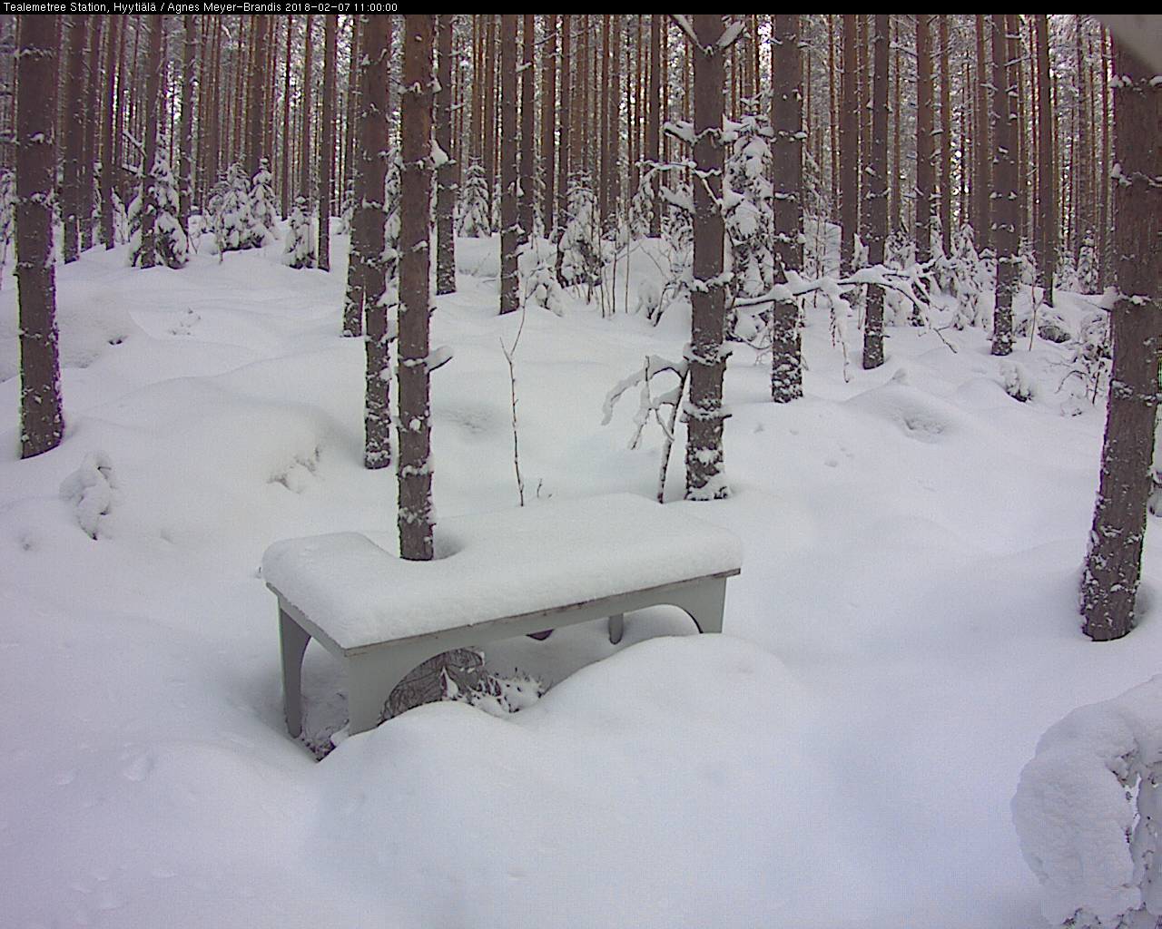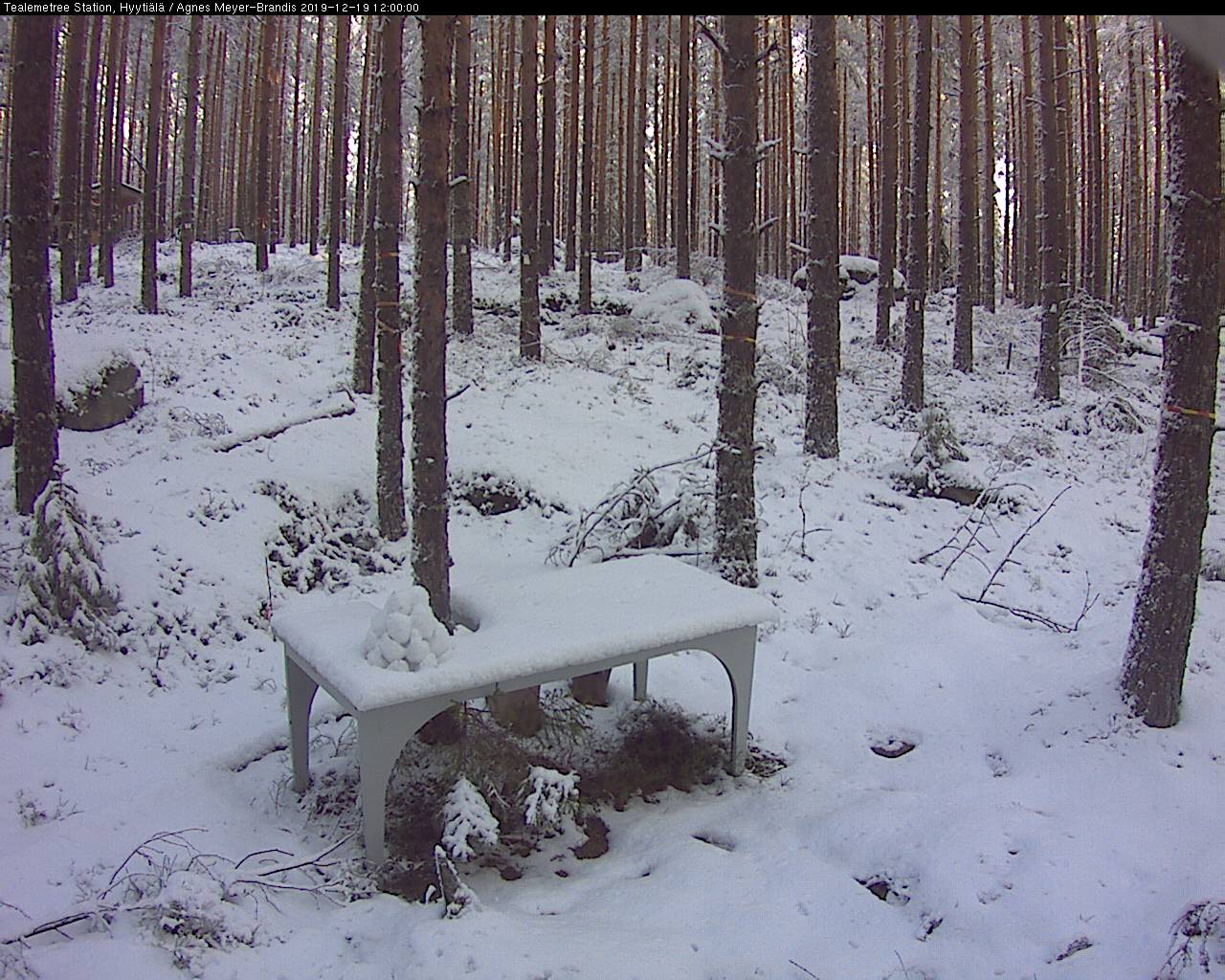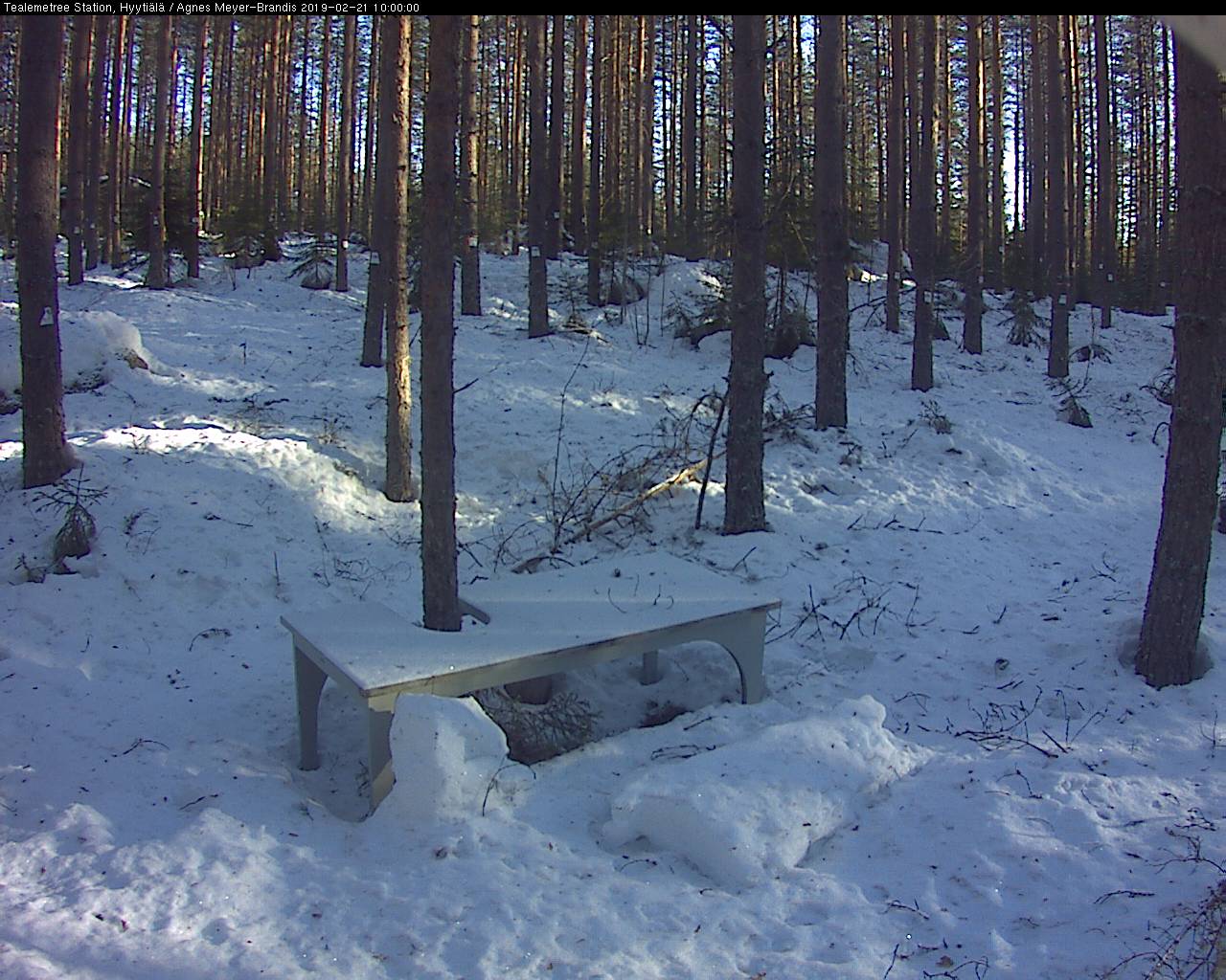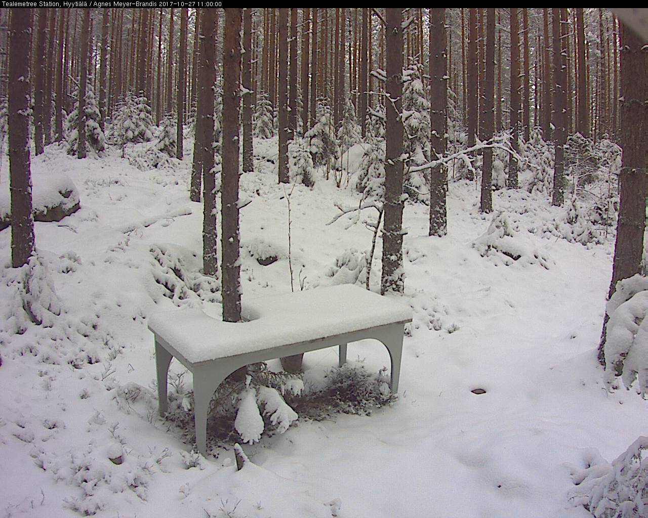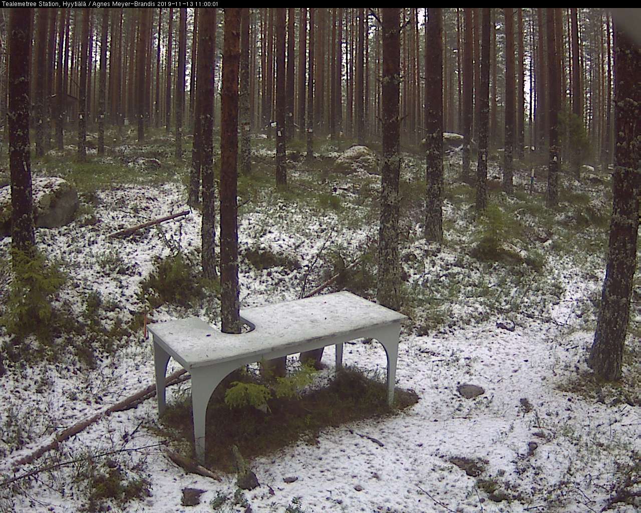 Agnes Meyer-Brandiksen työ Hyytiälässä alkoi tutustumalla aseman muihin tutkijoihin. Pystyäkseen tapaamaan ihmisiä metsässä, hän rakensi pöydän, josta muodostui kohtauspiste ja paikka teehetkille Agneksen ja puun kanssa.