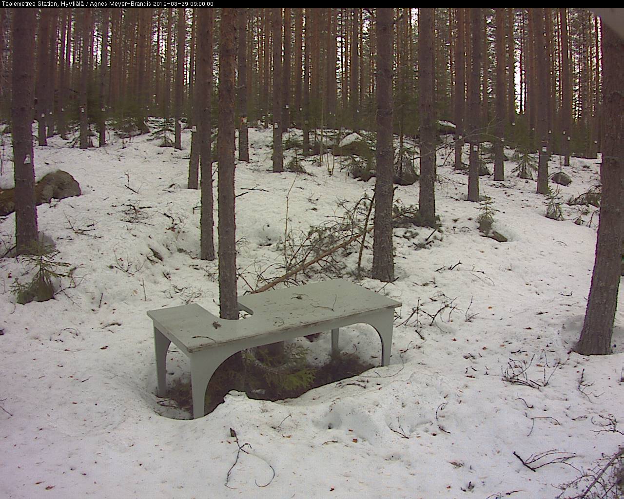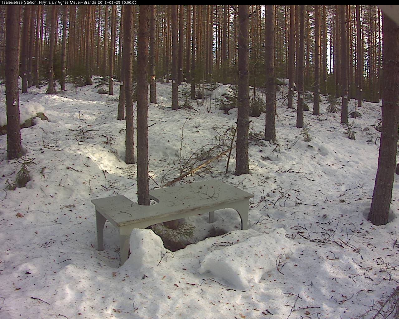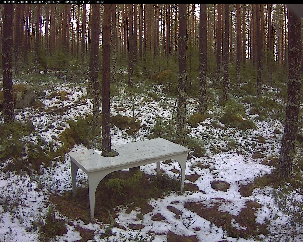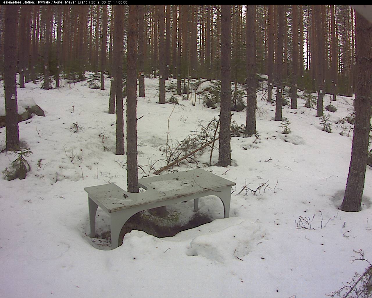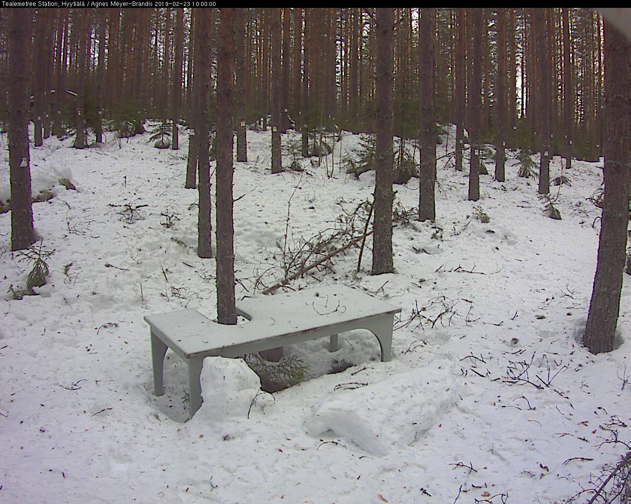 Agnes Meyer-Brandiksen työ Hyytiälässä alkoi tutustumalla aseman muihin tutkijoihin. Pystyäkseen tapaamaan ihmisiä metsässä, hän rakensi pöydän, josta muodostui kohtauspiste ja paikka teehetkille Agneksen ja puun kanssa.