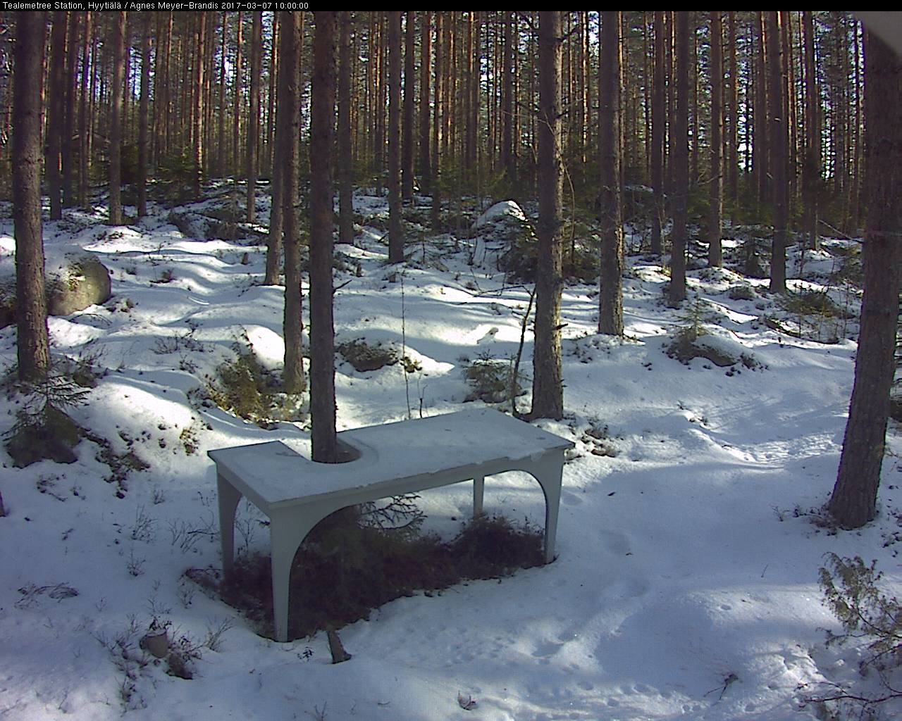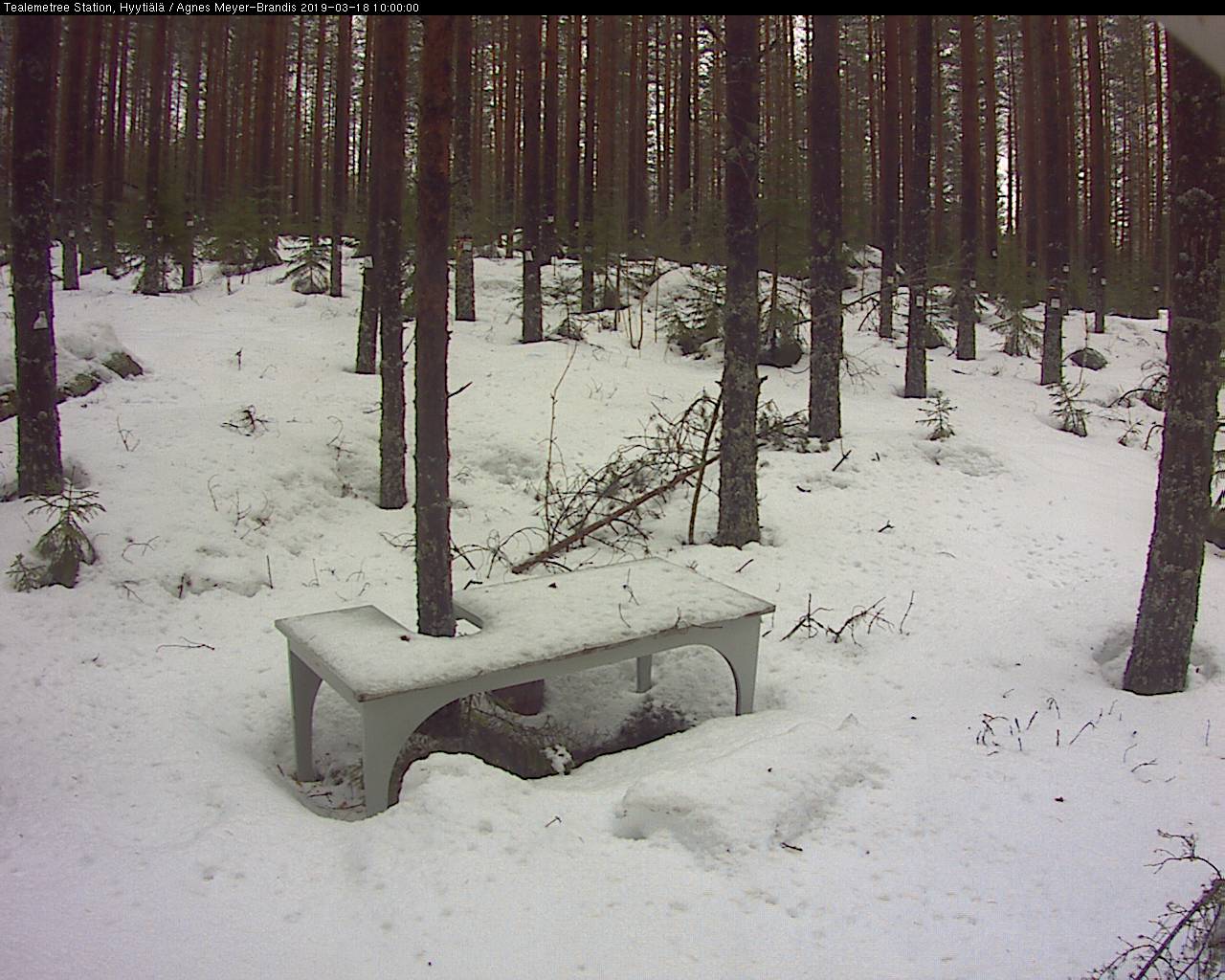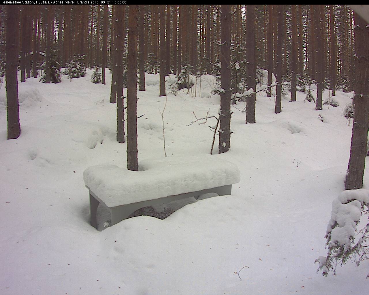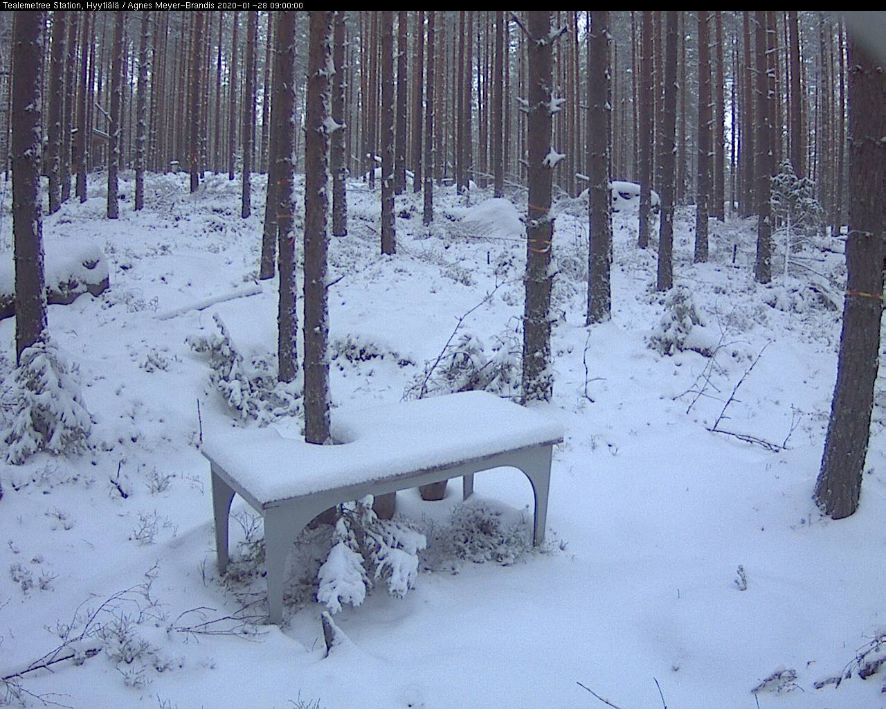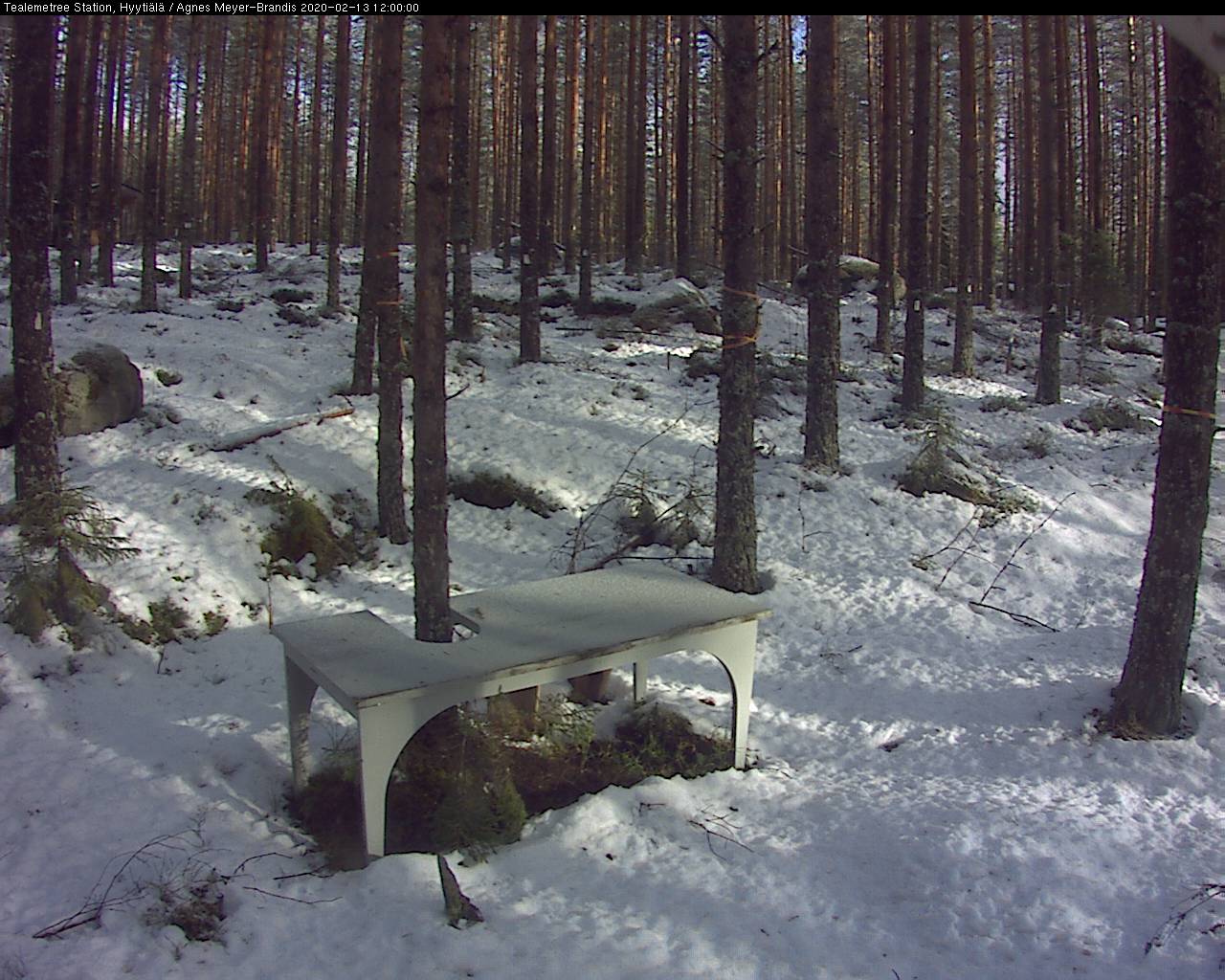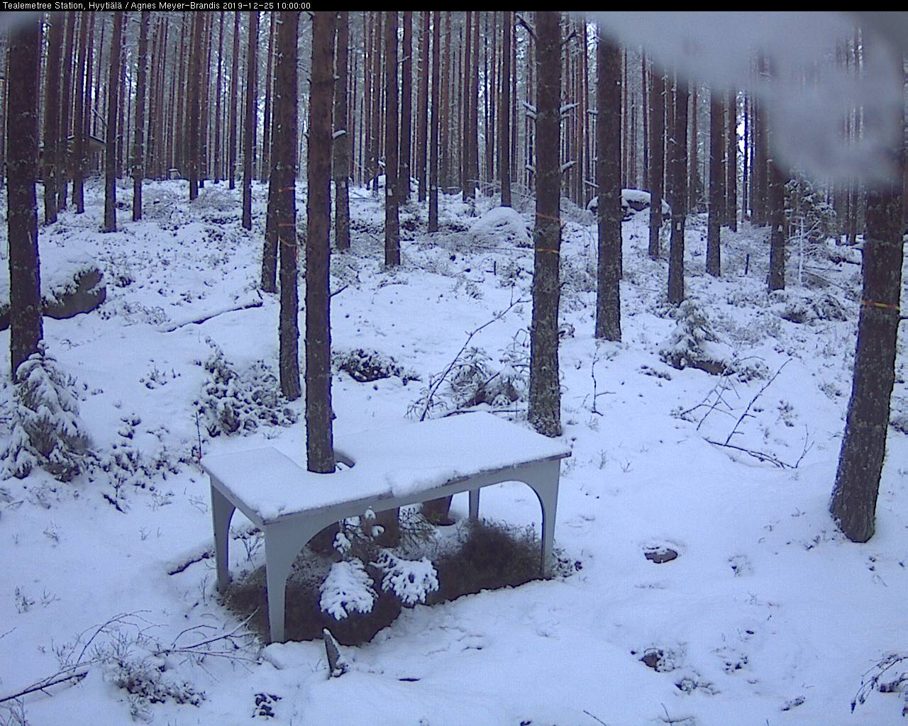 Agnes Meyer-Brandiksen työ Hyytiälässä alkoi tutustumalla aseman muihin tutkijoihin. Pystyäkseen tapaamaan ihmisiä metsässä, hän rakensi pöydän, josta muodostui kohtauspiste ja paikka teehetkille Agneksen ja puun kanssa.