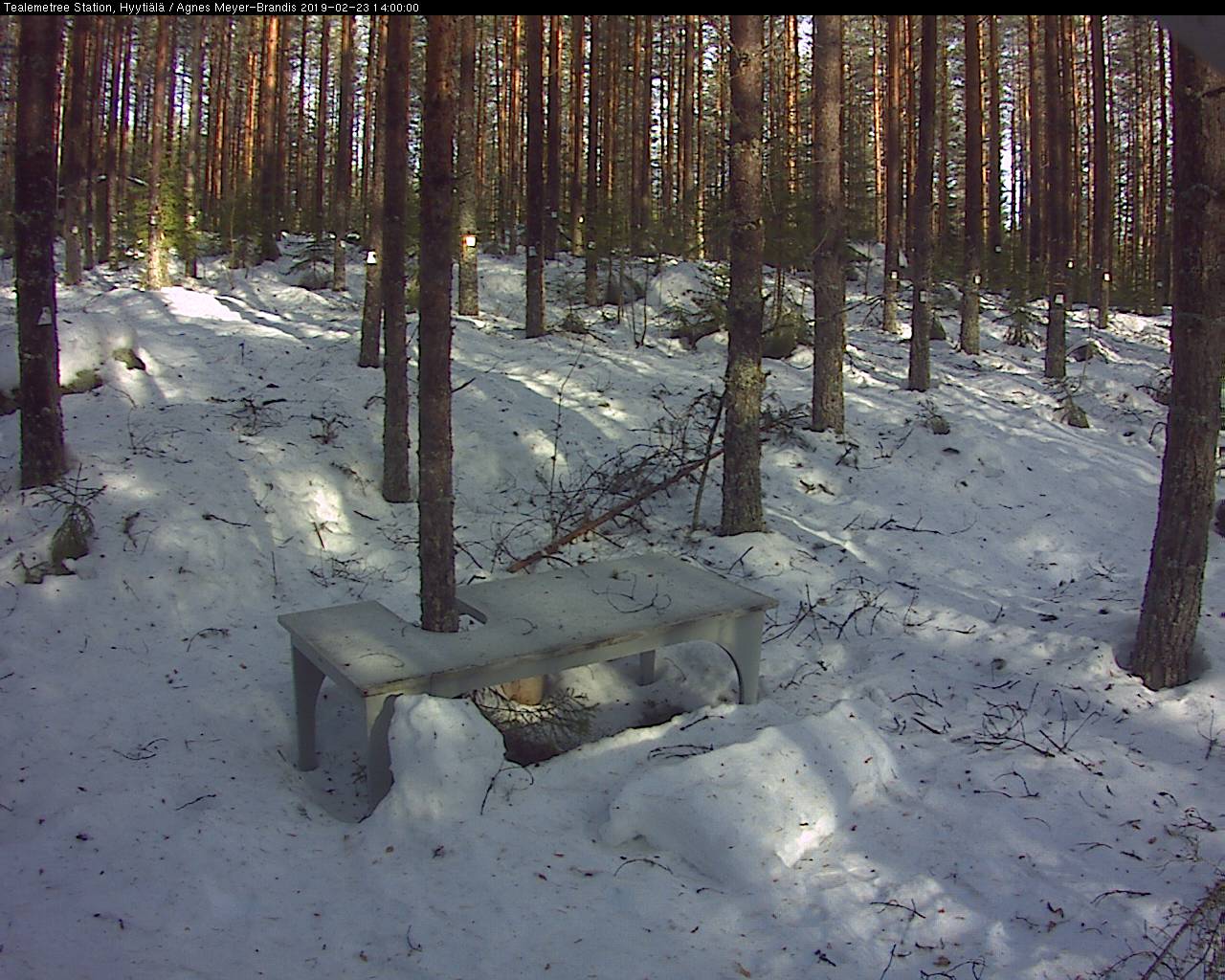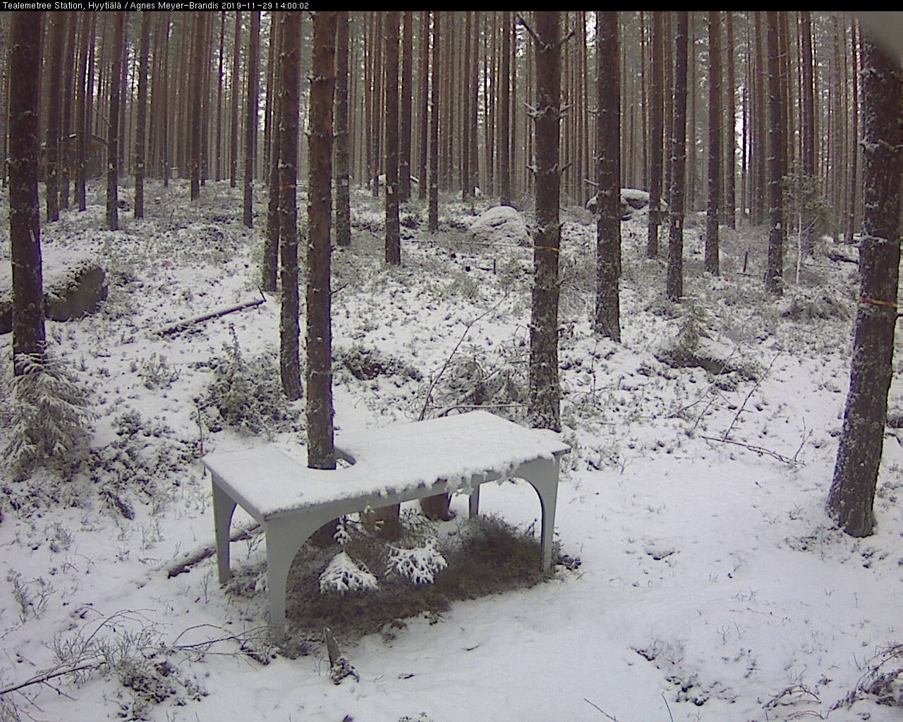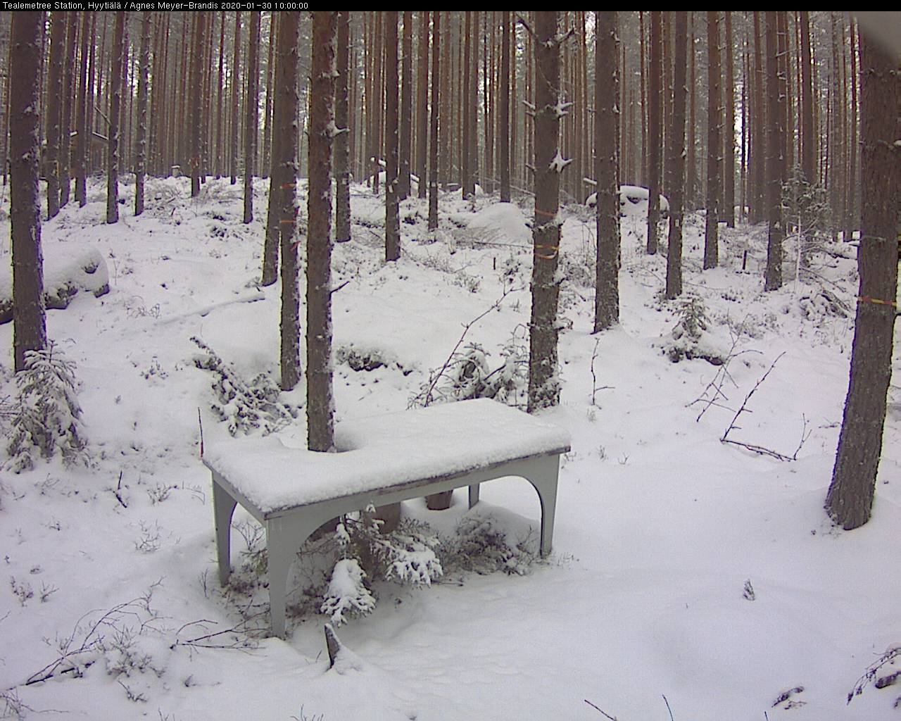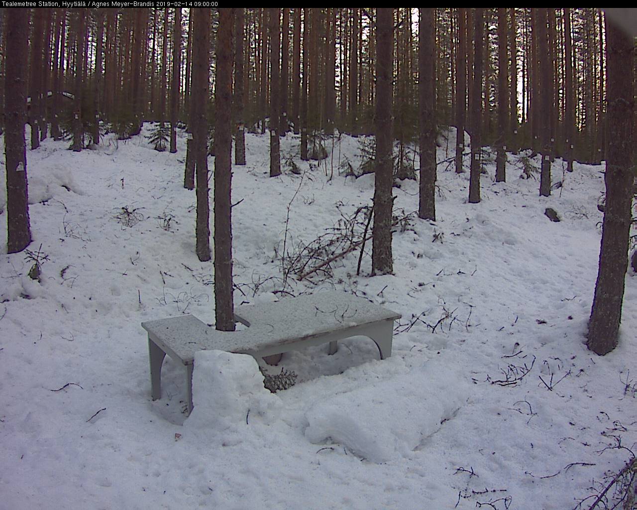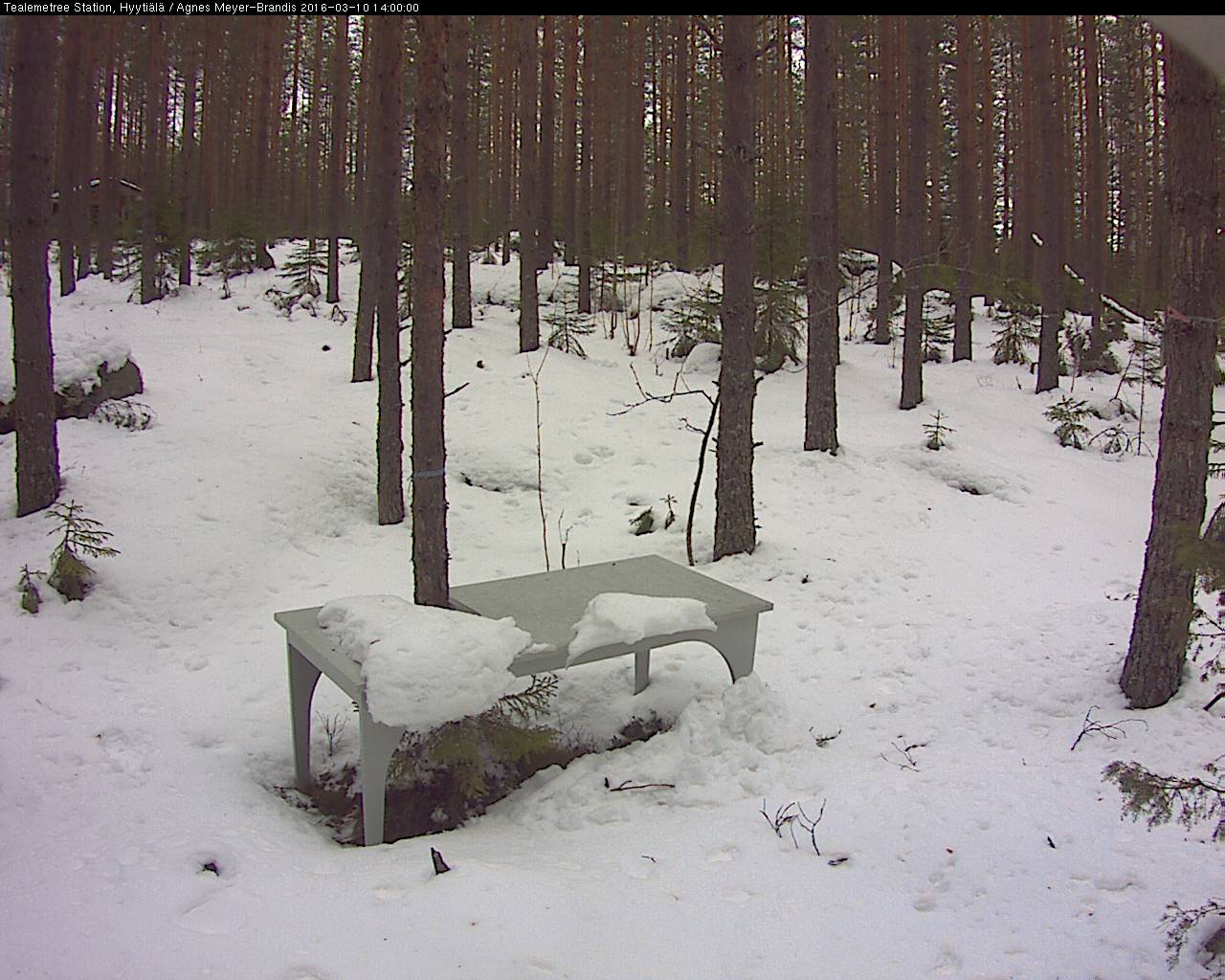 Agnes Meyer-Brandiksen työ Hyytiälässä alkoi tutustumalla aseman muihin tutkijoihin. Pystyäkseen tapaamaan ihmisiä metsässä, hän rakensi pöydän, josta muodostui kohtauspiste ja paikka teehetkille Agneksen ja puun kanssa.