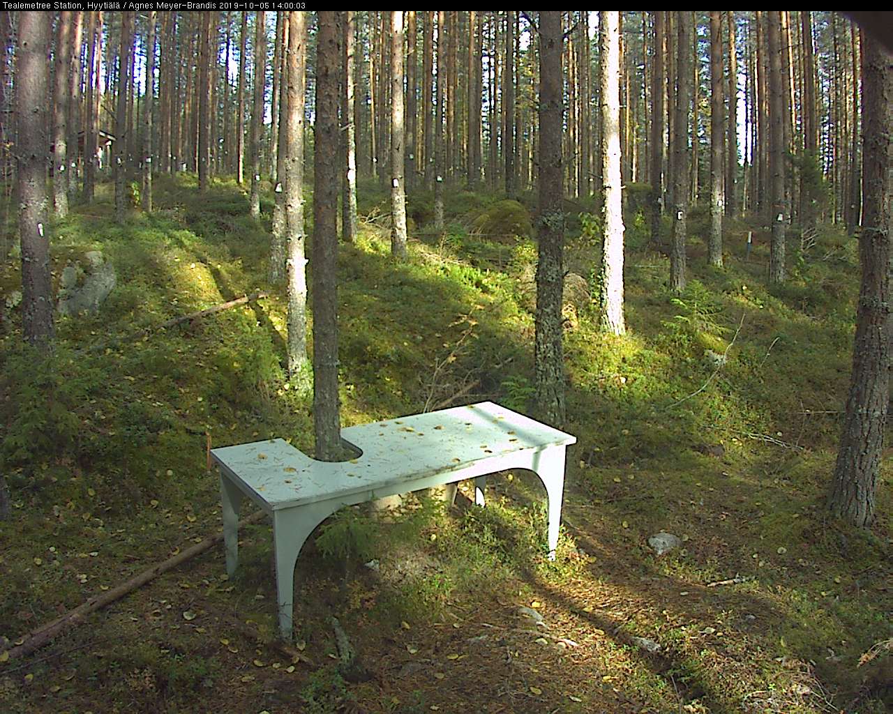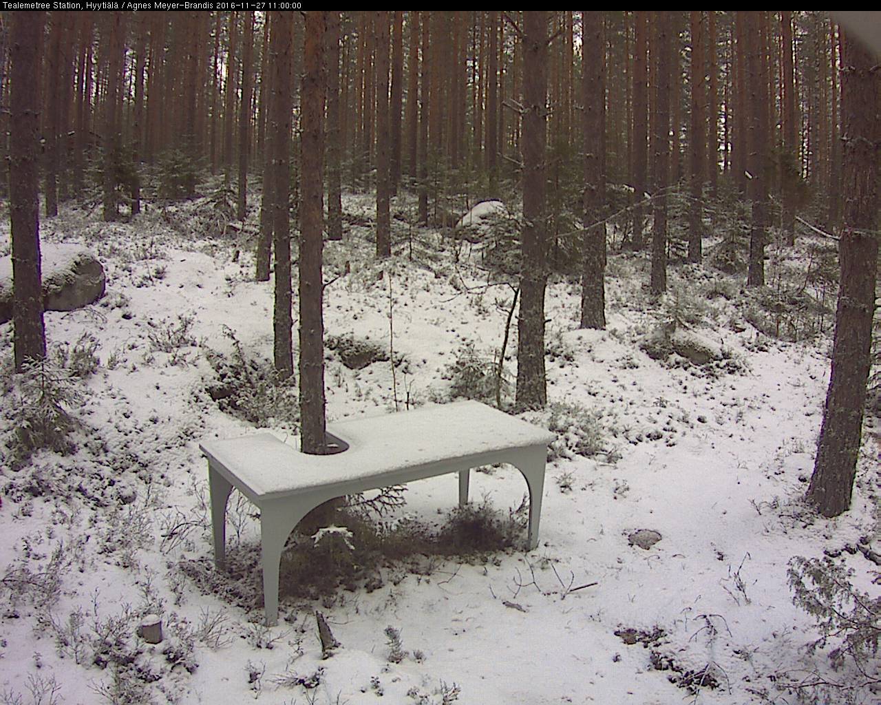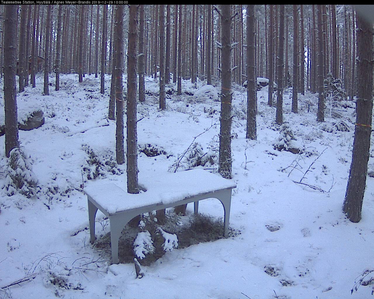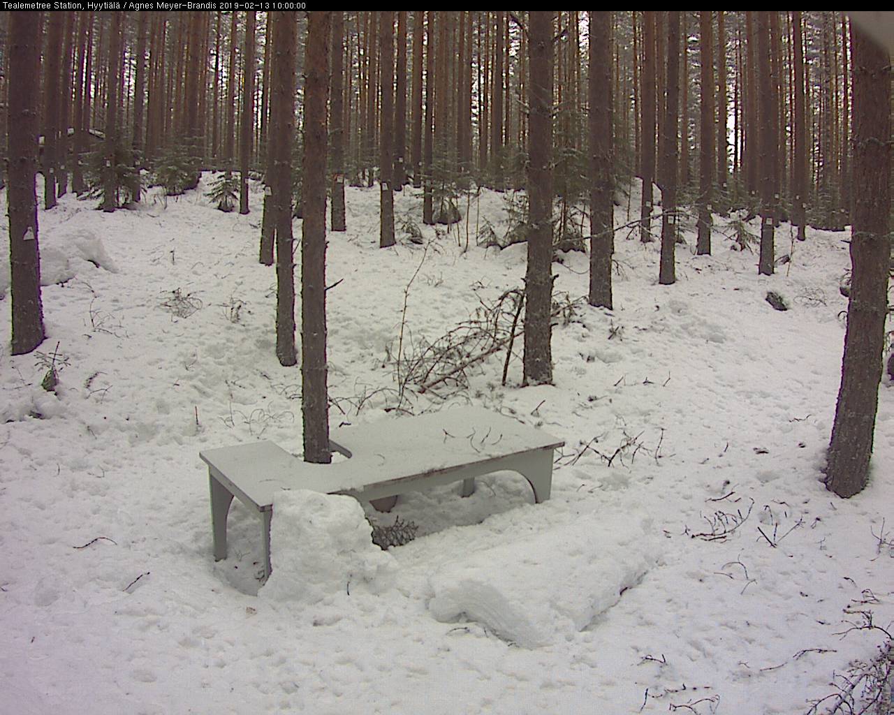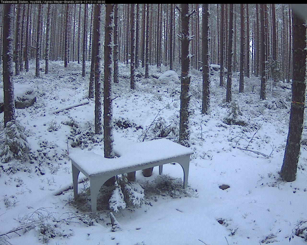 Agnes Meyer-Brandiksen työ Hyytiälässä alkoi tutustumalla aseman muihin tutkijoihin. Pystyäkseen tapaamaan ihmisiä metsässä, hän rakensi pöydän, josta muodostui kohtauspiste ja paikka teehetkille Agneksen ja puun kanssa.