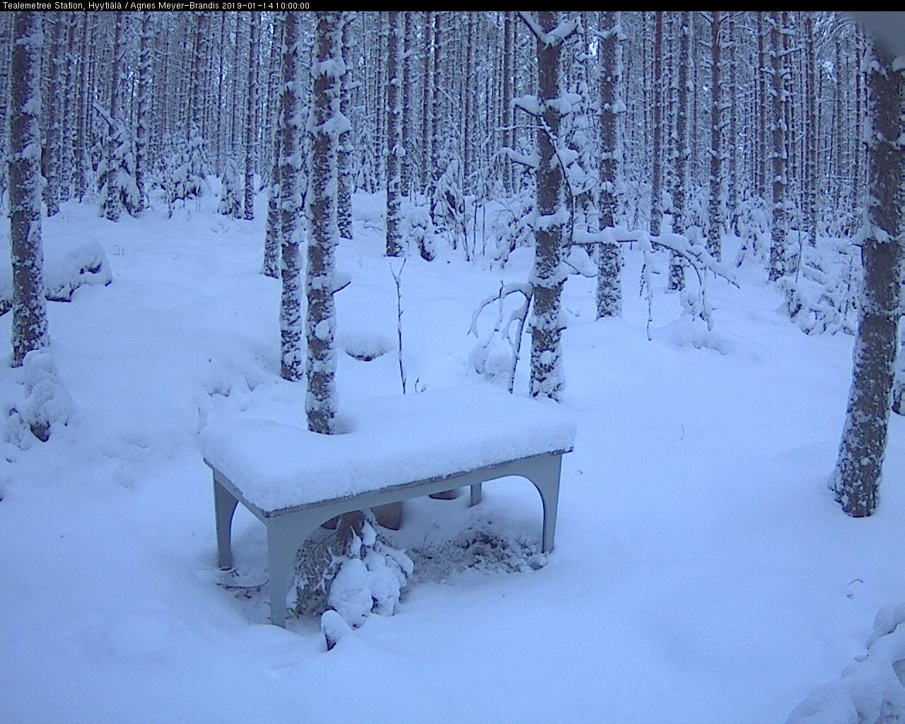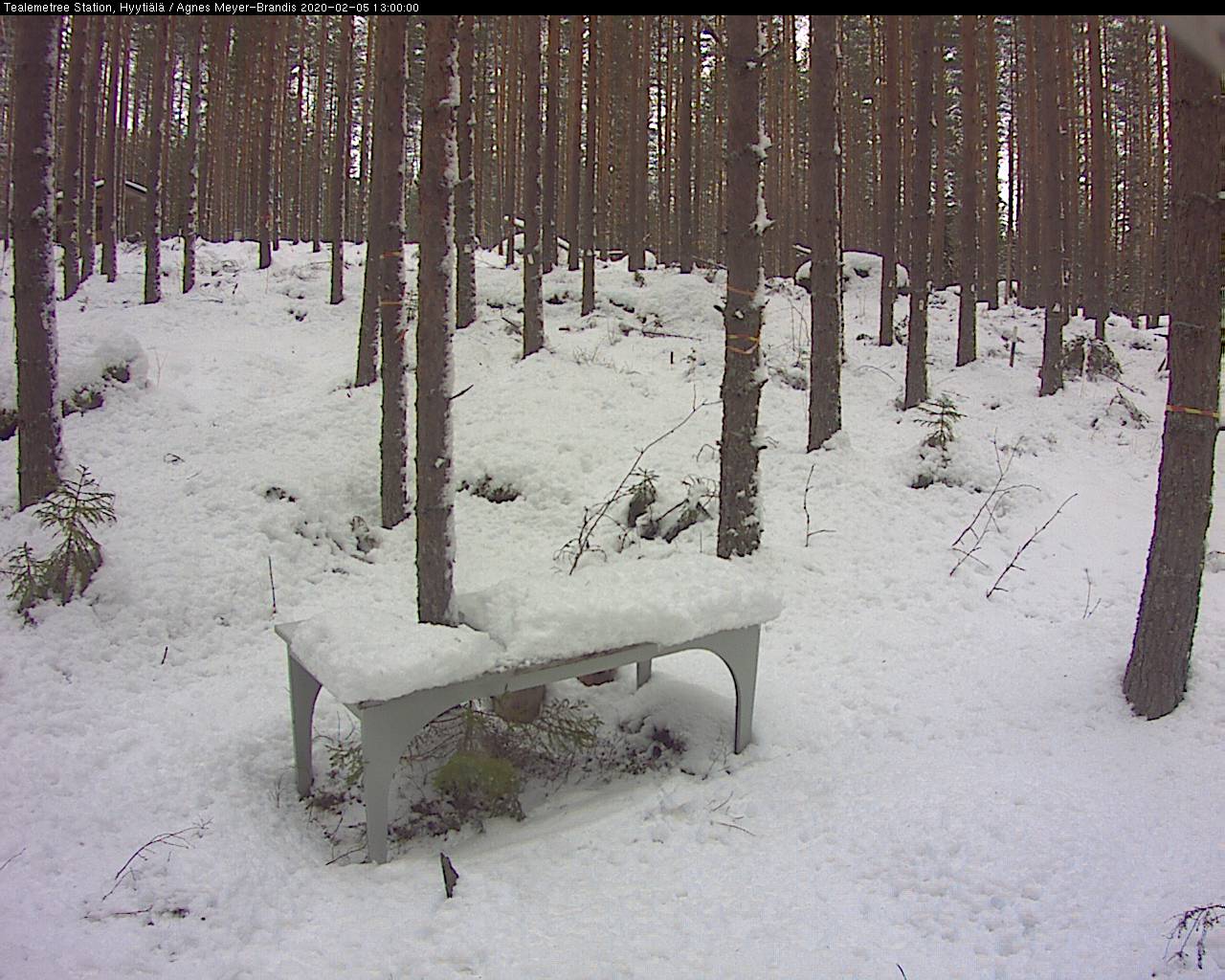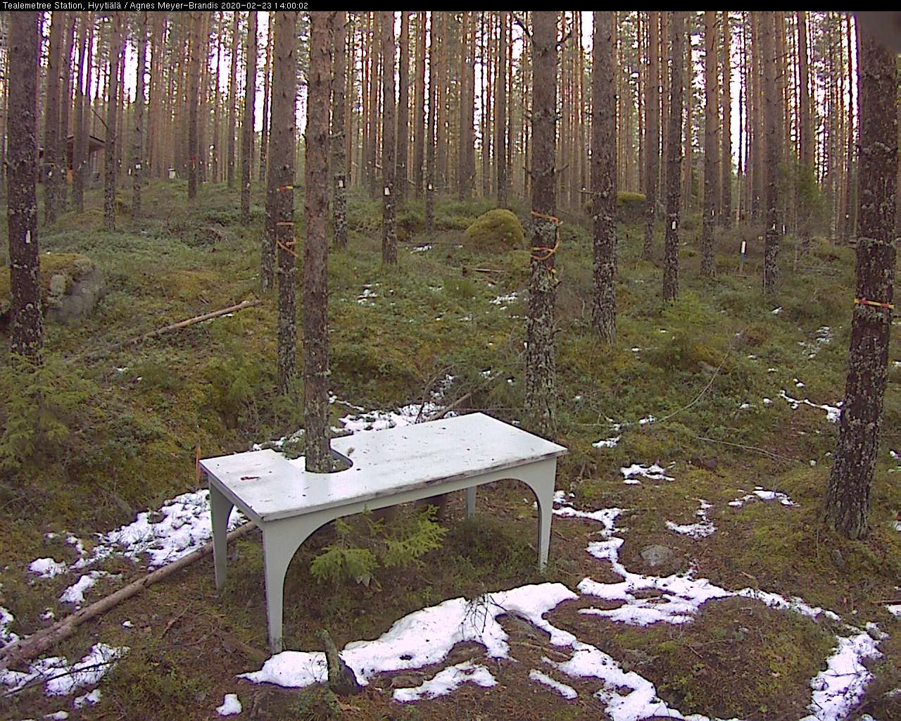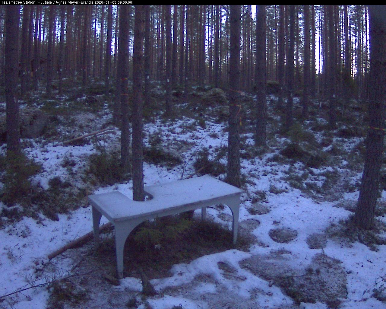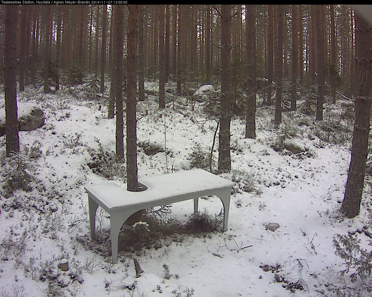 Agnes Meyer-Brandiksen työ Hyytiälässä alkoi tutustumalla aseman muihin tutkijoihin. Pystyäkseen tapaamaan ihmisiä metsässä, hän rakensi pöydän, josta muodostui kohtauspiste ja paikka teehetkille Agneksen ja puun kanssa.