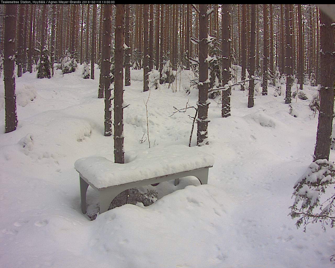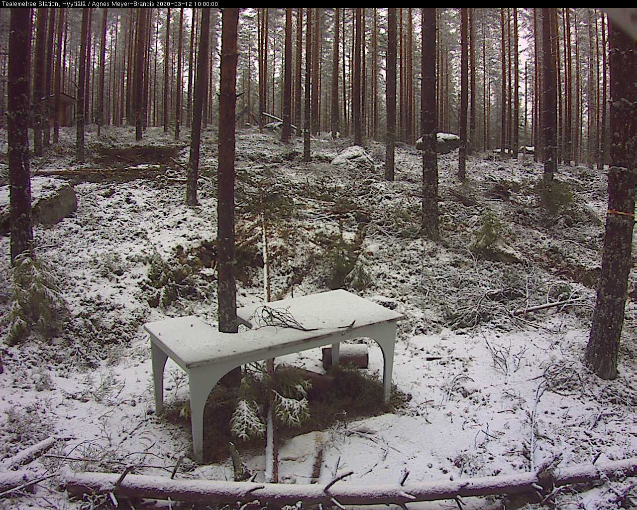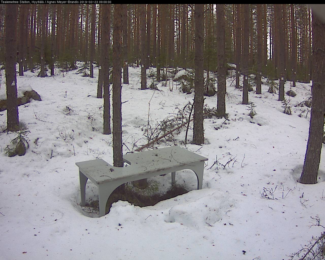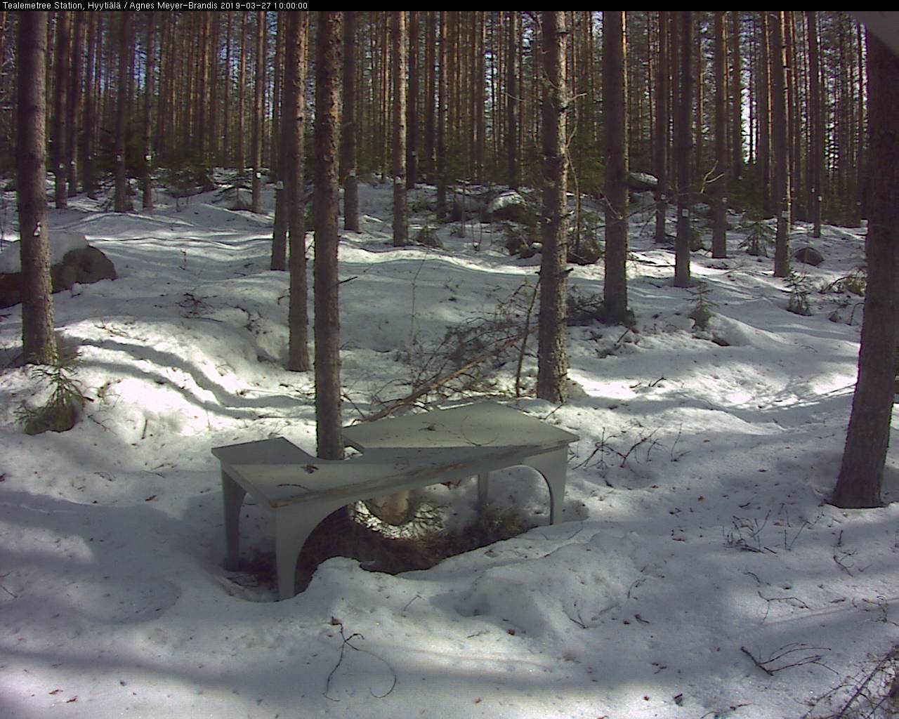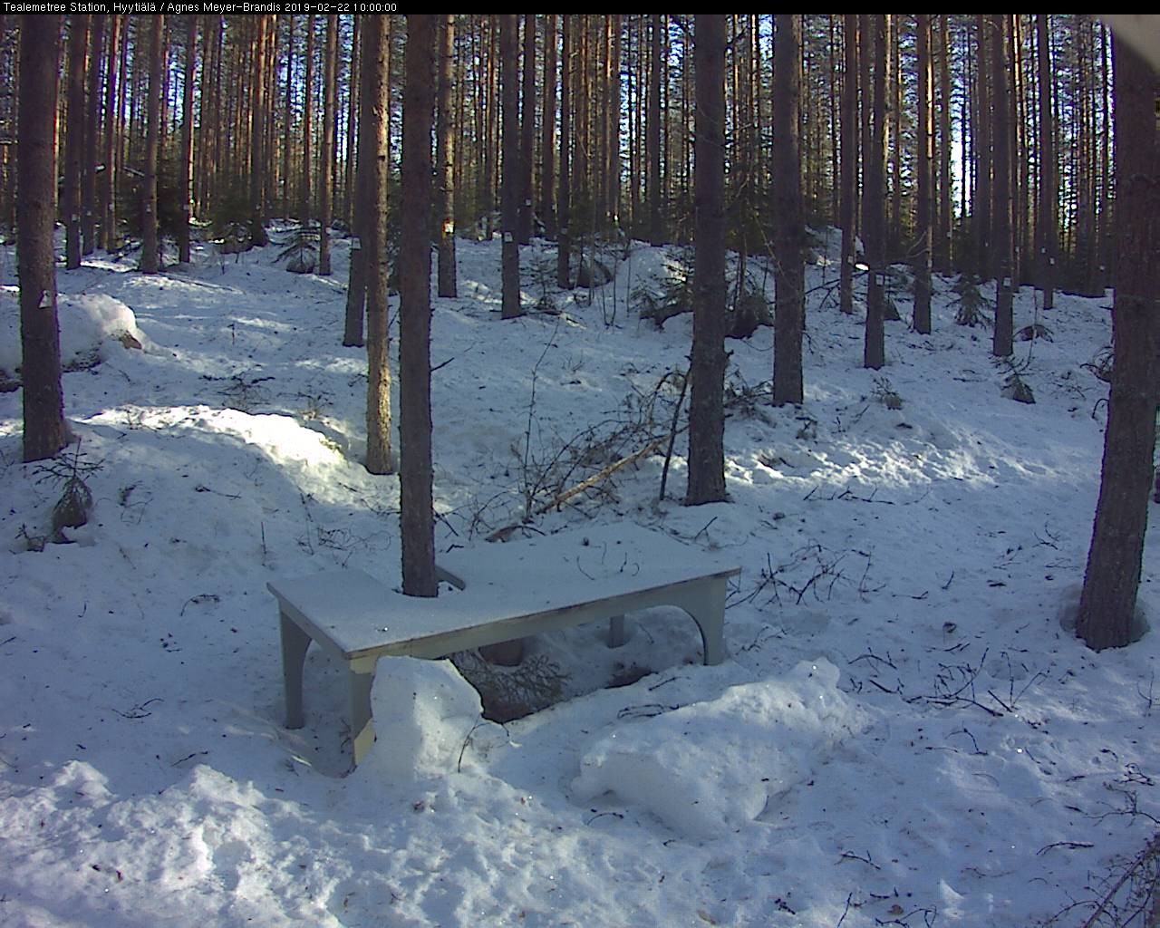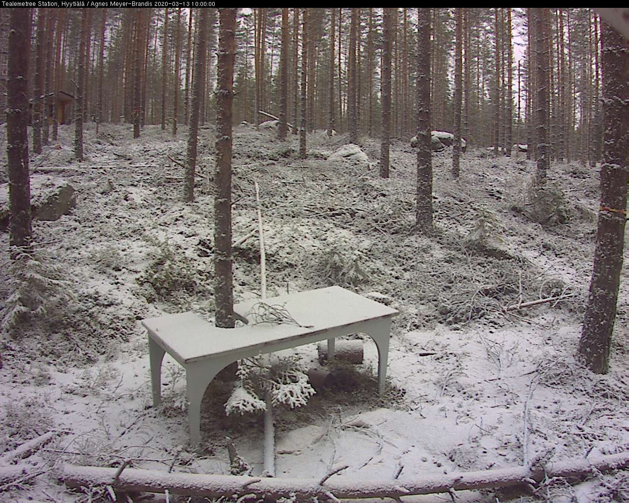 Agnes Meyer-Brandiksen työ Hyytiälässä alkoi tutustumalla aseman muihin tutkijoihin. Pystyäkseen tapaamaan ihmisiä metsässä, hän rakensi pöydän, josta muodostui kohtauspiste ja paikka teehetkille Agneksen ja puun kanssa.