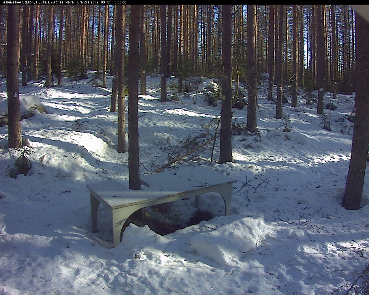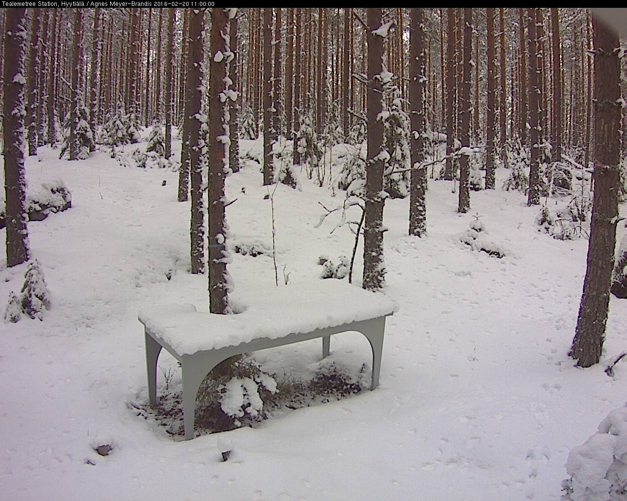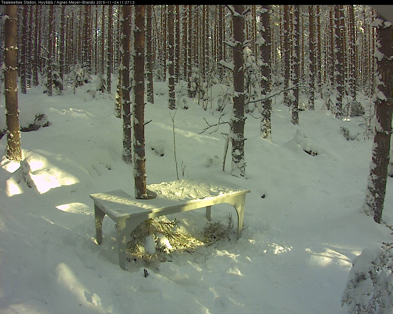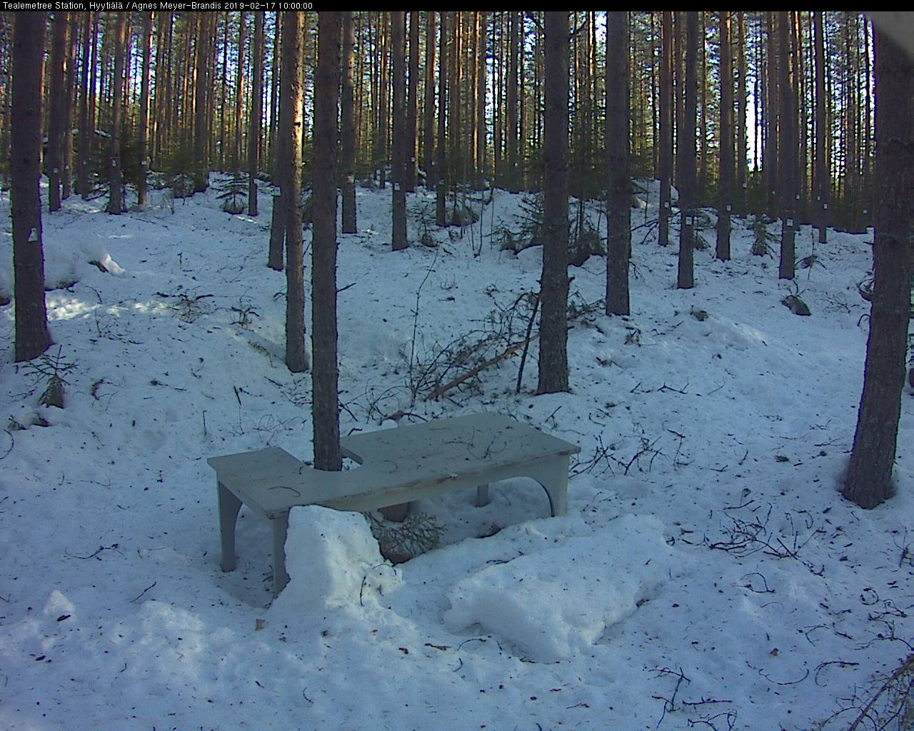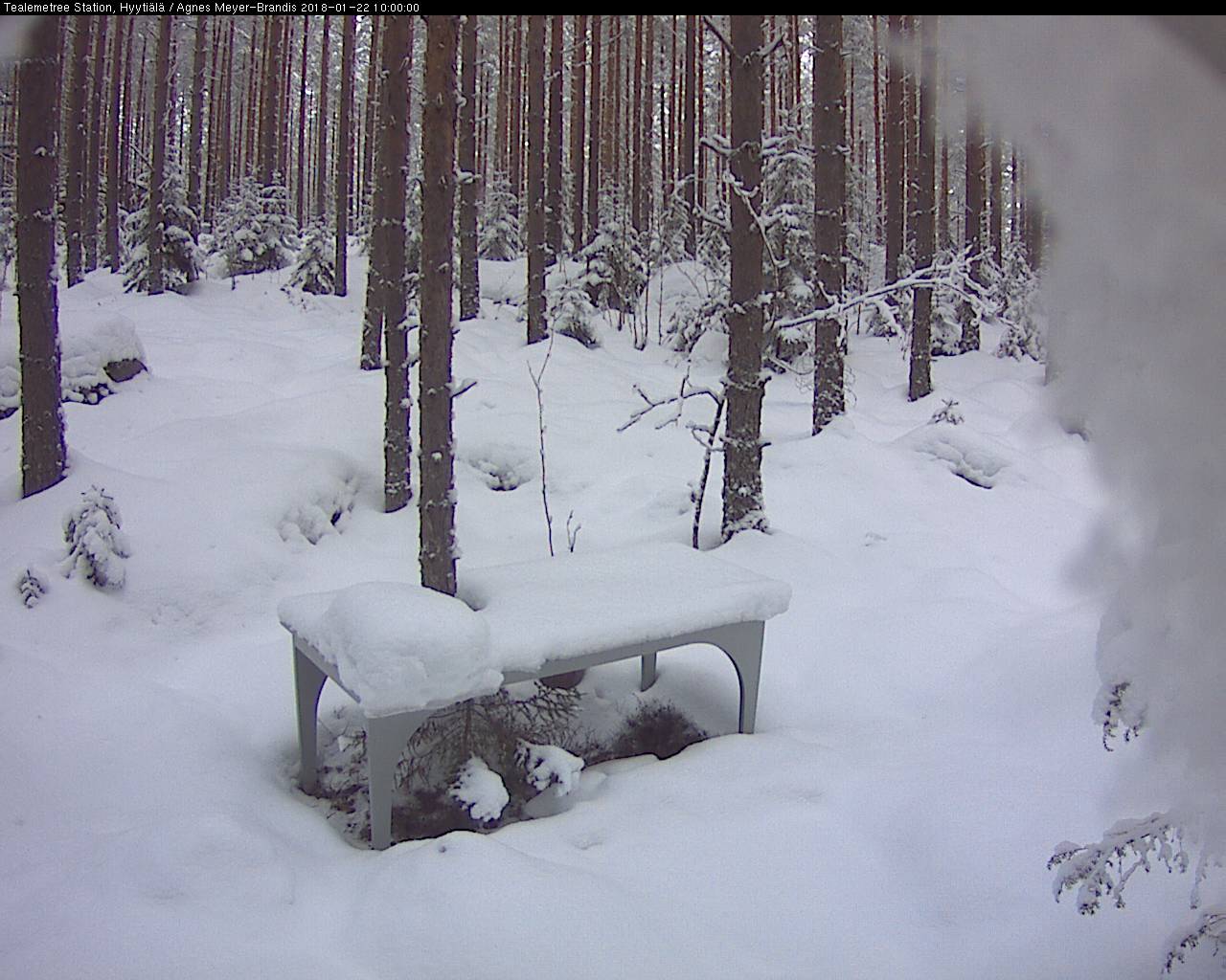 Agnes Meyer-Brandiksen työ Hyytiälässä alkoi tutustumalla aseman muihin tutkijoihin. Pystyäkseen tapaamaan ihmisiä metsässä, hän rakensi pöydän, josta muodostui kohtauspiste ja paikka teehetkille Agneksen ja puun kanssa.