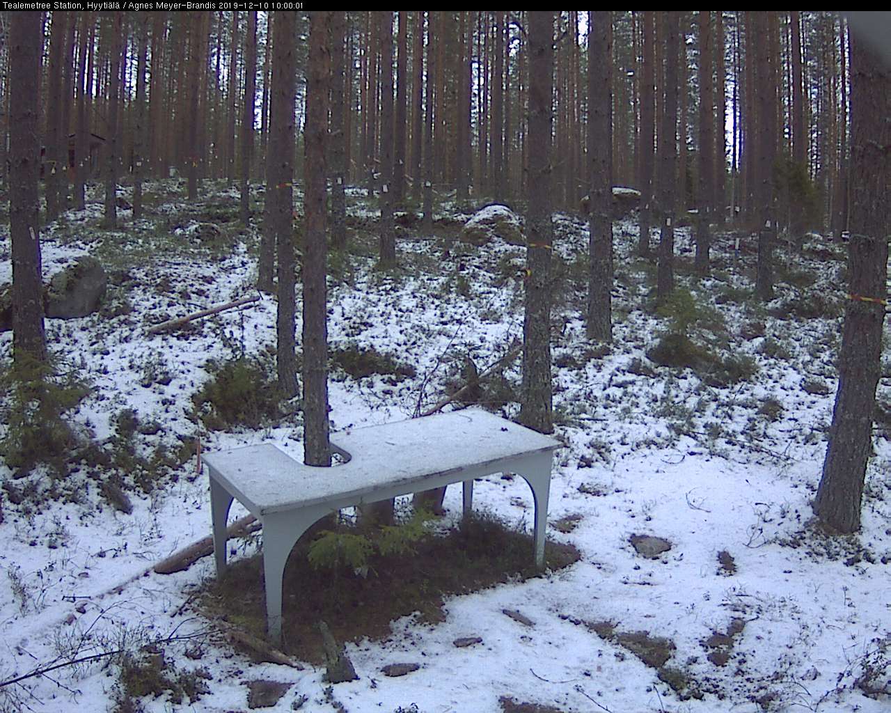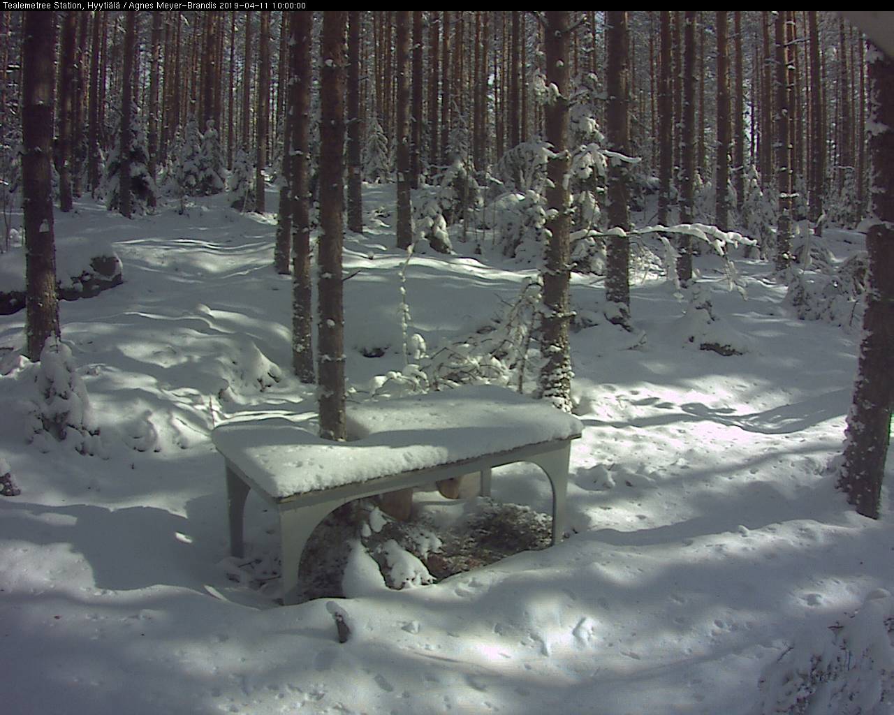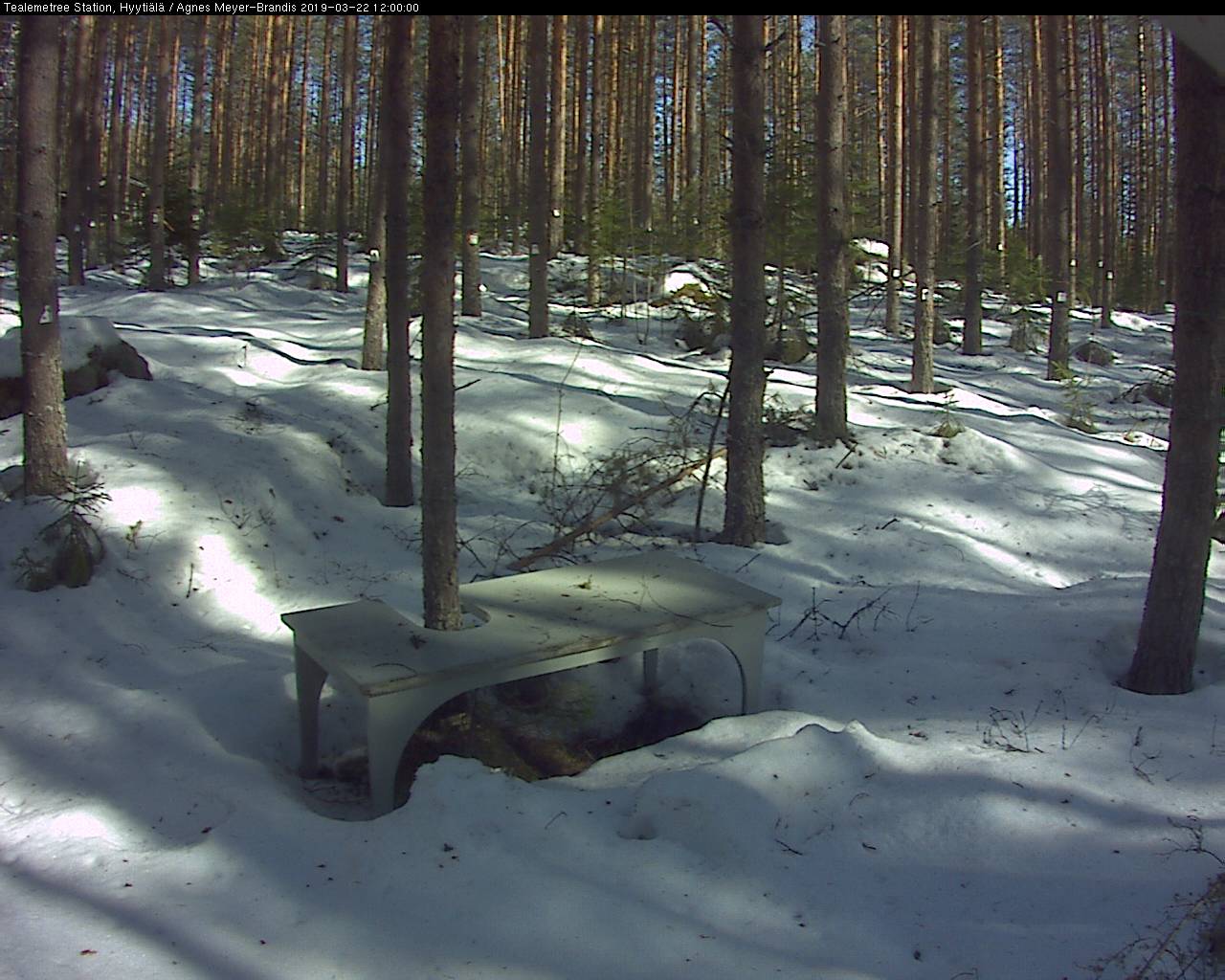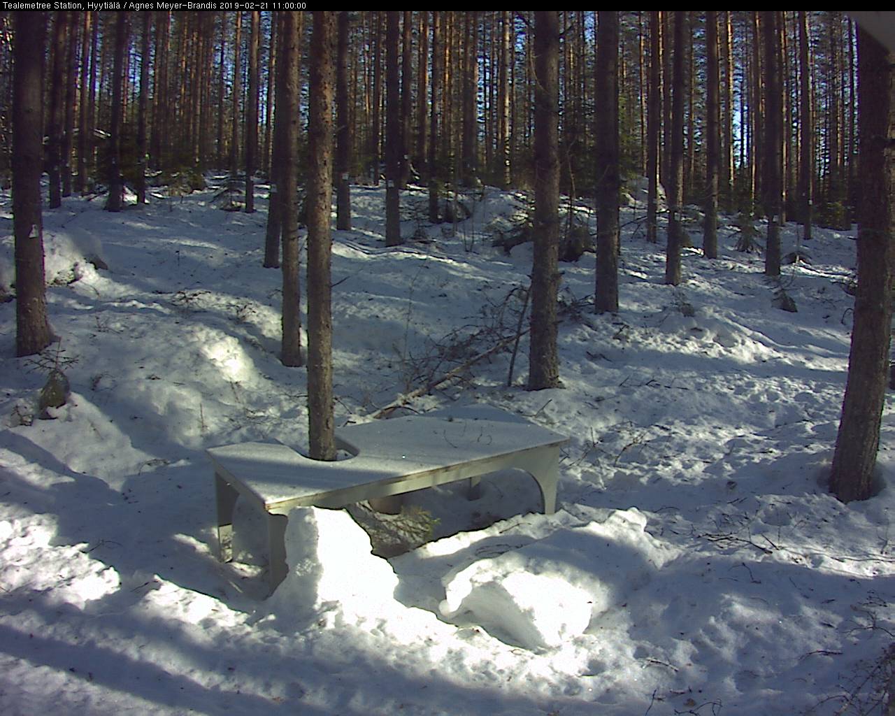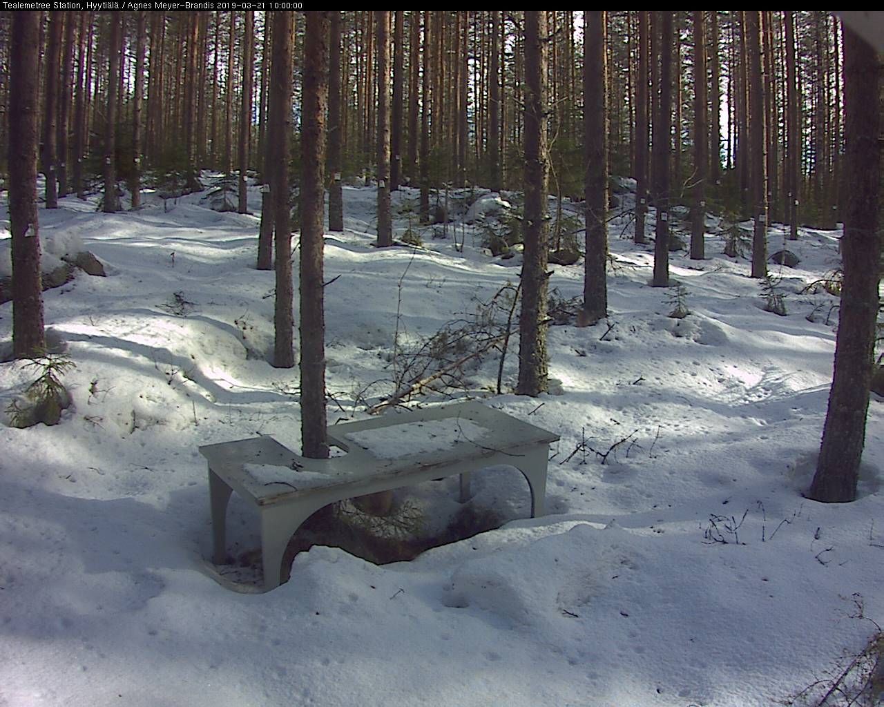 Agnes Meyer-Brandiksen työ Hyytiälässä alkoi tutustumalla aseman muihin tutkijoihin. Pystyäkseen tapaamaan ihmisiä metsässä, hän rakensi pöydän, josta muodostui kohtauspiste ja paikka teehetkille Agneksen ja puun kanssa.