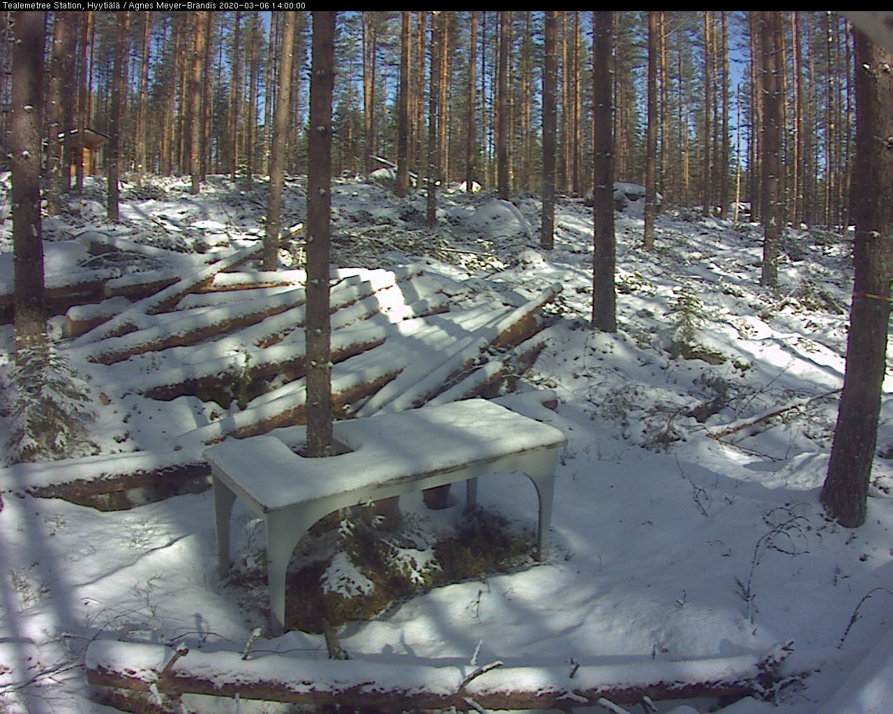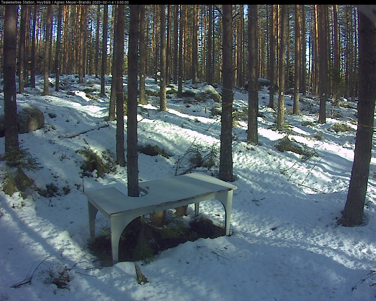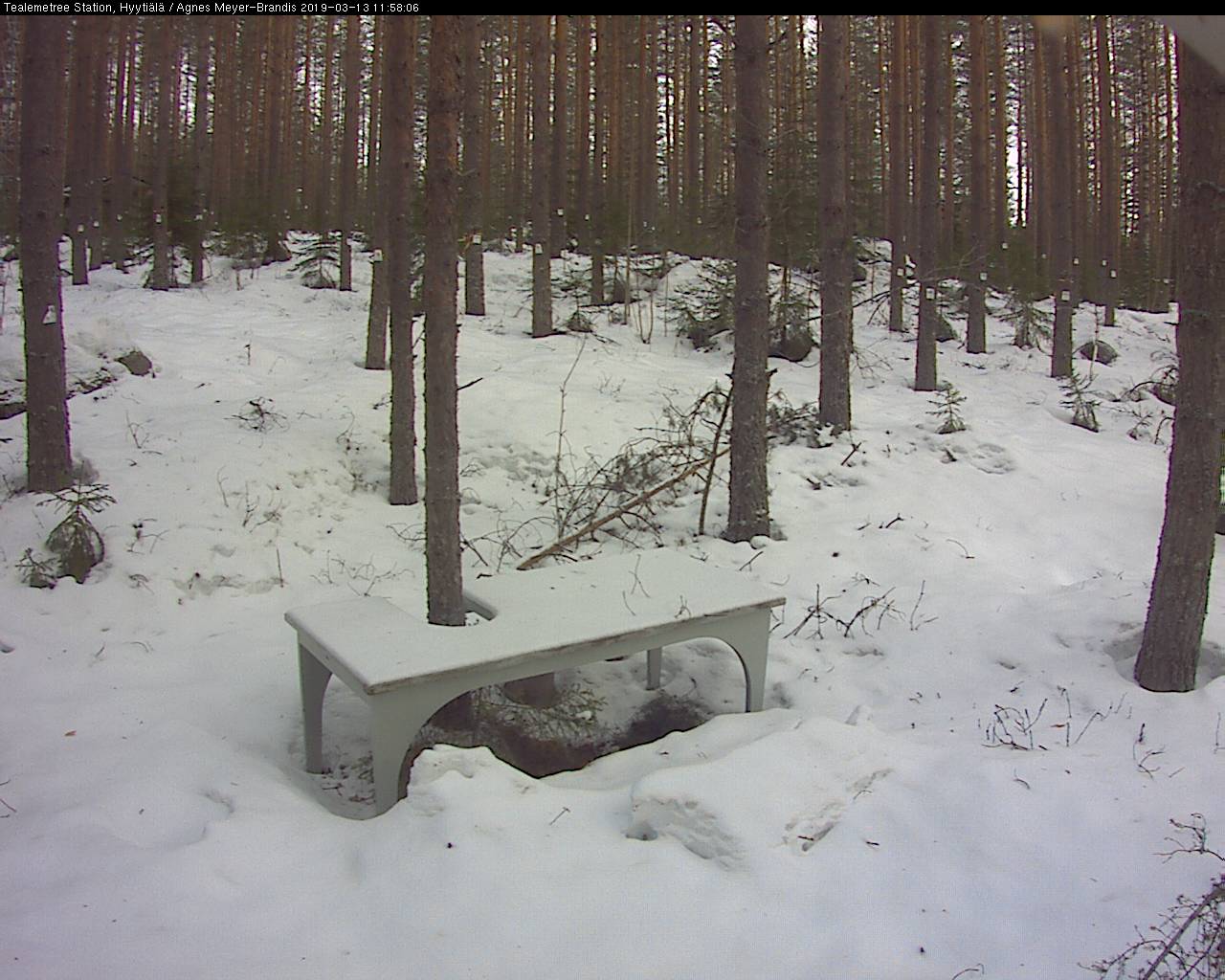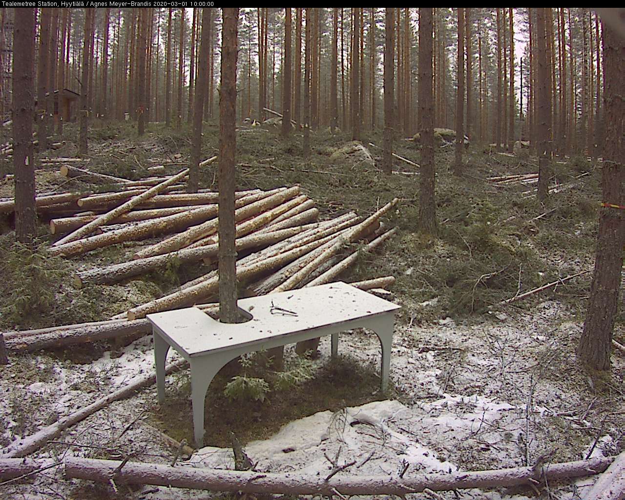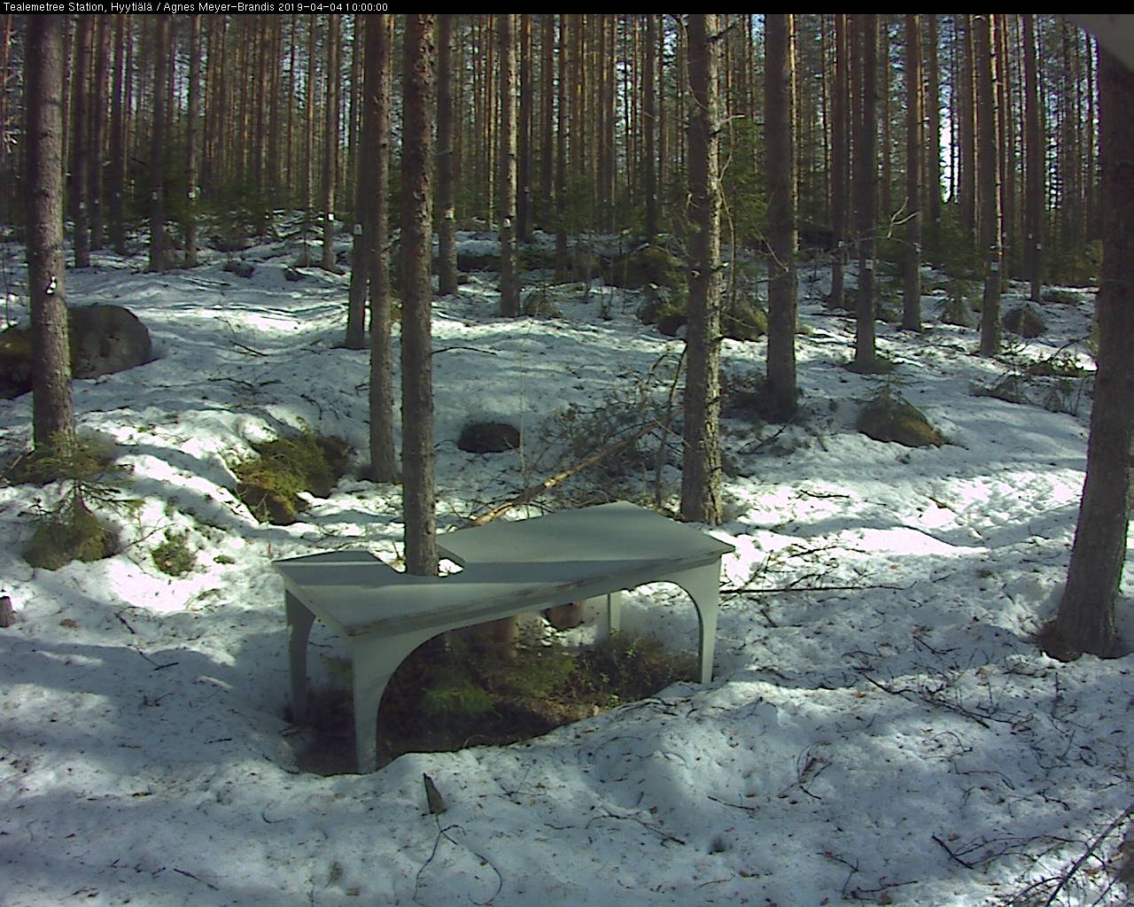 Agnes Meyer-Brandiksen työ Hyytiälässä alkoi tutustumalla aseman muihin tutkijoihin. Pystyäkseen tapaamaan ihmisiä metsässä, hän rakensi pöydän, josta muodostui kohtauspiste ja paikka teehetkille Agneksen ja puun kanssa.