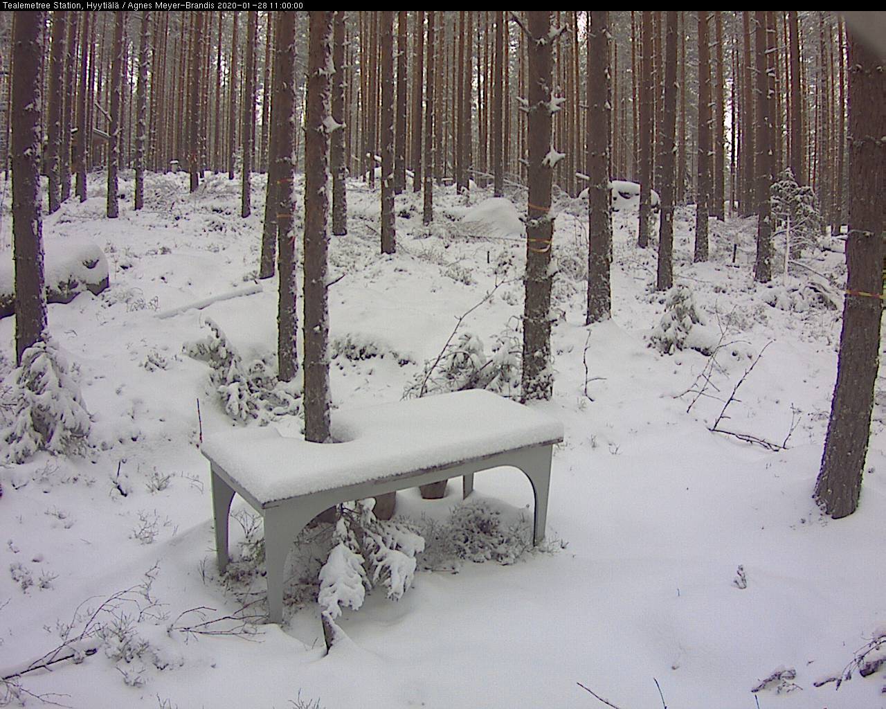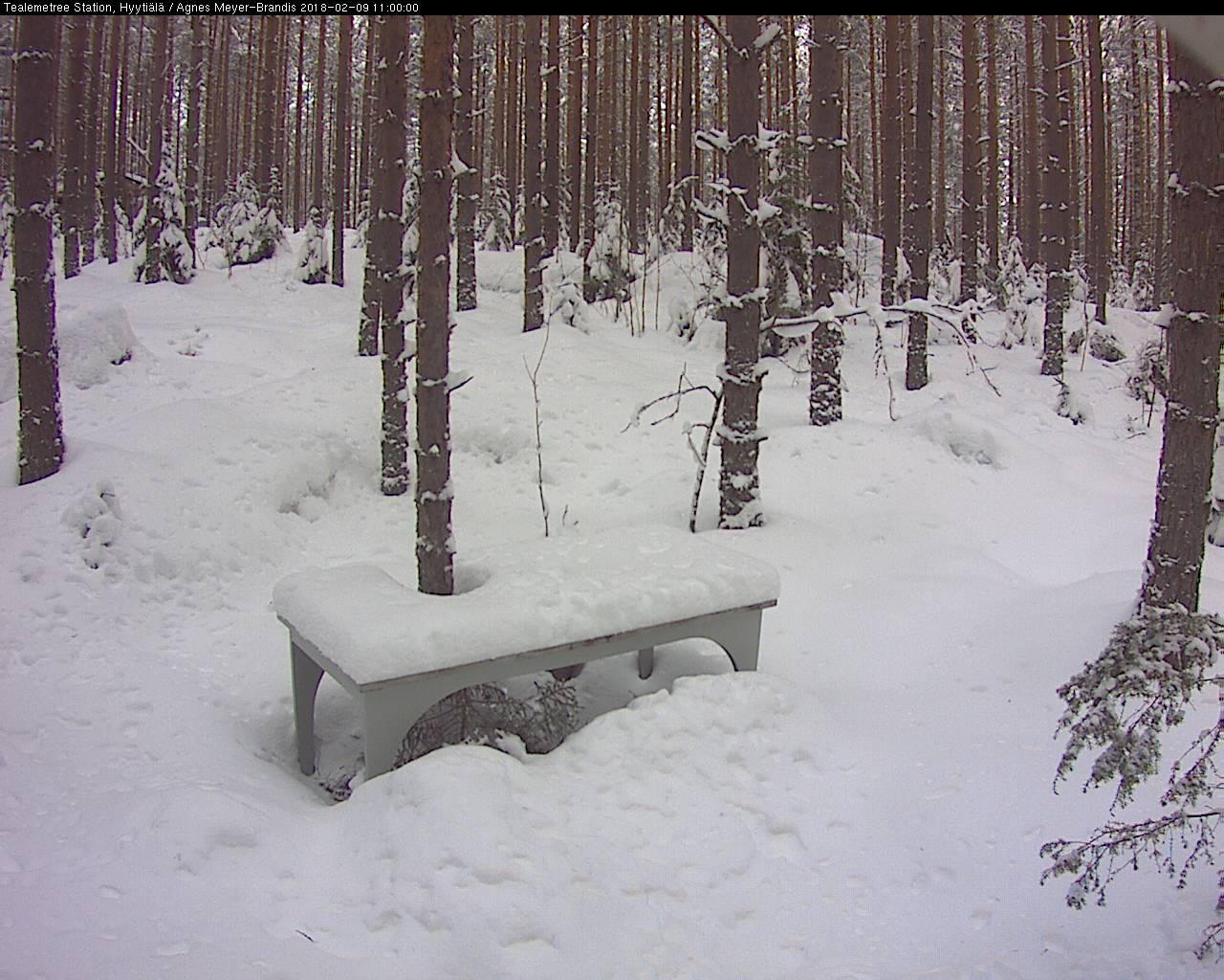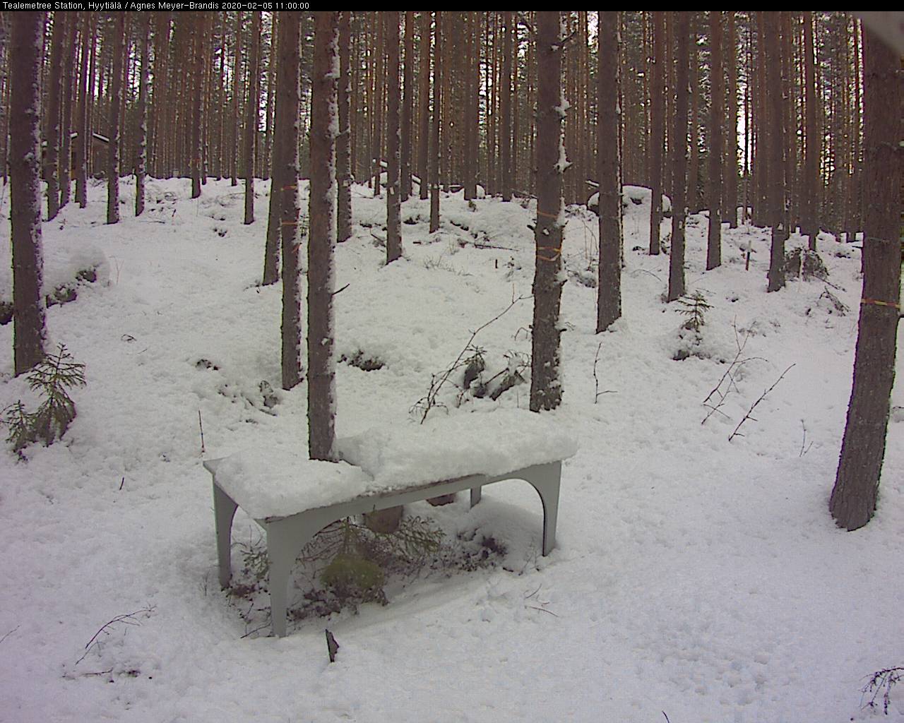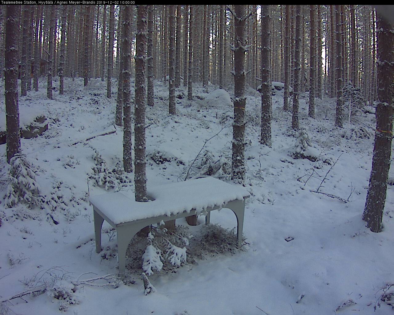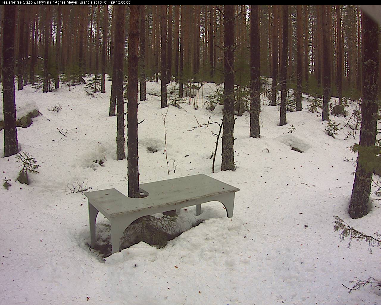 Agnes Meyer-Brandiksen työ Hyytiälässä alkoi tutustumalla aseman muihin tutkijoihin. Pystyäkseen tapaamaan ihmisiä metsässä, hän rakensi pöydän, josta muodostui kohtauspiste ja paikka teehetkille Agneksen ja puun kanssa.